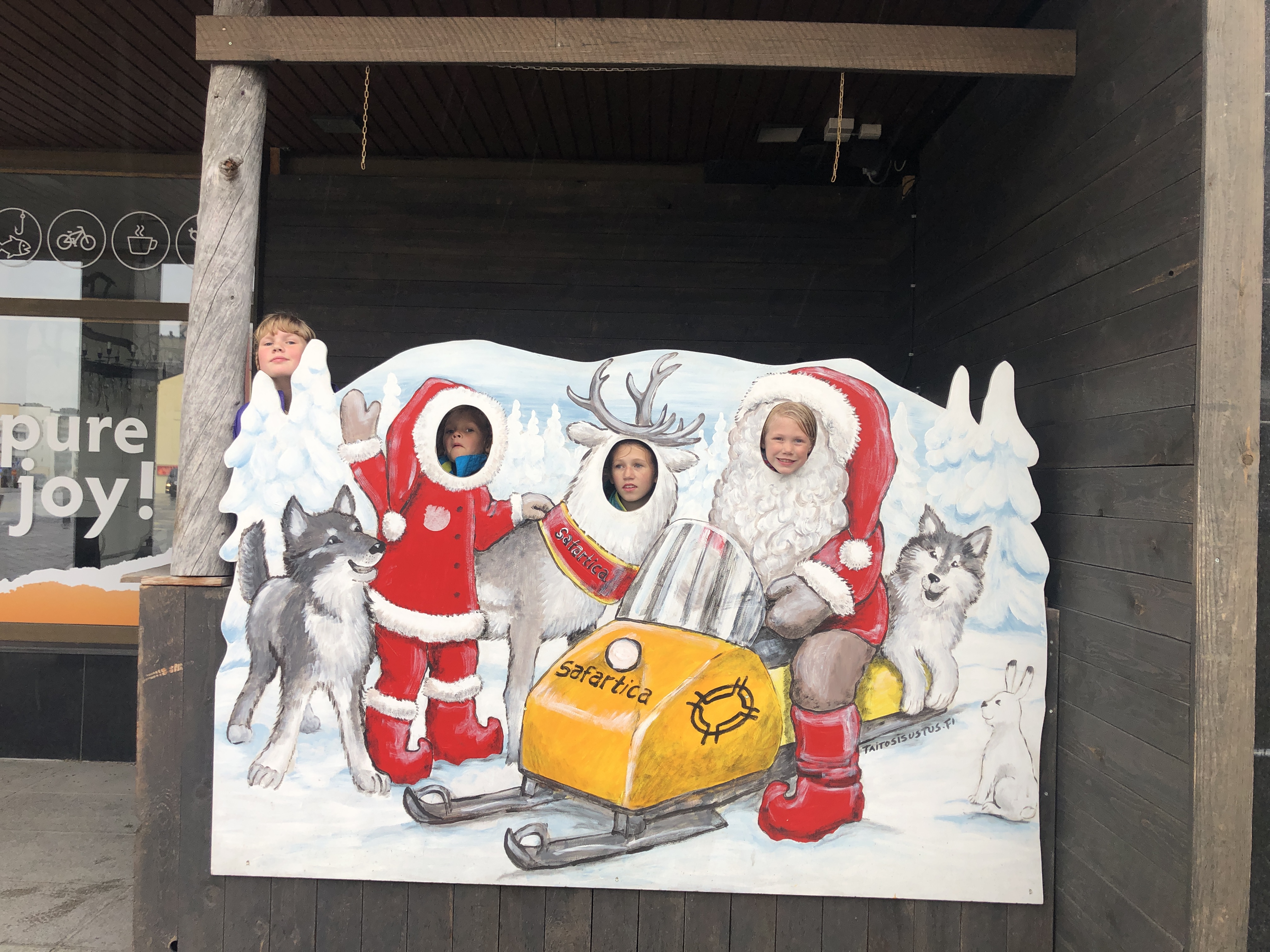 On Wednesday we drove 350 km from Kaamanen to Rovaniemi, Finland. Rovaniemi is a small city of about 53000 people and is the official home of Santa Claus! The city was completely destroyed in WWII and when it was rebuilt, it was designed with input by famous Finnish architect Alvar Aalto, who planned the city’s footprint in the shape of a reindeer’s head, with the city roads forming the antlers and the local sports stadium as the reindeer’s eye. I have to say, there is nothing too impressive about the architecture, but it is nice to be in a city again (last time was Bergen about a month ago) and there is a ton to do. We have been having a lot of fun playing here!