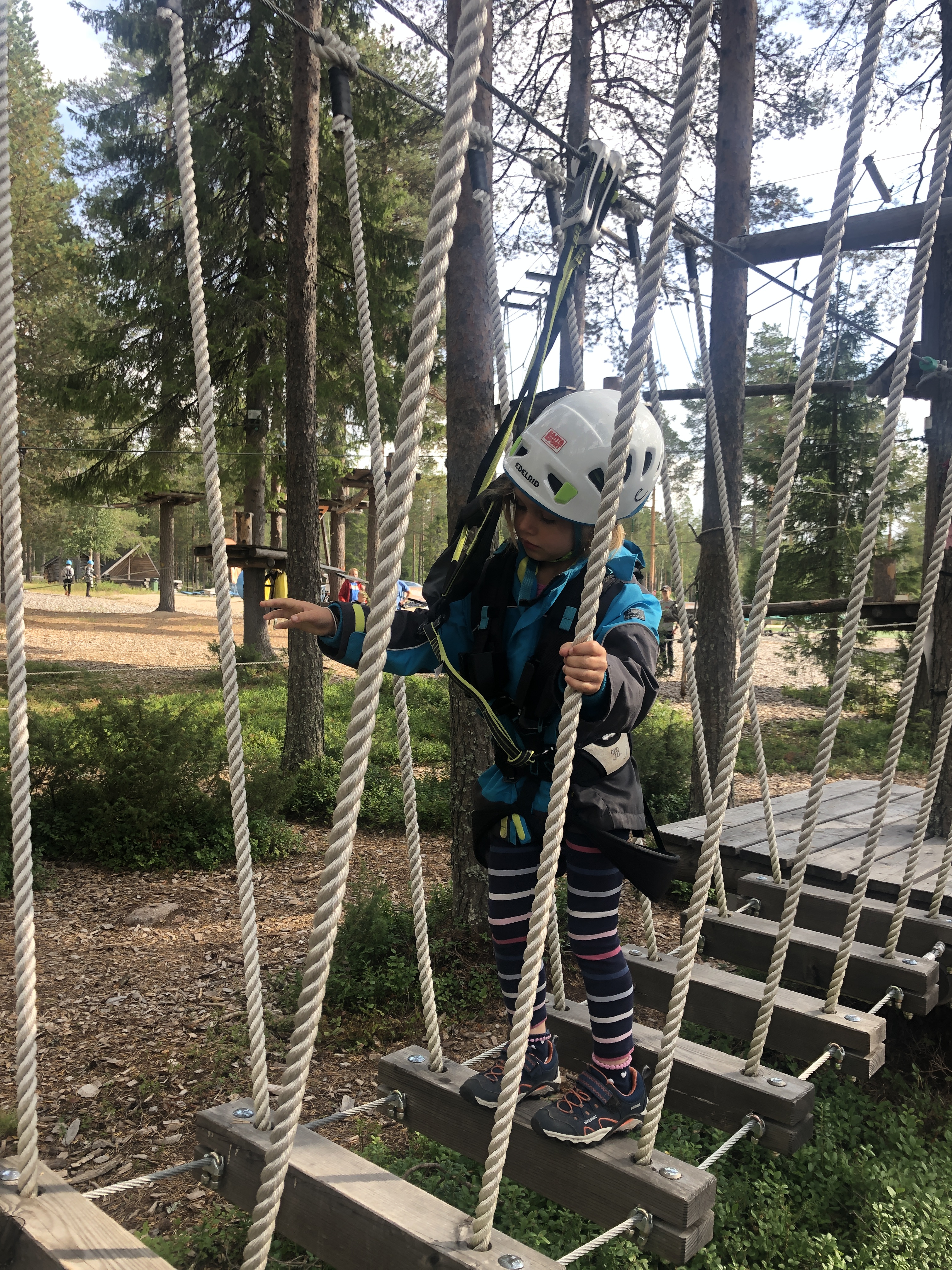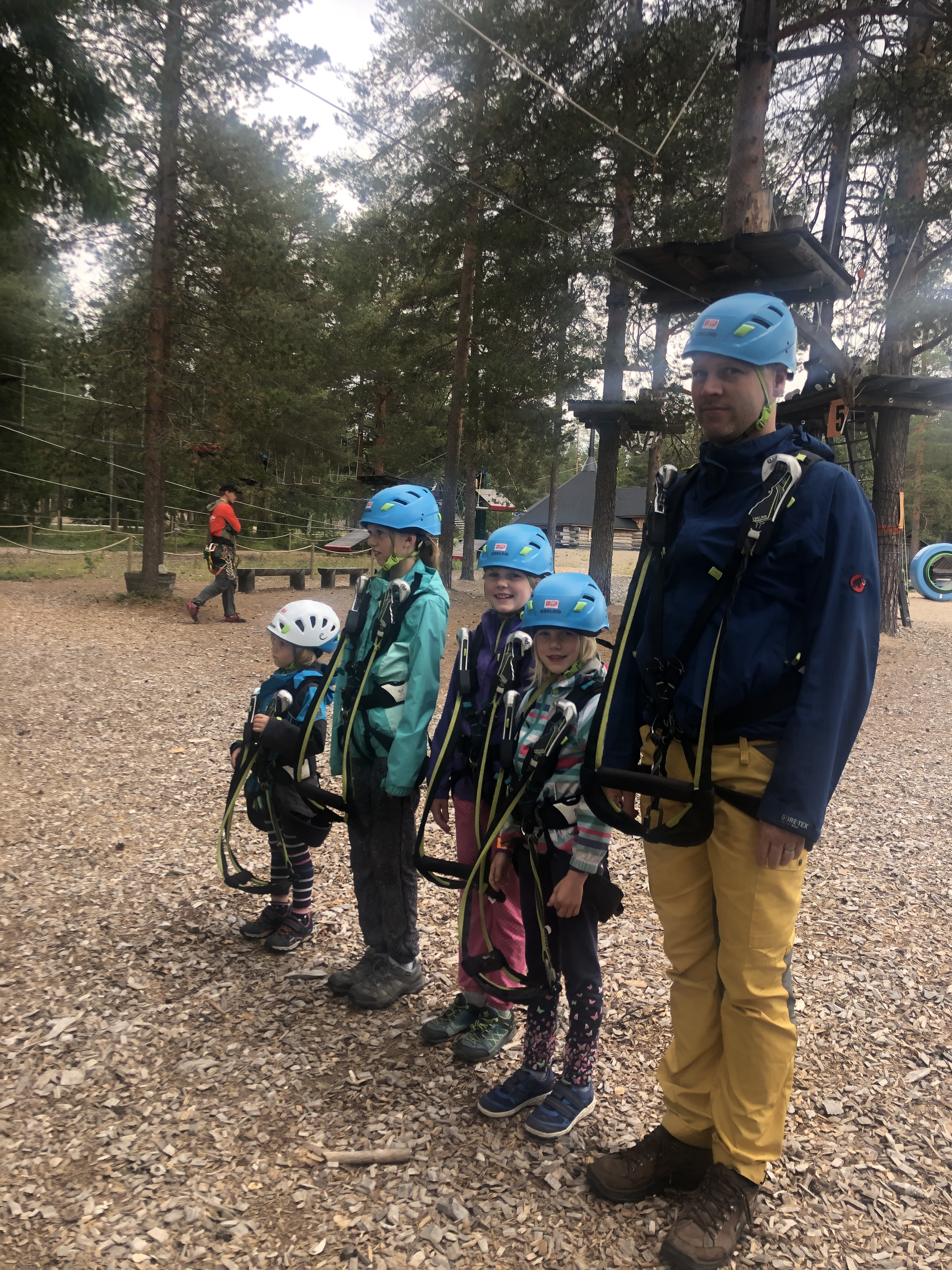 Then that afternoon we went to a nearby ropes course, Adventure Park Huima, and all had so much fun! There were 9 different tracks, a fun little car track and a small playground. There was enough to keep us all happy for over 4 hours! I didn’t take many photos (too busy playing), but it was a great place for the whole family (though Luisa was just barely tall enough and it would have been better for her to wait another year). Hannah and Charlotte were tall enough to do all the tracks and had fun going again and again. Olivia was right in the middle (and a bit sad that there were a few she couldn’t do) and did some with us before venturing off on her own. What a great afternoon!