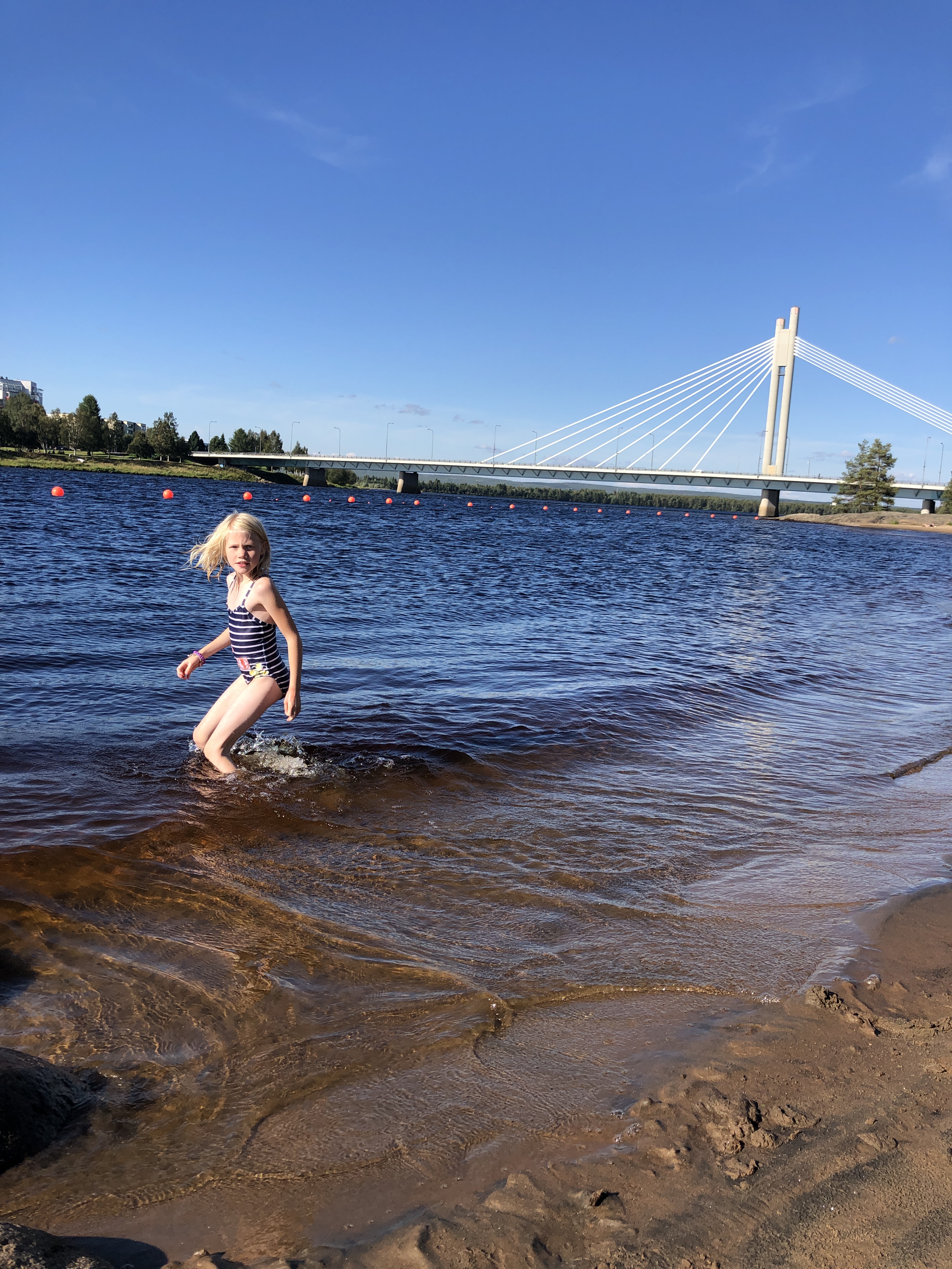 The next day was warm and sunny, so after school we headed to the beach. There is a nice sandy beach right next door to the campground. The water is so cold, but that didn’t stop the girls!