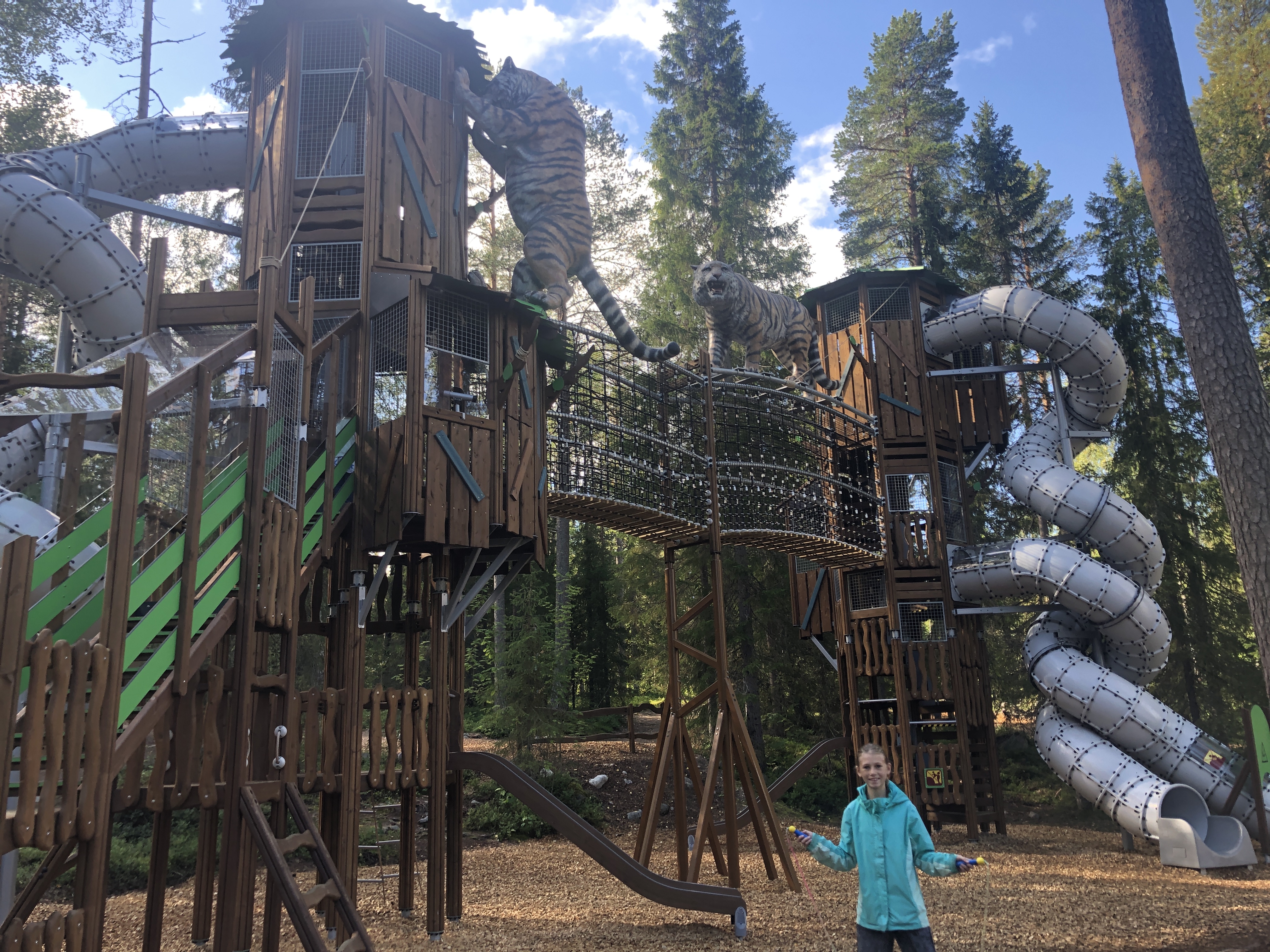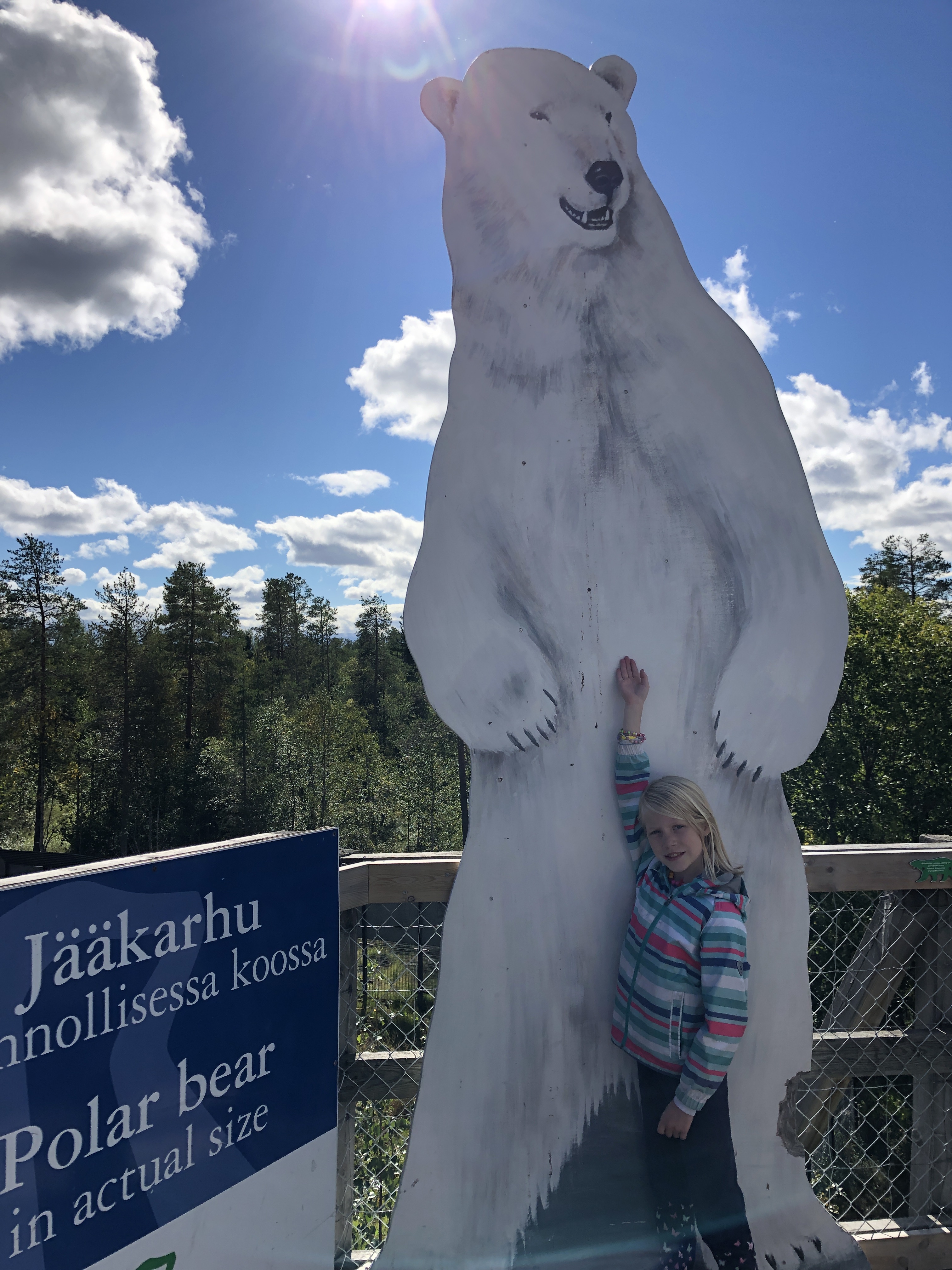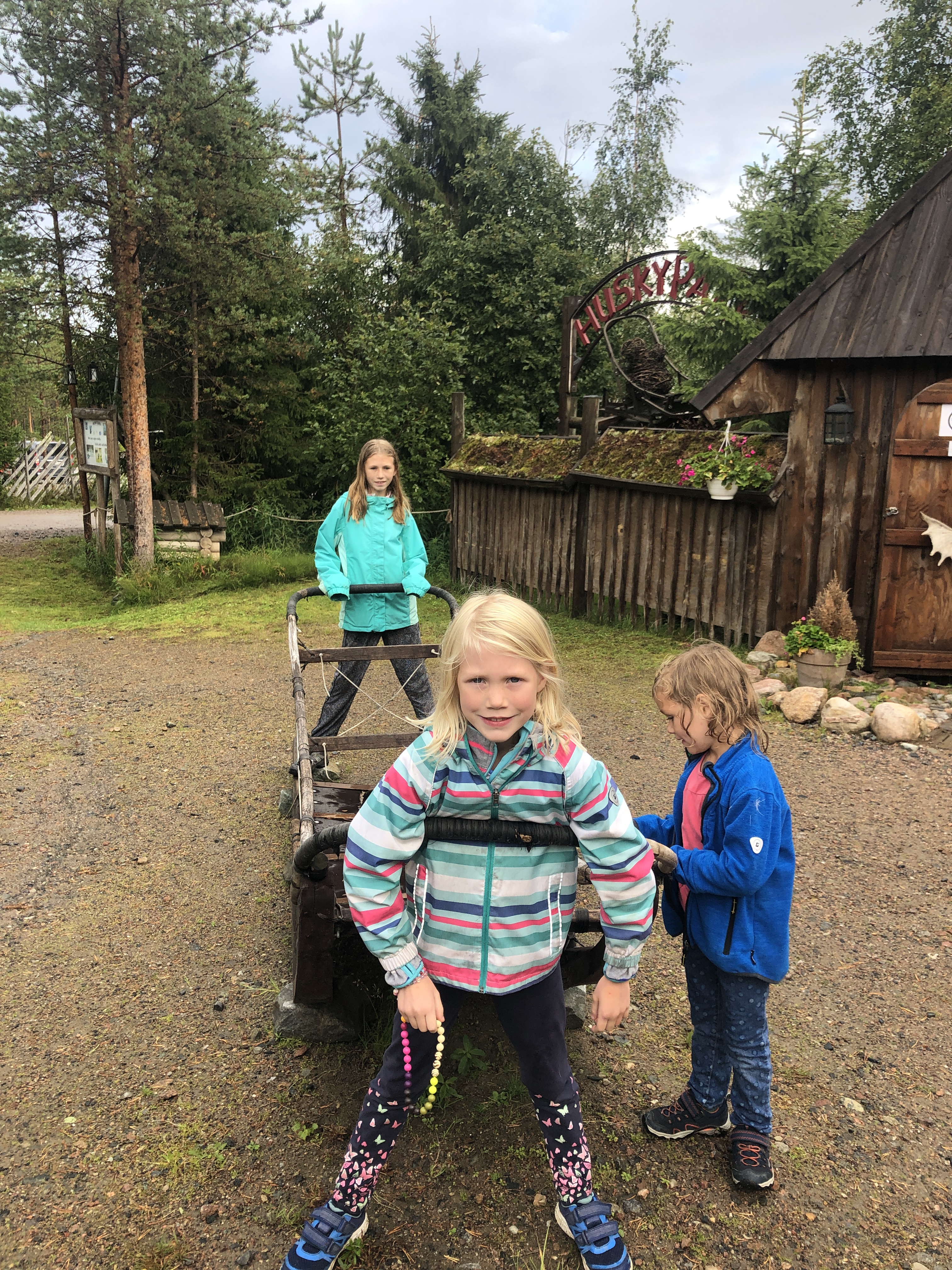 On Monday we took a field trip! 🙂 I really wanted to take the girls to the Ranua Zoo but it was about an hour away from our campground, so I wasn’t sure how we could swing it with the 3 hours of homeschooling we usually do. Then I saw that Hannah’s class was taking a field trip one day last week, and I thought, “yes! that’s what we’ll do”. The girls were very happy for both the day off traditional learning and the chance to visit the zoo. And I do believe they learned a lot! It was a beautiful zoo with only Arctic animals in very large enclosures. And a very cool playground. We all had fun!