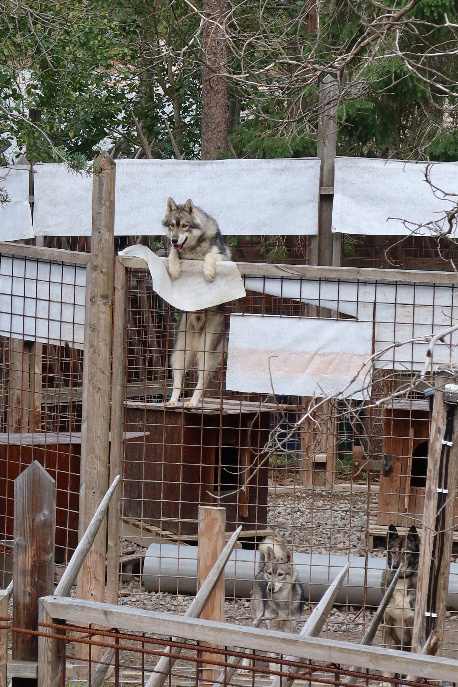At some point a couple of the dogs were moved from one kennel to the other and every single dog started barking and jumping around. They were all hoping for a chance to run! But once they saw what was actually happening, they calmed down. They do offer rides in the summer but it has to be below 15 degrees C and it was too warm the day we were there. We were happy just petting and visiting!