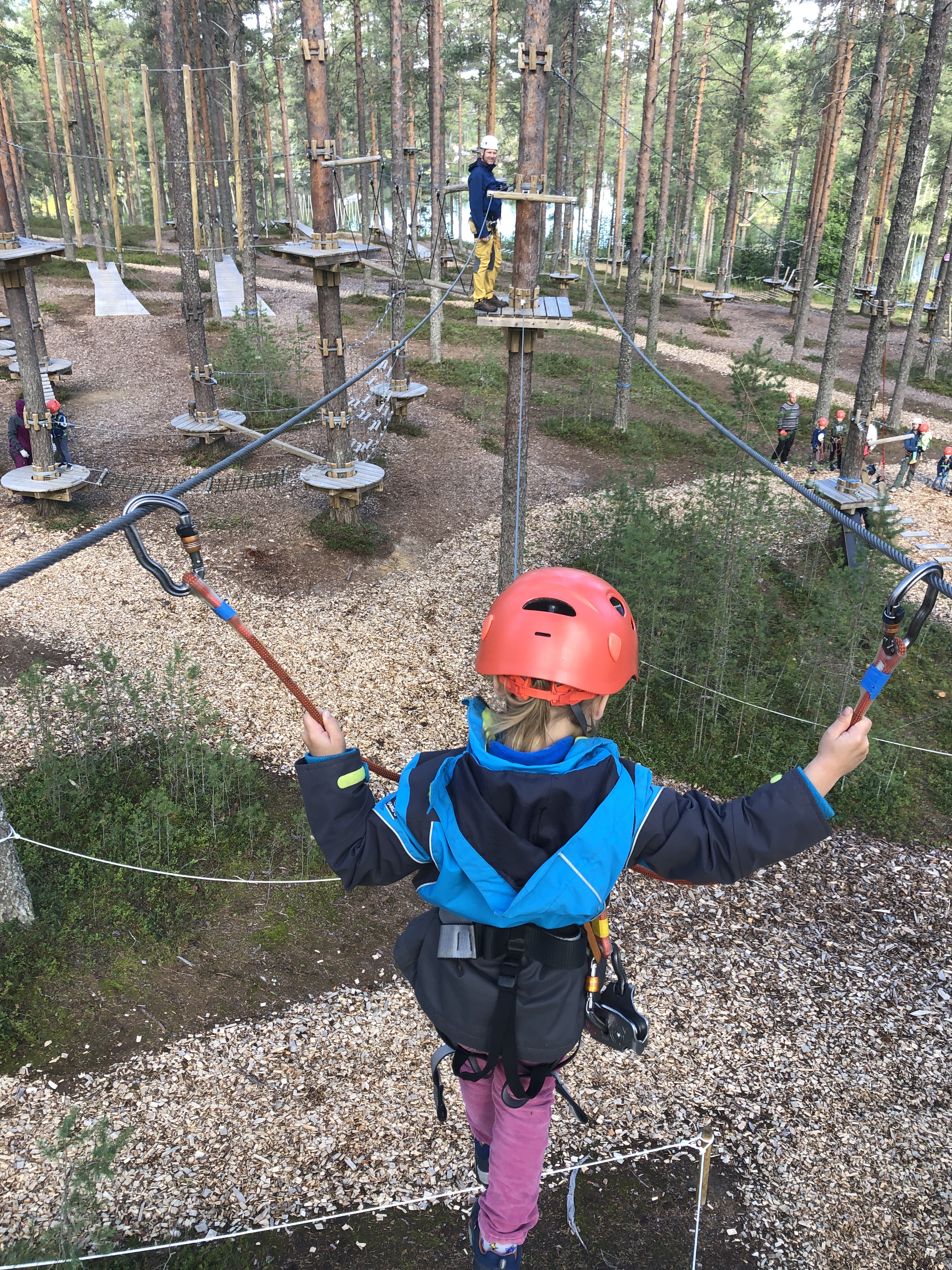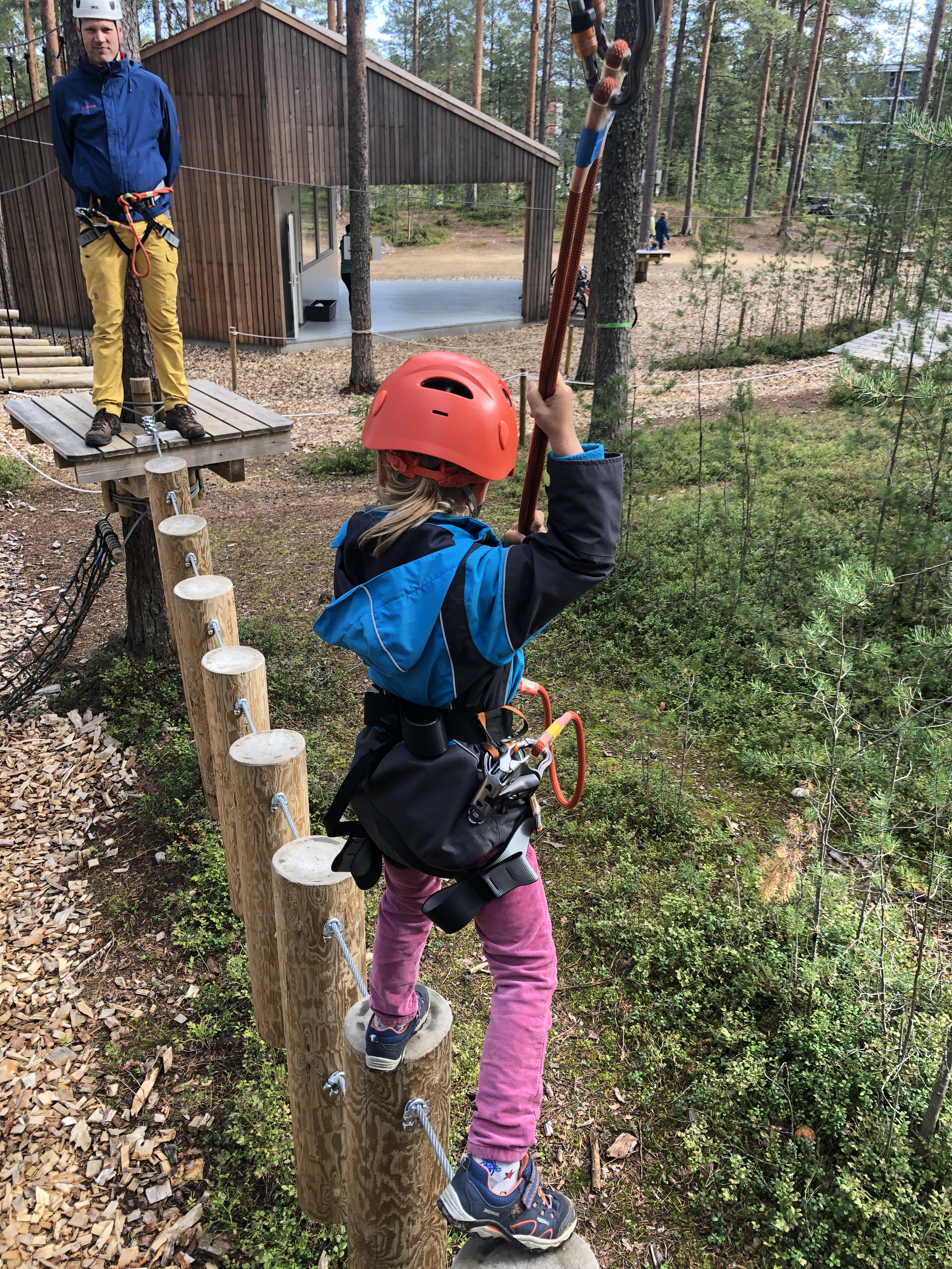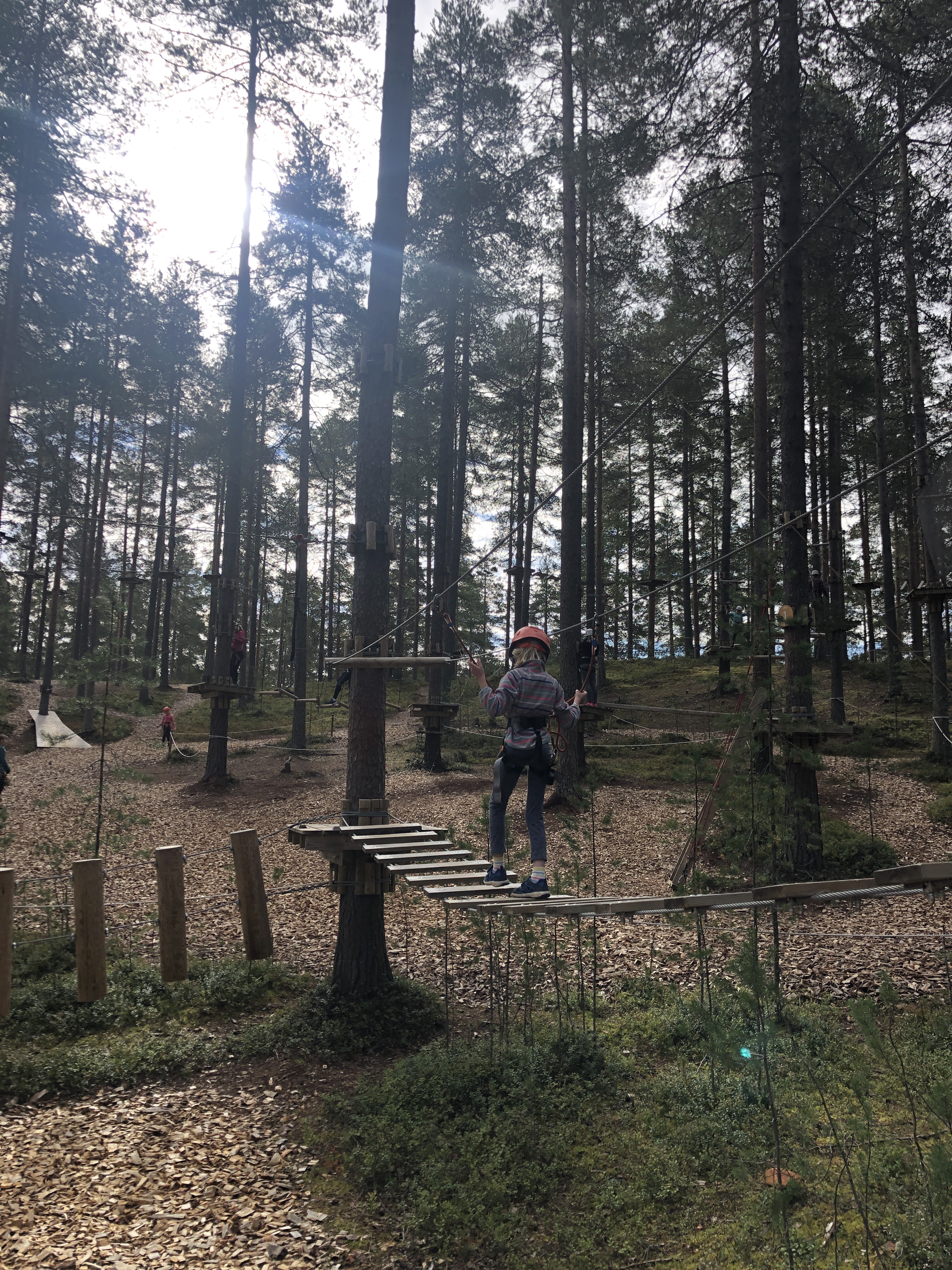 Then we headed to the surprise: a ropes course within walking distance from our campground. And it was a really good course! We had actually done one the week before (after only having been on one two years ago in Tahoe), so I was a bit worried it wouldn’t feel that special (but she had said she wanted to go again after last week). But this course here was longer and a bit harder (even for the smaller kids), so it was a really great day for everyone. Charlotte was so happy!
