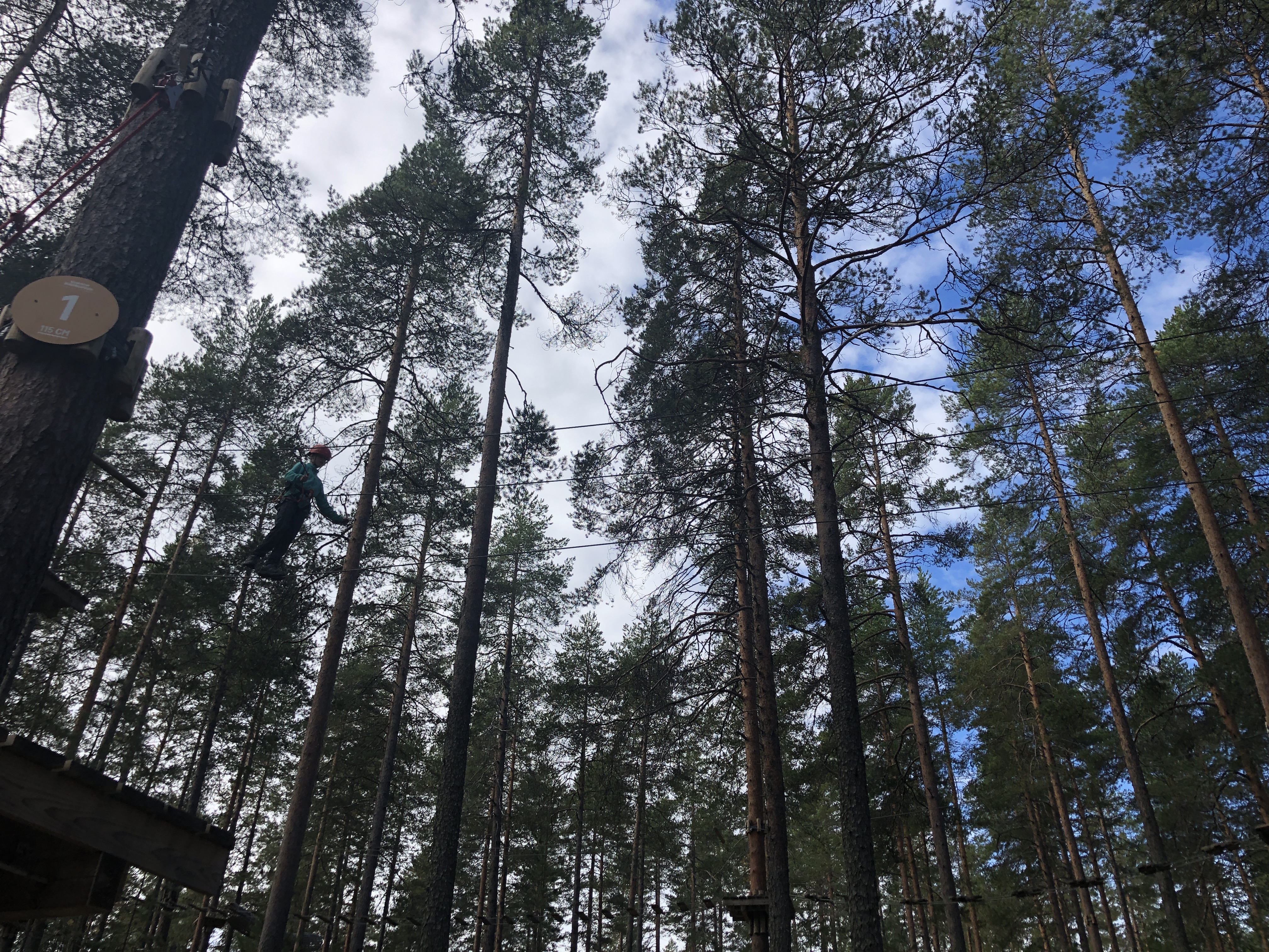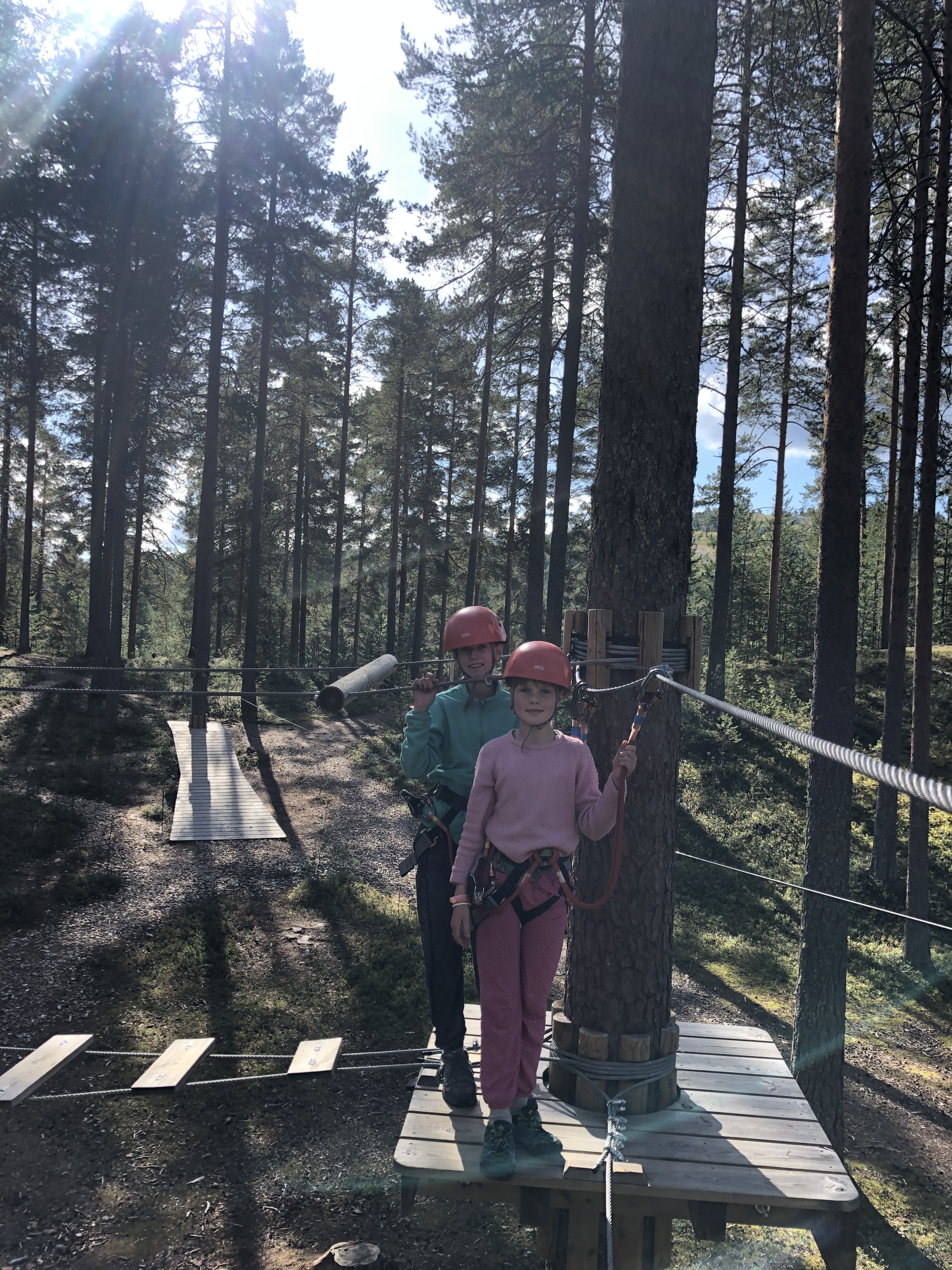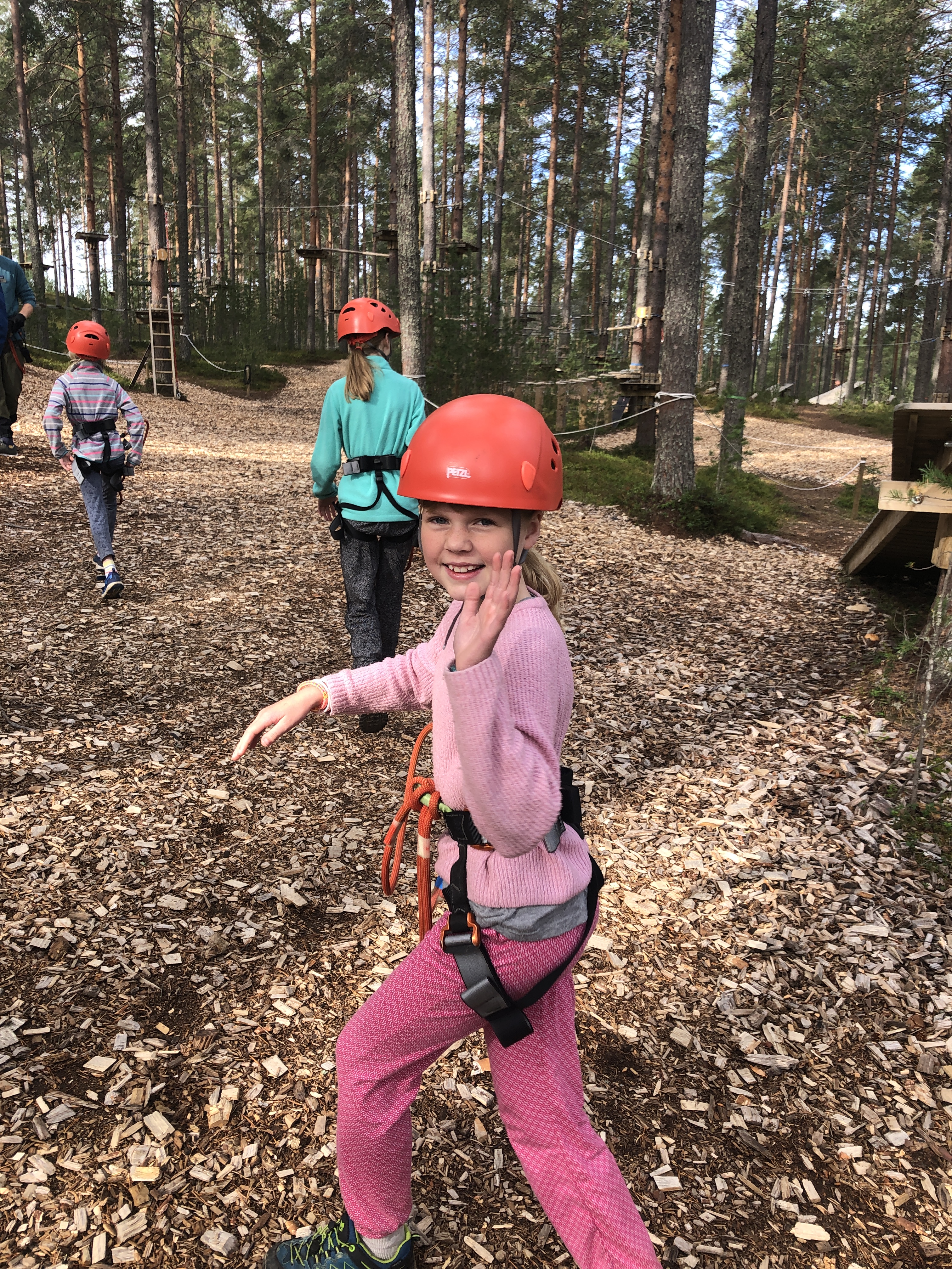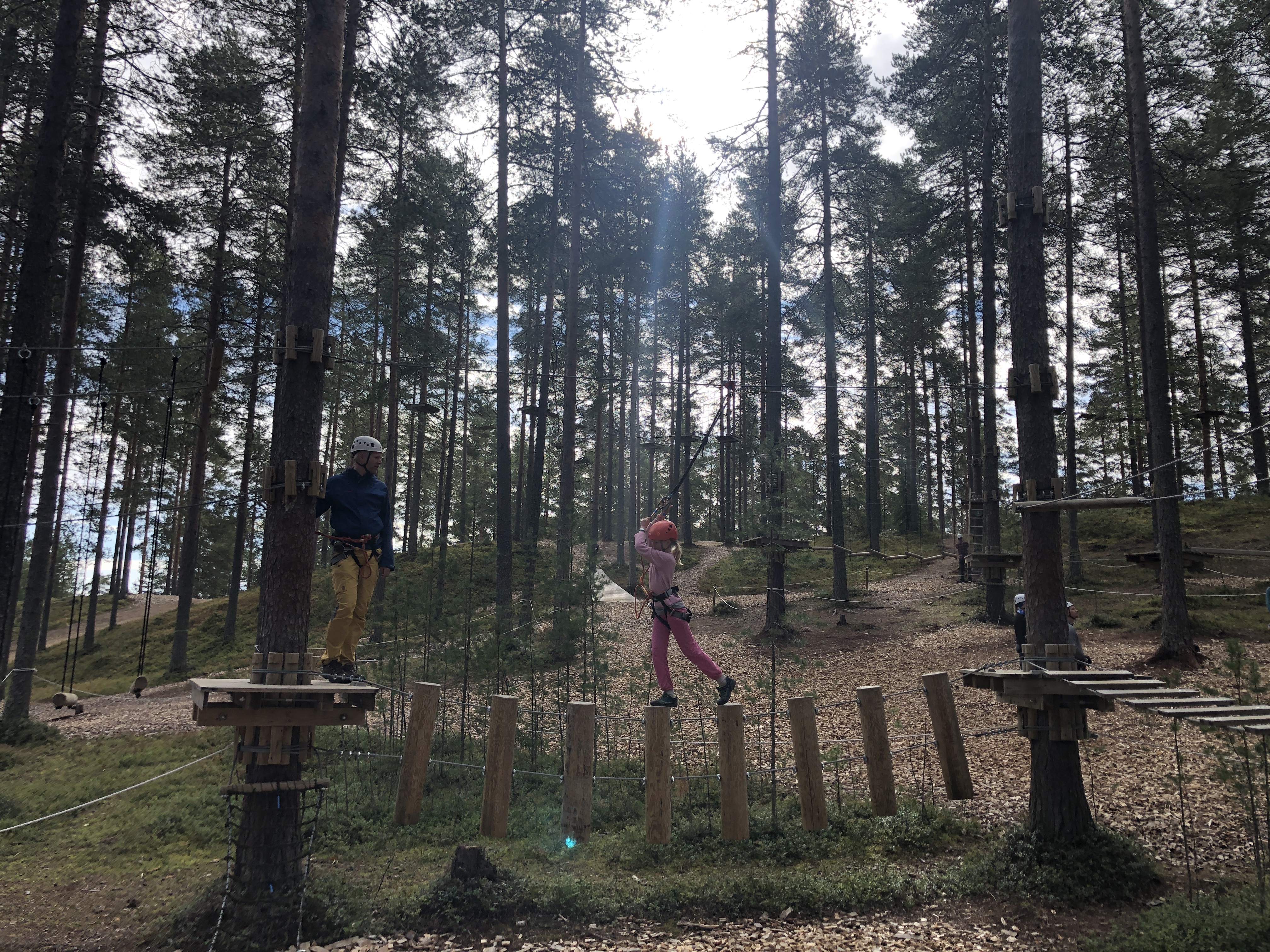 Then we headed to the surprise: a ropes course within walking distance from our campground. And it was a really good course! We had actually done one the week before (after only having been on one two years ago in Tahoe), so I was a bit worried it wouldn’t feel that special (but she had said she wanted to go again after last week). But this course here was longer and a bit harder (even for the smaller kids), so it was a really great day for everyone. Charlotte was so happy!