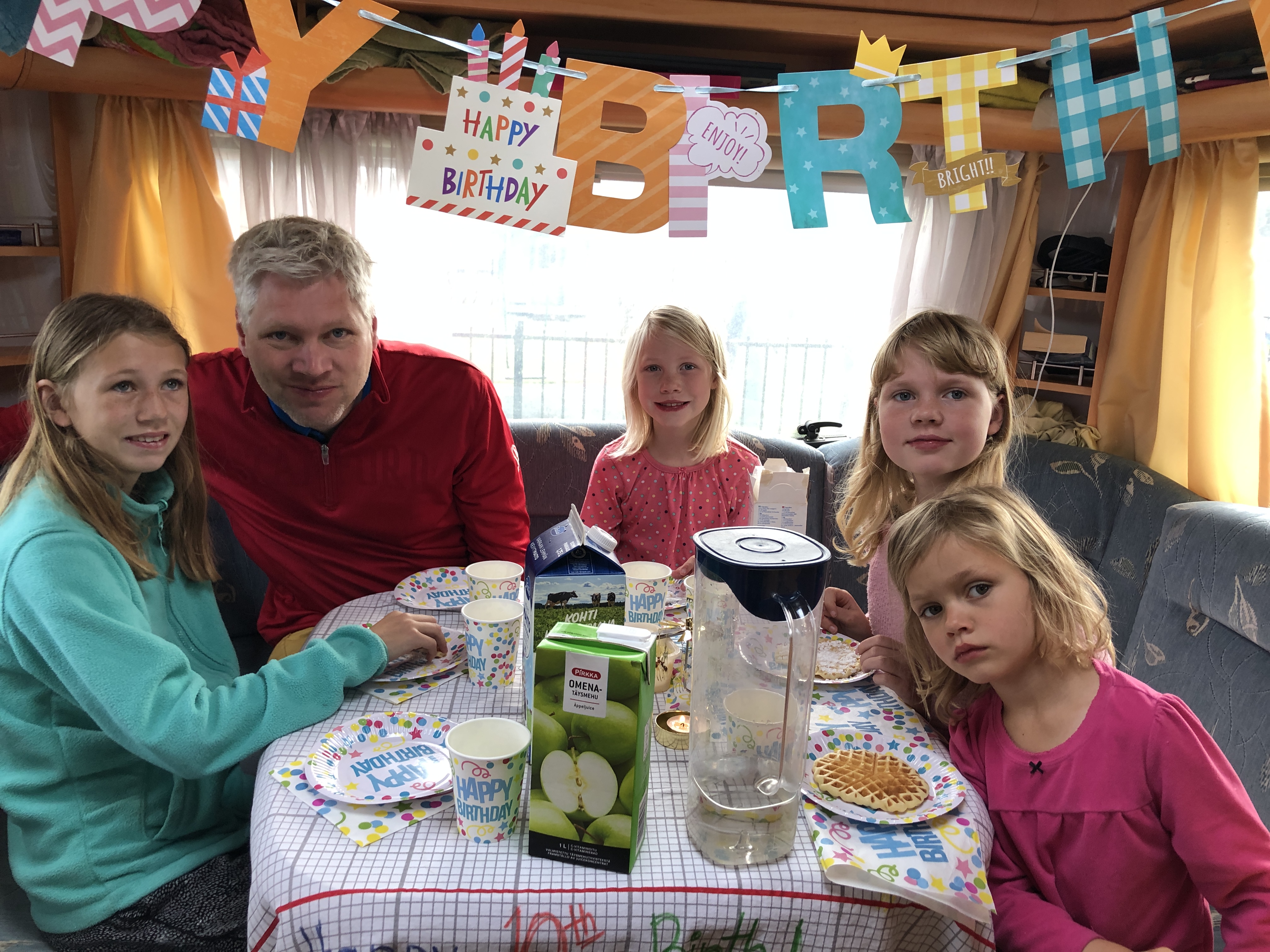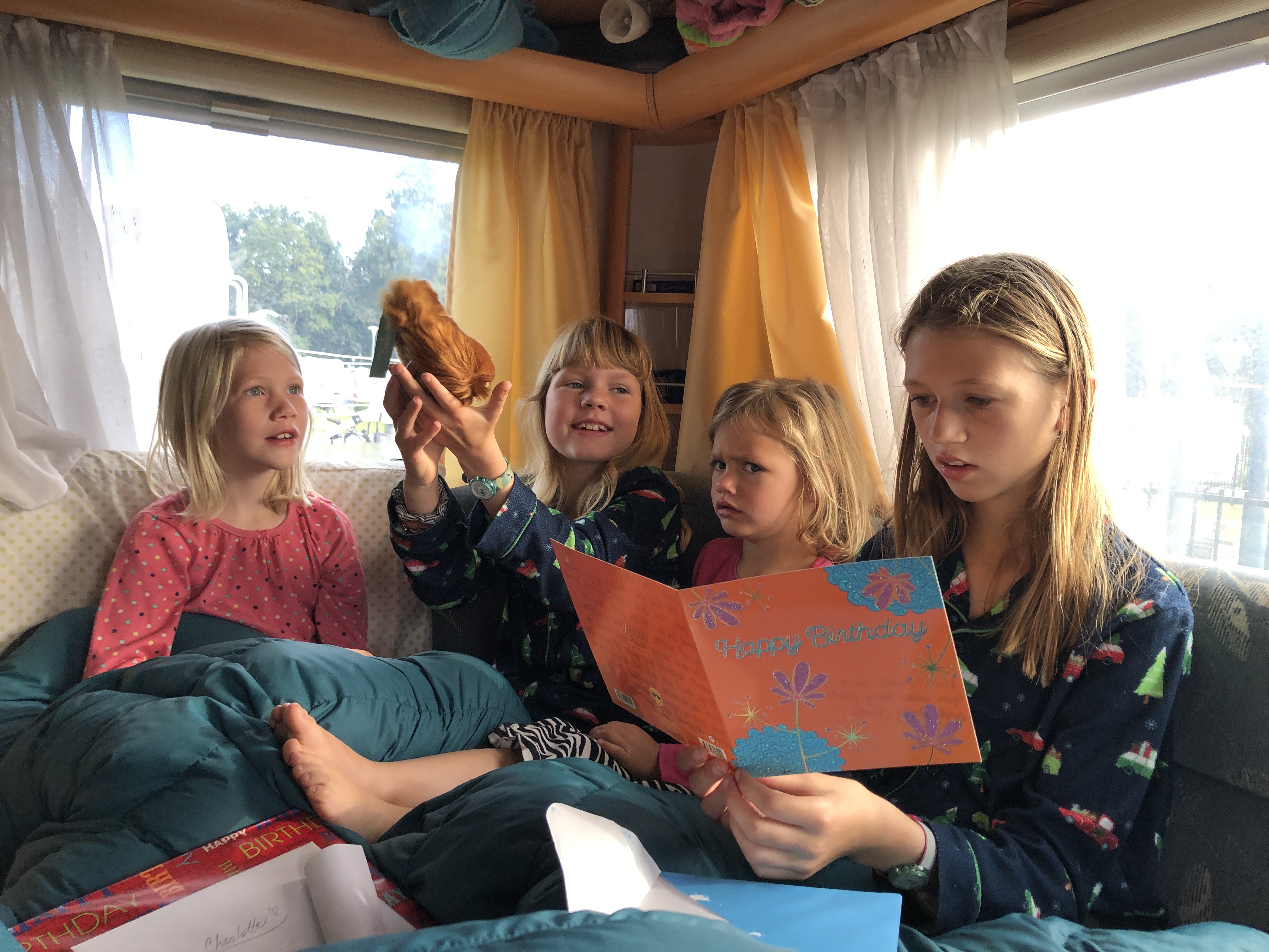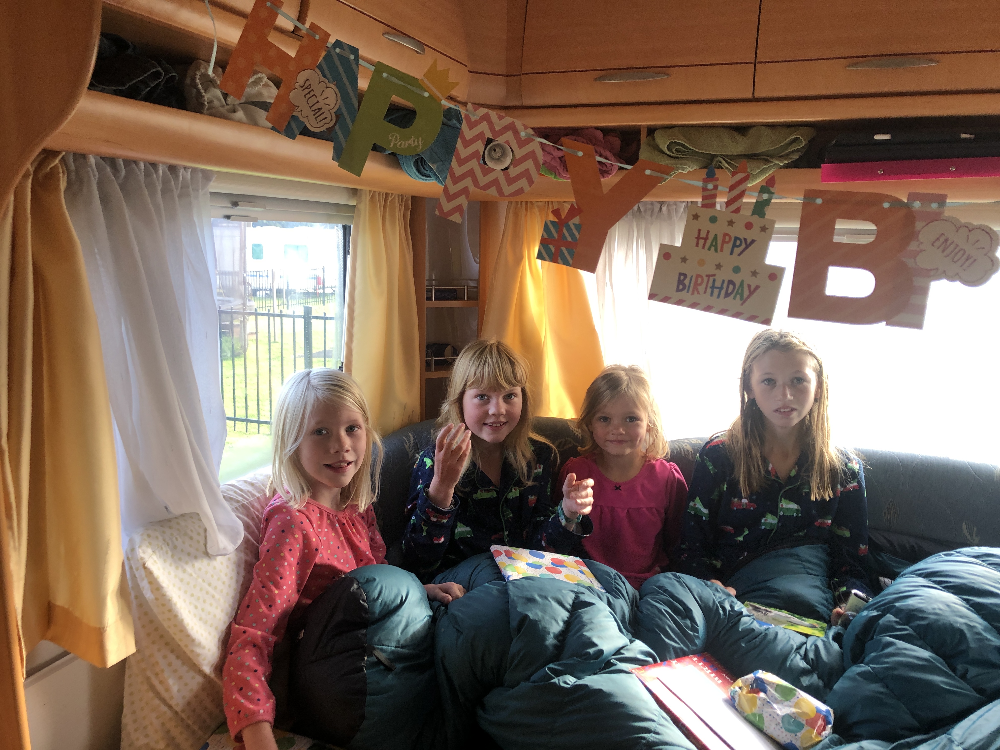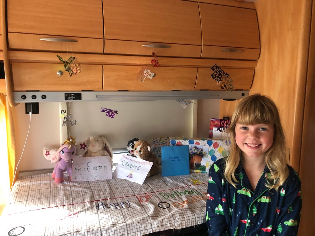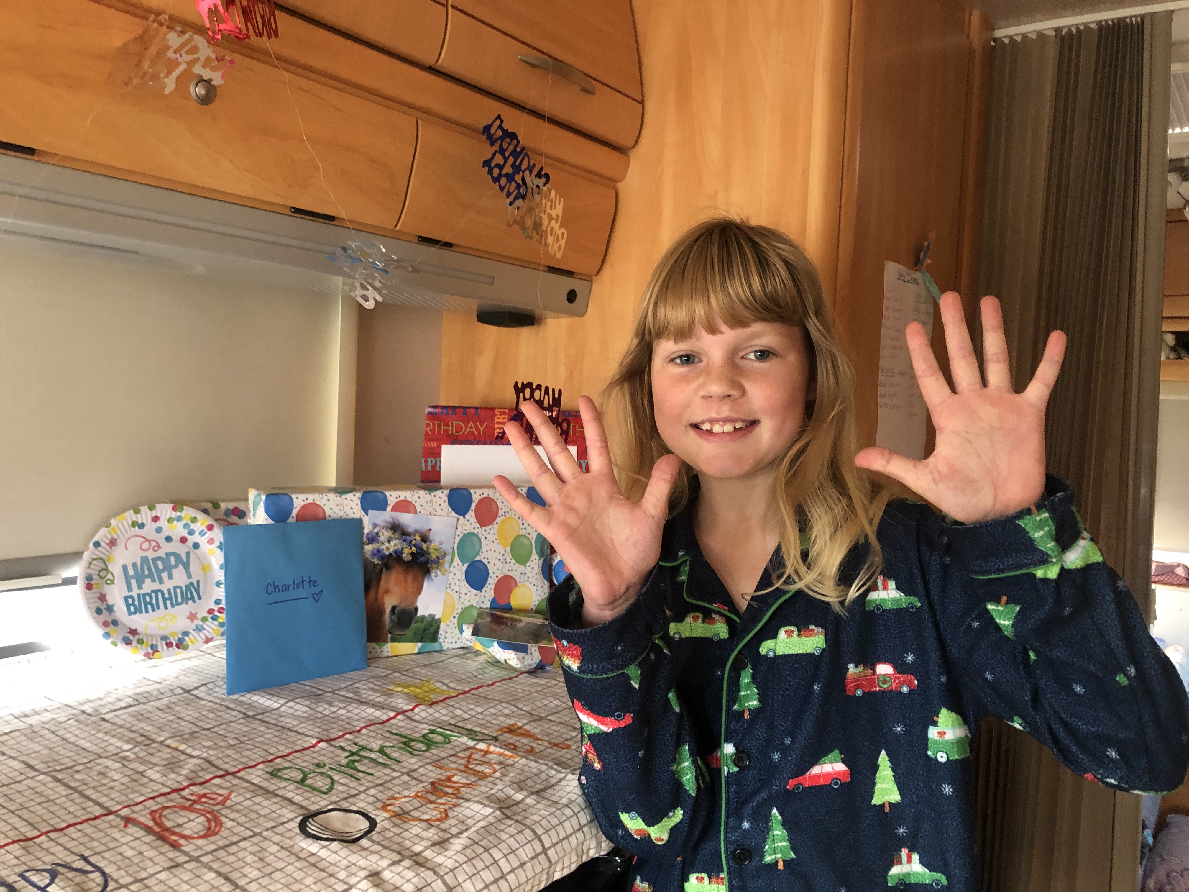 We then headed back to the camper for a donut cake and some rice krispie treats. The girls were so happy we were able to find rice krispies here! The marshmallows were a bit different (hence the pink color) but still very delicious. A great way to celebrate our favorite 10 year old! Her best friend called and got to “be there” for the singing and wishes.