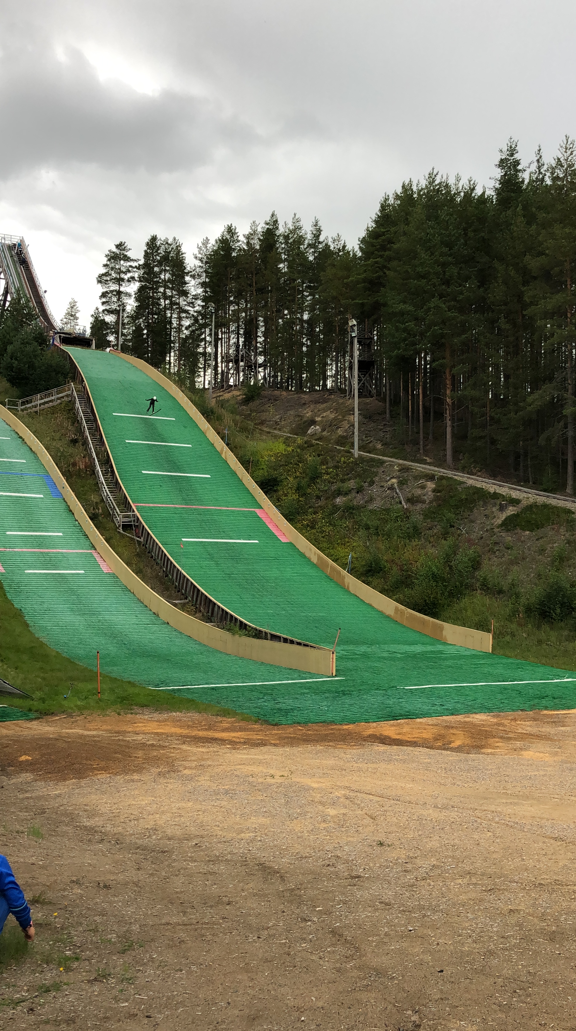 After hours of climbing, we were all starving so we headed out for pizza. Then, on the way home, we saw three ski jumps and out of the corner of our eye, saw that there were skiers there! We stopped and ended up chatting with a woman who was watching. She said they are teenage kids who were at a camp for the week. It was amazing to watch them!