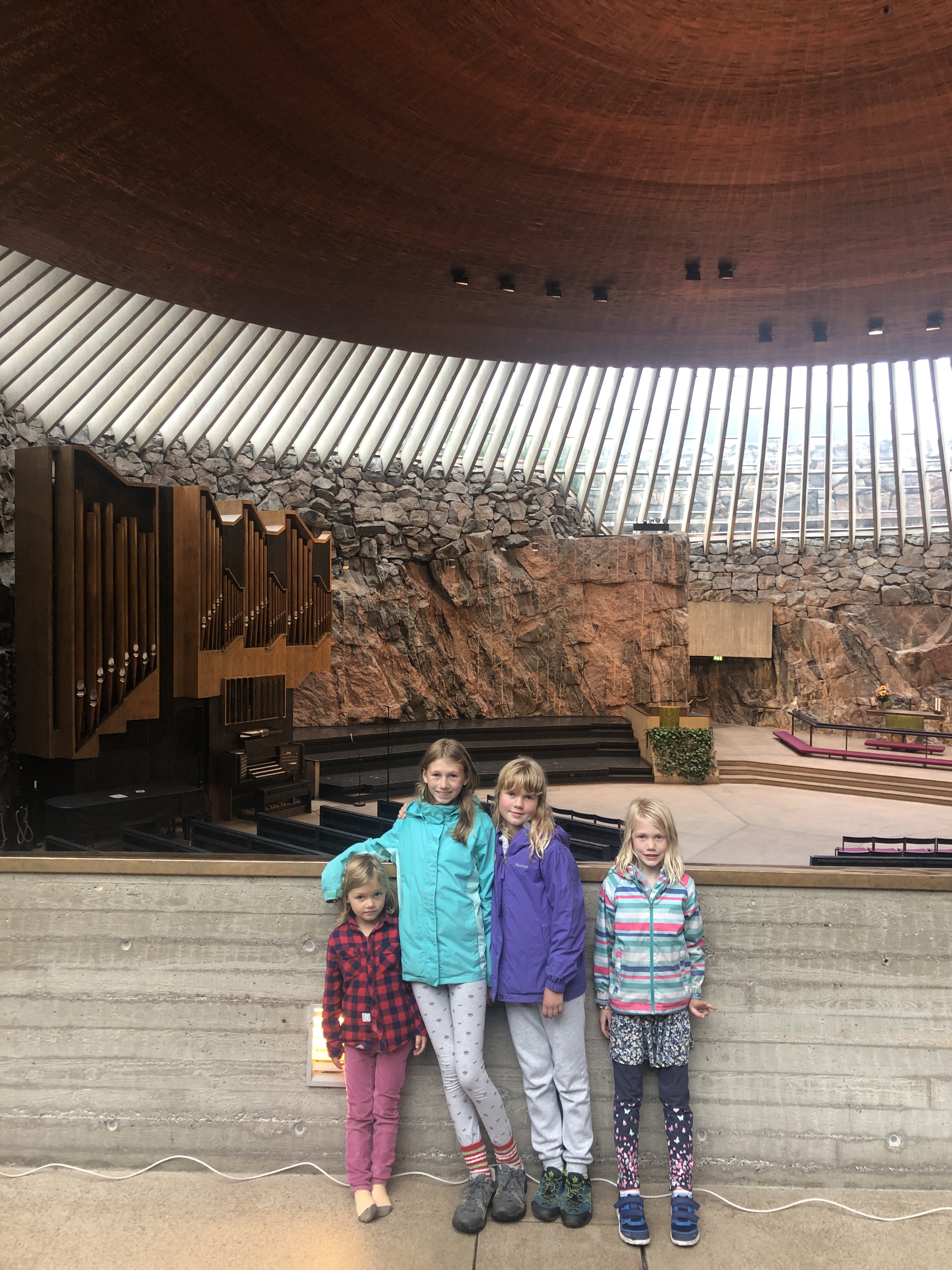 Then on Tuesday we went to the HAM Helsinki Art Museum where we saw a cool exhibition on author and artist Tove Jansson, the Temppeliauko Church (a church built right into the rocks), and then to central library Oodi where we spent hours reading. The girls were in heaven and had to be dragged out at dinner time!