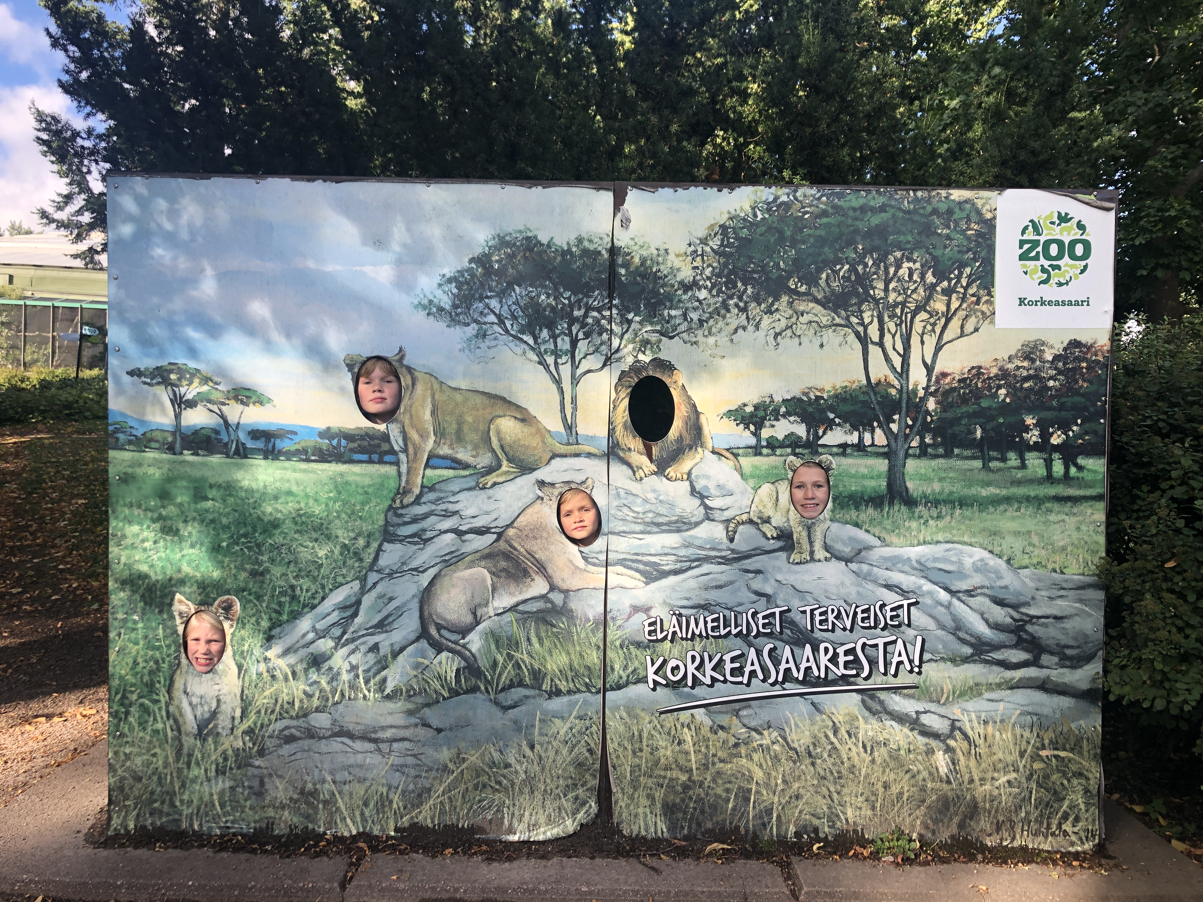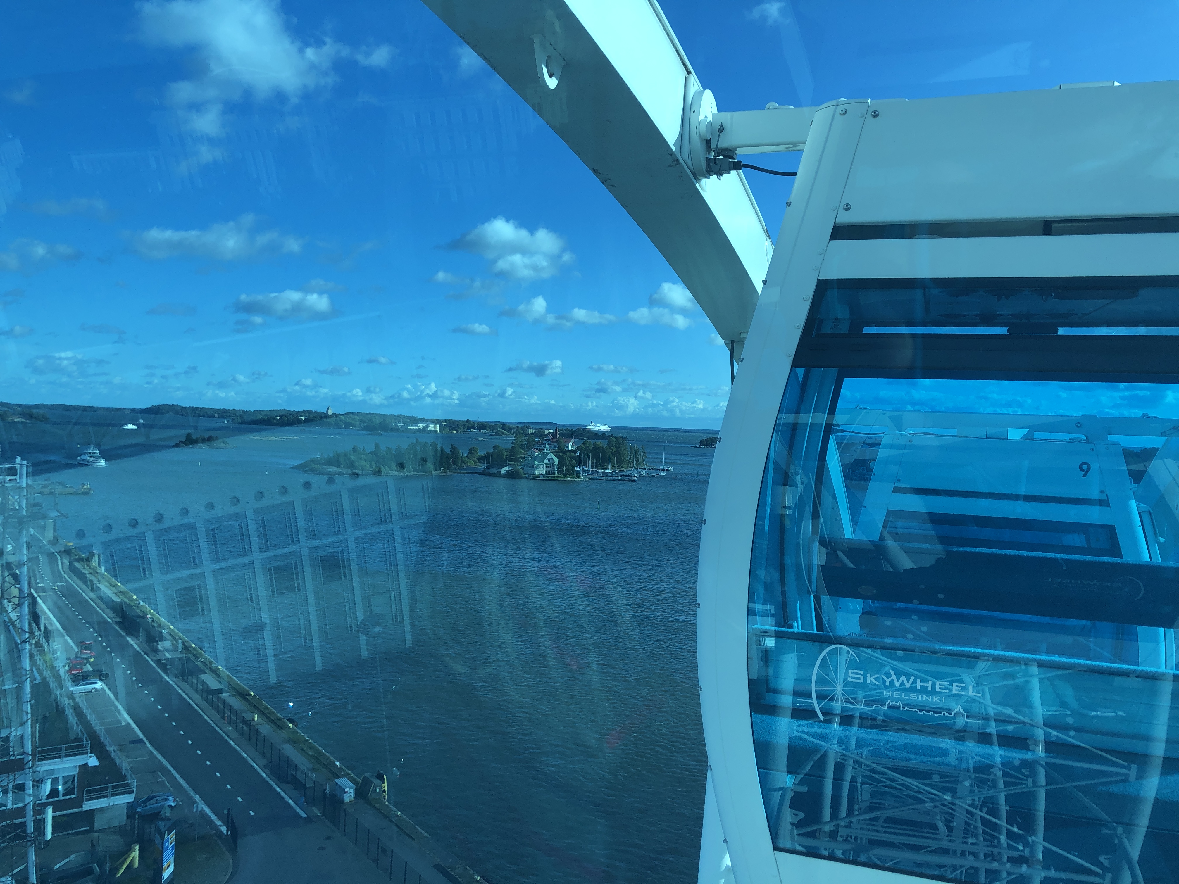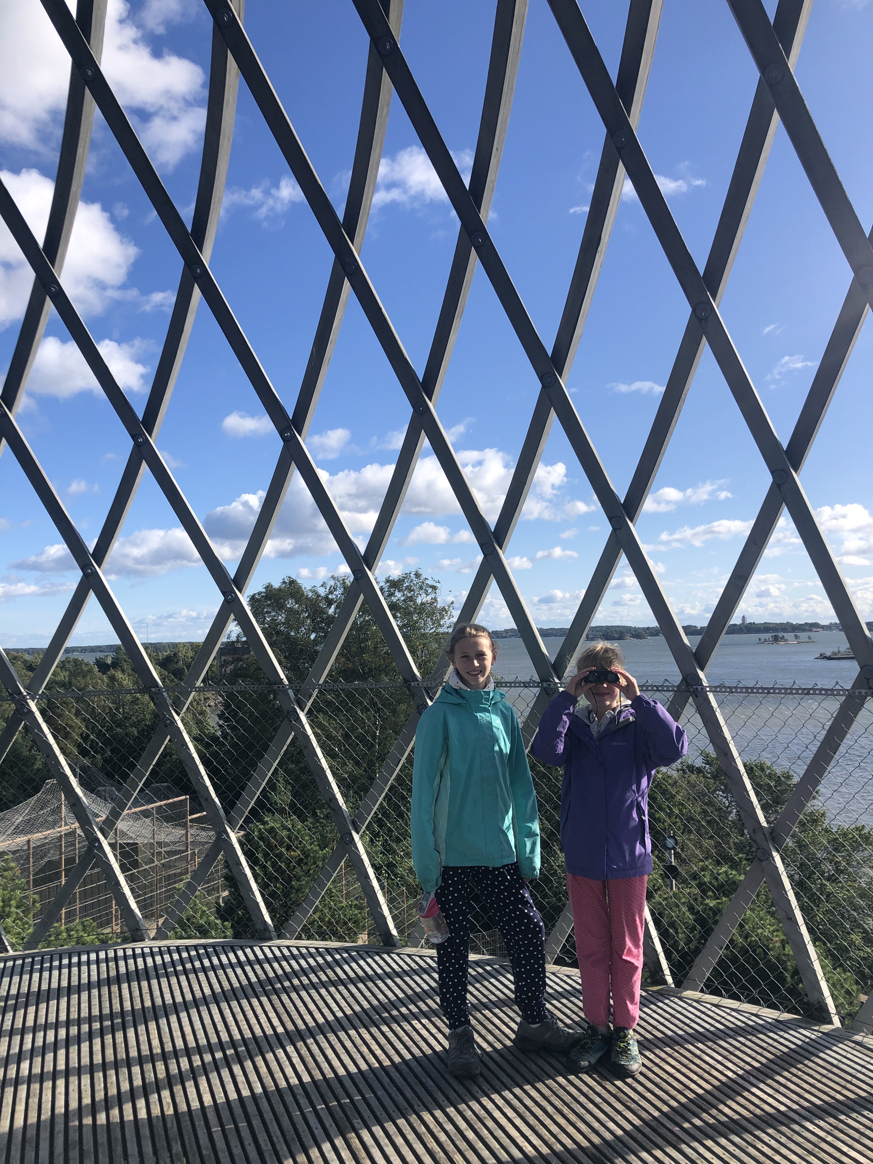 The next day was Thursday and we headed to the zoo, Korkeasaari Zoo. We took the subway and then the bus (public transportation is really easy to navigate here) to the entrance to the zoo. It is actually on an island, so we walked over the bridge and then started walked around the entire island, seeing all the animals. This zoo is well known for its big cats but also has a lot animals native to Finland, which is a great way for the girls to learn more about where we are. After several hours at the zoo, we hopped on a ferry to downtown, where the girls convinced me to take them on the giant ferris wheel, Sky Wheel Helsinki. It was quite windy all day (which gives me a lot of anxiety), but it didn’t look like the little cars where swaying too much so I agreed. Big mistake! The cars were pretty steady but the noise of the wind was frightening. Well, for me. 🙂 The girls got a pretty good laugh out of my fear! We ended the day with another walk through the city, this time passing Helsinki City Hall which looked beautiful for Pride Week.