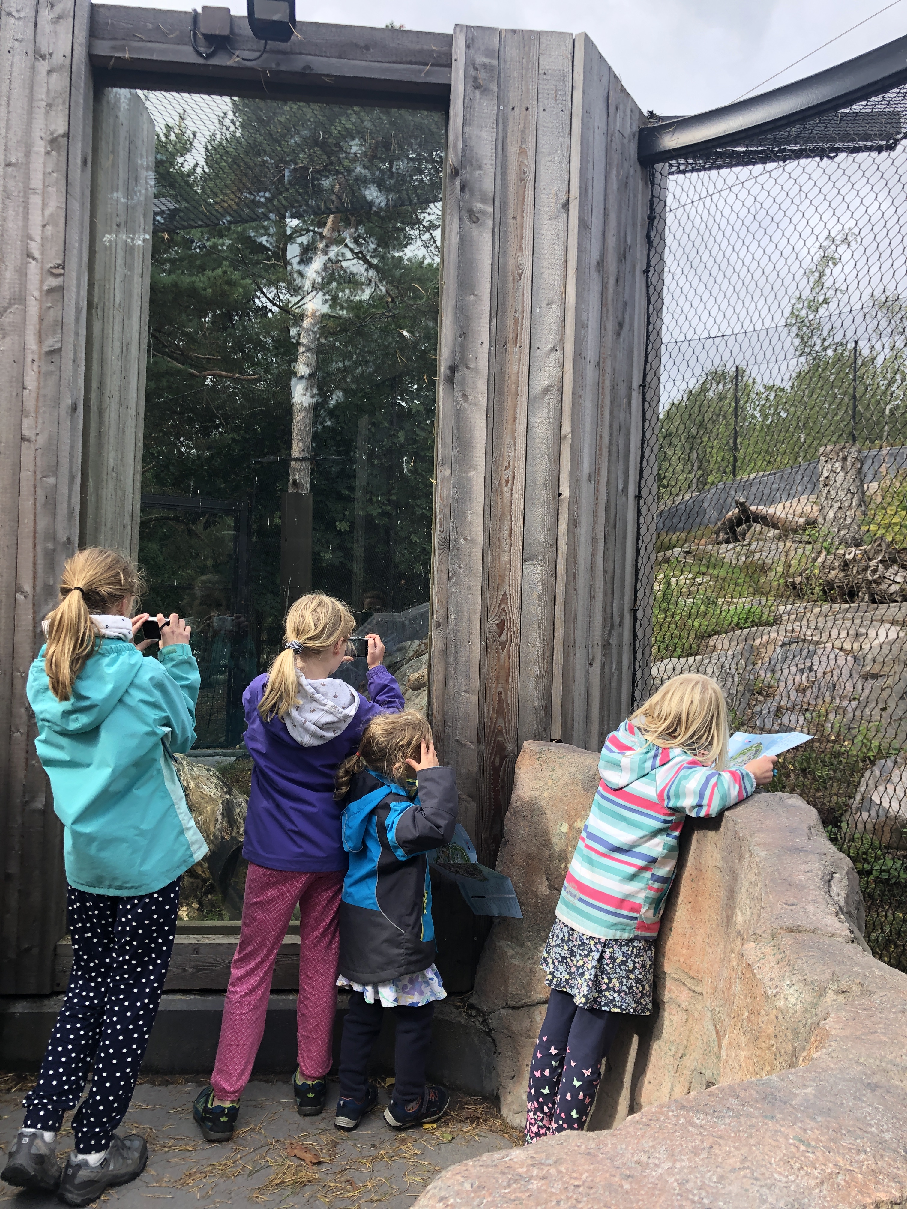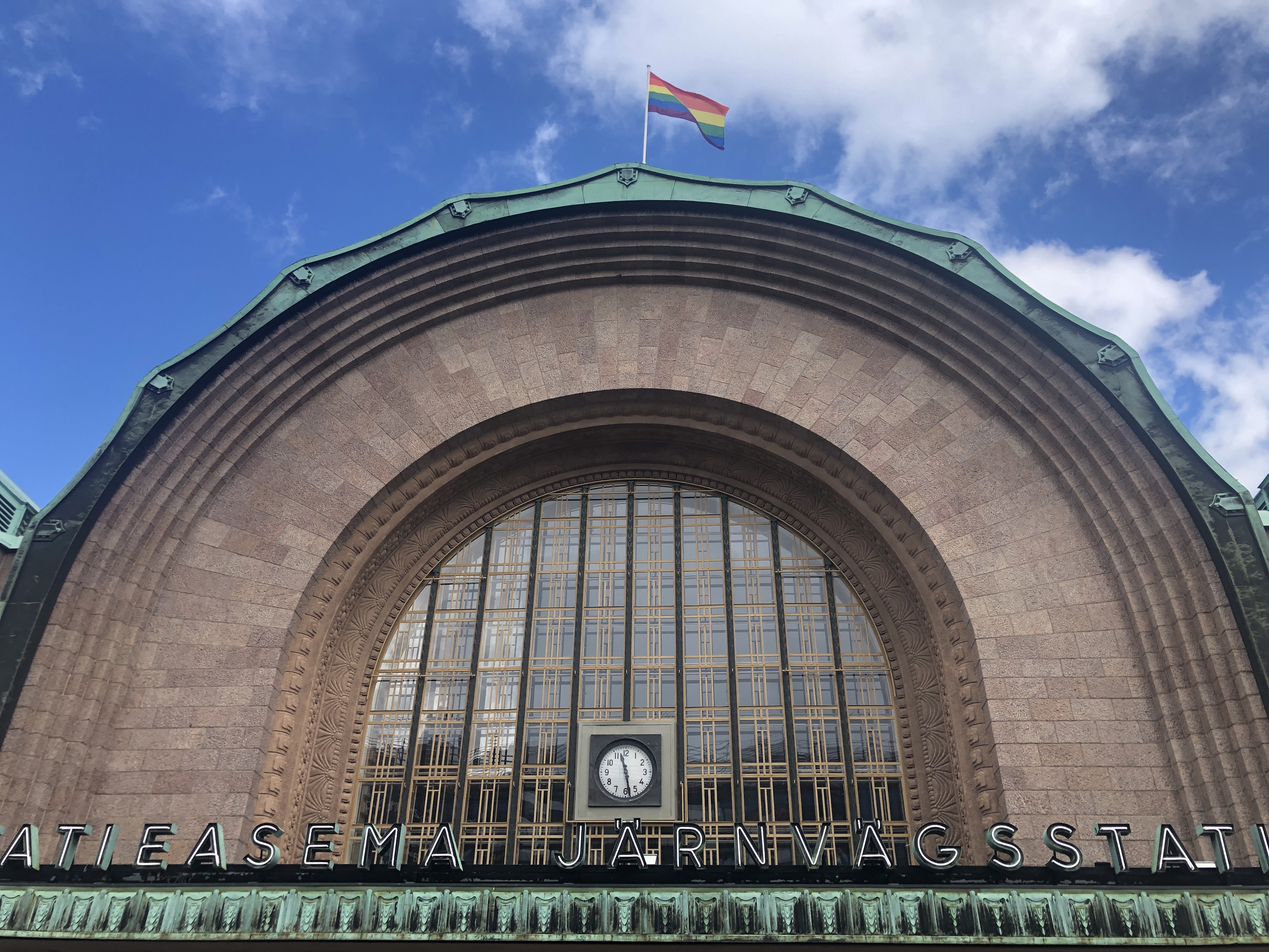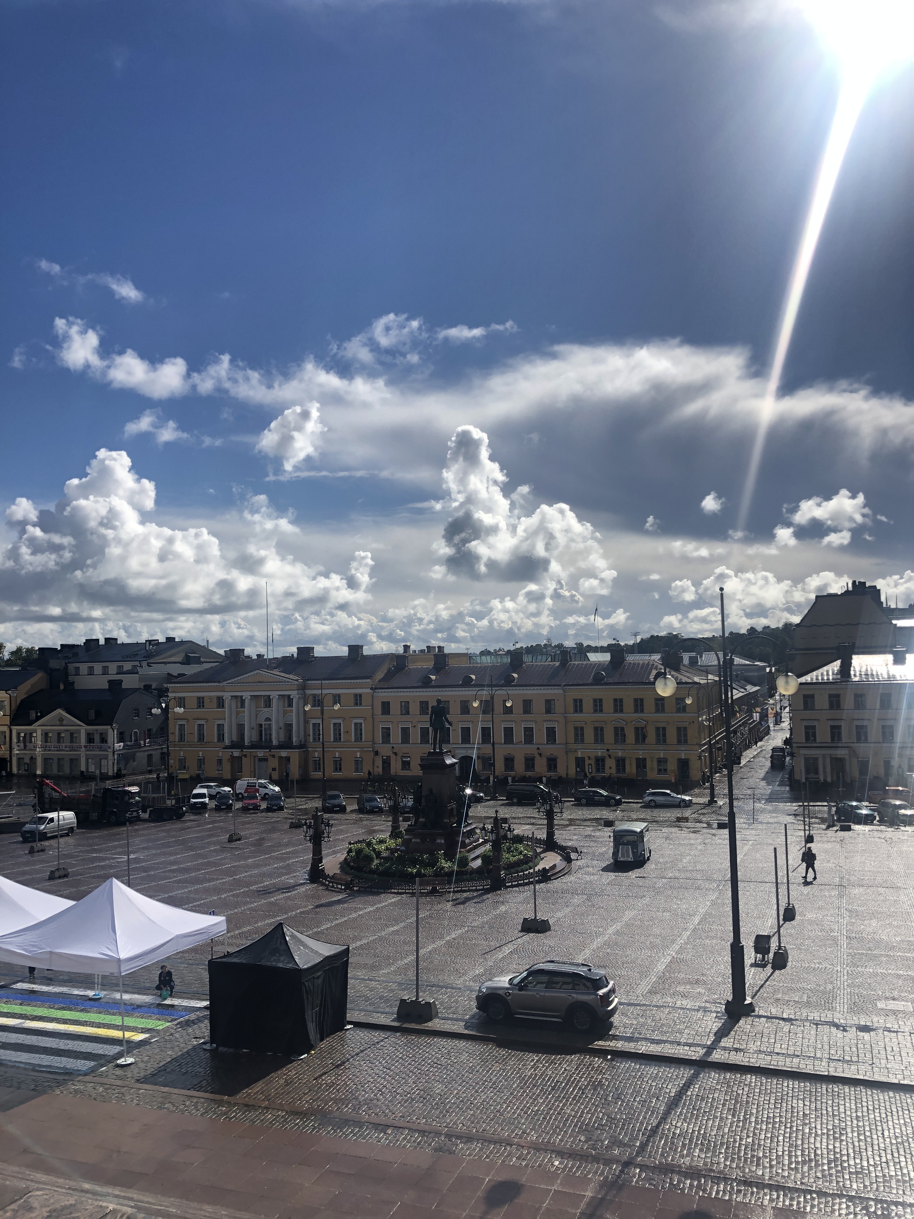 The next day was Thursday and we headed to the zoo, Korkeasaari Zoo. We took the subway and then the bus (public transportation is really easy to navigate here) to the entrance to the zoo. It is actually on an island, so we walked over the bridge and then started walked around the entire island, seeing all the animals. This zoo is well known for its big cats but also has a lot animals native to Finland, which is a great way for the girls to learn more about where we are. After several hours at the zoo, we hopped on a ferry to downtown, where the girls convinced me to take them on the giant ferris wheel, Sky Wheel Helsinki. It was quite windy all day (which gives me a lot of anxiety), but it didn’t look like the little cars where swaying too much so I agreed. Big mistake! The cars were pretty steady but the noise of the wind was frightening. Well, for me. 🙂 The girls got a pretty good laugh out of my fear! We ended the day with another walk through the city, this time passing Helsinki City Hall which looked beautiful for Pride Week.