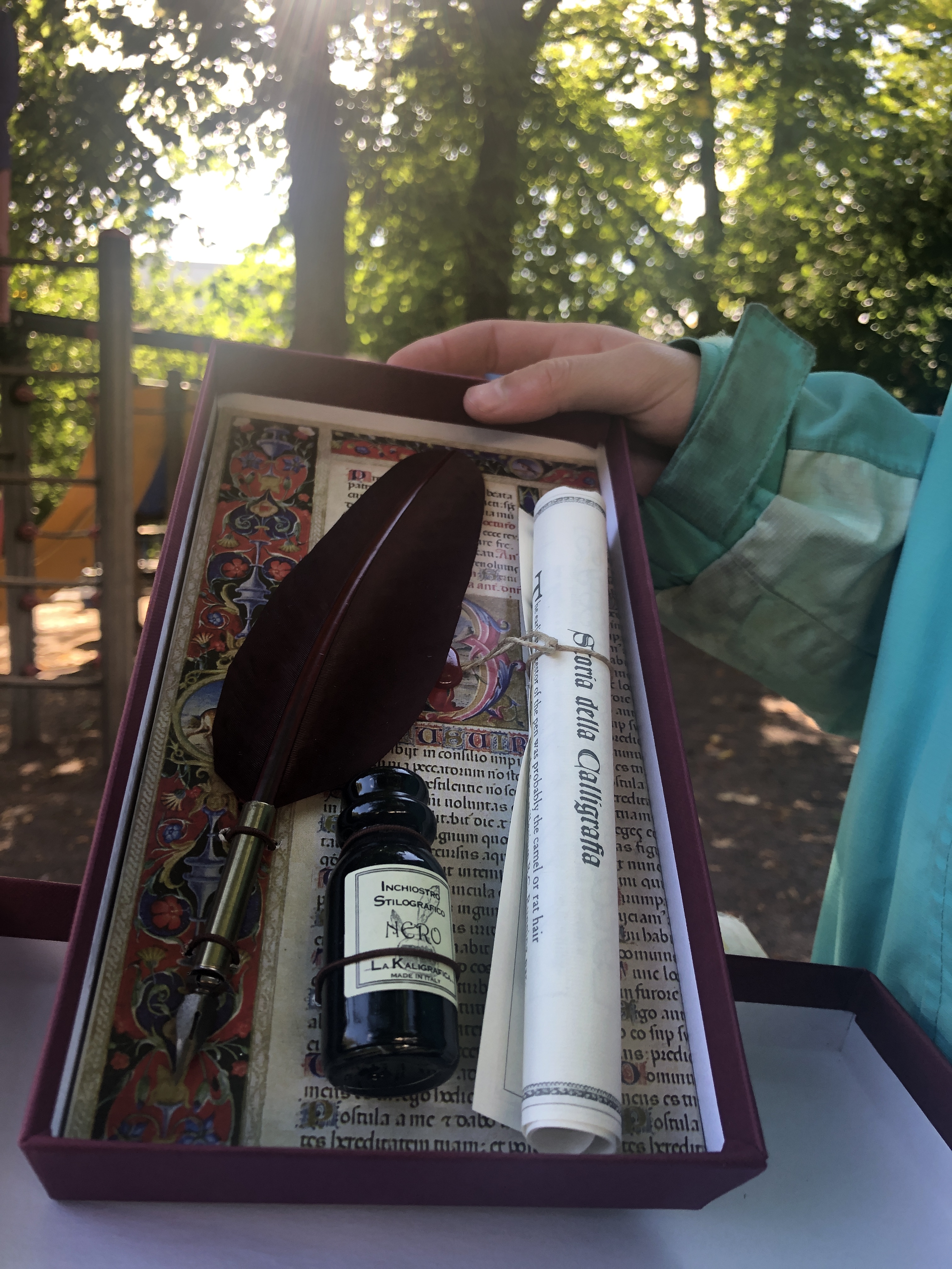 On Monday, our first stop was the Academic Bookstore which a friend recommended. The girls were very excited to find some new English and German books. We browsed the books, picked up a few treats (including these gorgeous quills) and then headed out into the pouring rain! The rain in this city is crazy. It pours so hard for about 10 minutes, which is especially loud on the roof of our camper, then stops for a bit before repeating there cycle. So between downpours, we made our way to a few sights, the Helsinki Cathedral (white dome), the Uspenski Cathedral (red brick building), the market square, the Presidential Palace and a historic food hall. We arrived back at the campground wet, full and happy!
