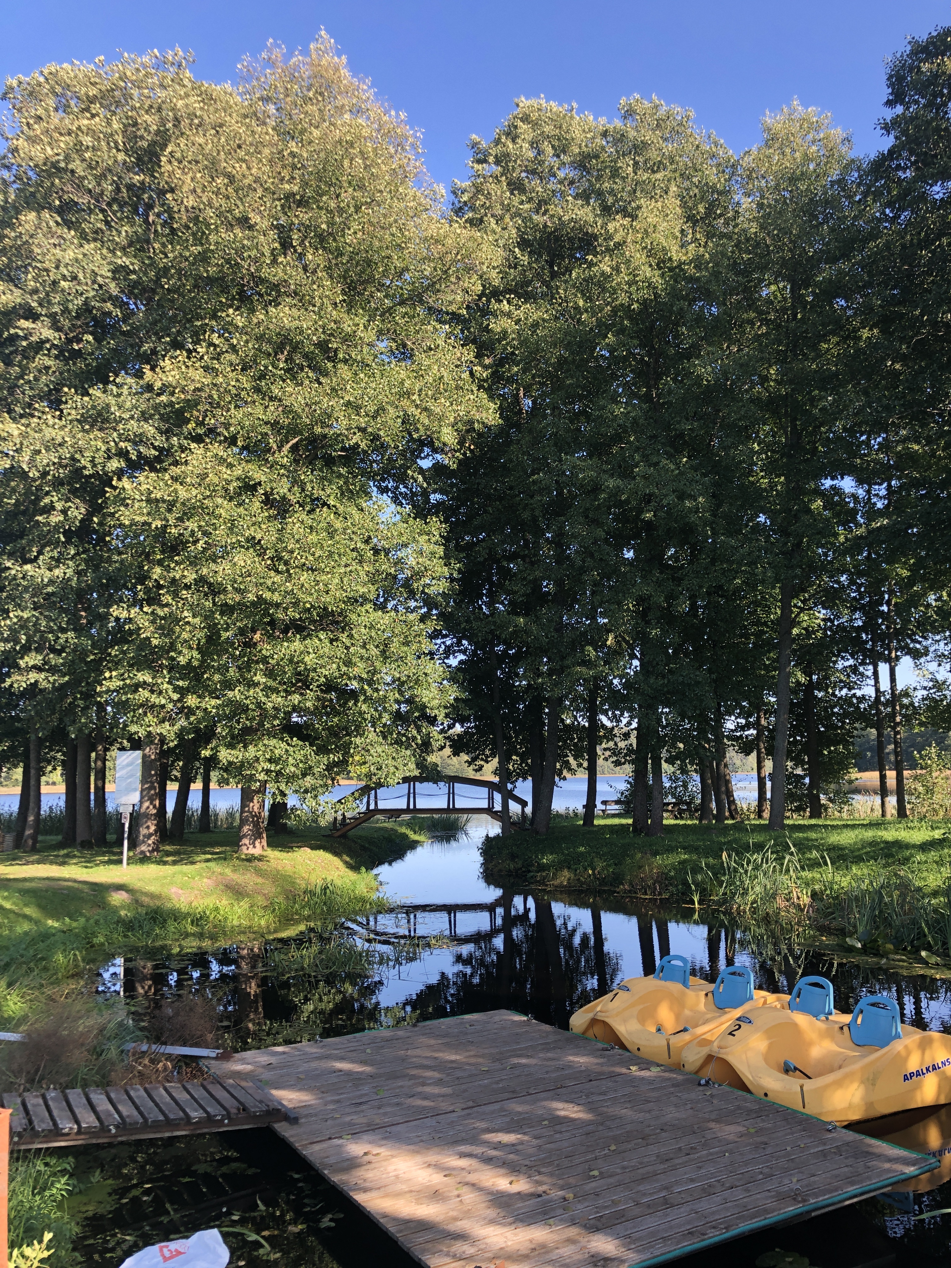 We arrived in Latvia on Sunday afternoon, and fell in love with this beautiful campground, Kemping Apalkalns. It’s spacious, well-maintained and right on a lovely lake. The weather has been perfect and we have been enjoying slowing down a bit this week.