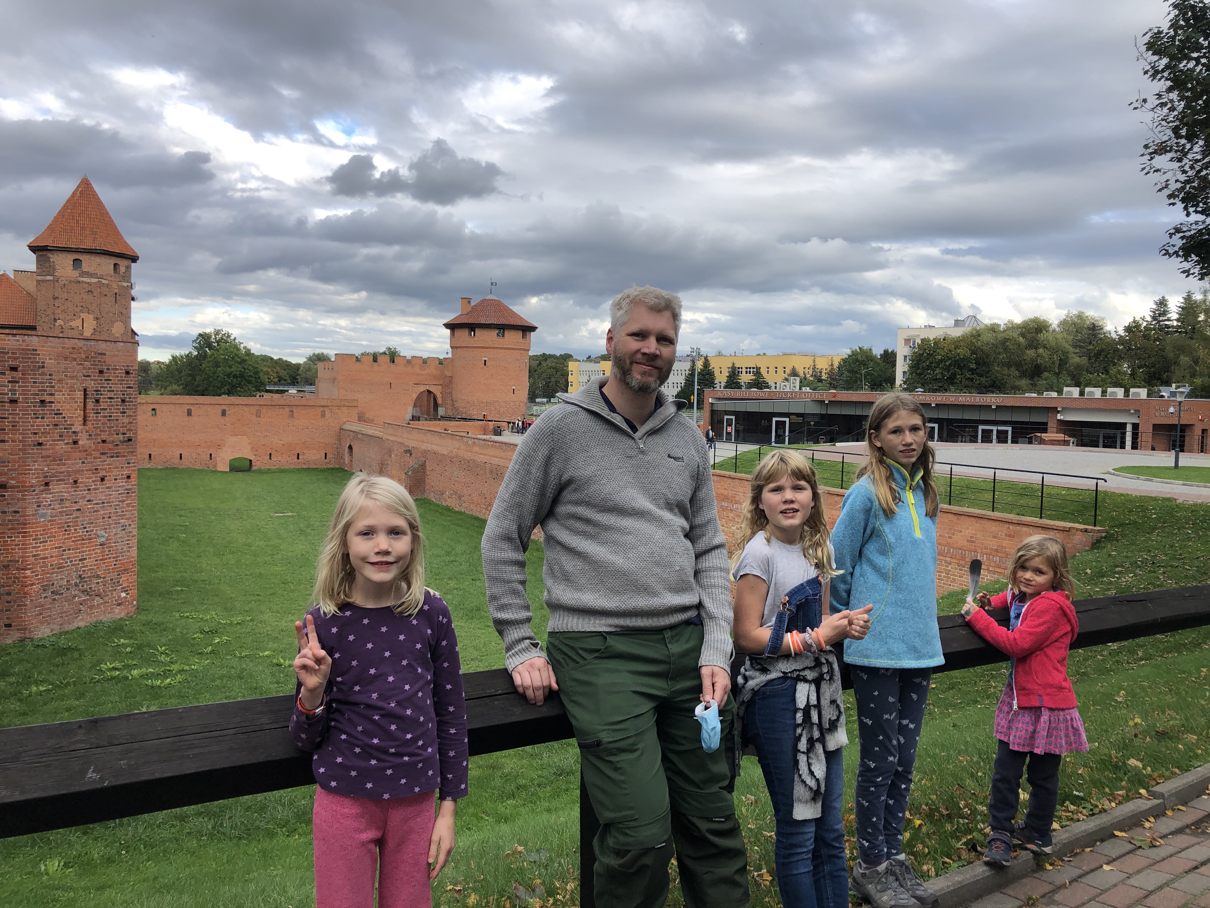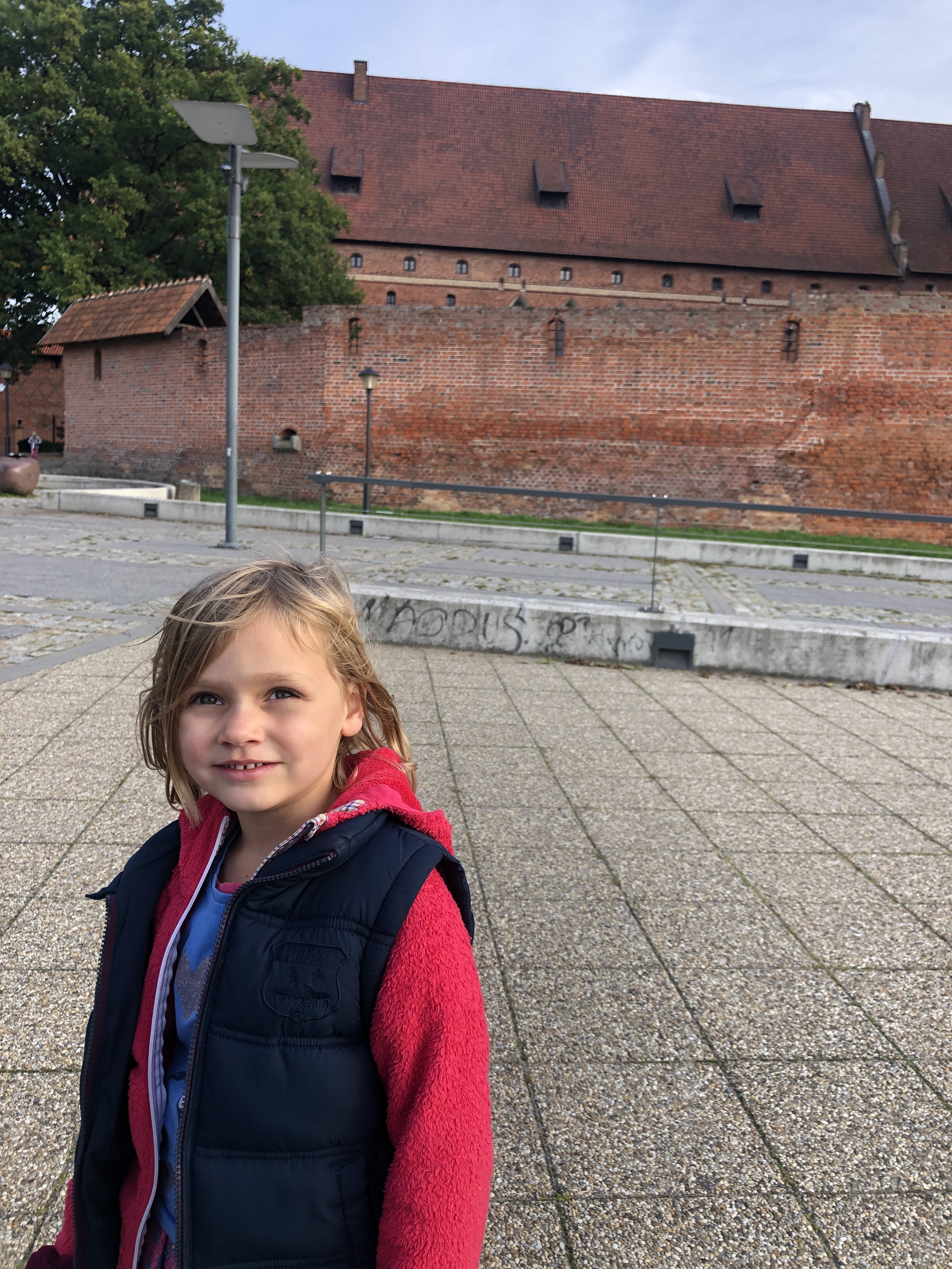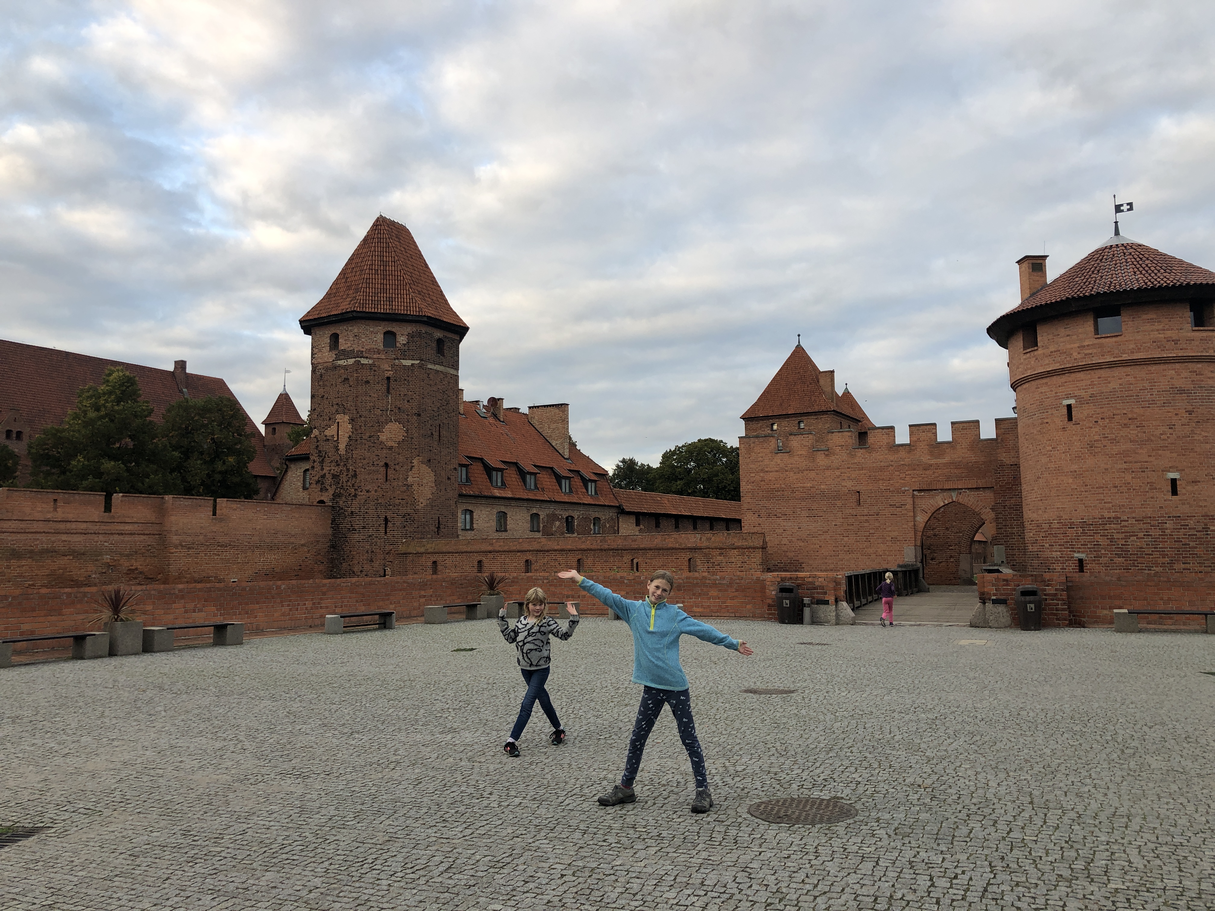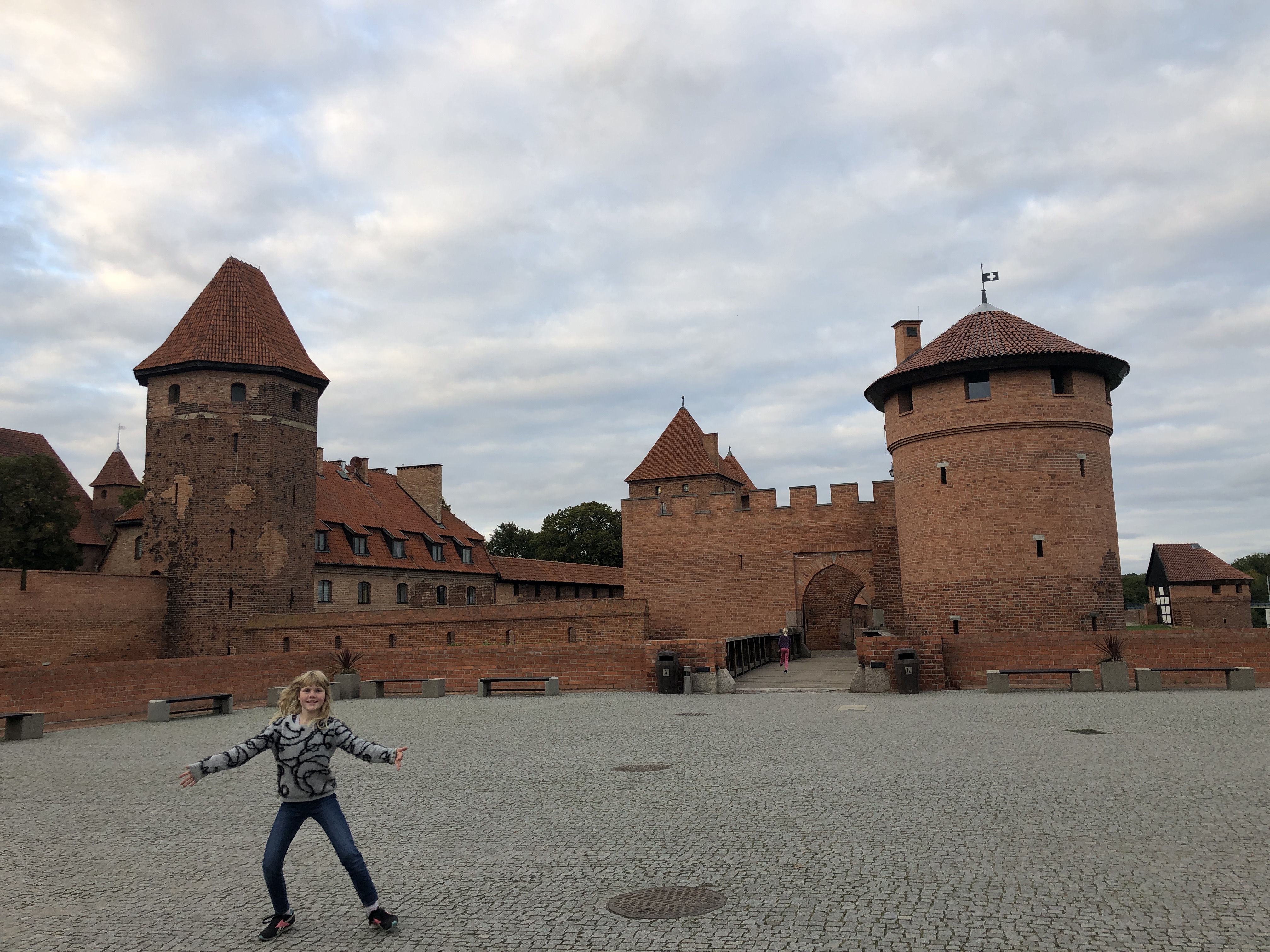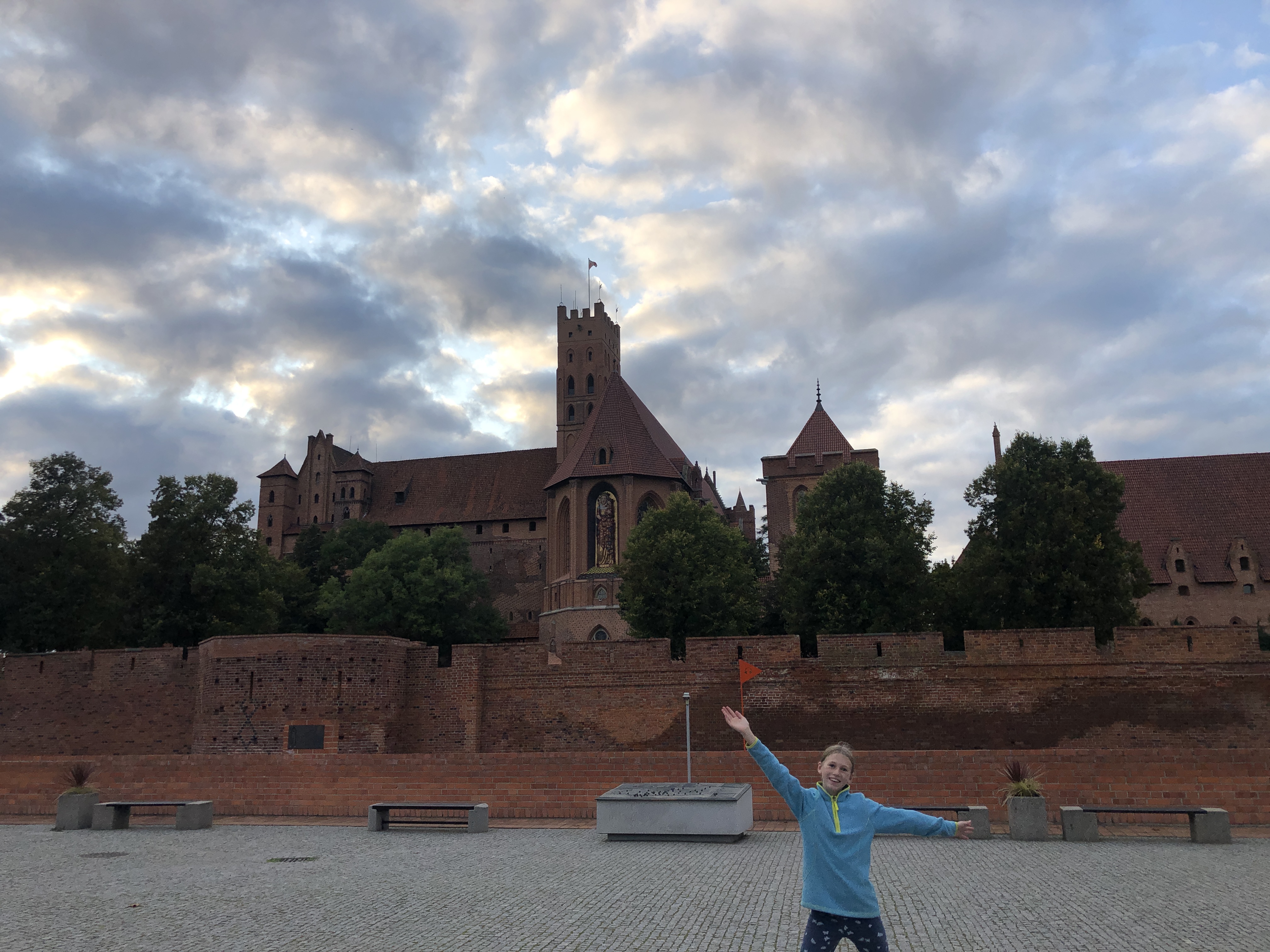 We left the hotel in Poland feeling clean, rested and ready to explore. We arrived in Malbork on Wednesday afternoon, already having a plan to visit a large playground with a ropes course on Thursday afternoon and the castle across the river on Friday afternoon. Unfortunately neither panned out. After school and lunch on Thursday, the girls and I headed out in search of Jumpy Park Linowy which we eventually did find, only to discover it was closed. I convinced the girls to walk another mile+ to a different park, Dino Park Malbork, only to find that one also closed. We were all very disappointed! We did get a nice walk through the forest and get views of the castle, but that didn’t cheer the girls up at all.
