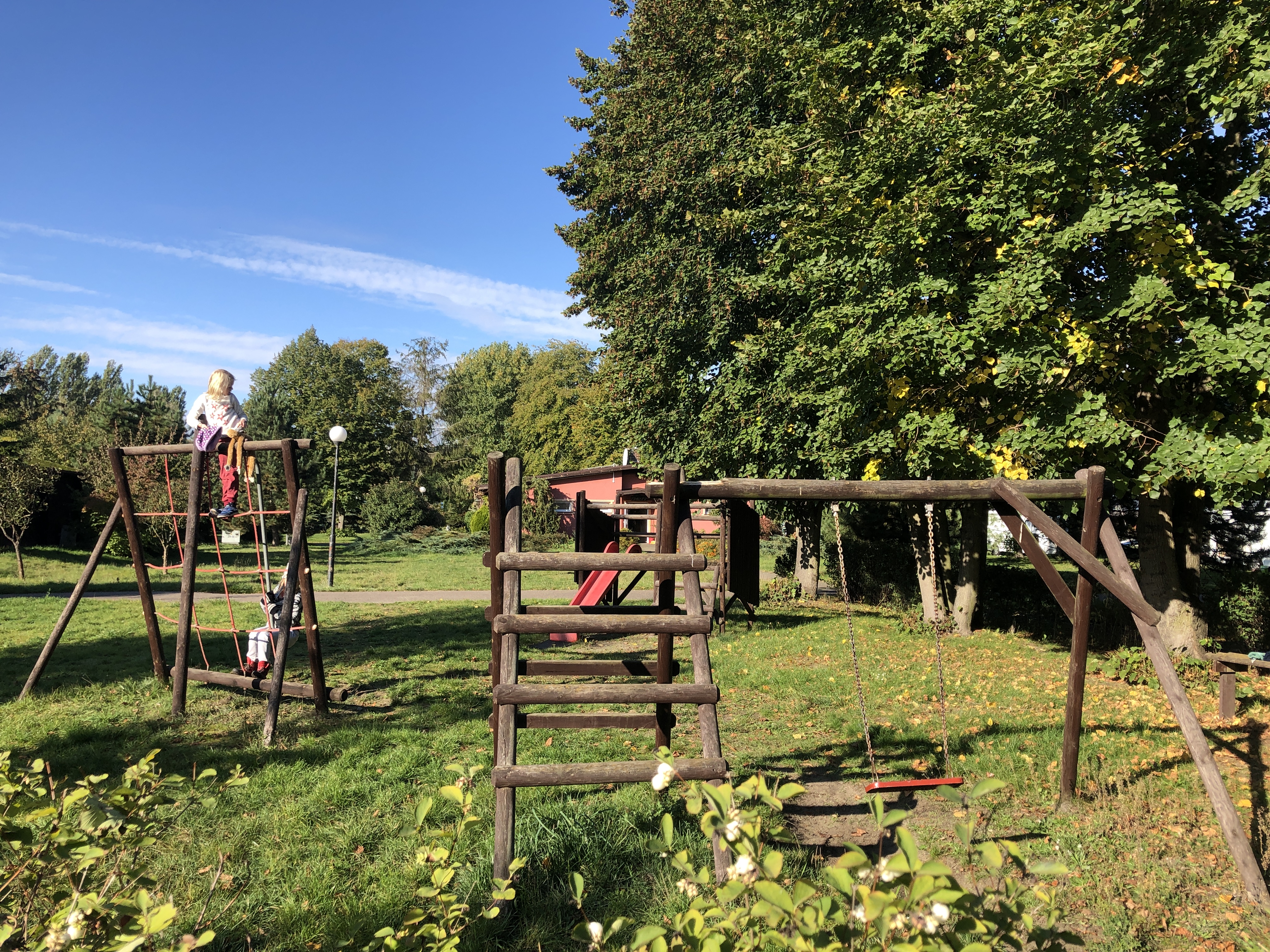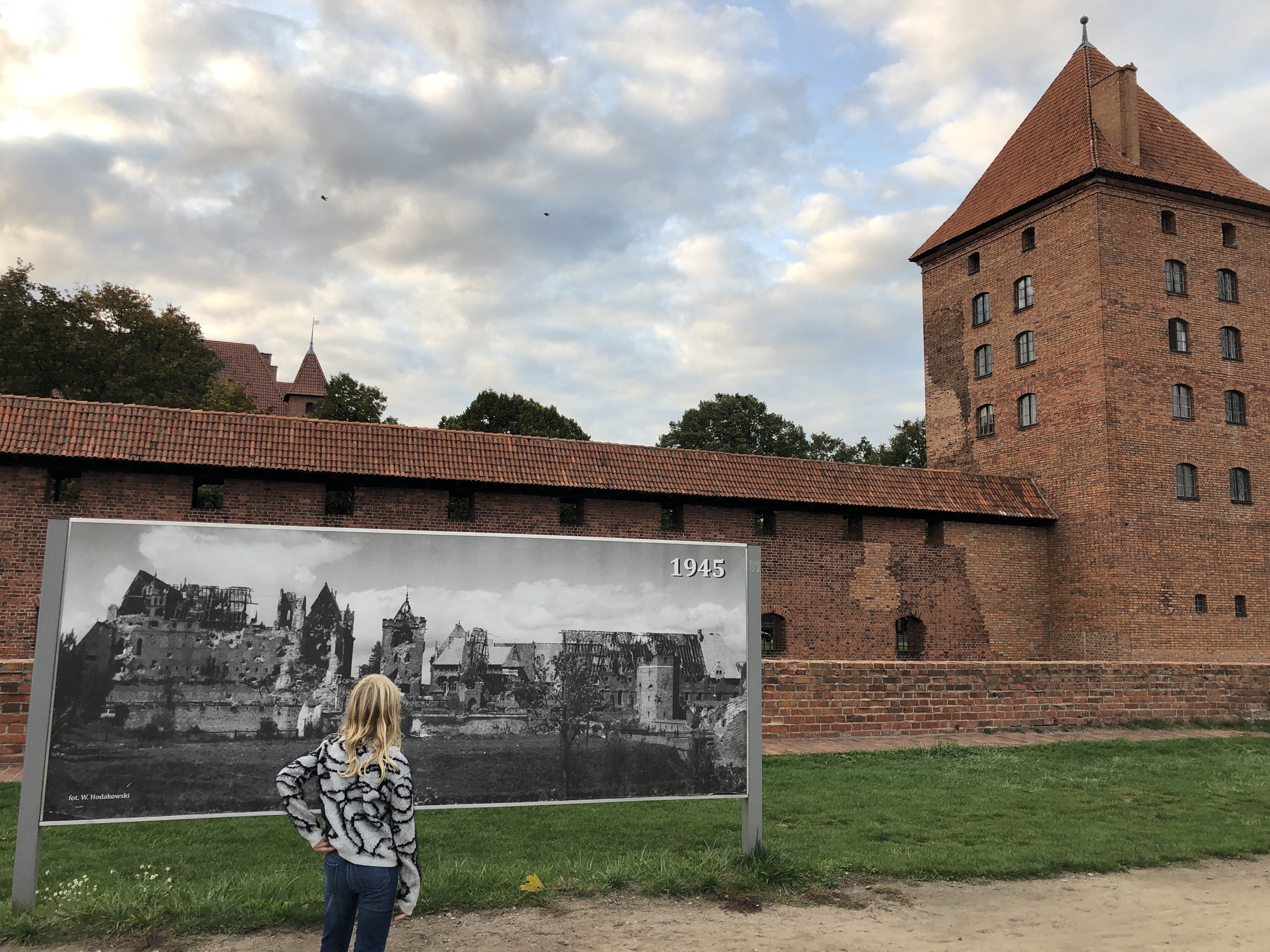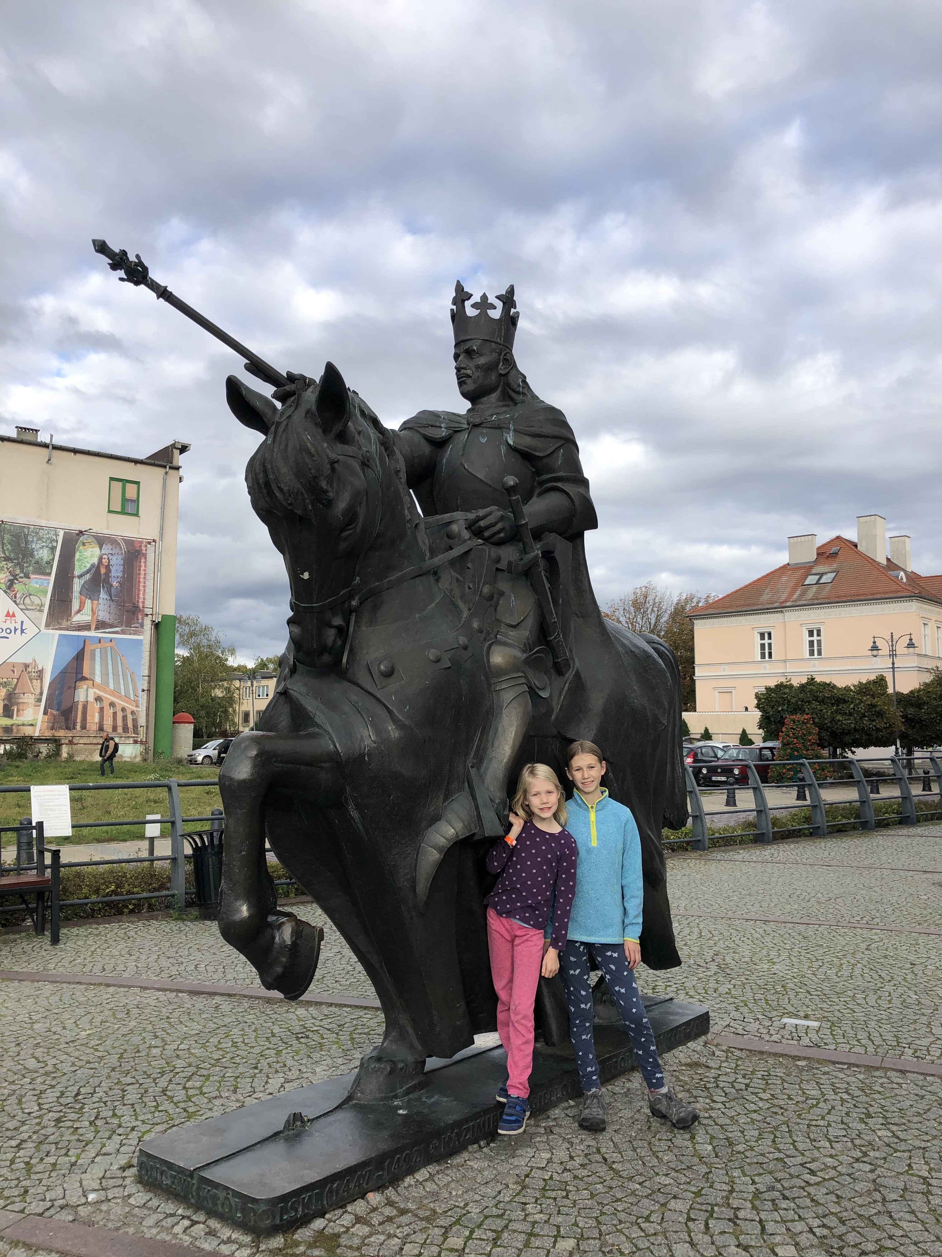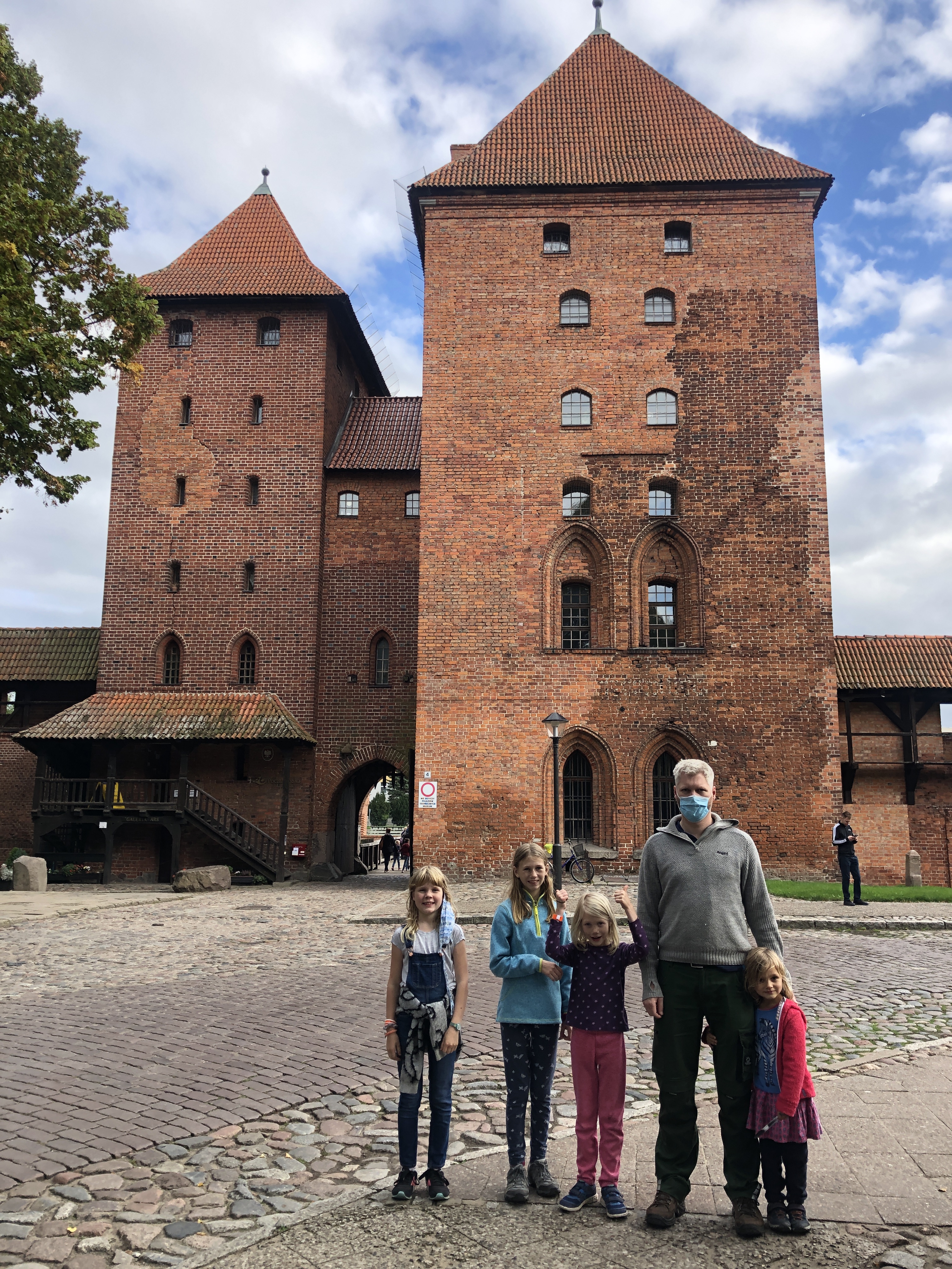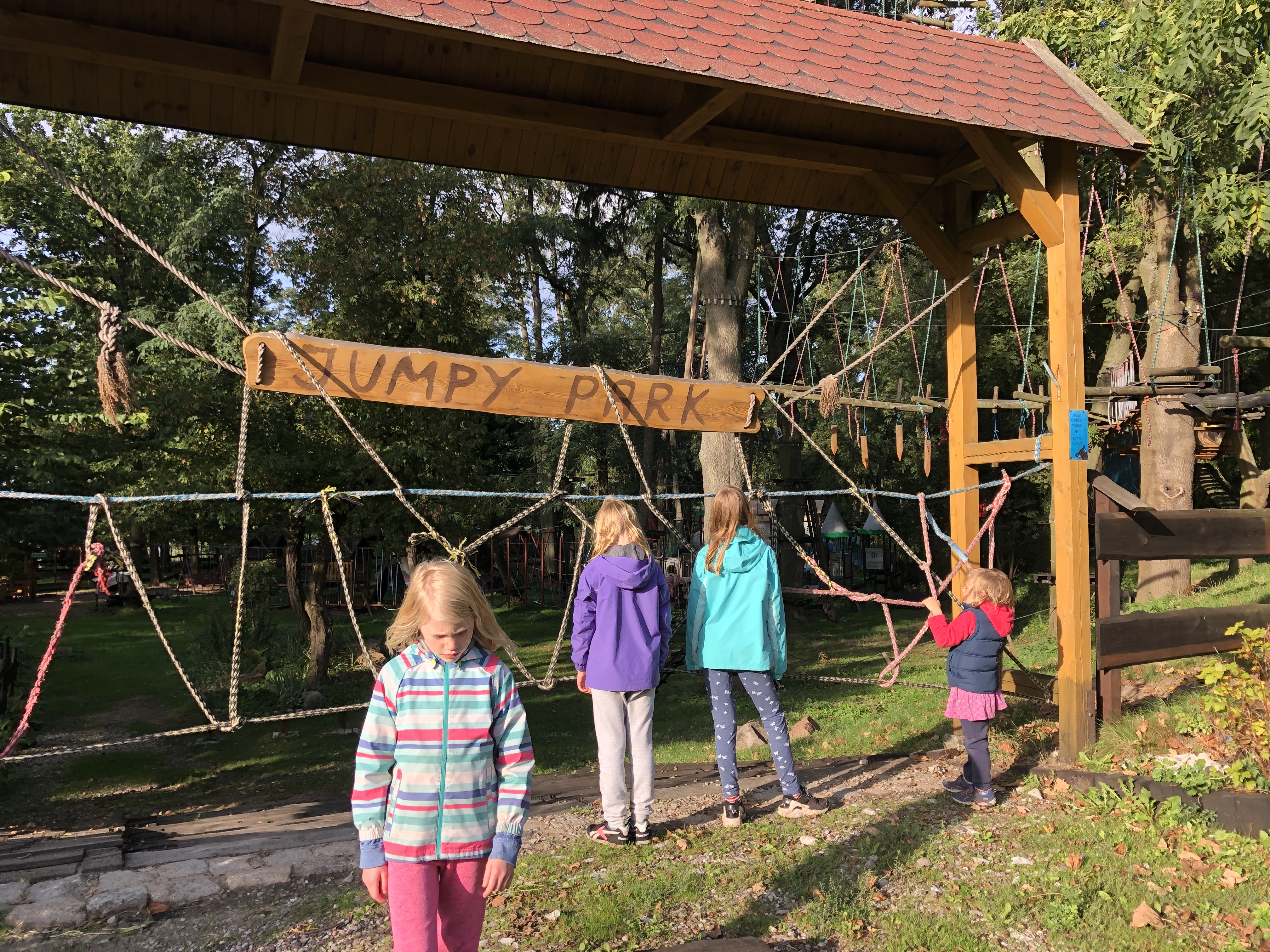 We left the hotel in Poland feeling clean, rested and ready to explore. We arrived in Malbork on Wednesday afternoon, already having a plan to visit a large playground with a ropes course on Thursday afternoon and the castle across the river on Friday afternoon. Unfortunately neither panned out. After school and lunch on Thursday, the girls and I headed out in search of Jumpy Park Linowy which we eventually did find, only to discover it was closed. I convinced the girls to walk another mile+ to a different park, Dino Park Malbork, only to find that one also closed. We were all very disappointed! We did get a nice walk through the forest and get views of the castle, but that didn’t cheer the girls up at all.