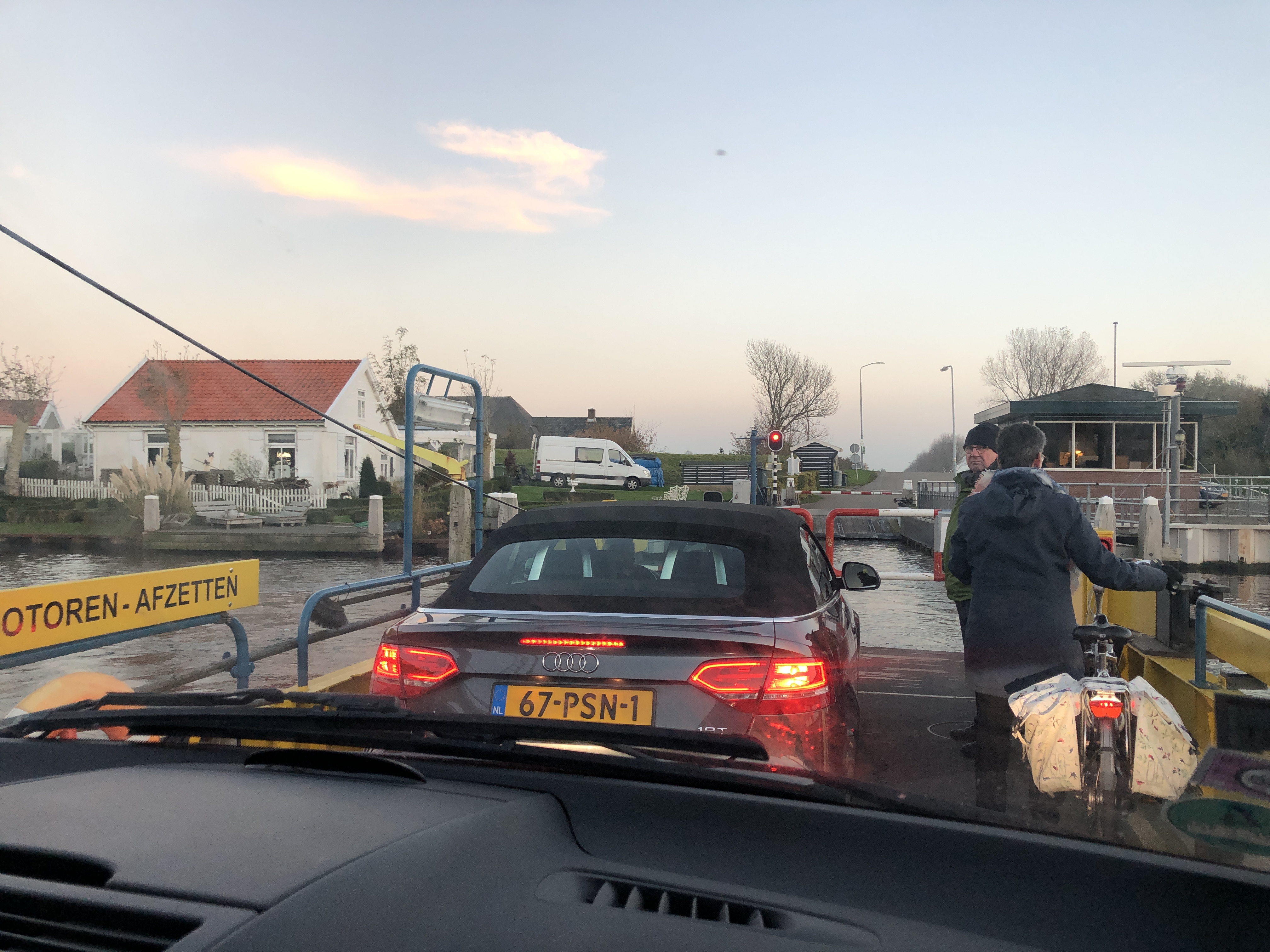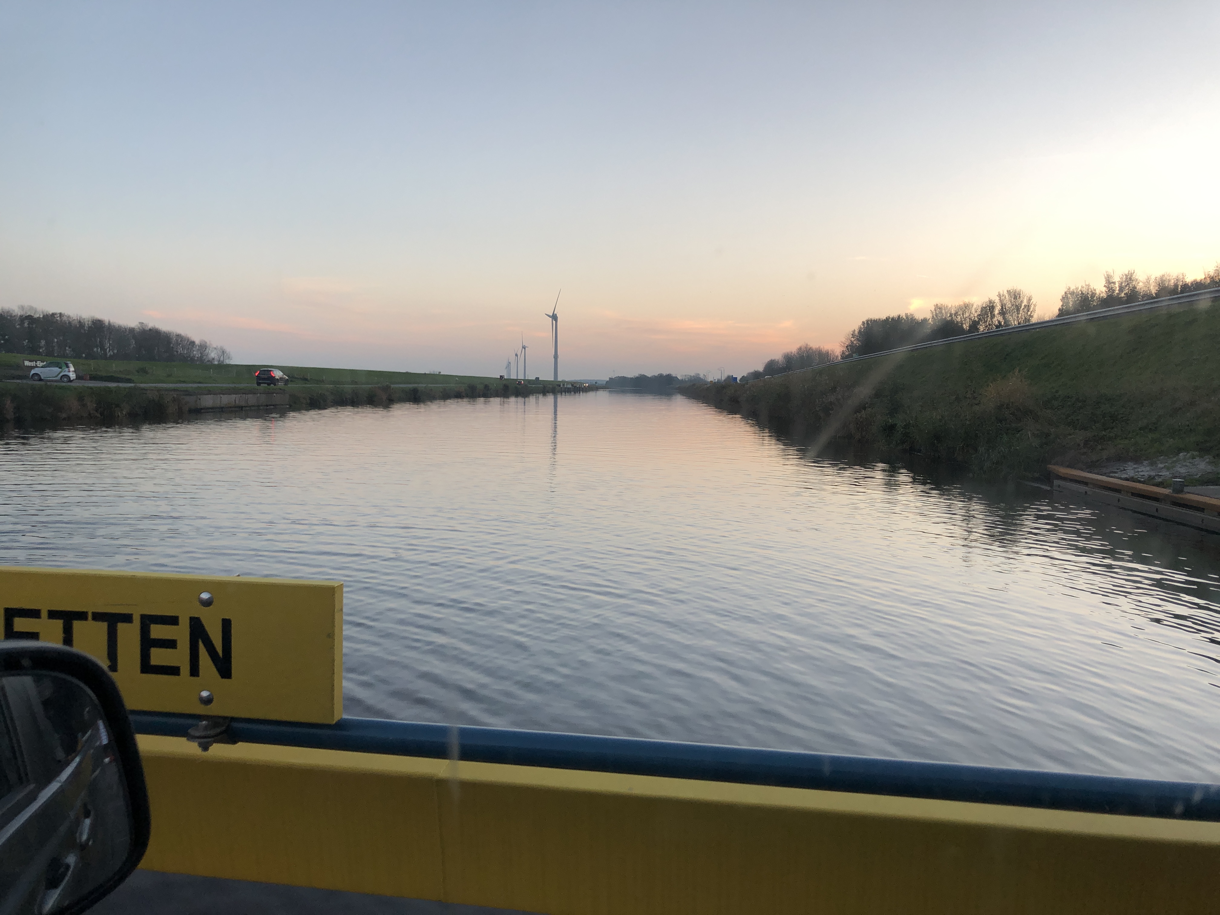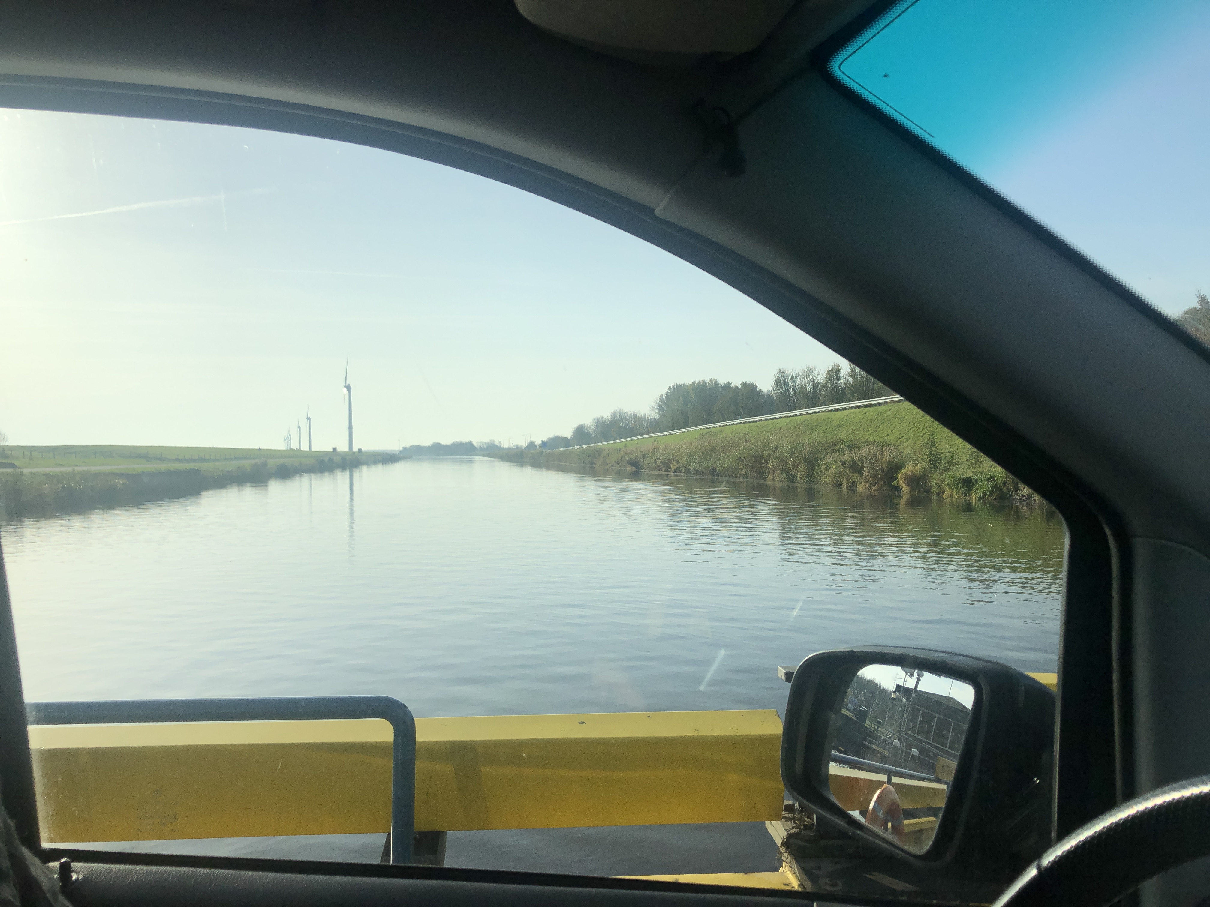 On the drive home we came across the cutest ferry ever! It crosses a canal that’s maybe 60 feet across (20m) and can fit two cars. It’s hard to see exactly in these photos, but you get the idea!