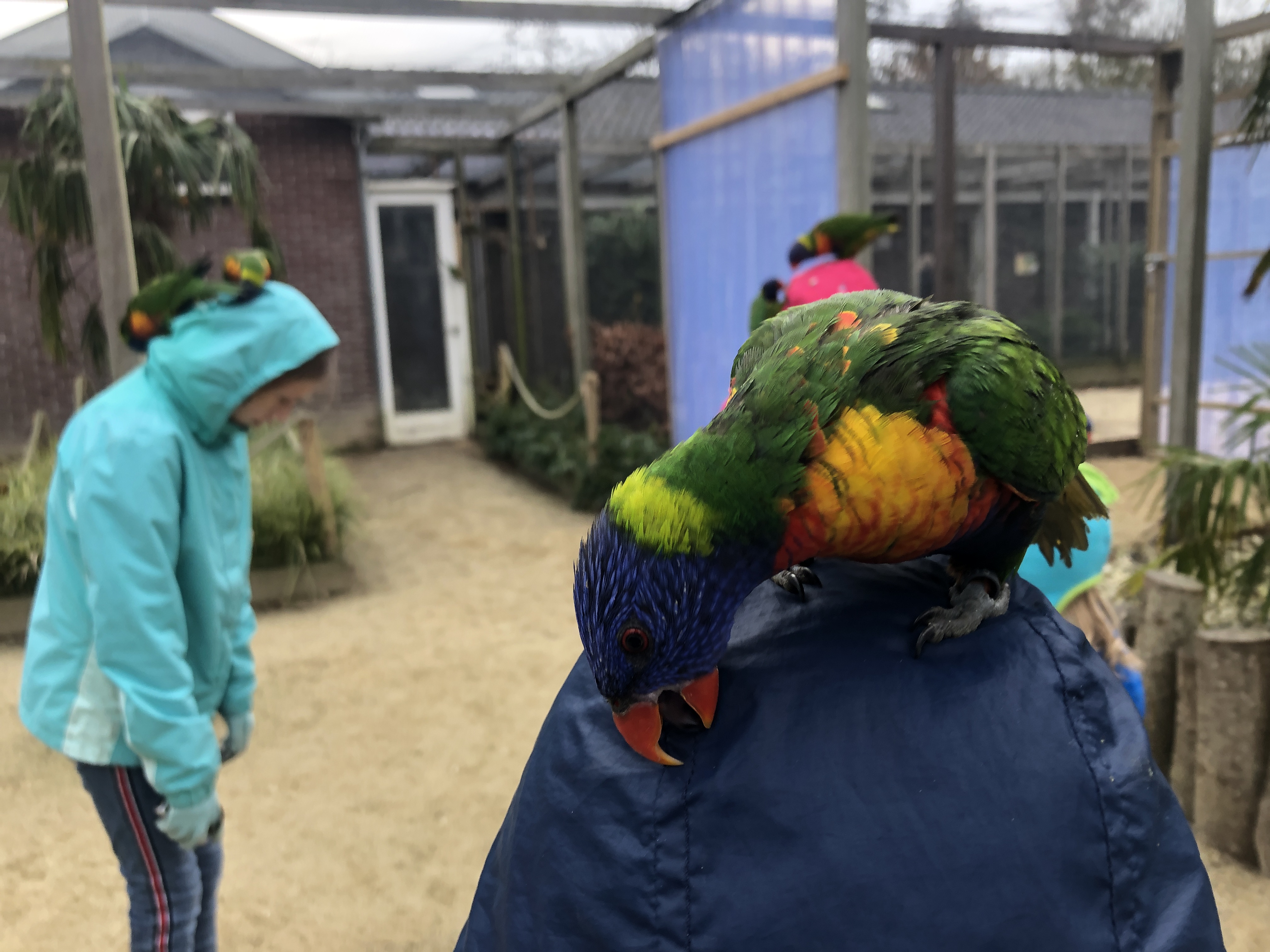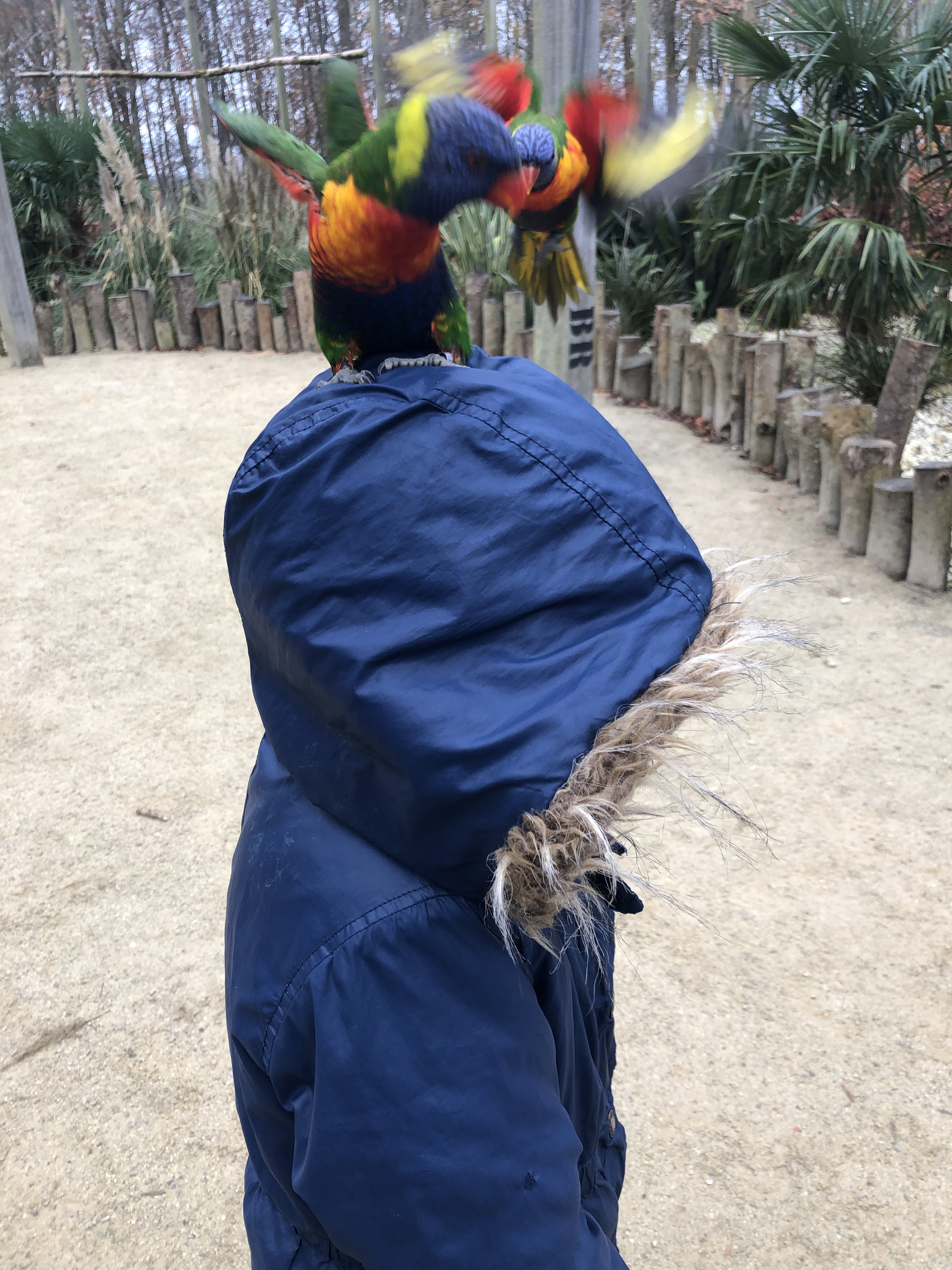 Then came the absolute highlight: there was a large enclosure with a bunch of rainbow lorikeets who would sit on your head and fly around. It was so cool!
