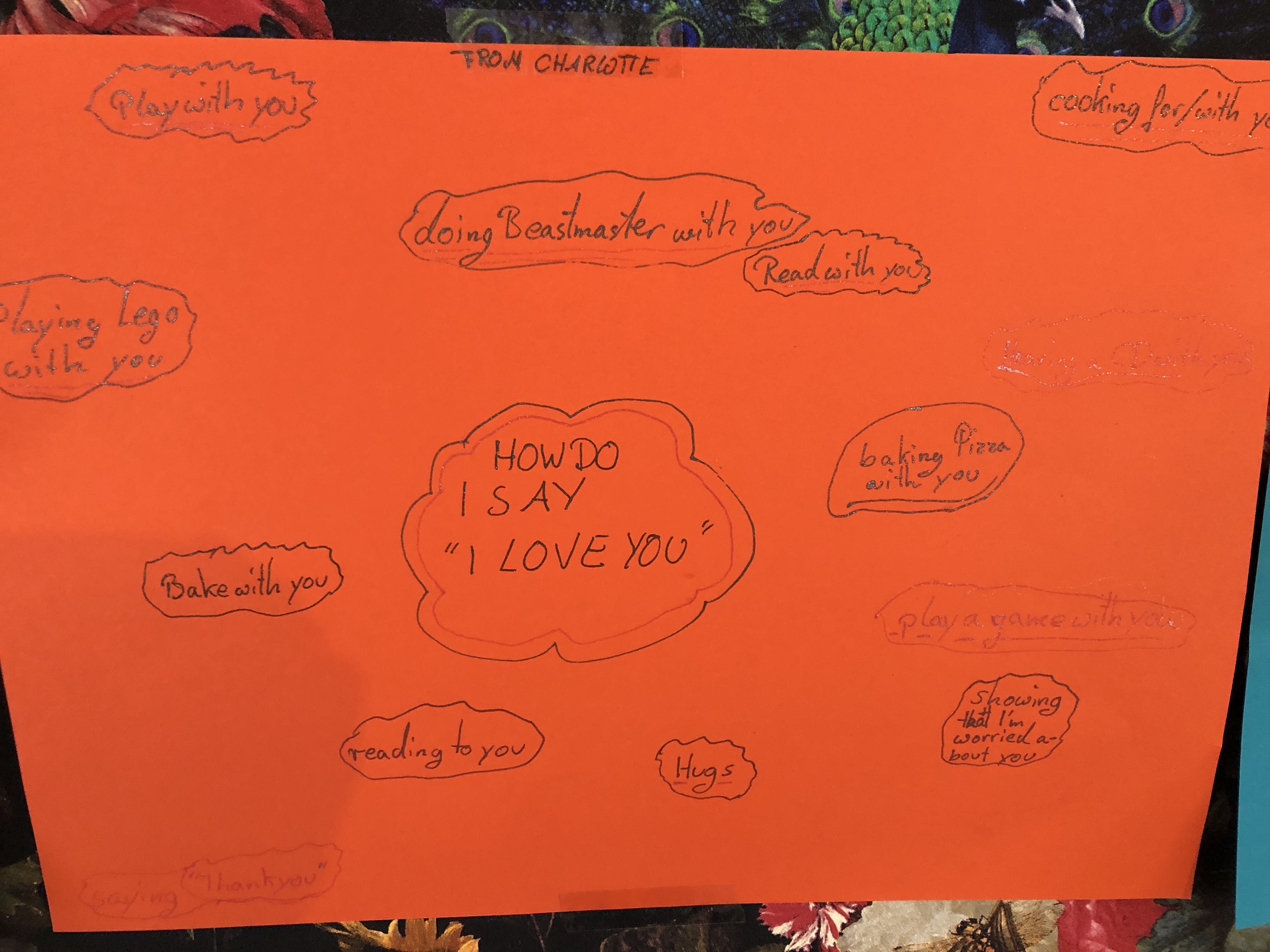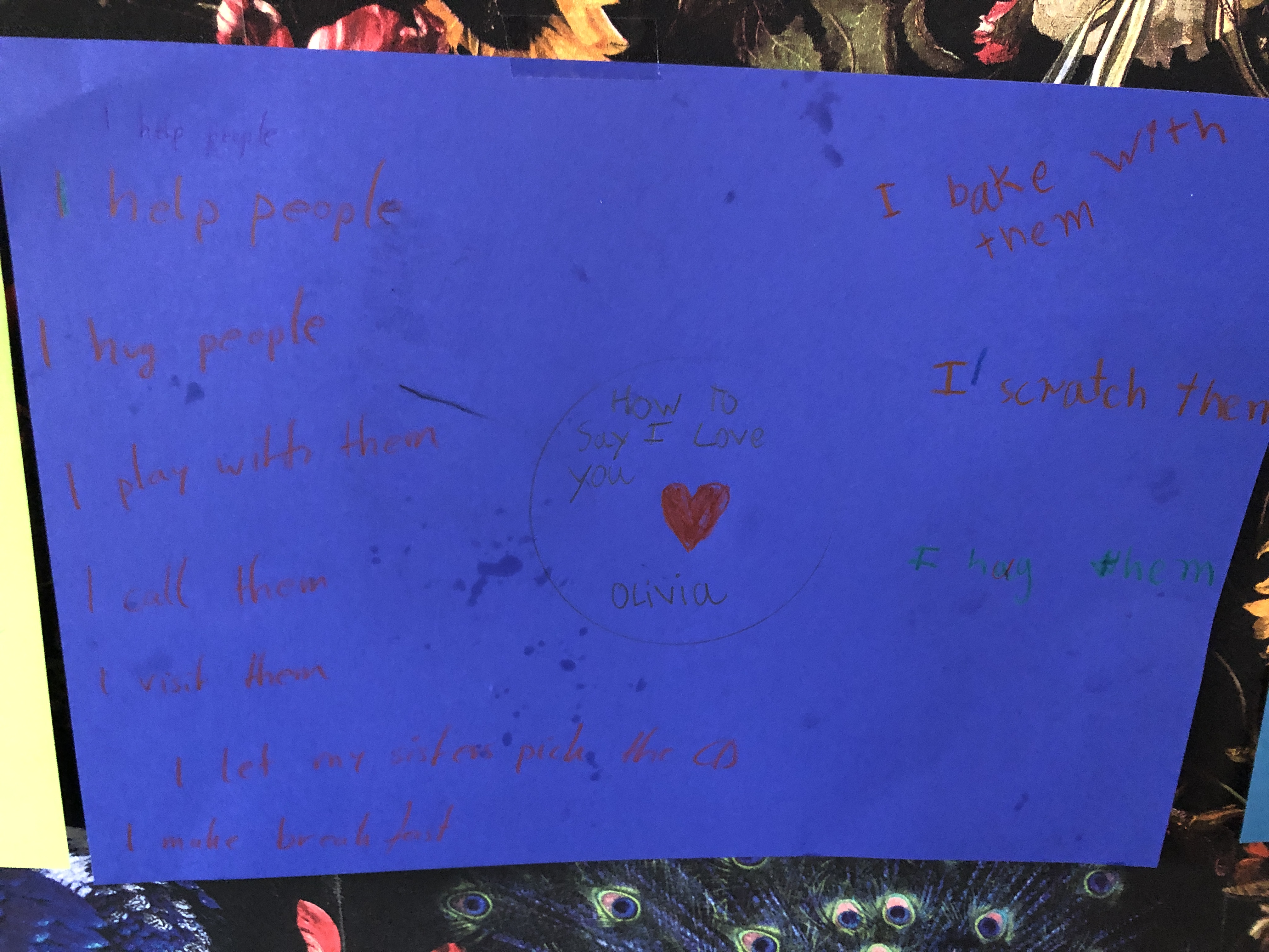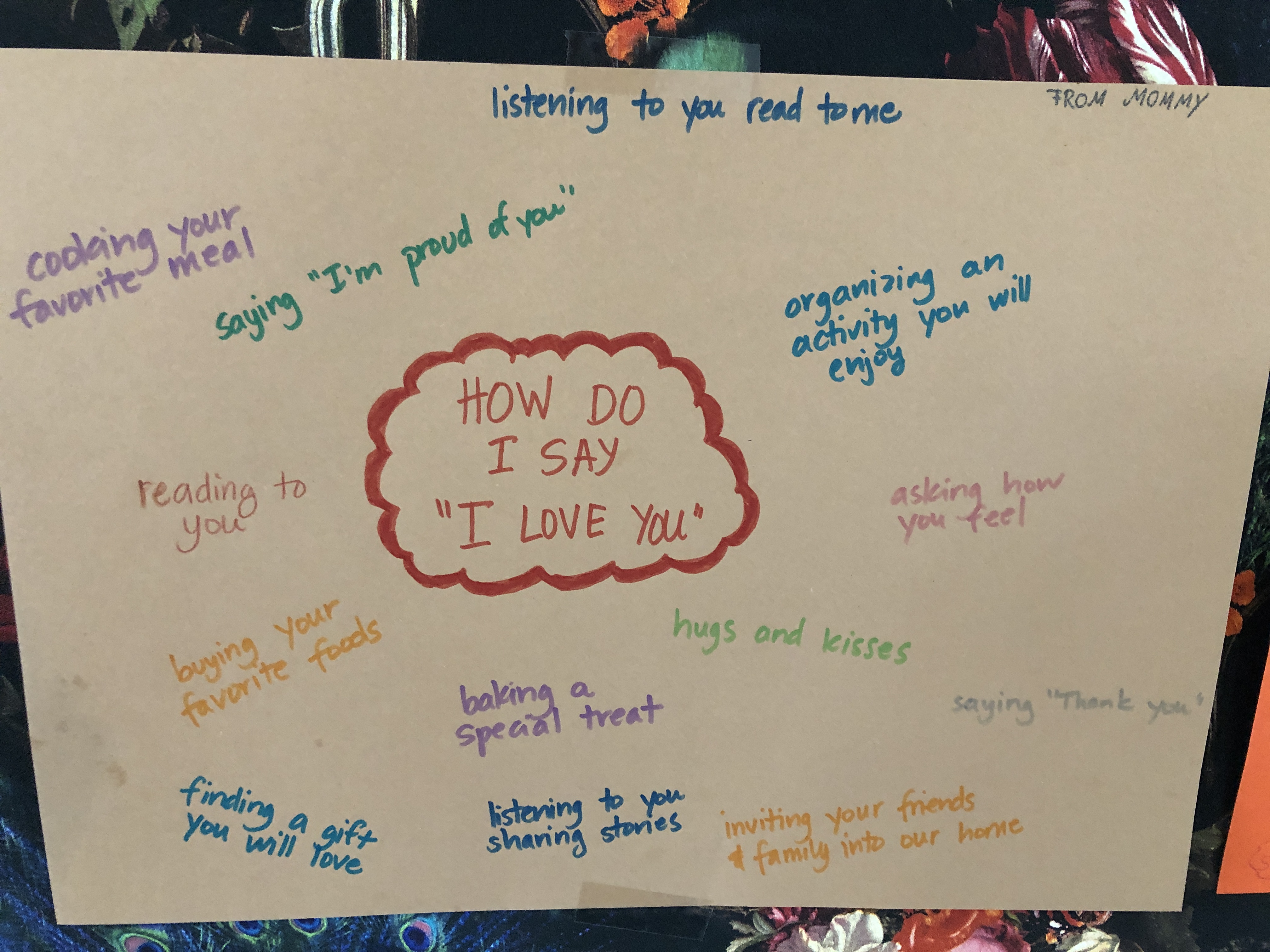 We started the day with a little activity I thought of after listening to the Finding Fred podcast about Mr. Rogers. In one episode they talked about answering the question, How do I say “I love you?” and that really struck me as something worth exploring. So we each wrote down things we do and say to show each other we love them. It was nice to pause and think of how we are in service to each other and to be grateful for what others do for us.