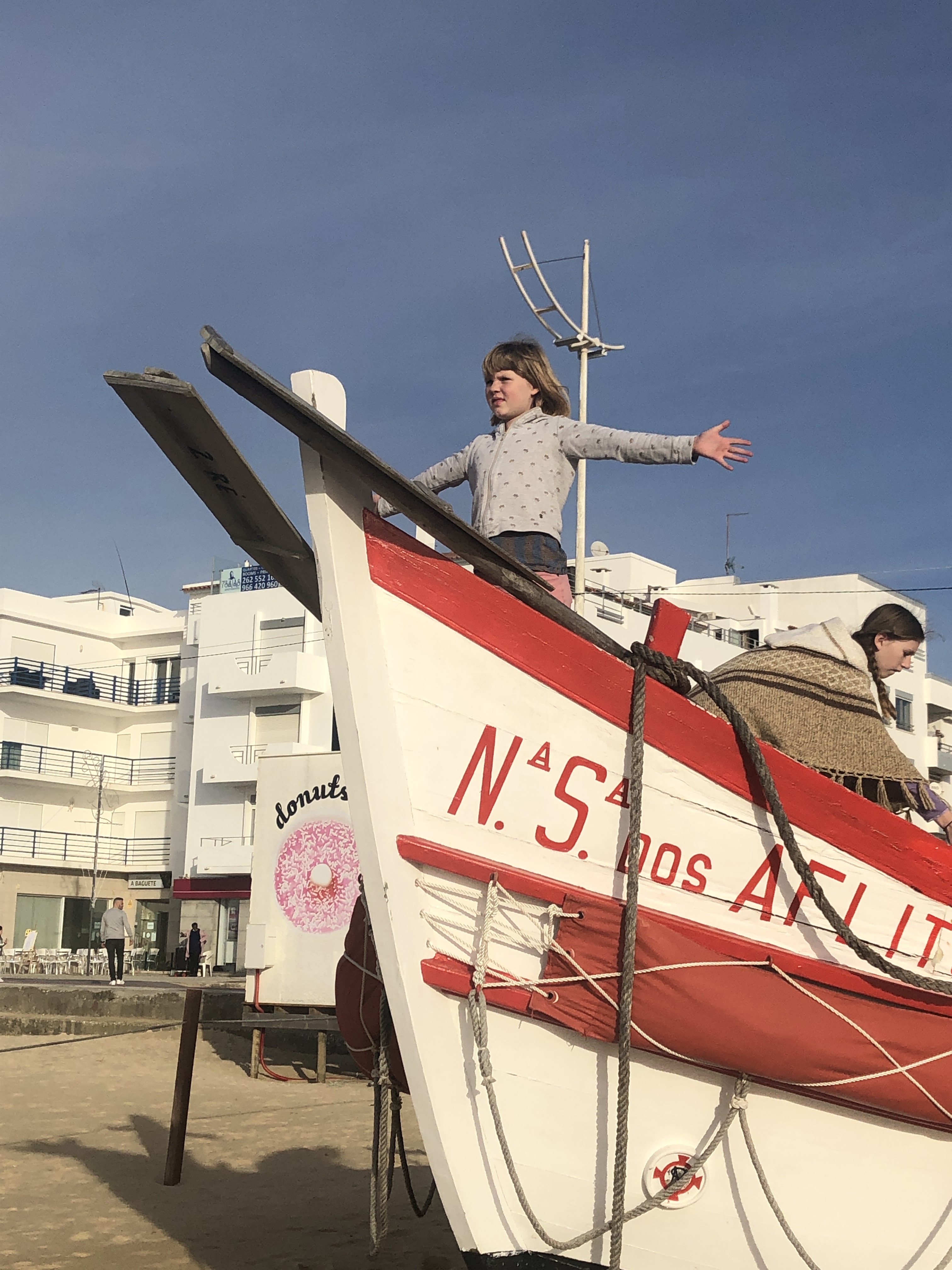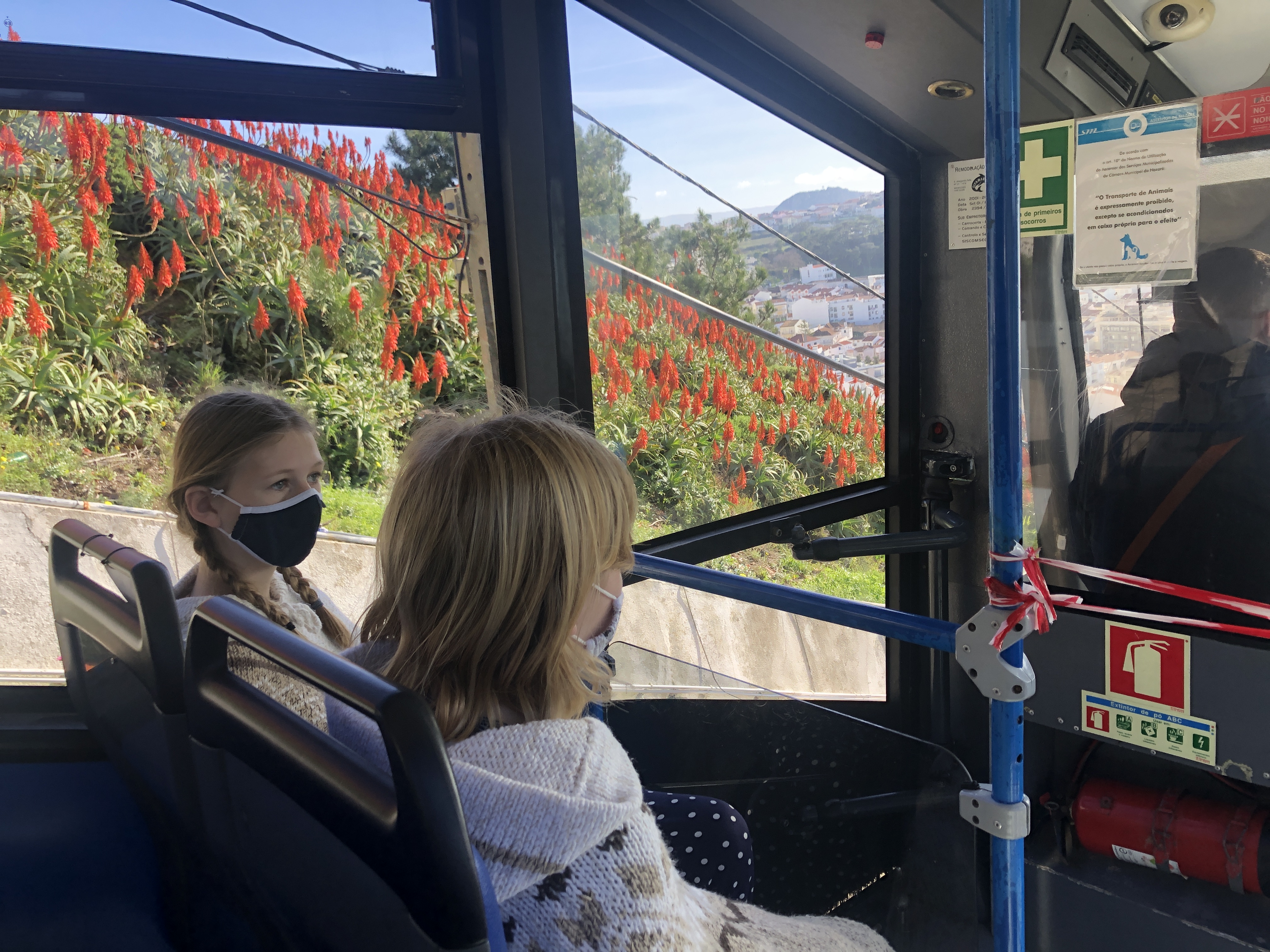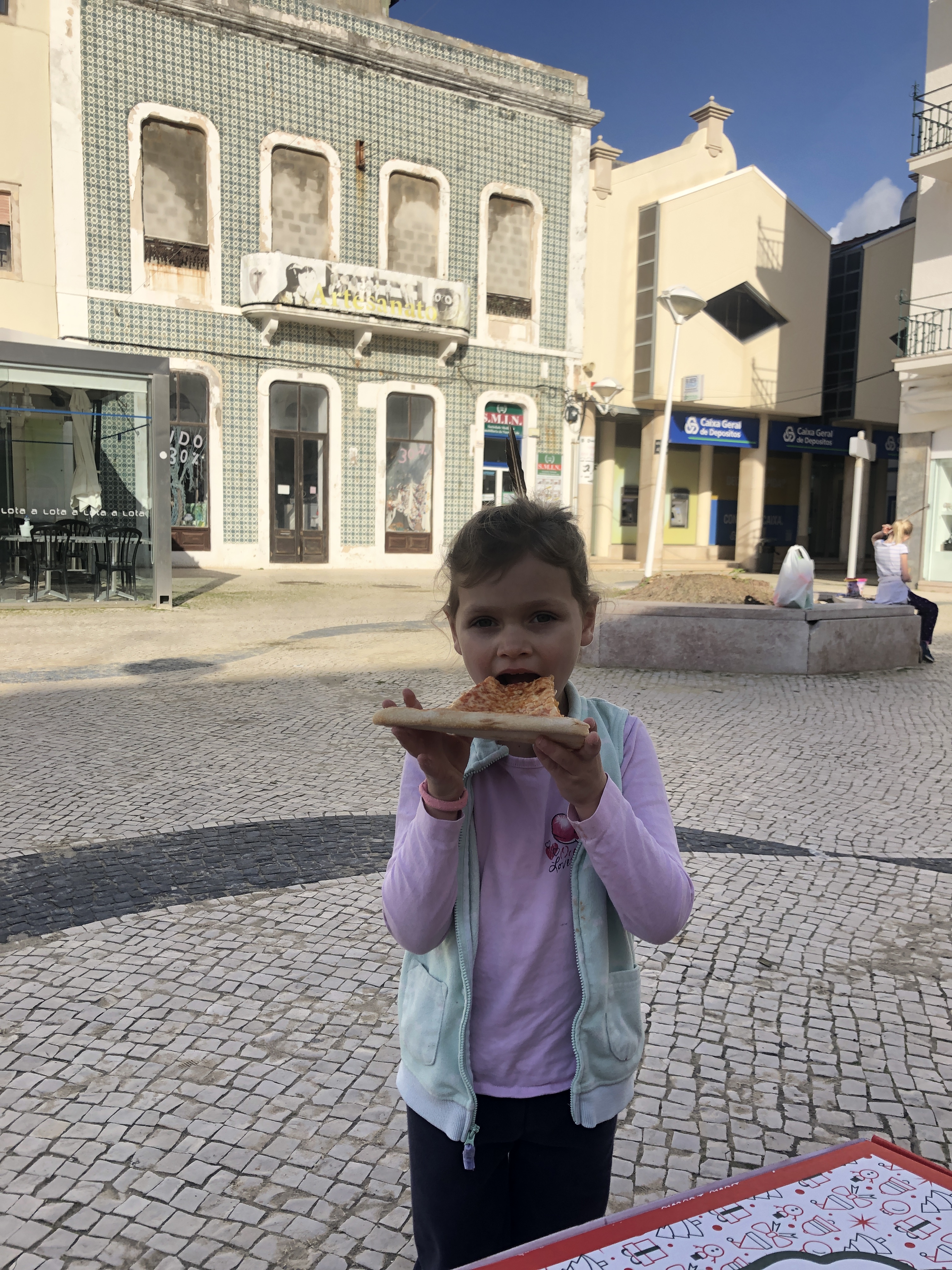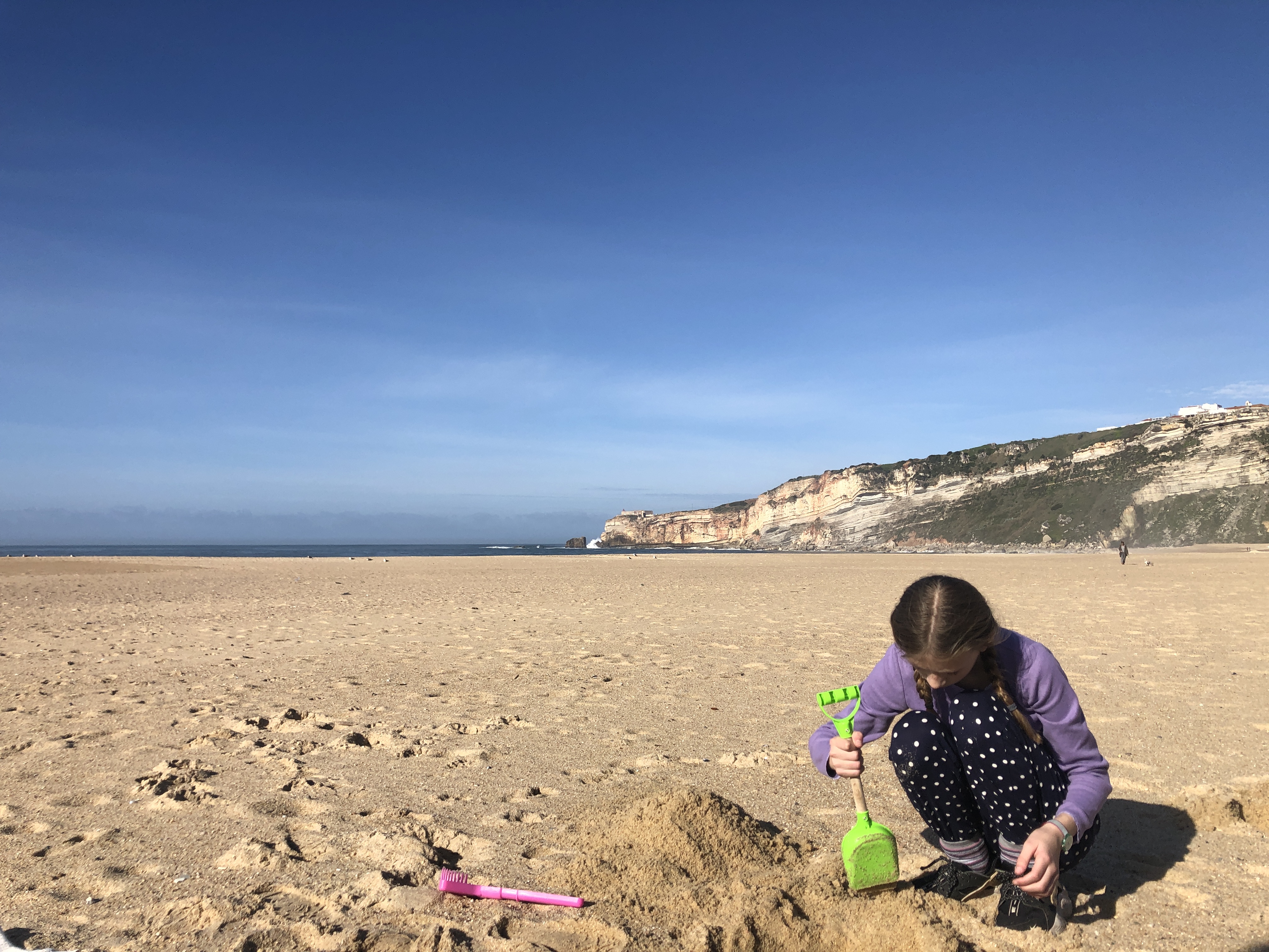 On Thursday the weather was so beautiful, we couldn’t stand to stay in the house and do our schoolwork! So we walked over to the tram and headed down to the beach. We picked up some sand toys at a local vendor and spent hours playing on the beach. Steffen came down for lunch (pizza, of course!), and then we played some more. We headed back to the apartment in time for a beautiful sunset. Then the girls finished the day with a video/games call with Grandma; a good day all around!
