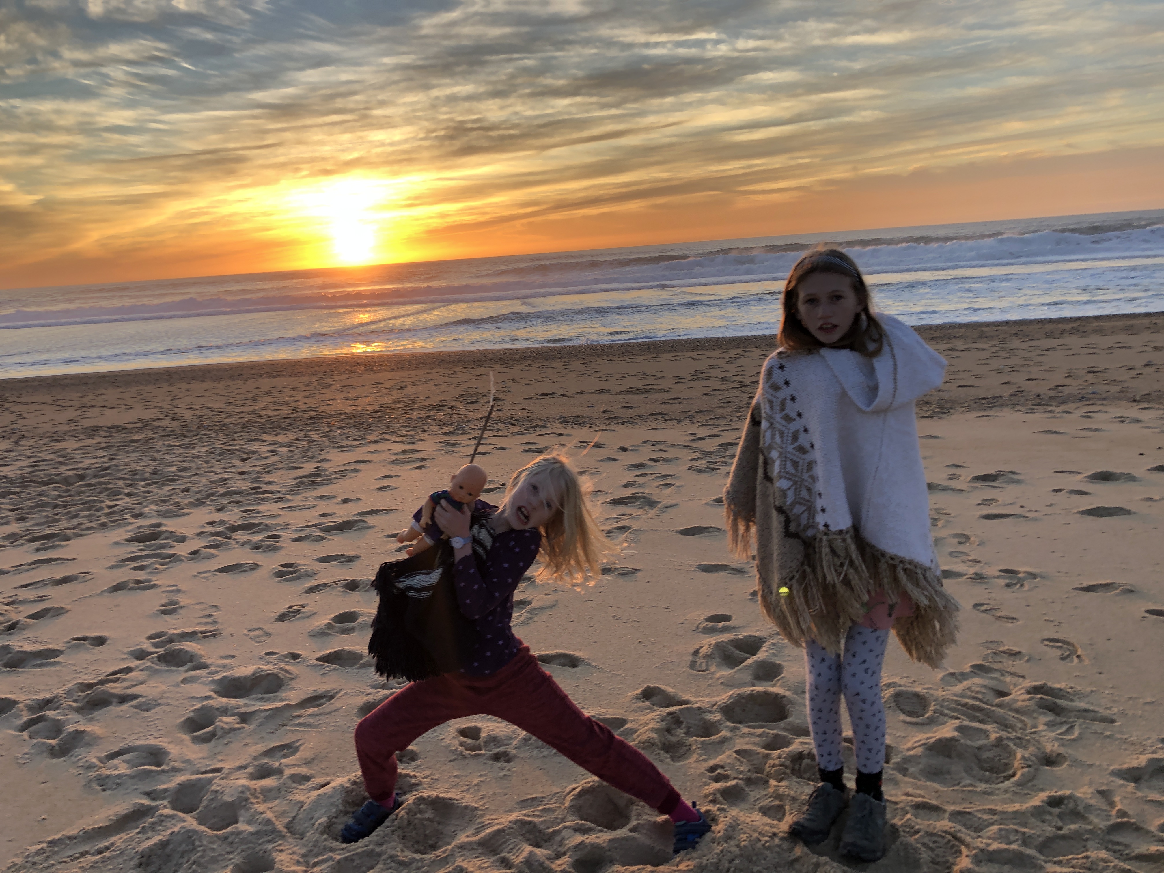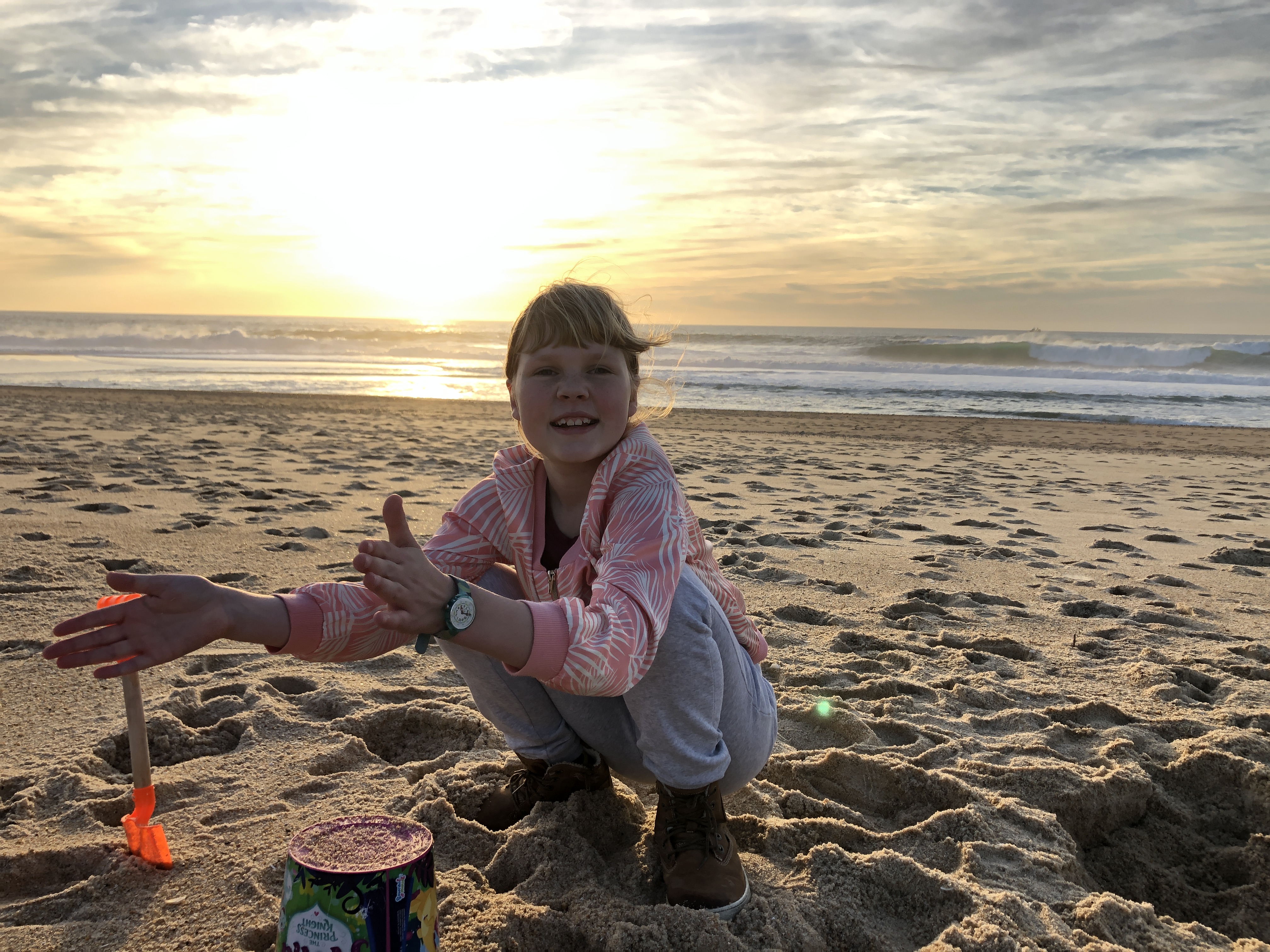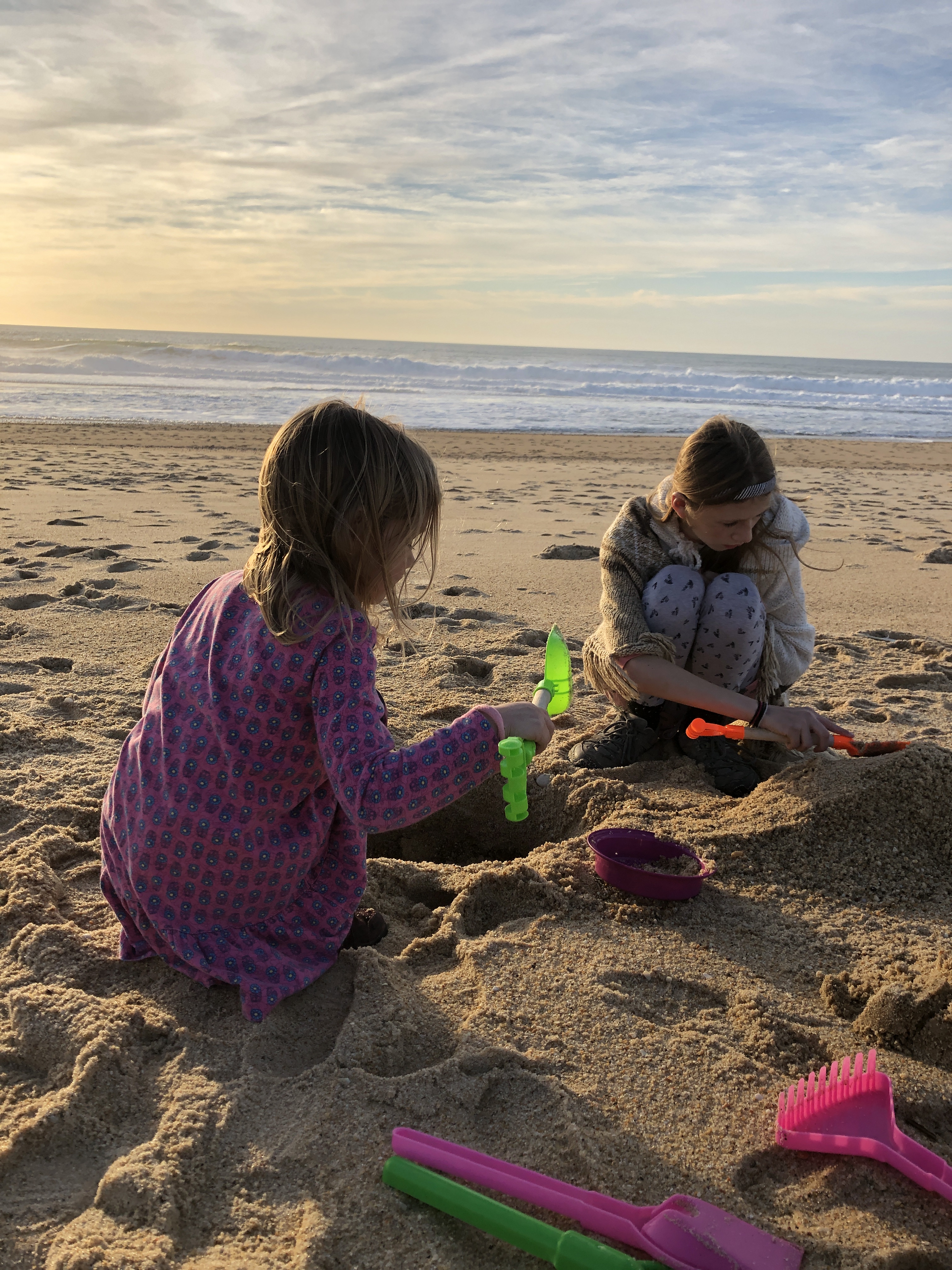 Yesterday was another gorgeous day, so the girls and I went down to the beach for about an hour of play and another beautiful sunset. Sunsets over the ocean are my favorite! I also love to watch the girls’ creative play at the beach.