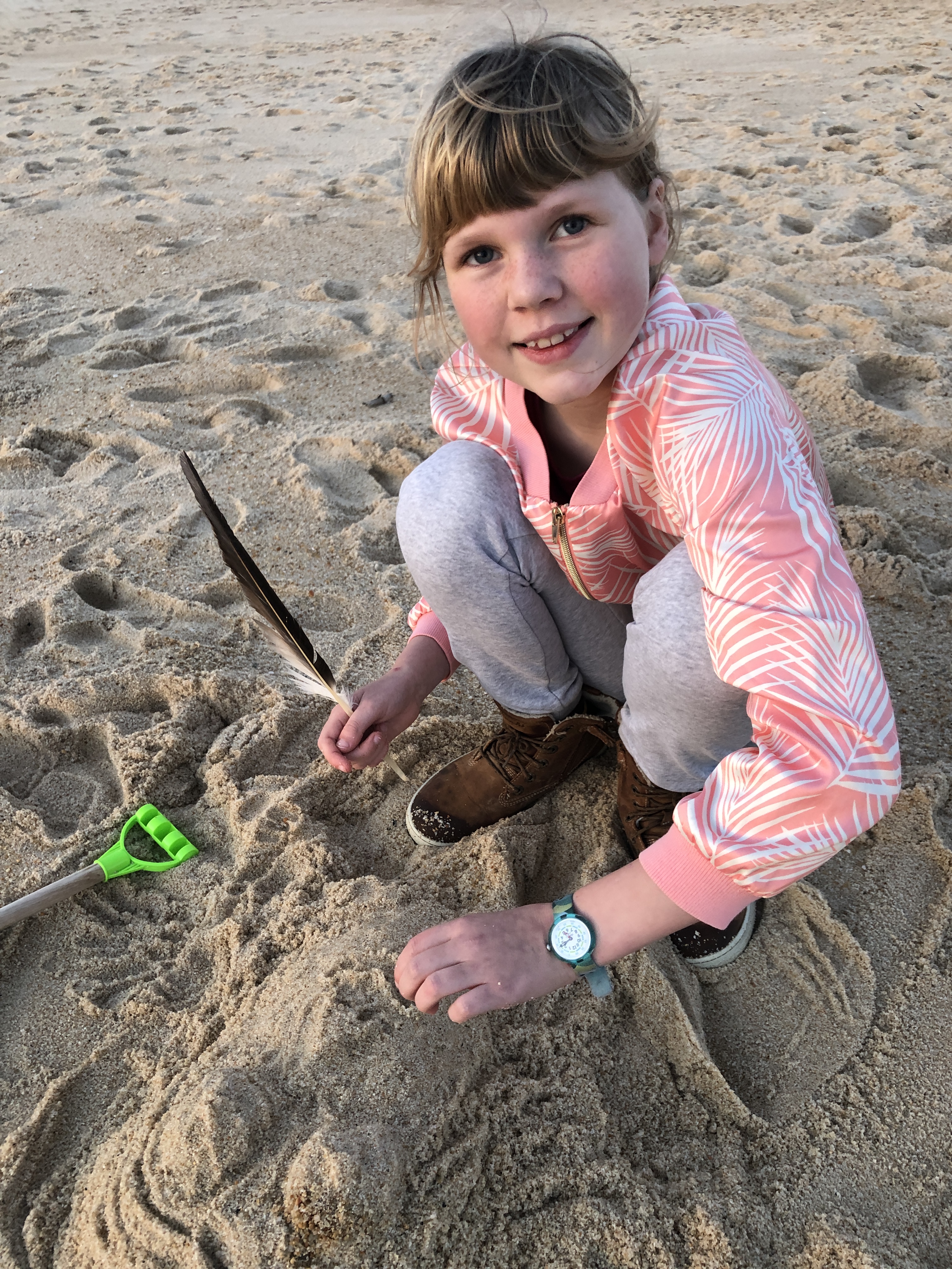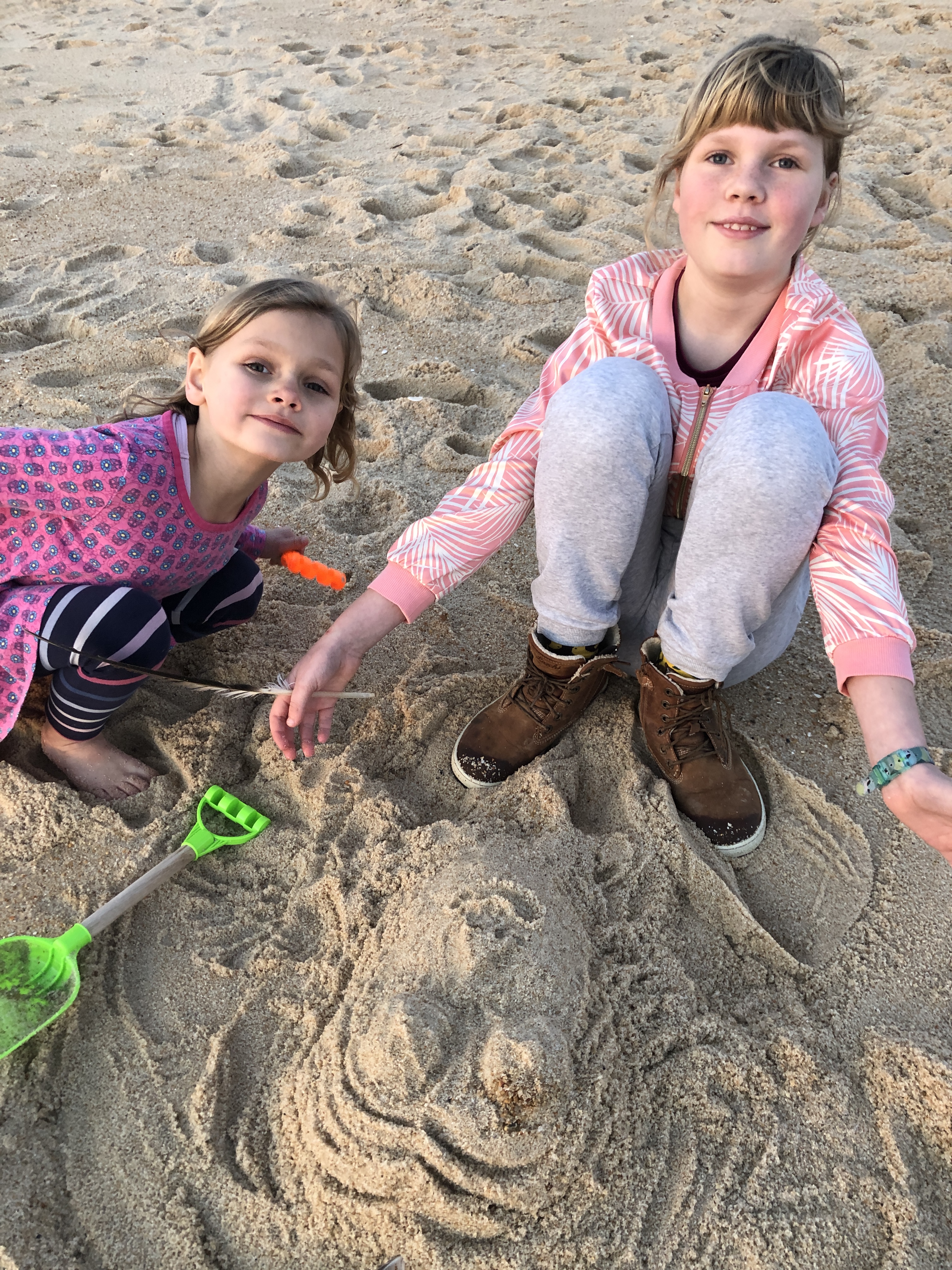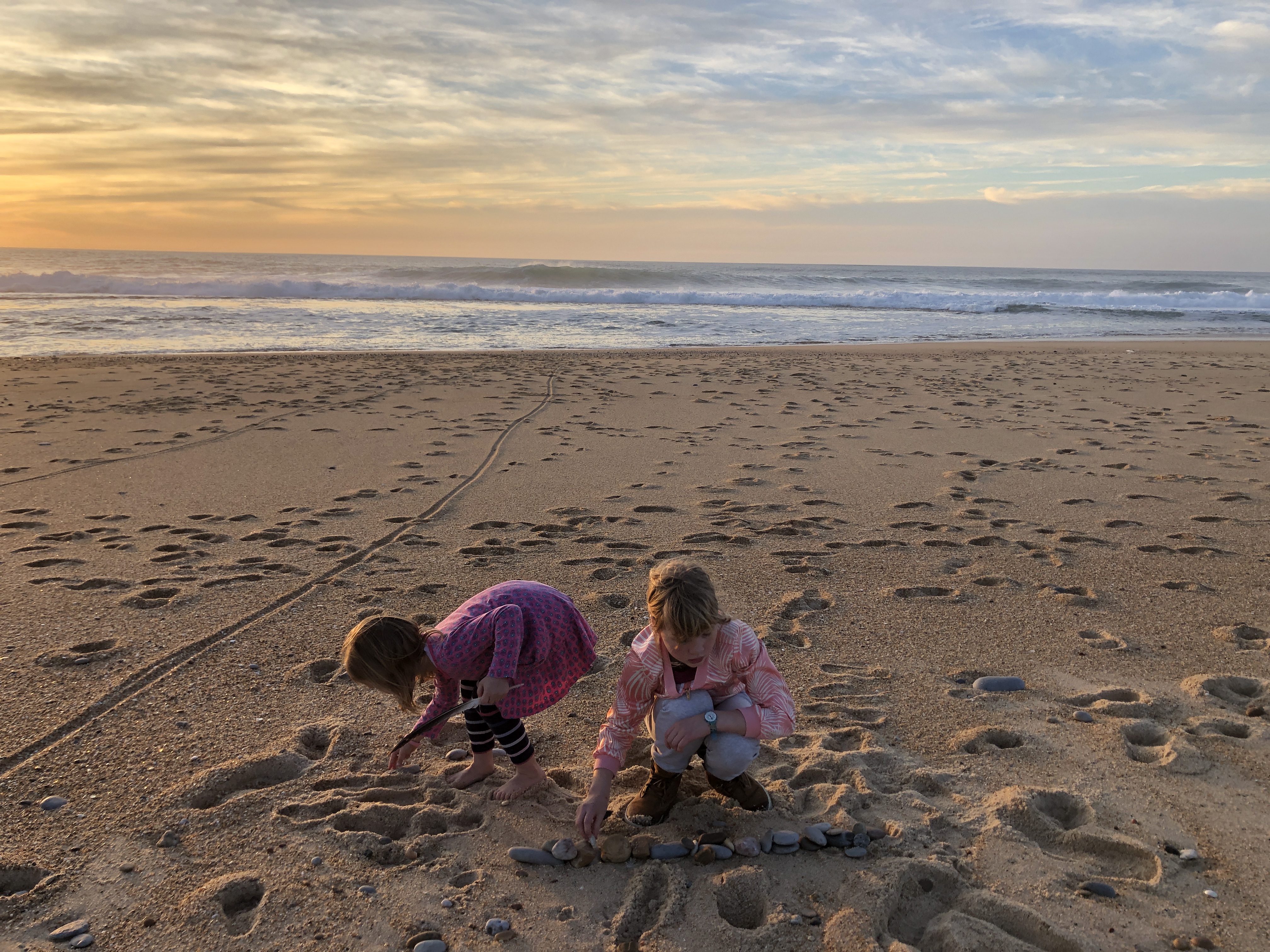 Yesterday was another gorgeous day, so the girls and I went down to the beach for about an hour of play and another beautiful sunset. Sunsets over the ocean are my favorite! I also love to watch the girls’ creative play at the beach.