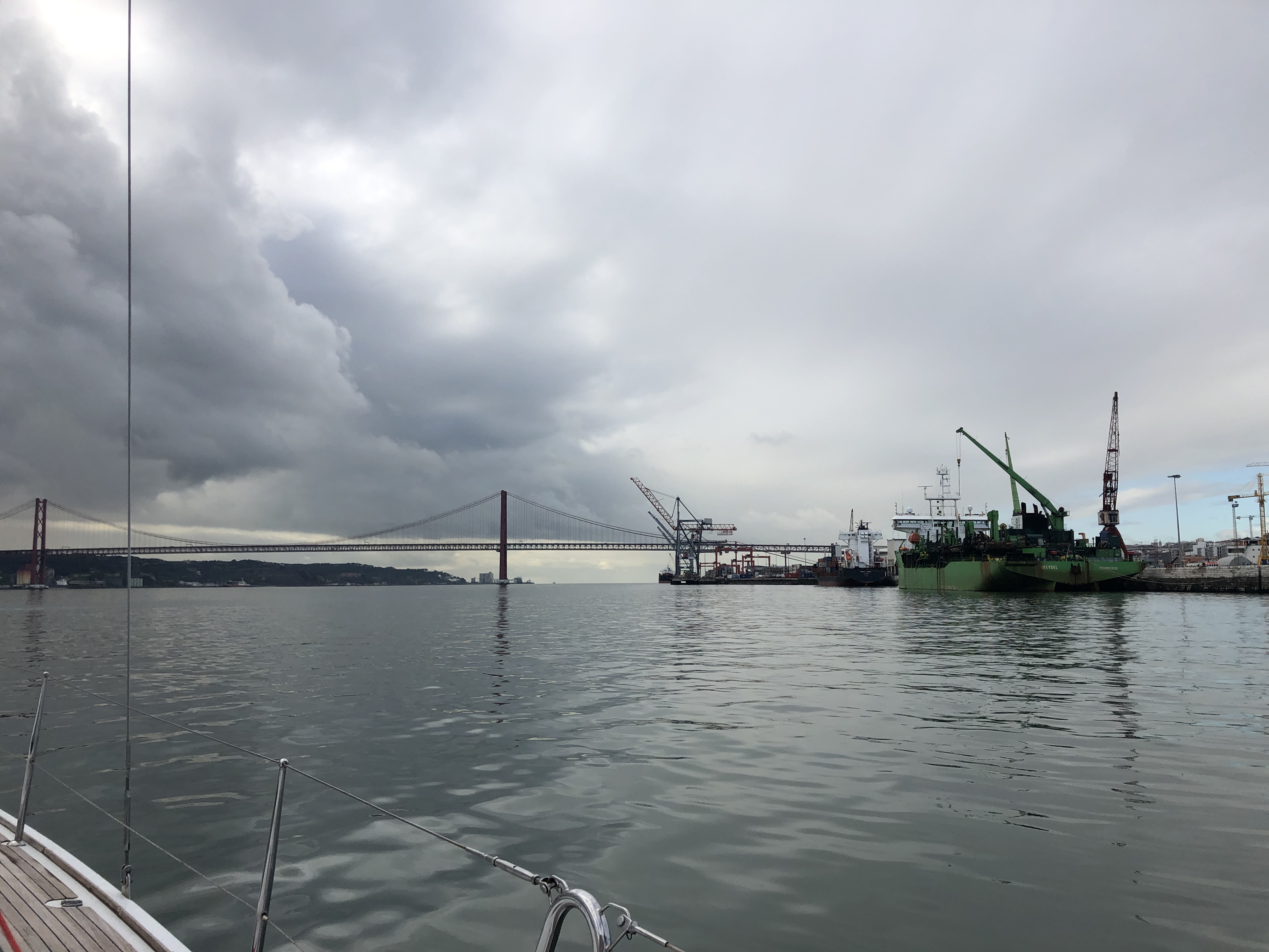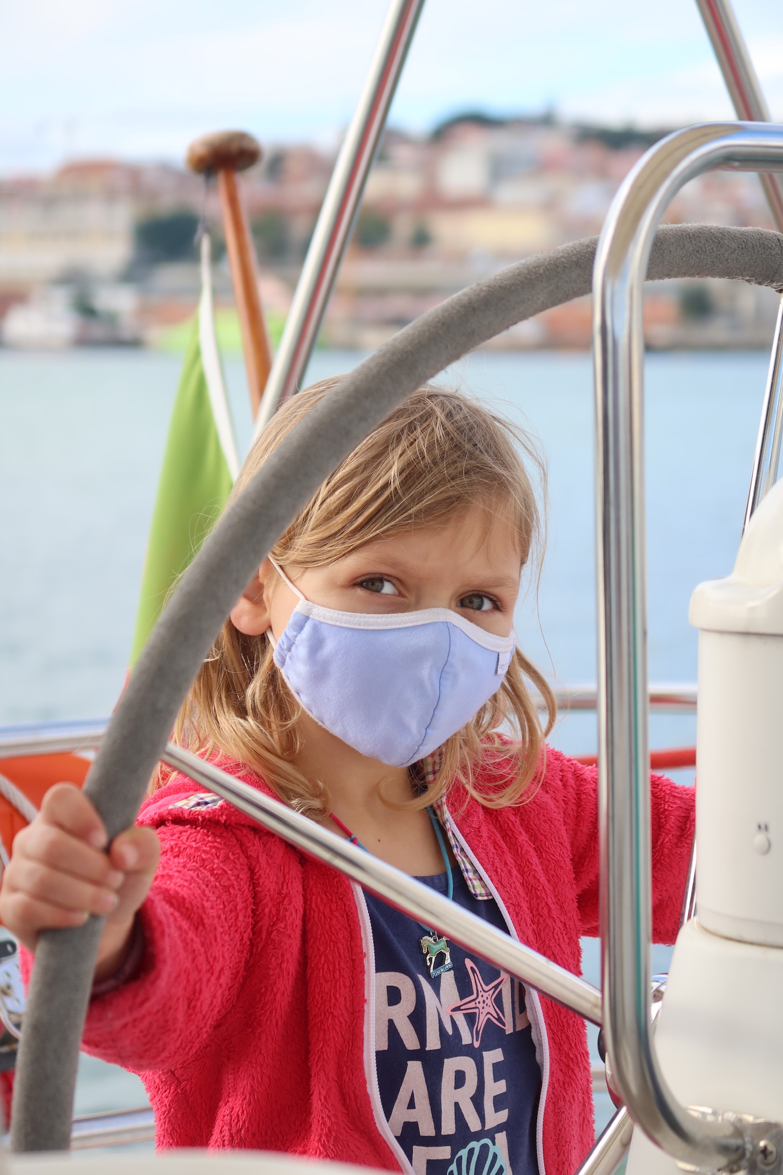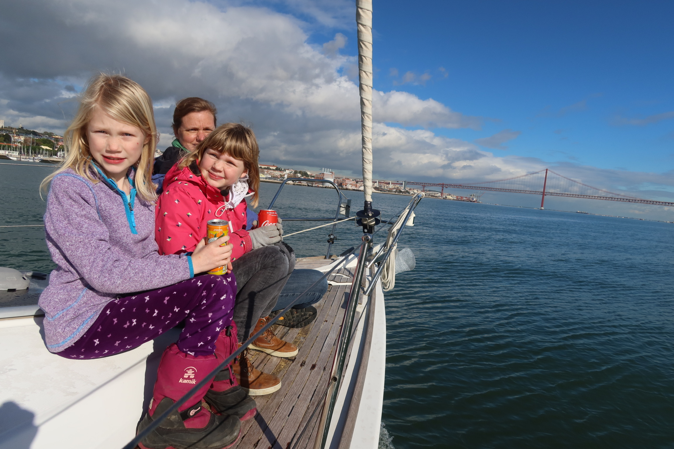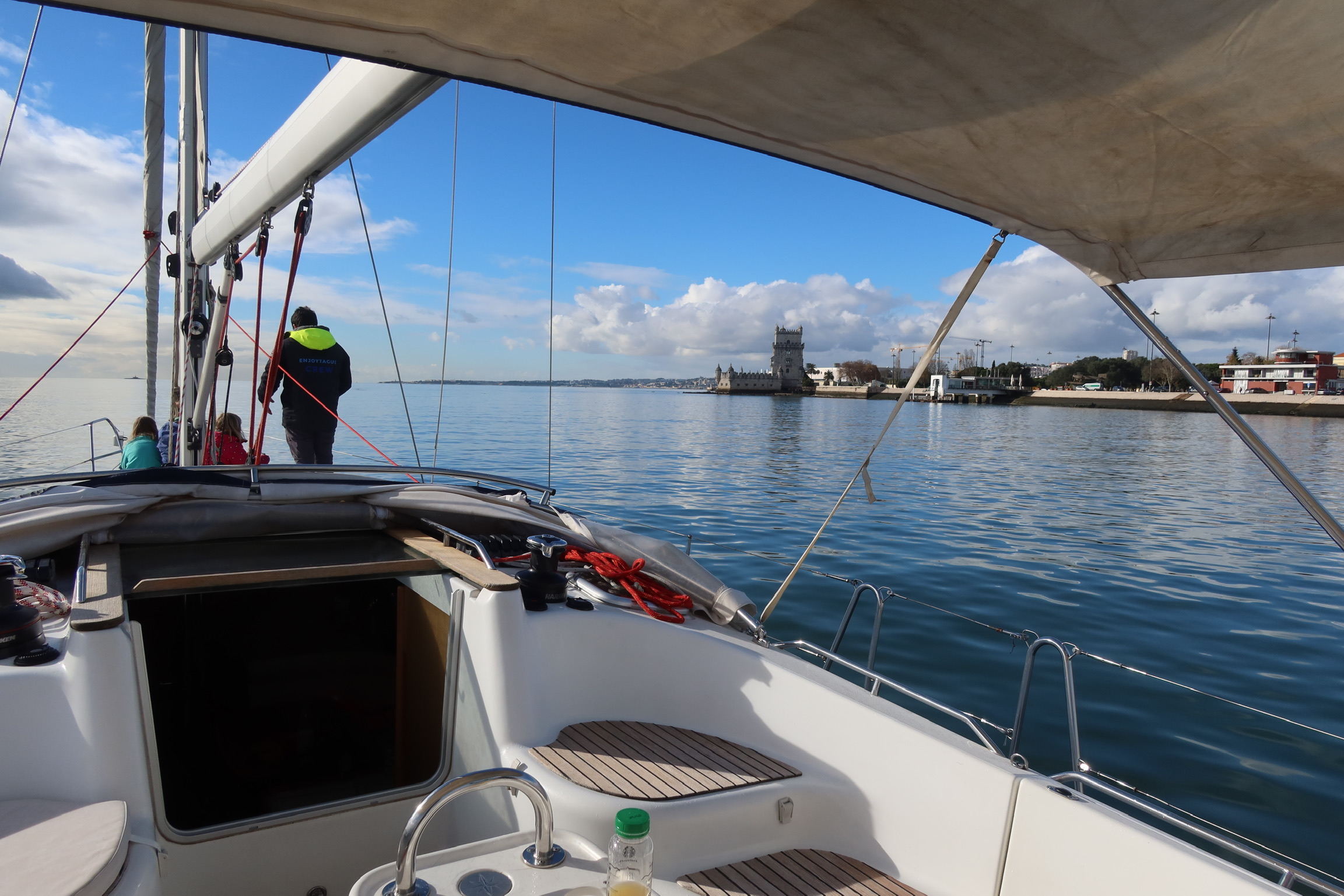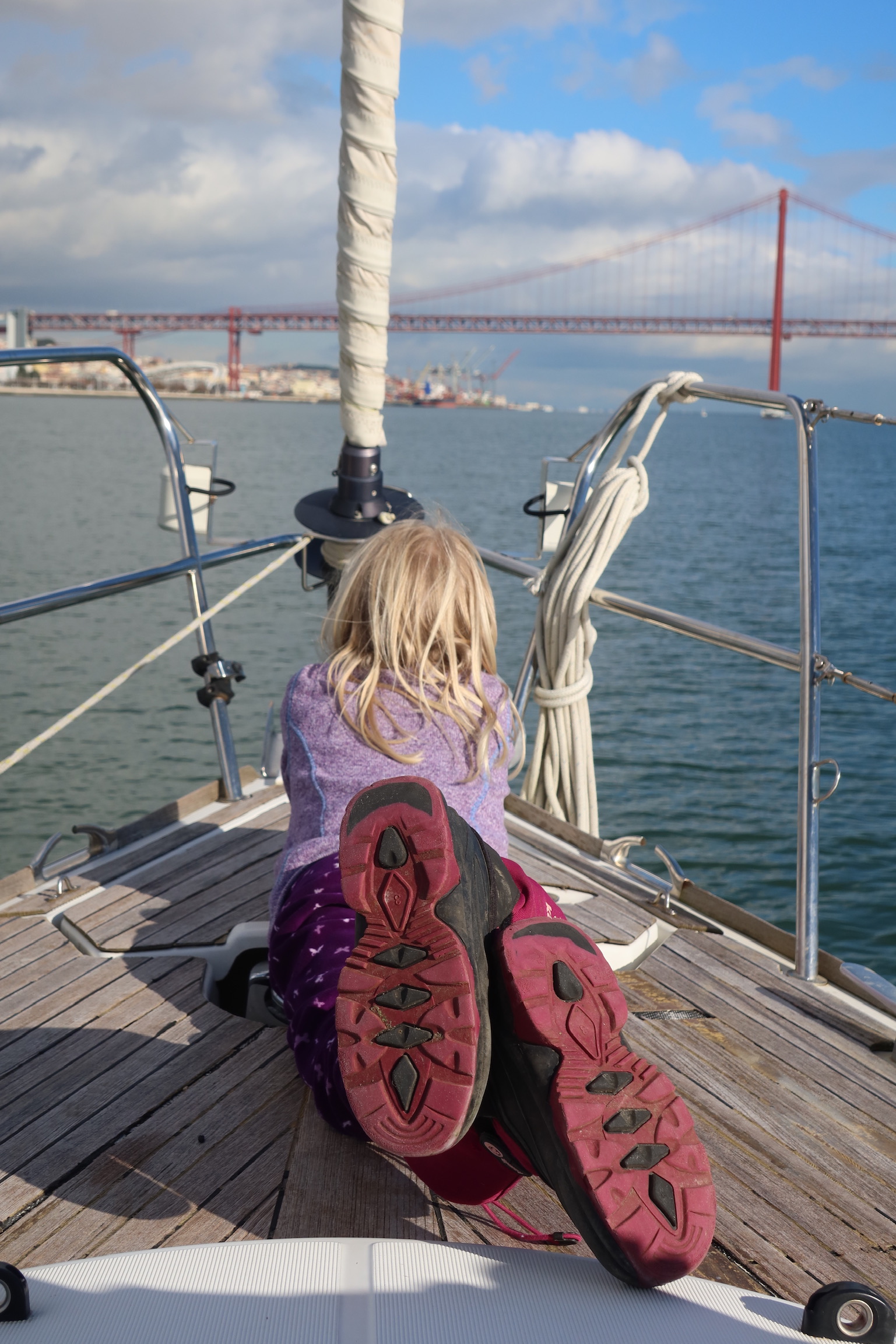 Then it was time to sail! We met up with Tiago and Tiago at the port and were pleasantly surprised by the beauty of the boat and the kindness of our hosts. It was a bit overcast/rainy when we started but quickly turned into a gorgeous afternoon. There wasn’t enough wind to put the sails out, so we just cruised along, enjoying the sunshine, calm seas and learning about Lisbon. It really was a wonderful afternoon and we all enjoyed ourselves more than expected! 🙂 Luisa spent a lot of time driving the boat, and Hannah and I sat on the bow almost the whole time. We also felt very safe, both as far as boat safety goes but also “coronavirus safe”. We know that the tourist industry all over the world has been decimated by this pandemic, so we are always happy when we find safe activities where we can support local tour operators. And we have met some lovely people here in Portugal through these type of experiences. Win, win.