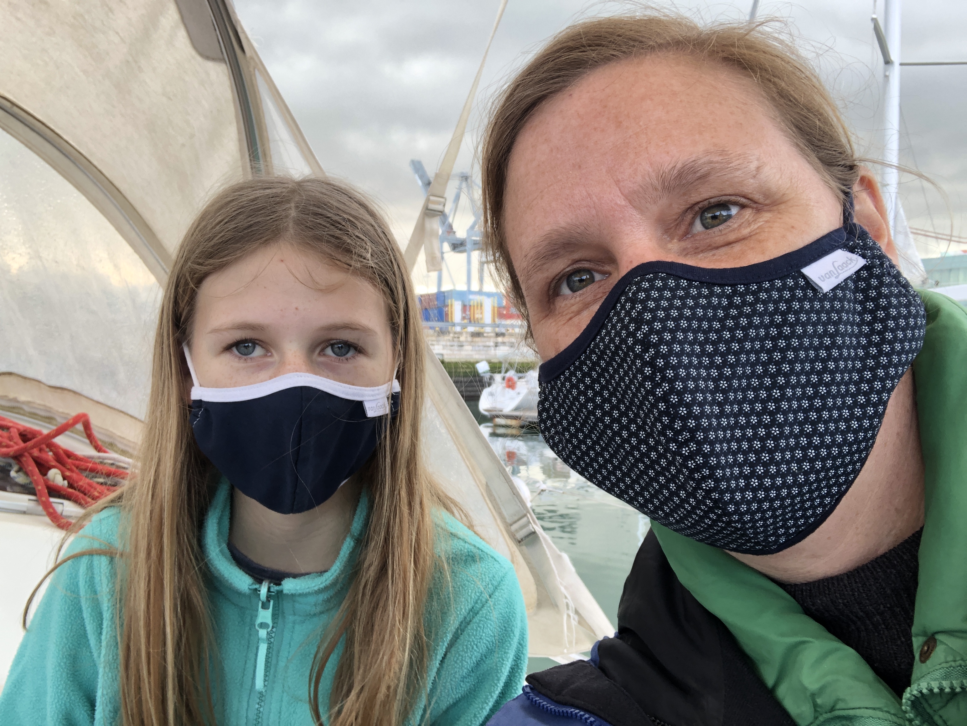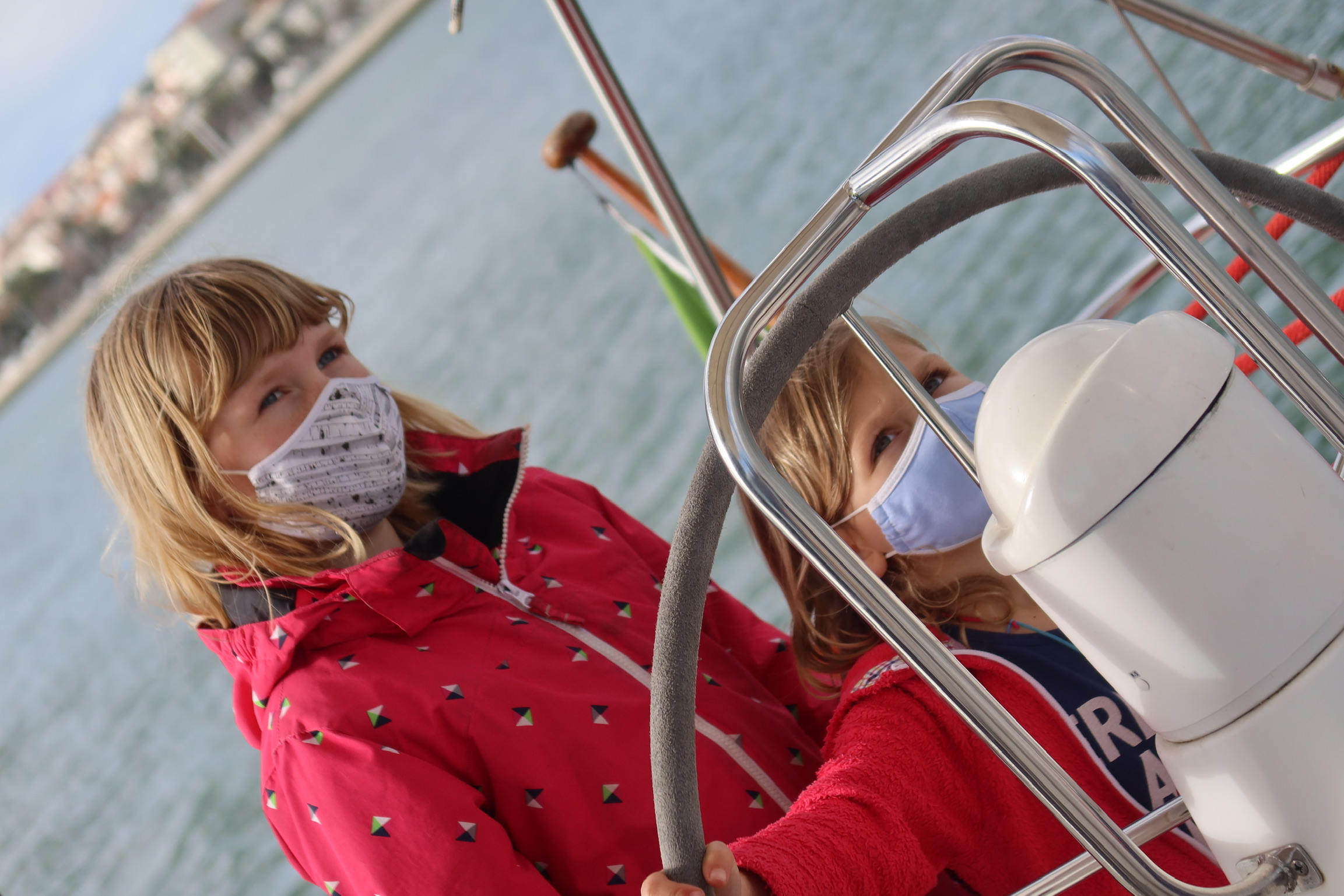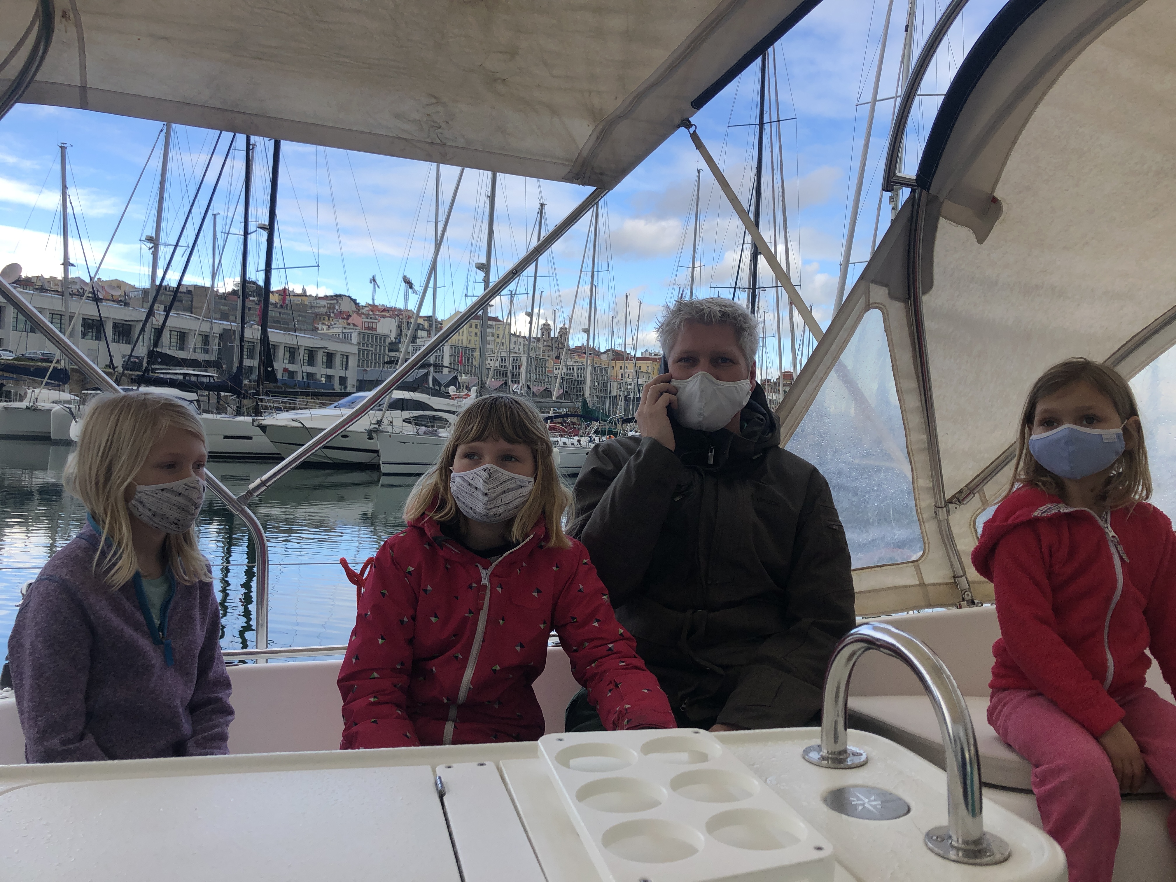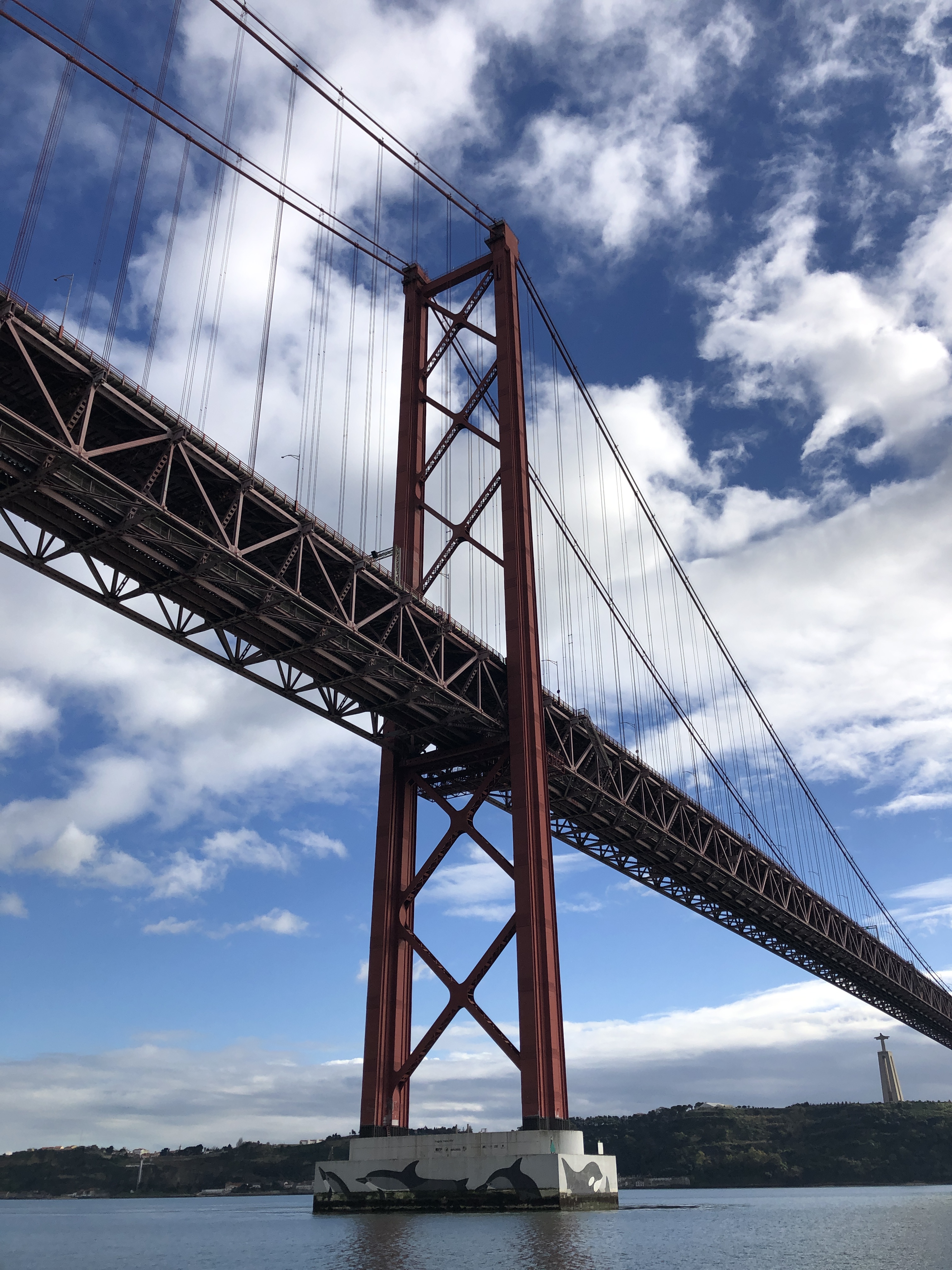 Then it was time to sail! We met up with Tiago and Tiago at the port and were pleasantly surprised by the beauty of the boat and the kindness of our hosts. It was a bit overcast/rainy when we started but quickly turned into a gorgeous afternoon. There wasn’t enough wind to put the sails out, so we just cruised along, enjoying the sunshine, calm seas and learning about Lisbon. It really was a wonderful afternoon and we all enjoyed ourselves more than expected! 🙂 Luisa spent a lot of time driving the boat, and Hannah and I sat on the bow almost the whole time. We also felt very safe, both as far as boat safety goes but also “coronavirus safe”. We know that the tourist industry all over the world has been decimated by this pandemic, so we are always happy when we find safe activities where we can support local tour operators. And we have met some lovely people here in Portugal through these type of experiences. Win, win.