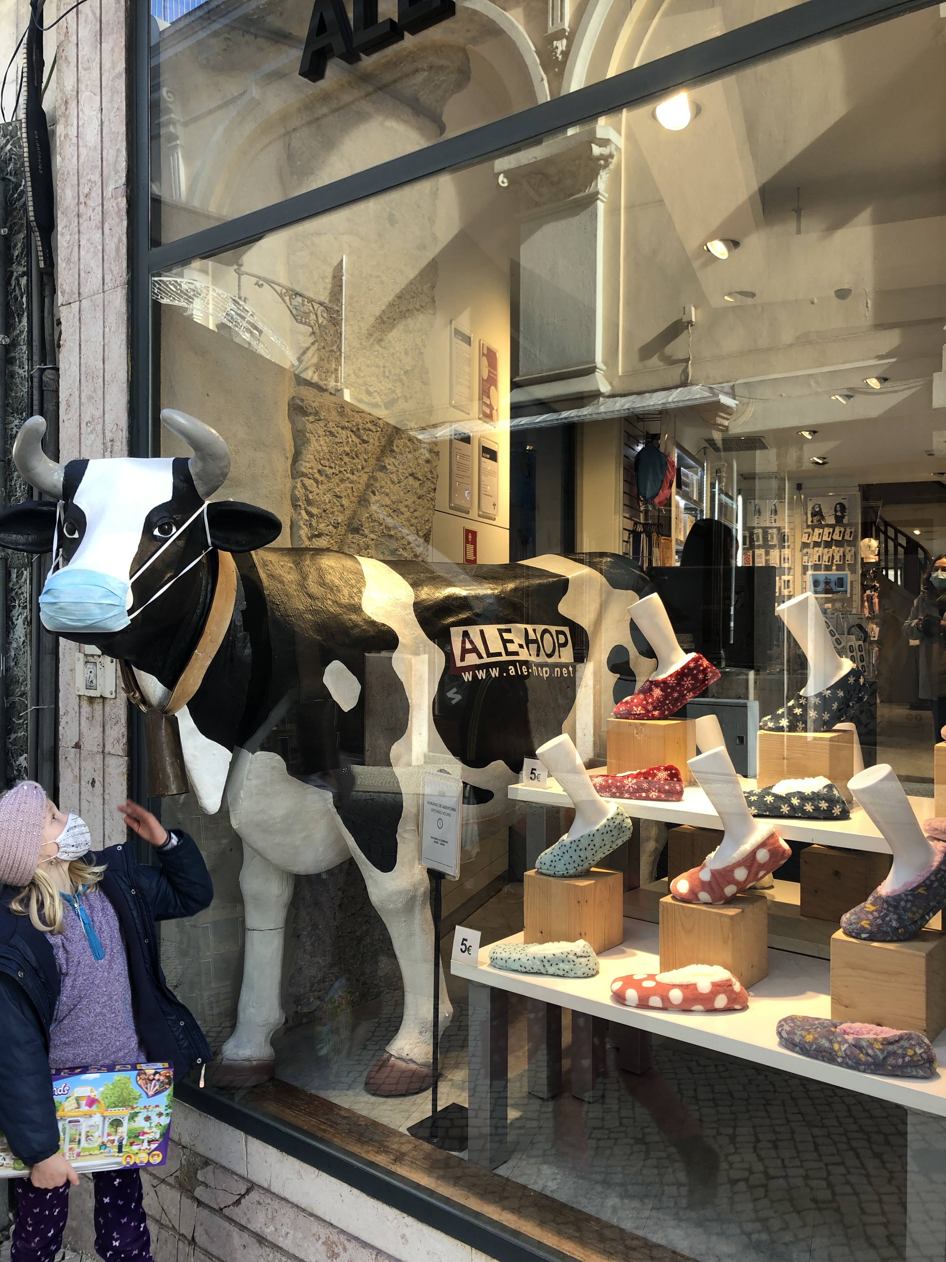 Afterwards we went back into the city for some dinner and a bit of shopping. They still had all their holiday lights up, so it looked particularly gorgeous in the evening. Though it did get more crowded than we are currently comfortable with, so we headed back to Nazaré after an hour or so. I’m so glad we were able to get a glimpse of Lisbon–it is definitely somewhere we would love to spend more time in at some point.