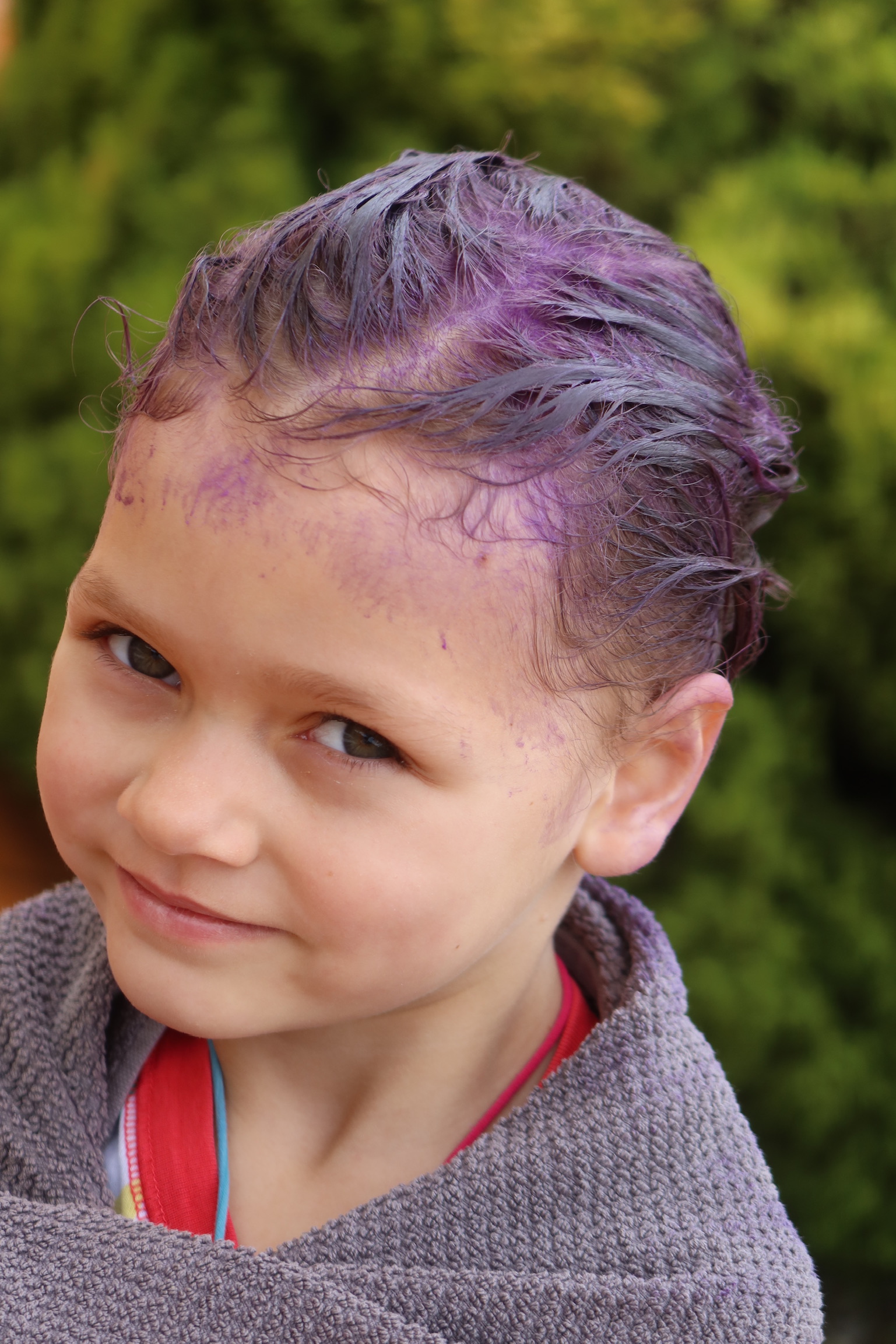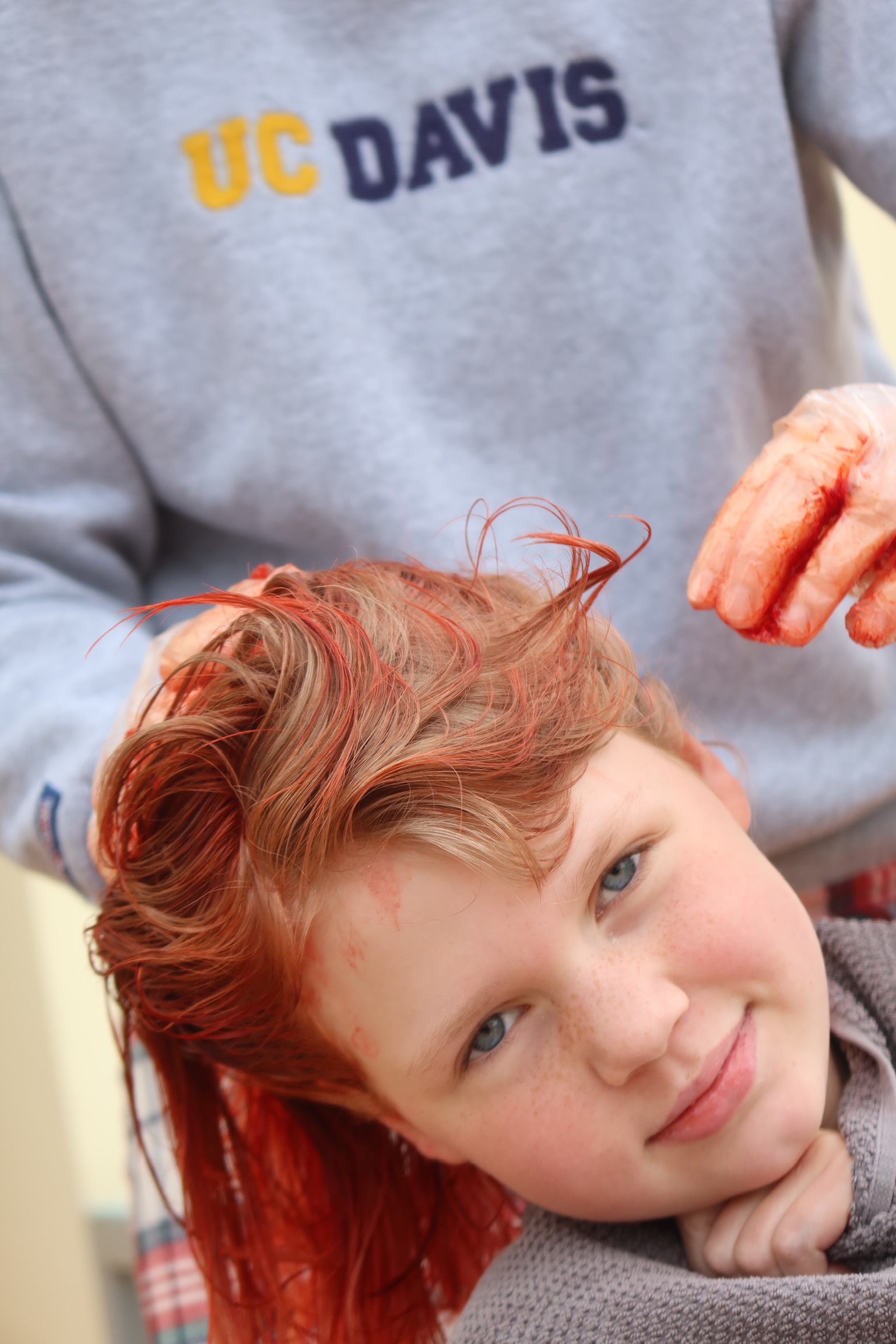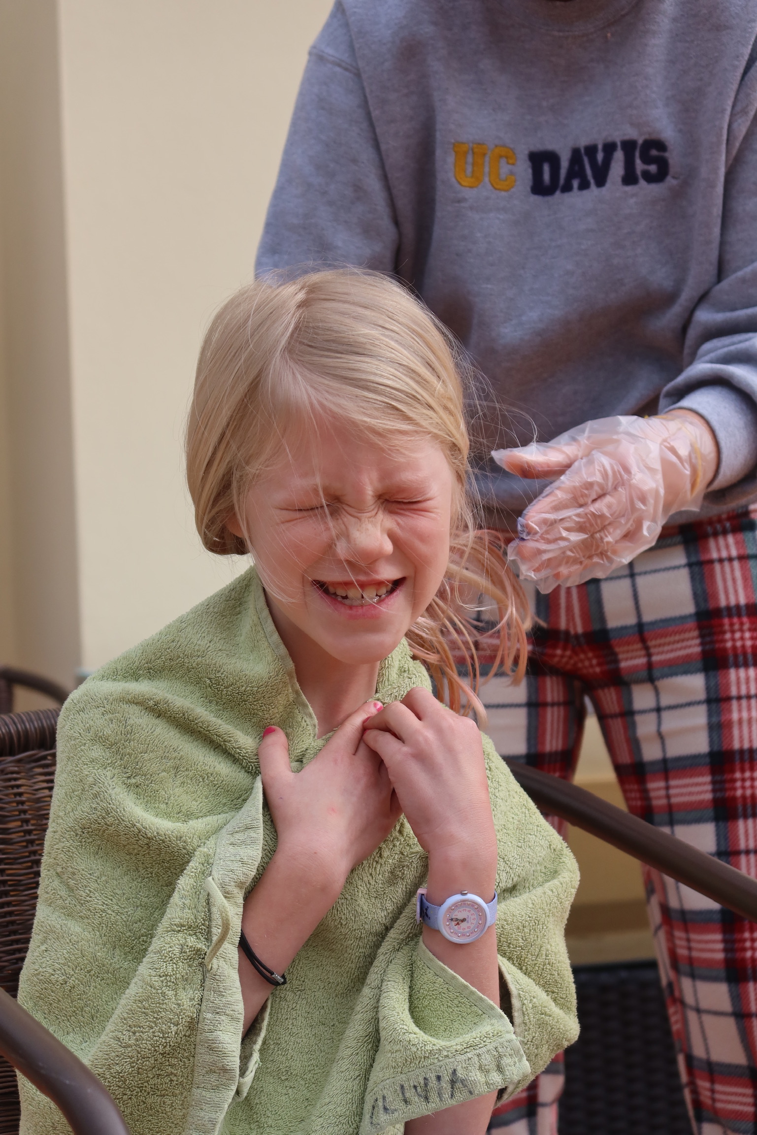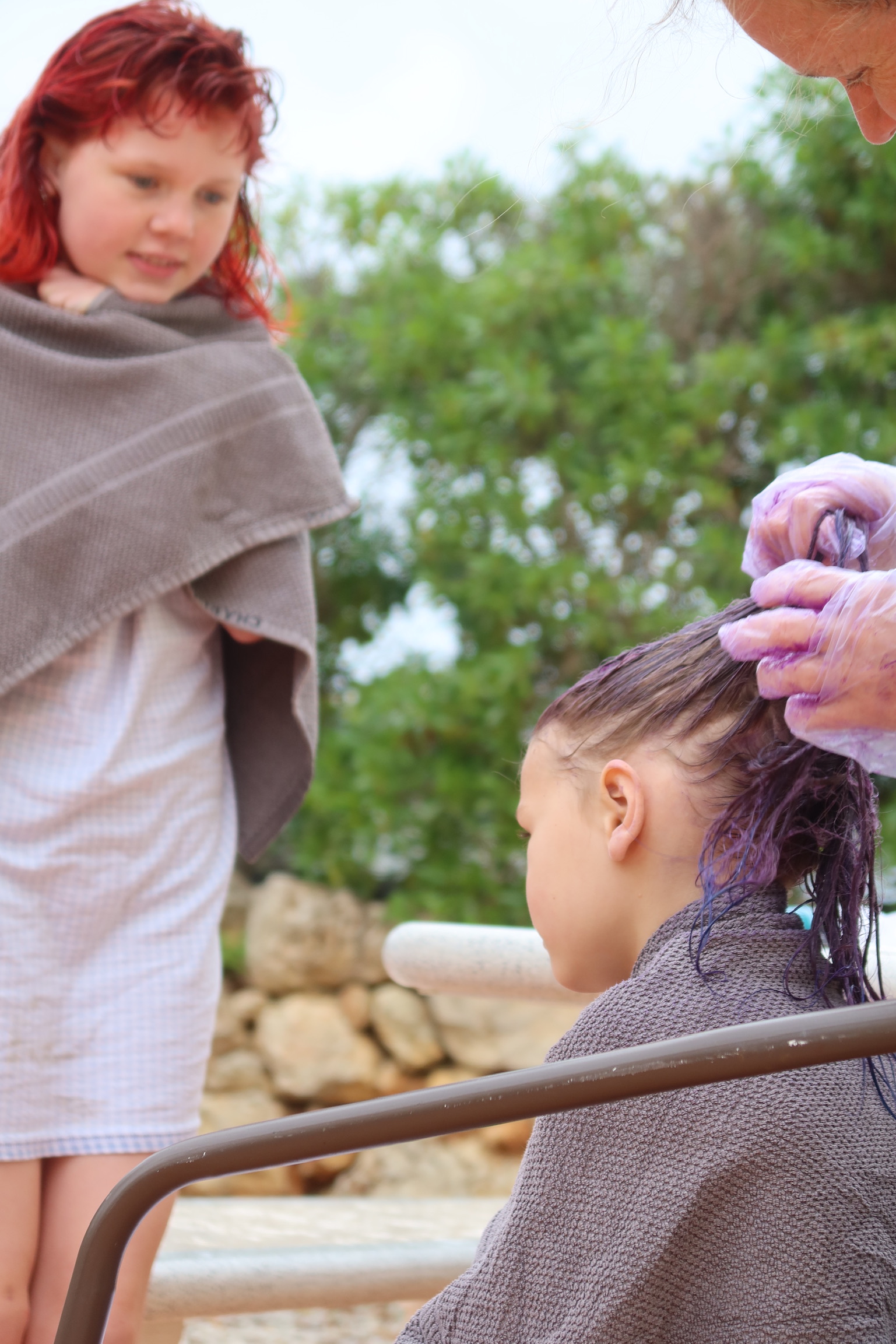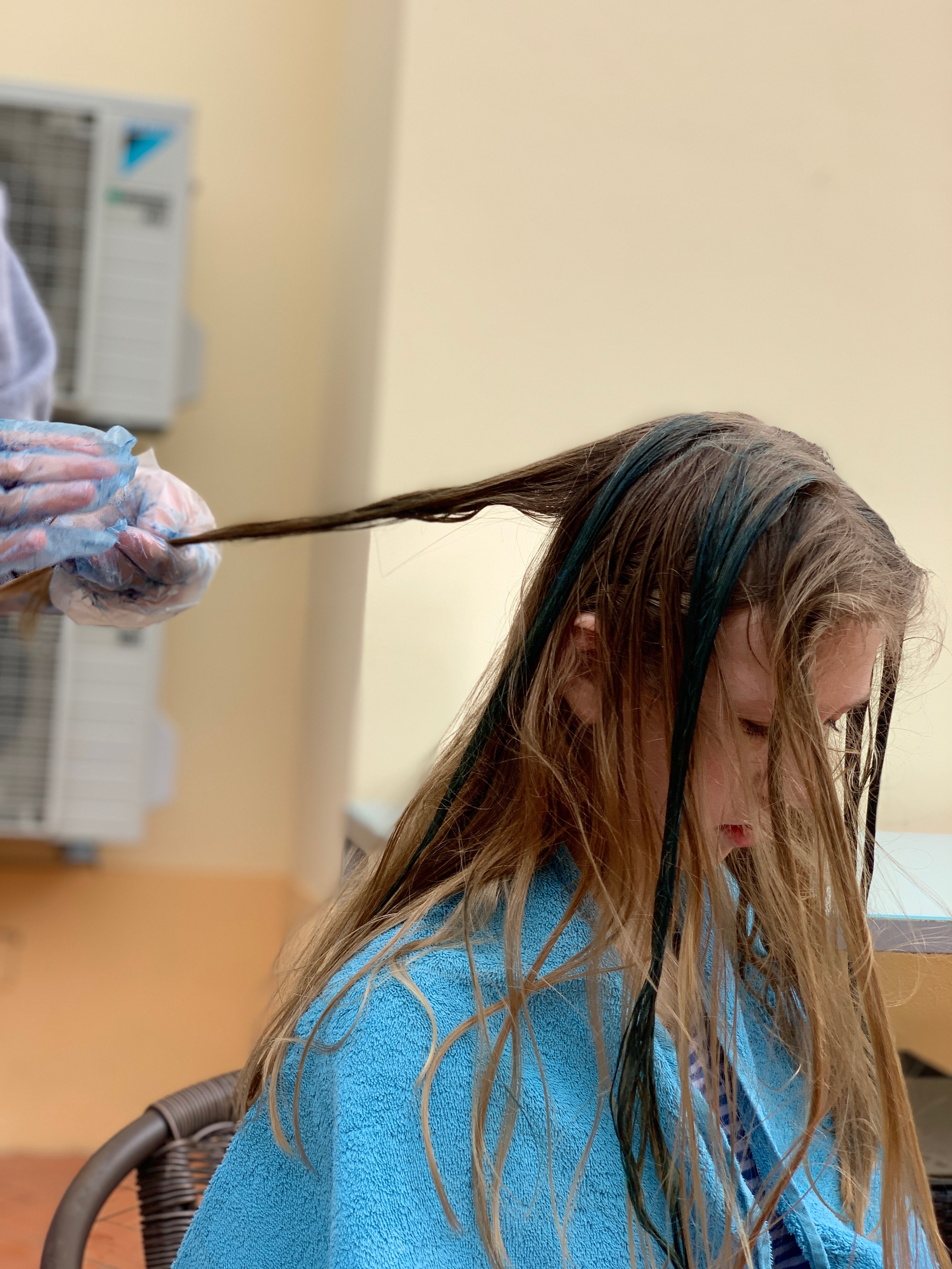 The next highlight was hair dyeing! Olivia had asked if she could dye her hair red so I looked at what I could find at the grocery store and found some fun, washable dye. So one Saturday morning in lockdown, that was our activity. All the girls and Steffen got into the fun (I was the official hairdresser). It’s been about 10 days so everyone’s is fading, but you can still see it.