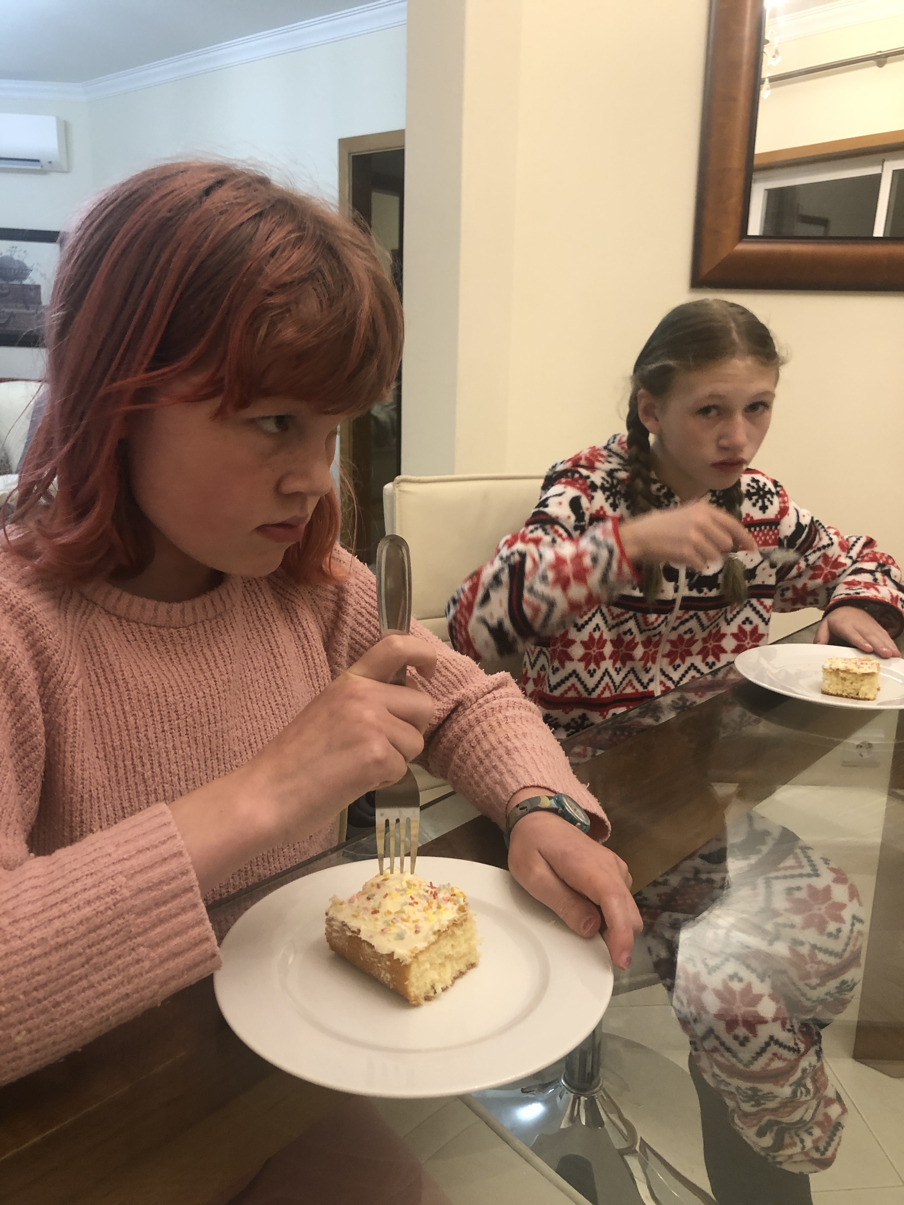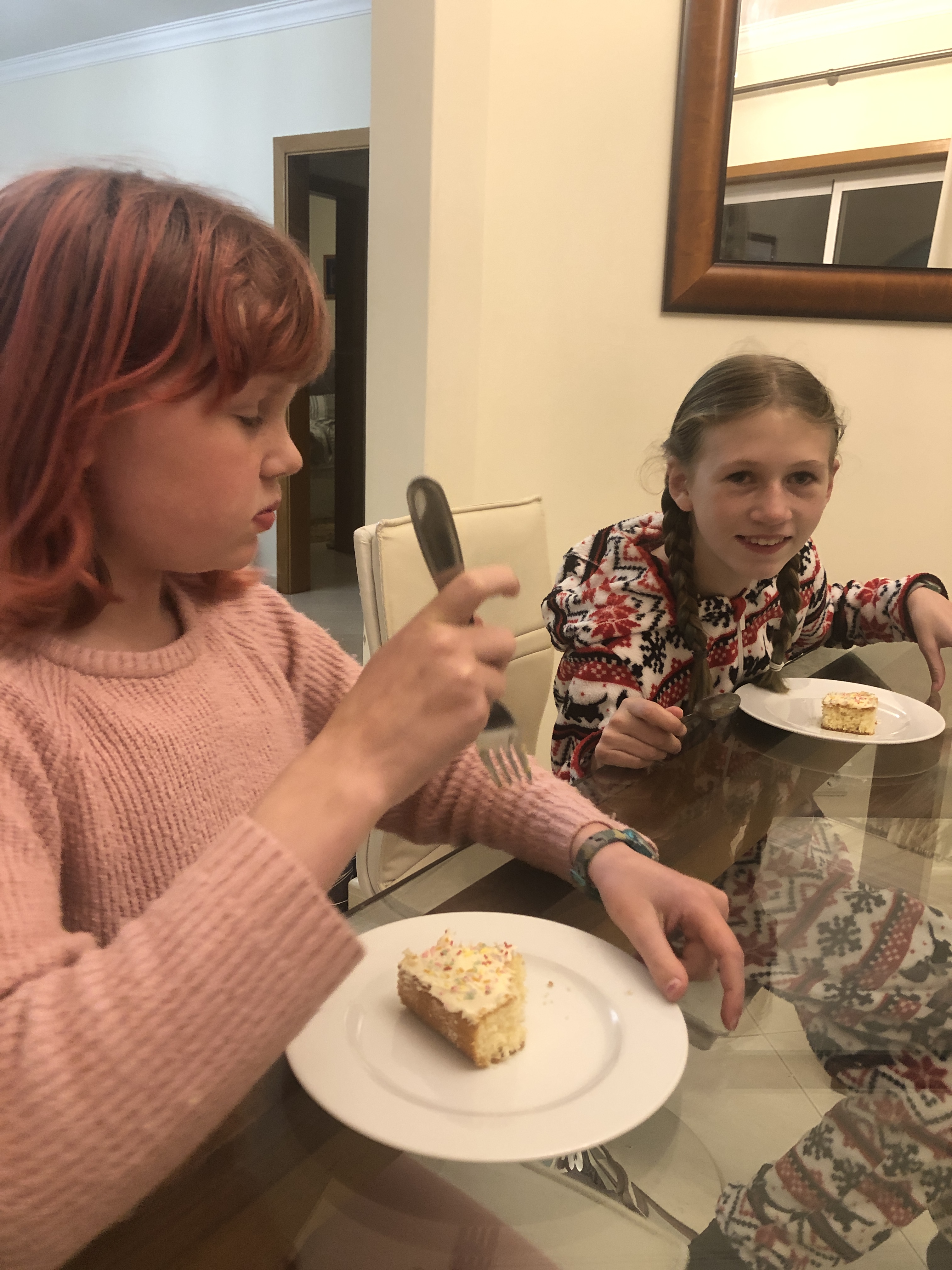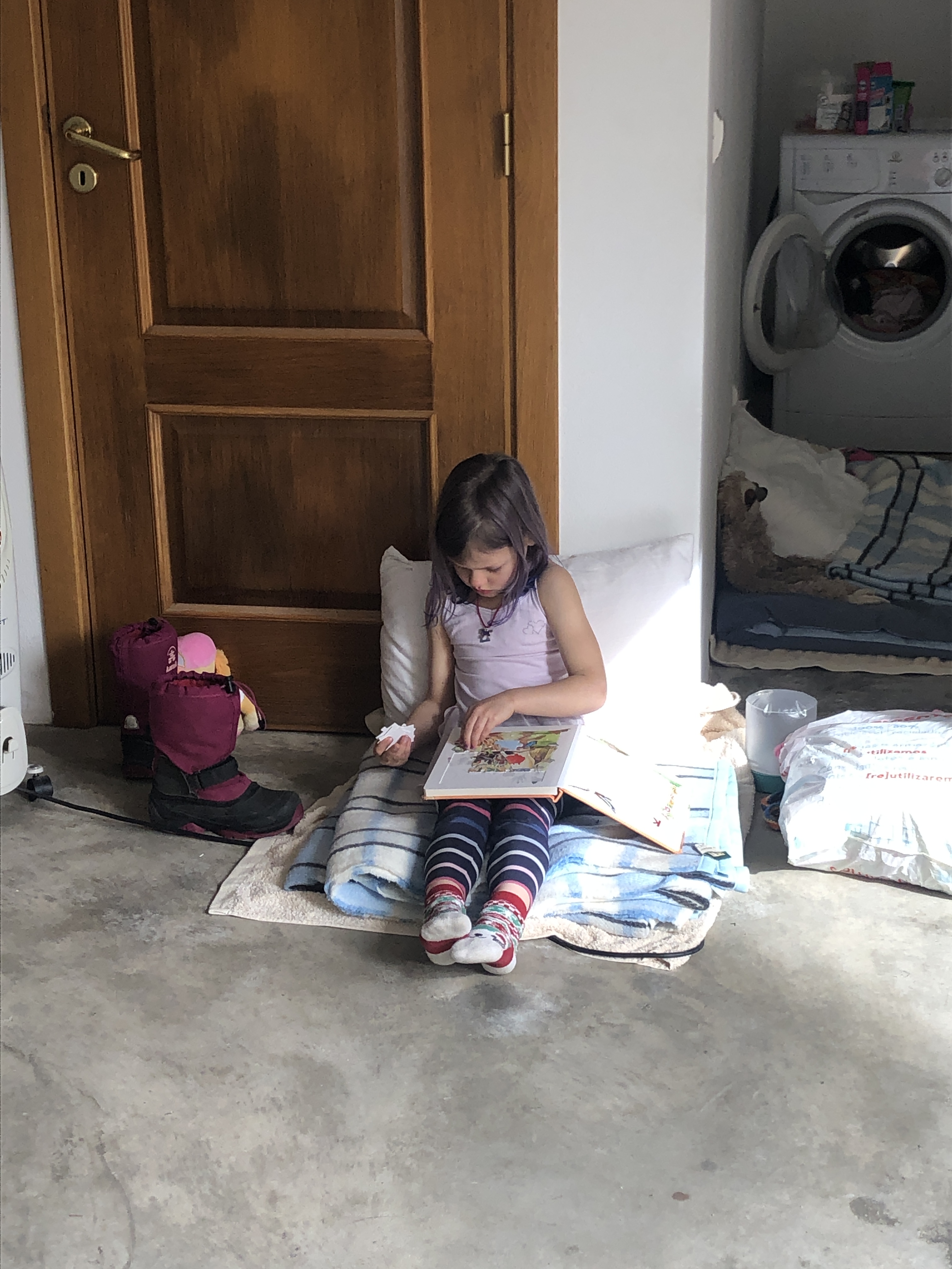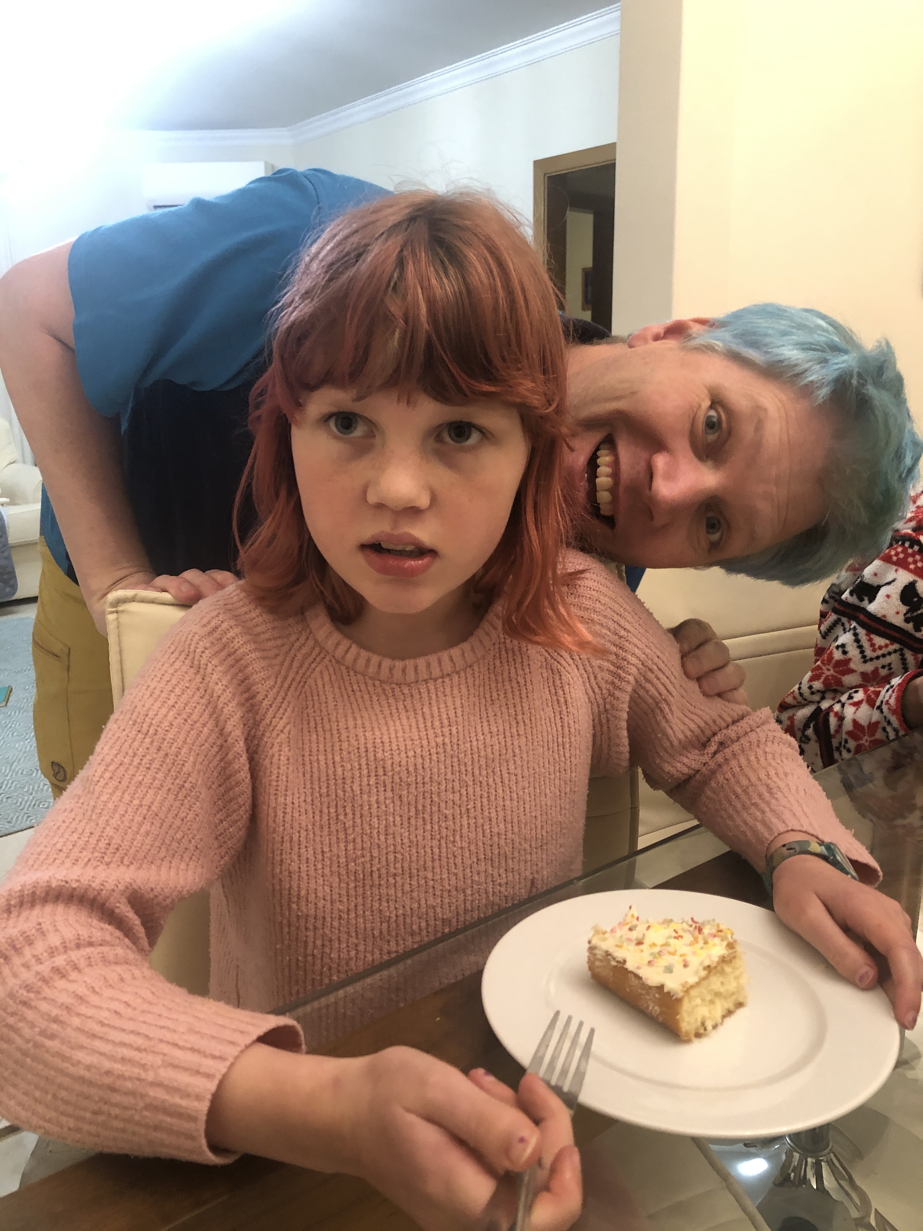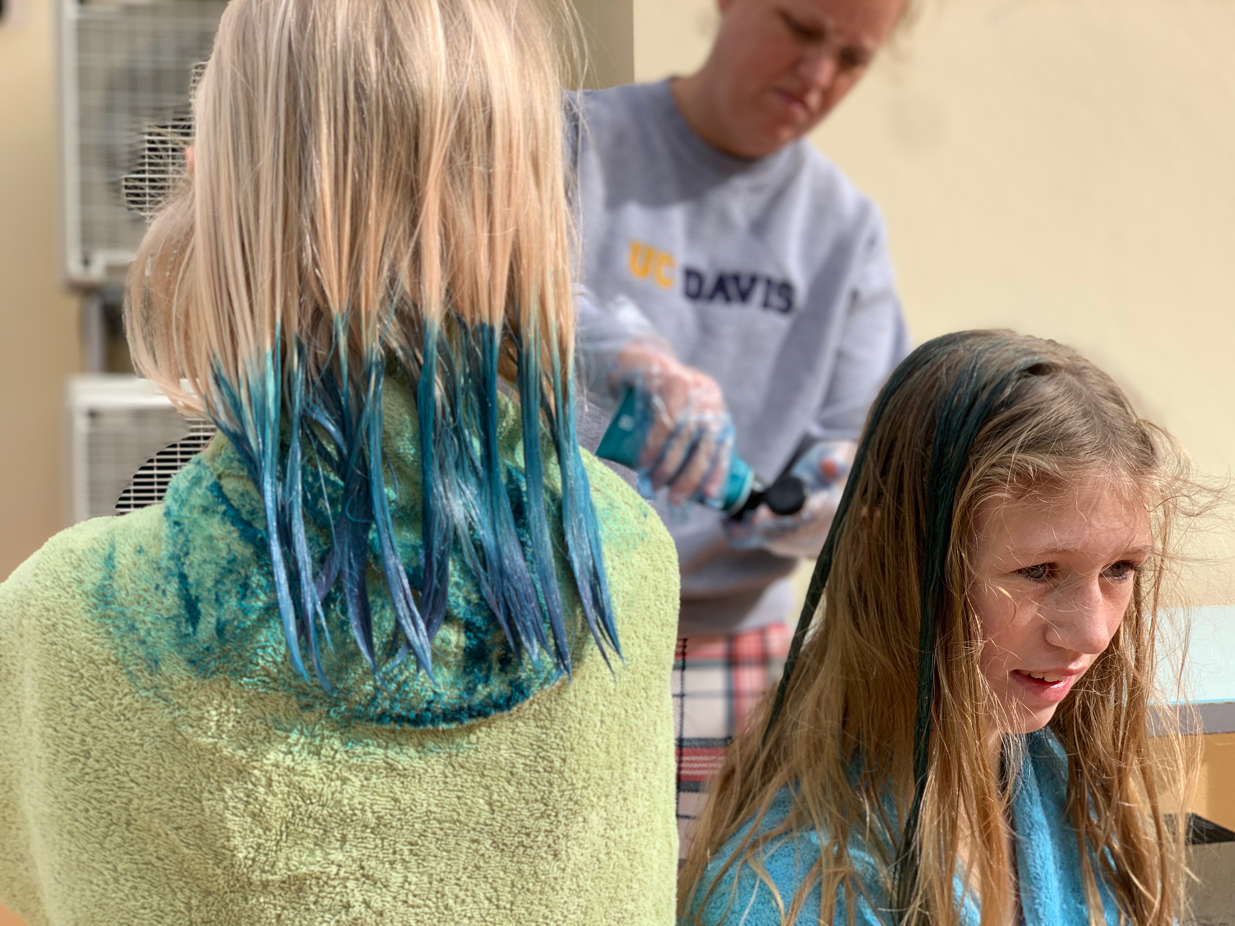 The next highlight was hair dyeing! Olivia had asked if she could dye her hair red so I looked at what I could find at the grocery store and found some fun, washable dye. So one Saturday morning in lockdown, that was our activity. All the girls and Steffen got into the fun (I was the official hairdresser). It’s been about 10 days so everyone’s is fading, but you can still see it.