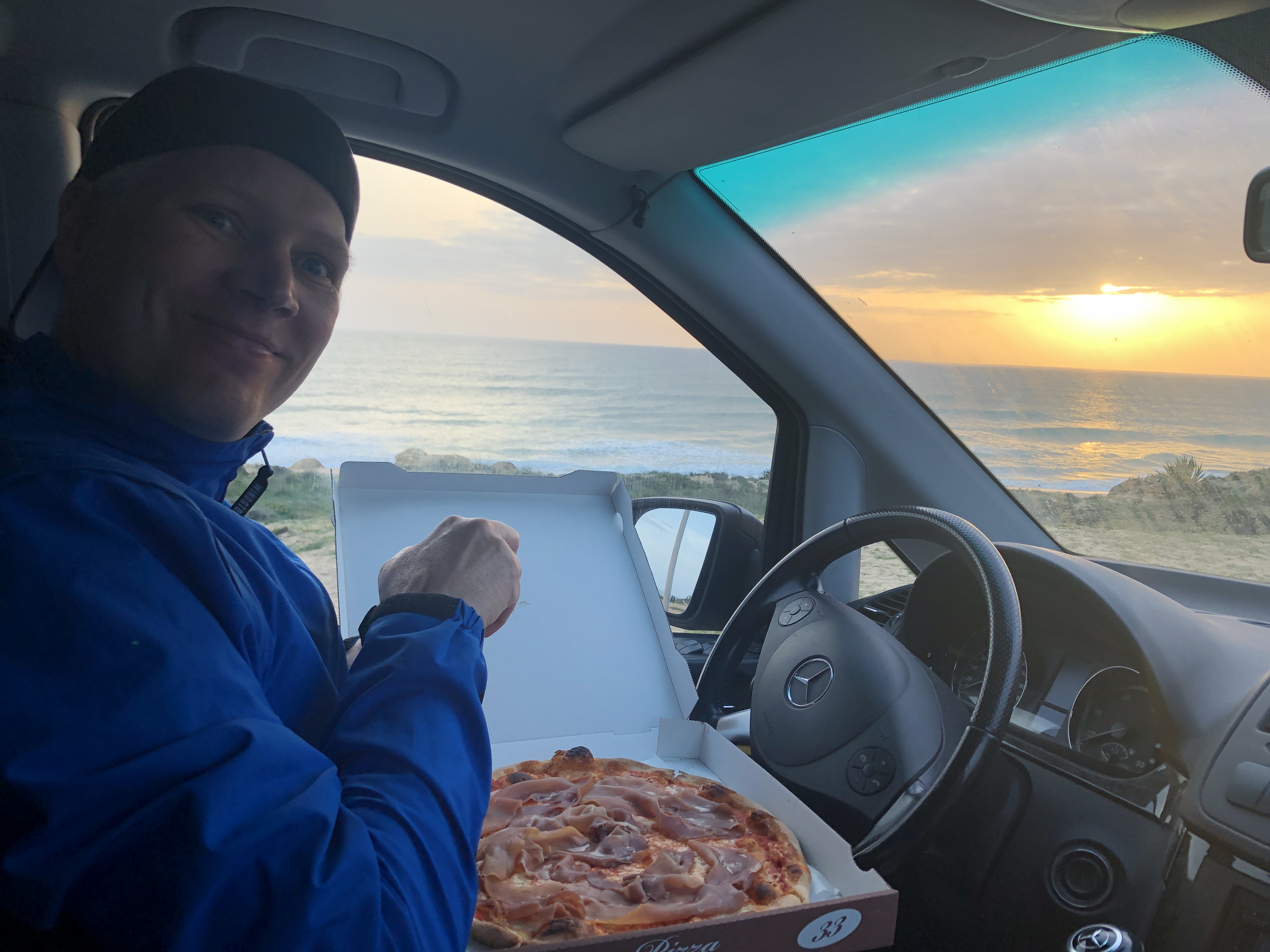 on the last evening we picked up pizza to go and drove down to the beach for the sunset