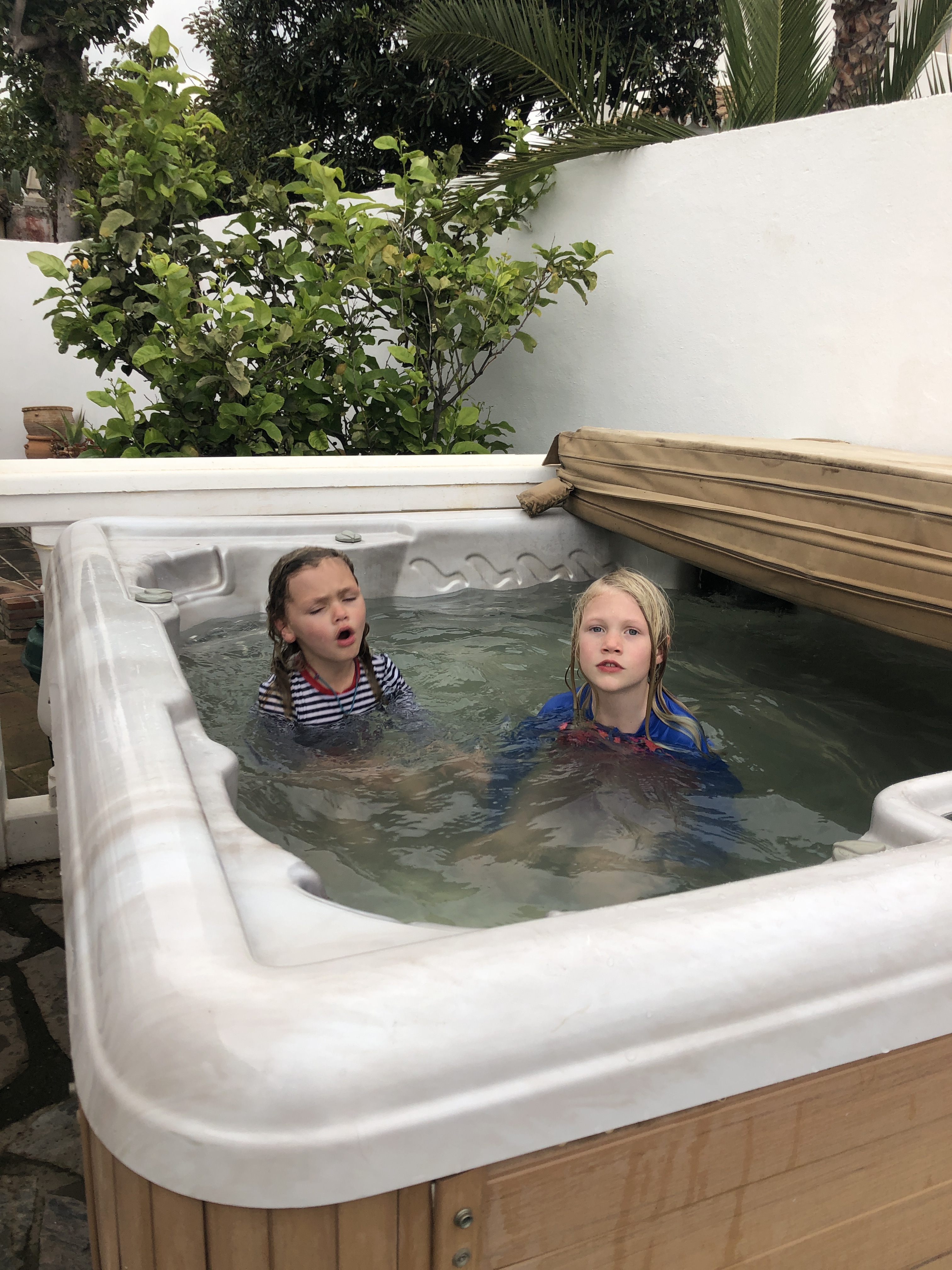 The house we have rented is very spacious (each girl has her own room!), has a (cold) pool, hot tub and ocean view. The beach is a 2 minute walk from the house (though not the cleanest, so we will have to look around and see if there is a nicer one nearby). More places are open than in Portugal, so the girls and I have been eager to get out of the house a bit. Yesterday Hannah and I had a date at a department store where we picked up some things we “needed”, including treats at Starbucks. Today Olivia, Luisa and I went! Charlotte is very much a homebody so was happy to stay home, bake a cake and chat with her best friend. Hopefully things will stay open and we will be able to explore over the next few weeks.