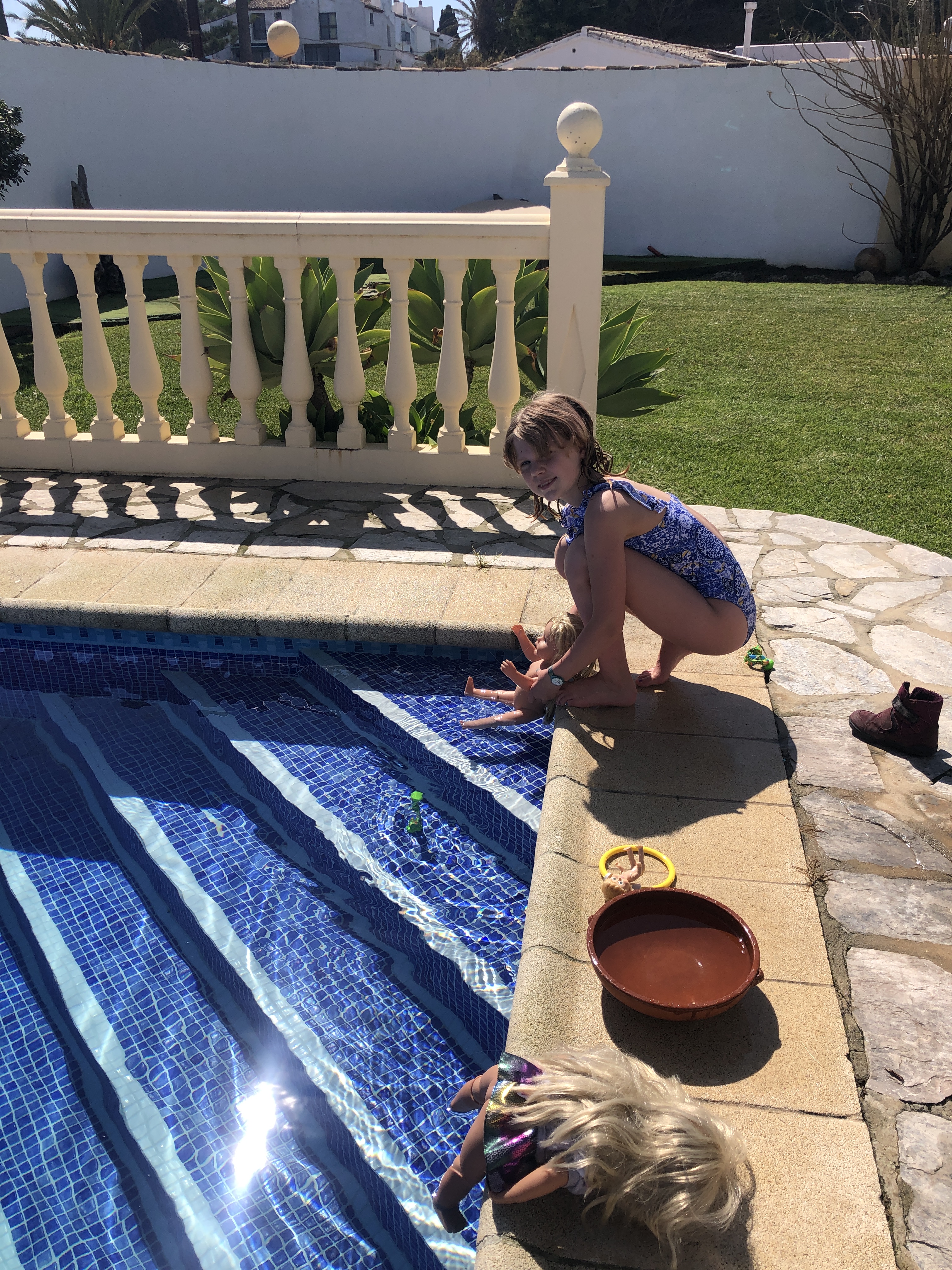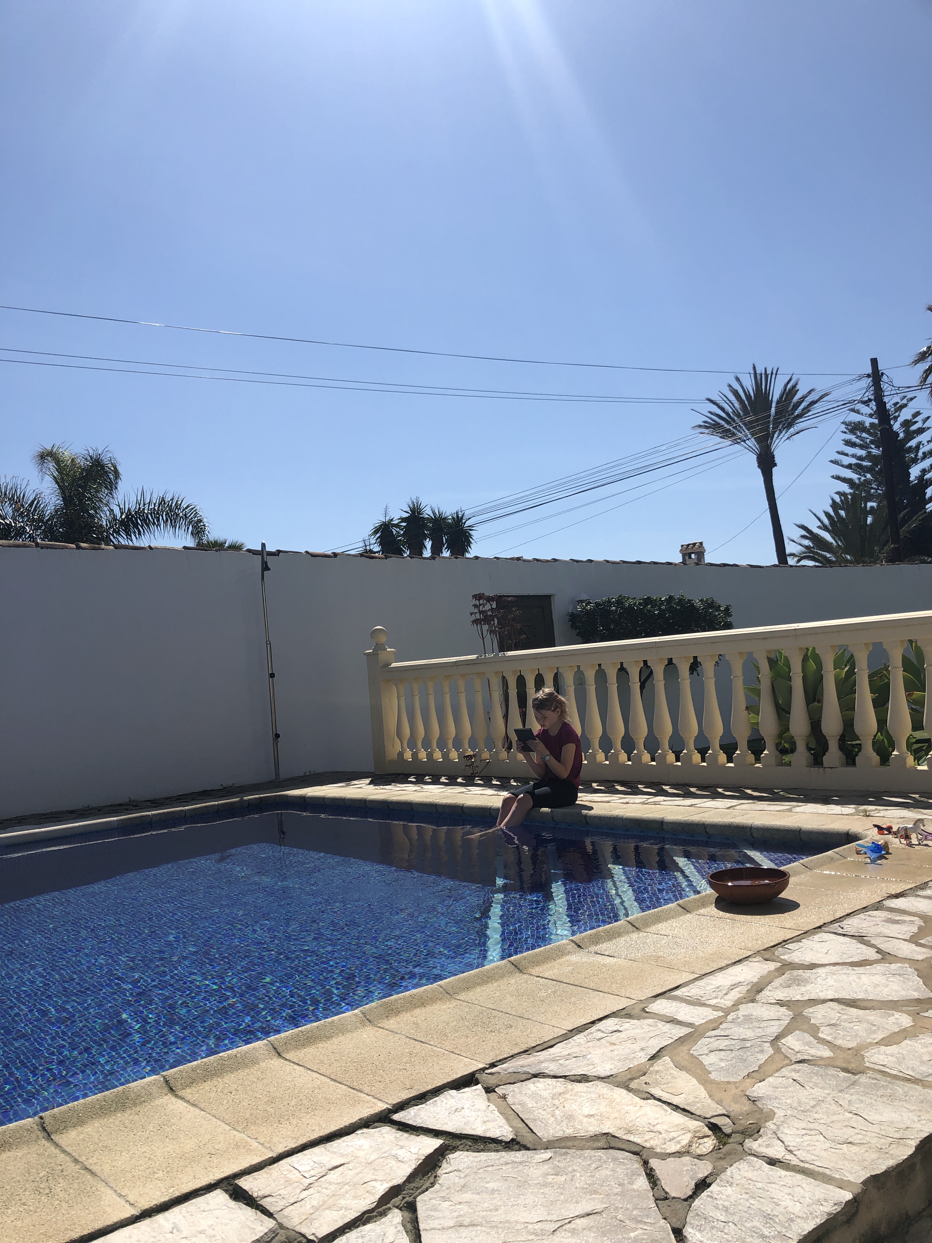 We have been in Spain just over two weeks, and we’ve been enjoying ourselves a lot. The house is perfect (the girls are swimming every day!) and we’ve explored the area a bit. As far as coronavirus restrictions go, things are pretty open here. Restaurants need to close at 6pm but are open (for indoor dining) during the day, all stores are open and various activities. It is a nice change from lockdown and tempting to go out all the time, but we are still trying to stay as safe as possible.