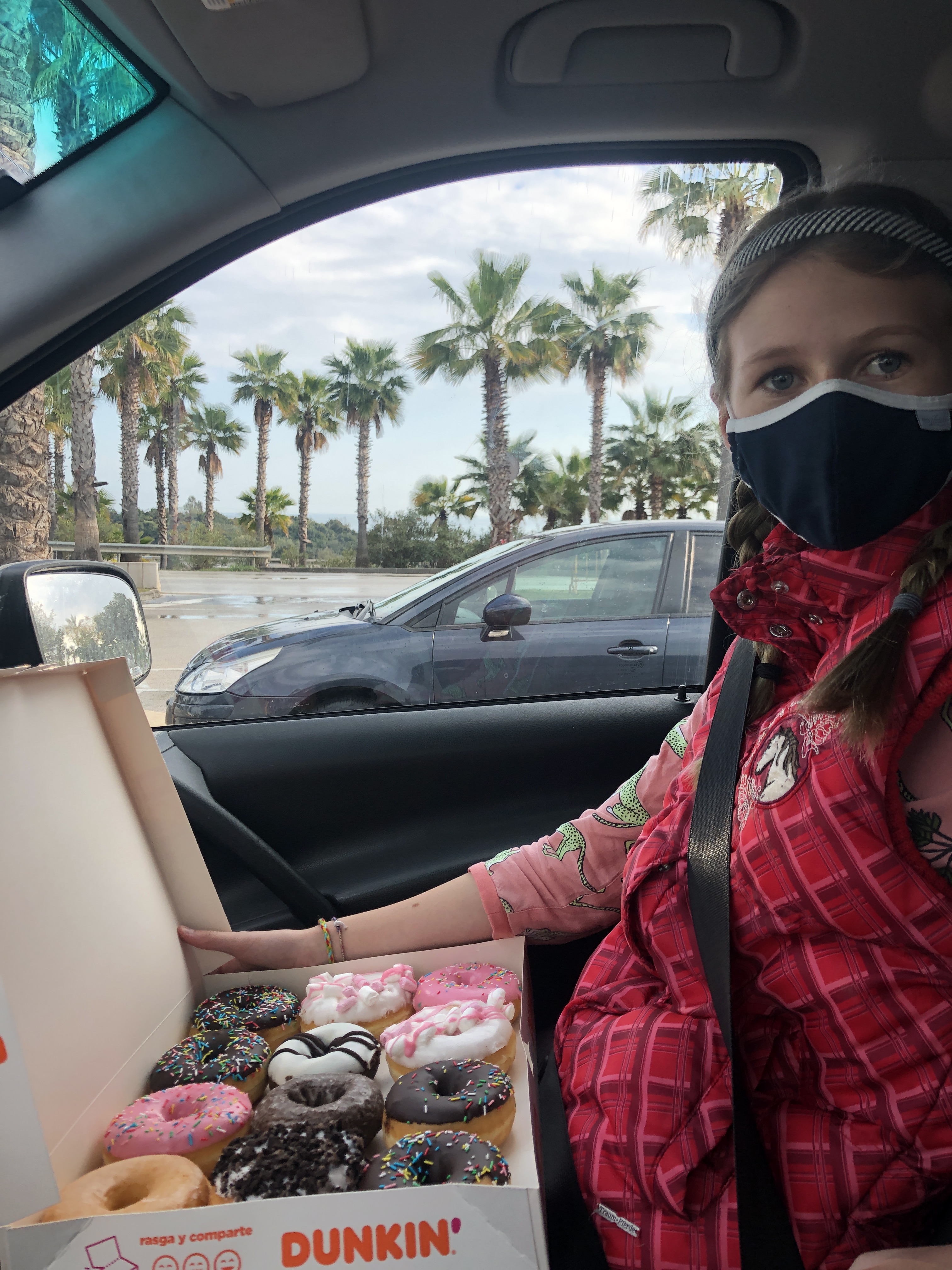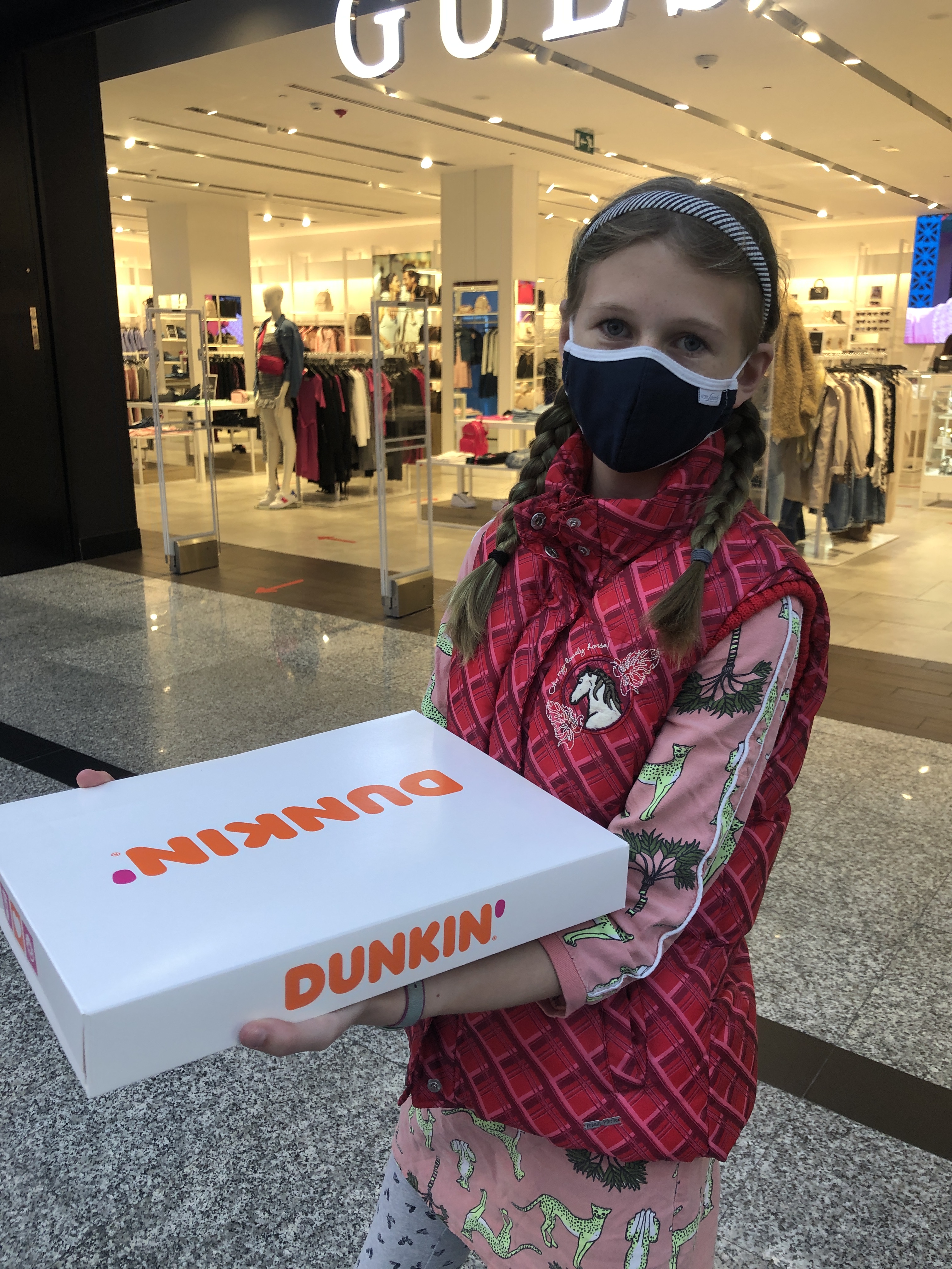 Hannah and I have been enjoying exploring some different shopping centres in the area and found one with a Dunkin’ Donuts (the girls’ favorite). Hannah convinced me 12 donuts are better than 6….