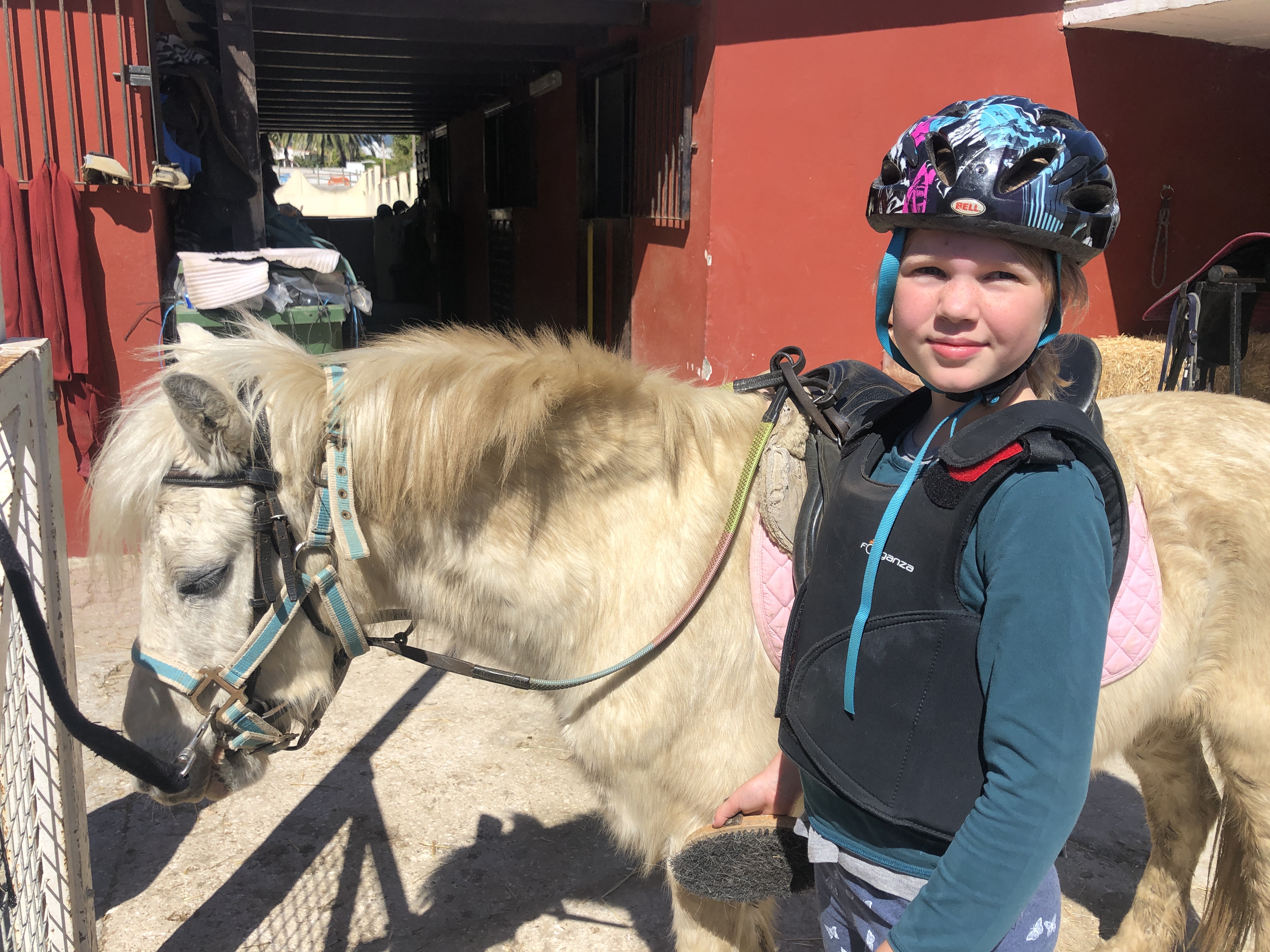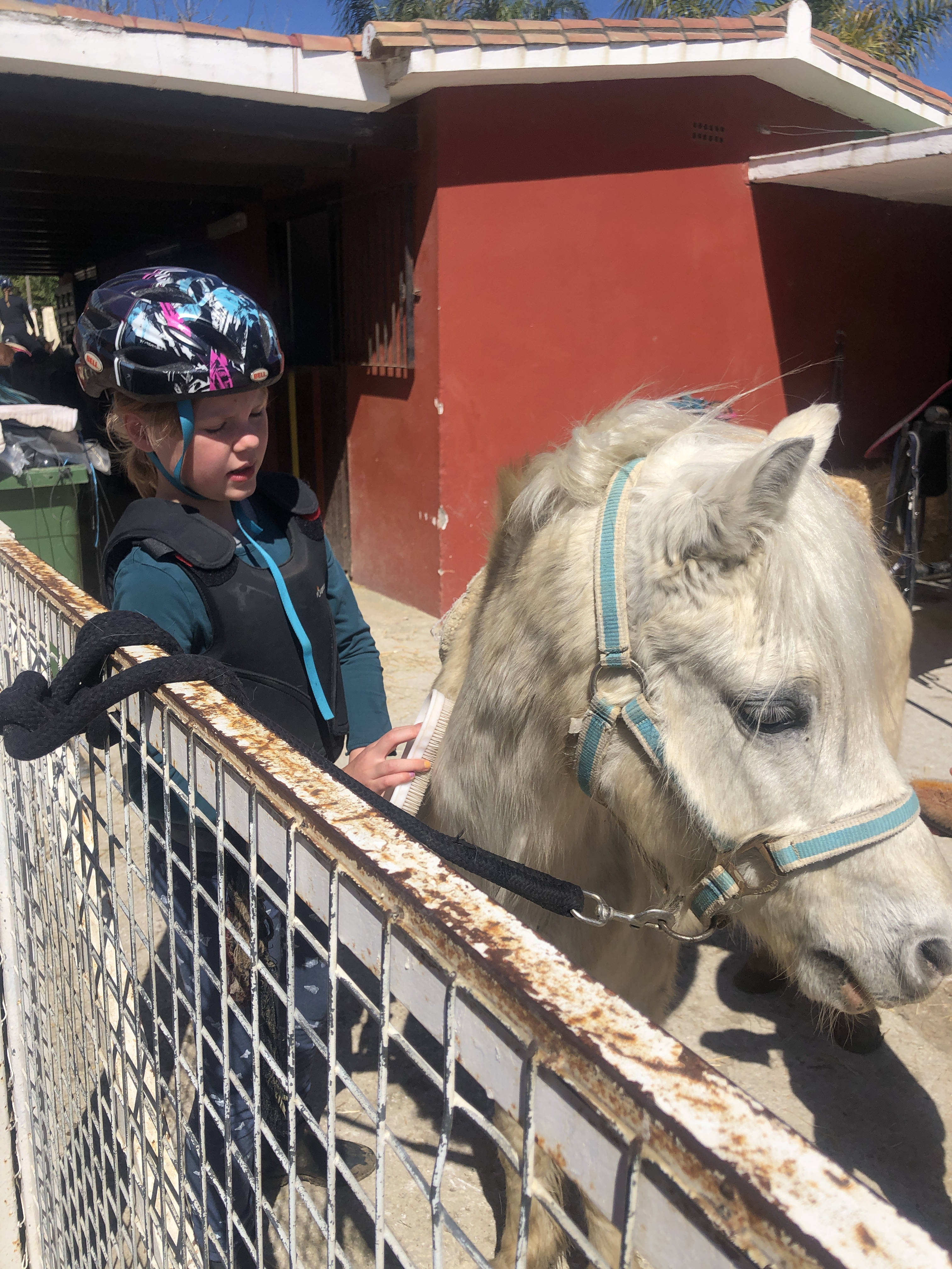 A found a riding school nearby and signed all four girls up for a 45 minute lesson last Friday afternoon that turned into two hours. After getting the horses ready, they rode in the arena for about an hour, and then rode down to the beach which was so gorgeous (but I forgot my phone). They loved it! So much so that we signed them up for a three-day camp over the upcoming spring break and extended our stay here one more week.