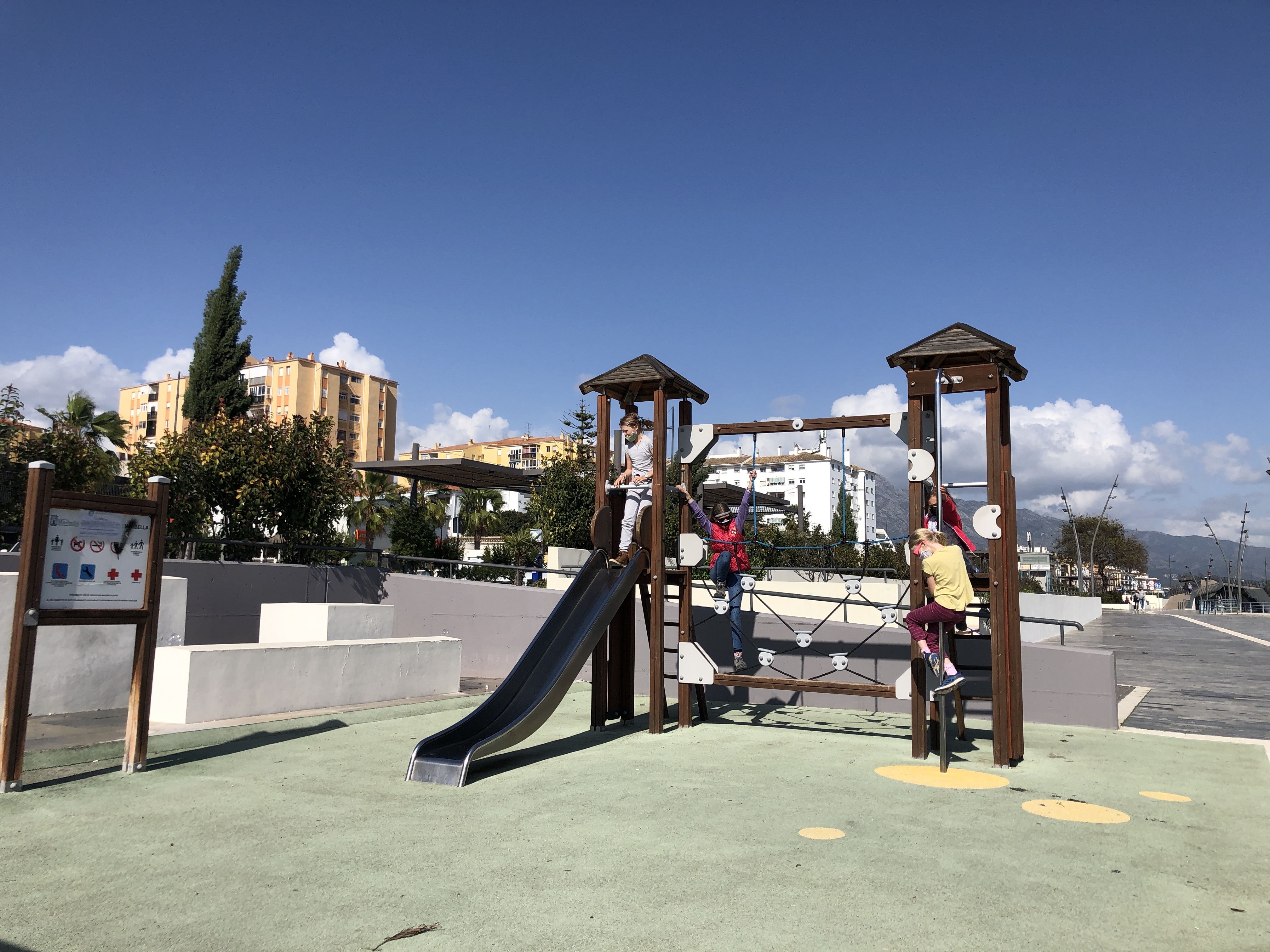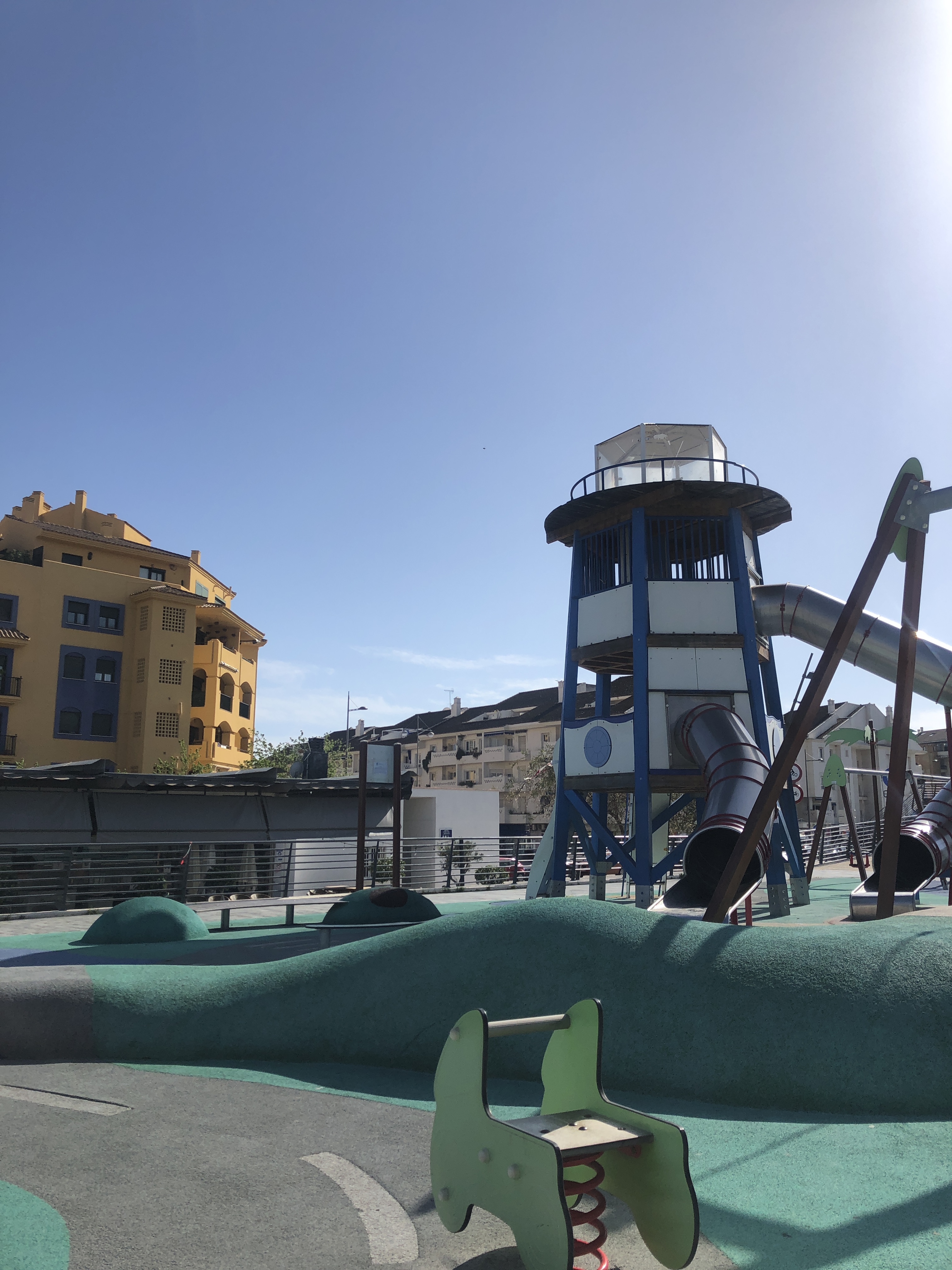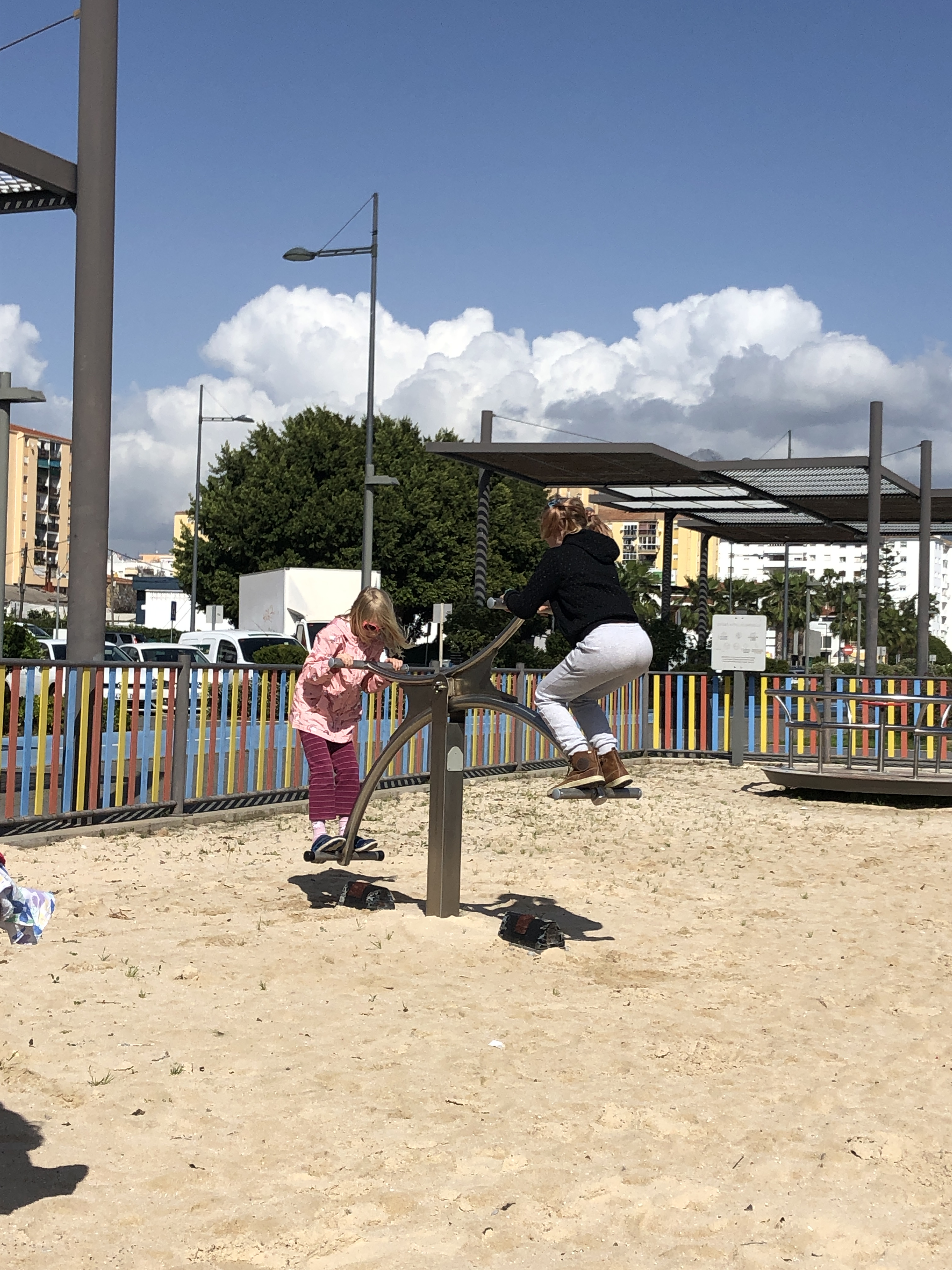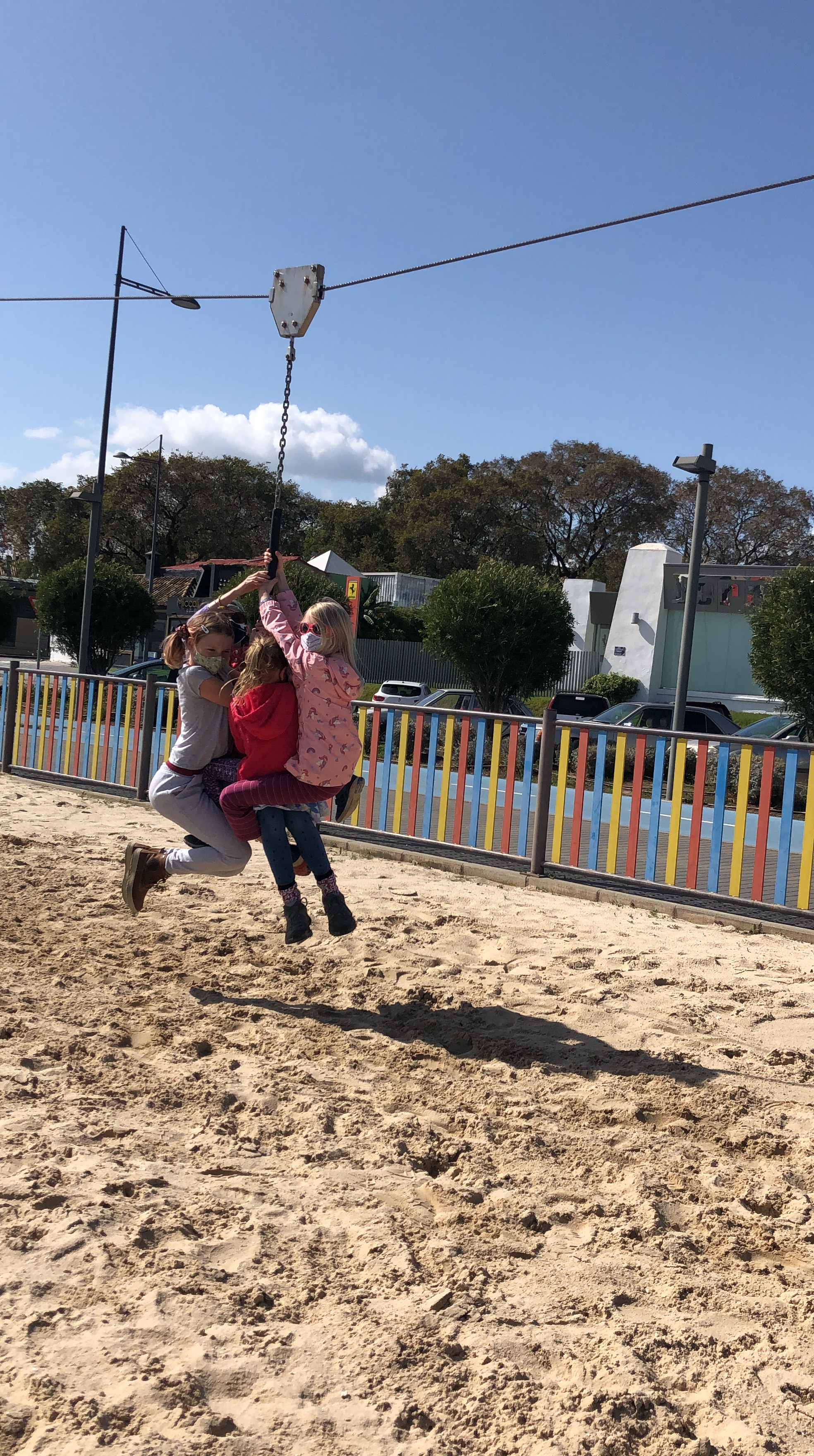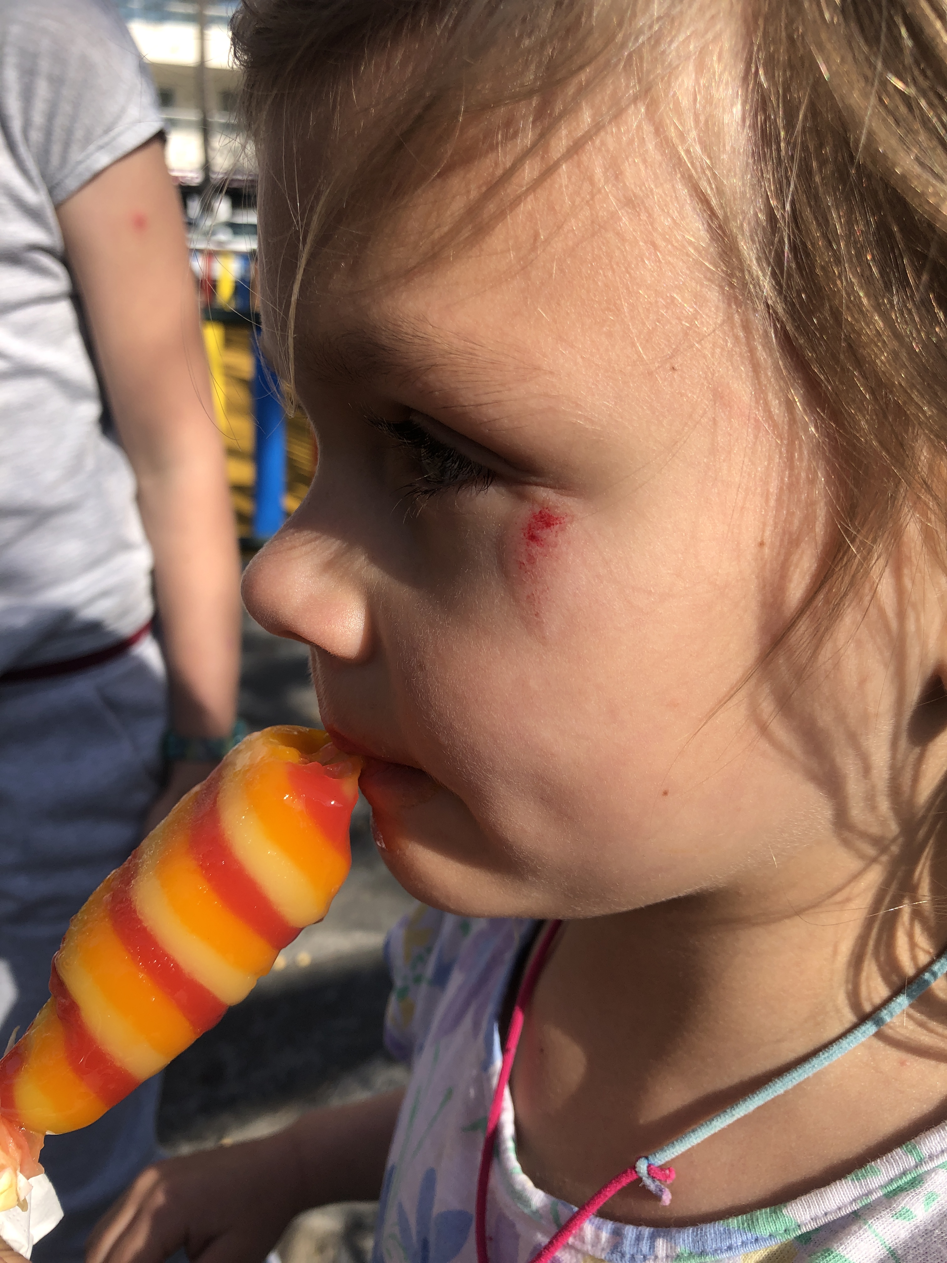One day, once the sun was shining again, the girls and I found a series of very fun playgrounds in a nearby town. They had so much fun playing and moving along to the different play areas. After a couple of hours, we grabbed an ice cream and were going to walk down to the beach. Unfortunately, Luisa ran into a sign and hurt her face right near her eye. Workers at a nearby restaurant rushed to get her ice and were so kind and helpful, and then we decided it was time to head home.