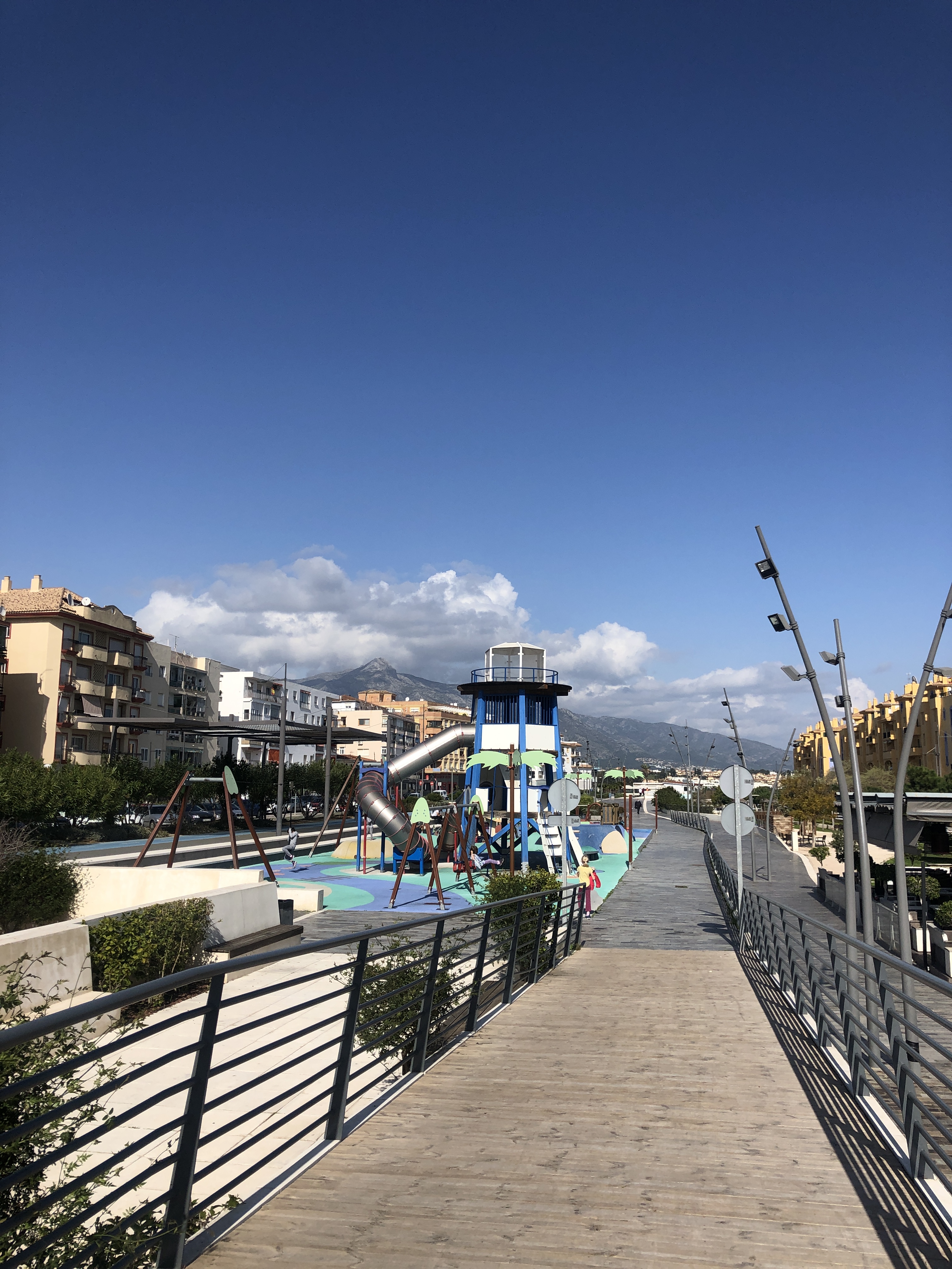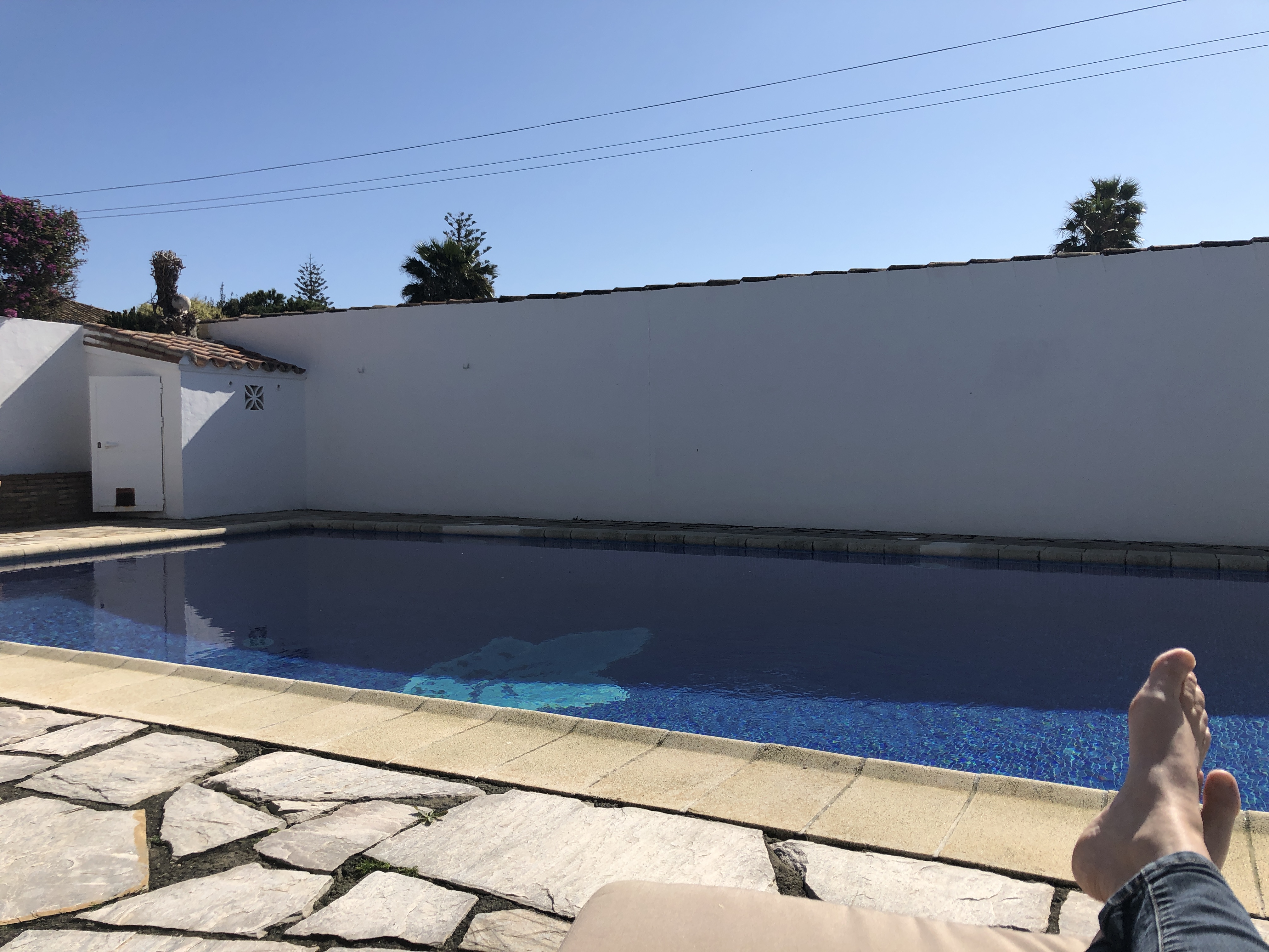 A glimpse at the beach that is one block away. We haven’t spent much time down there (yet?) because it’s impossible to get the girls away from the pool. 🙂 But it really is beautiful. And you can see Gibraltar and Africa on a clear day!