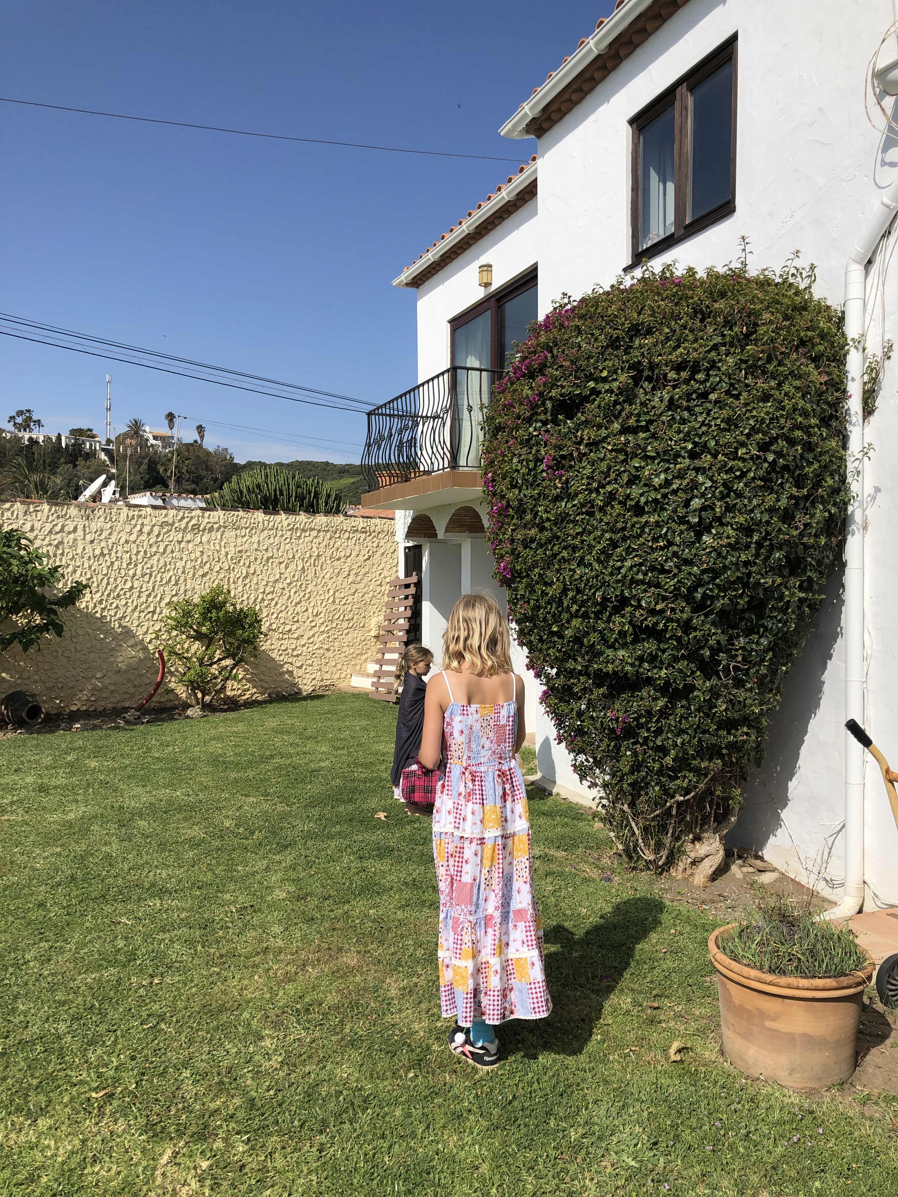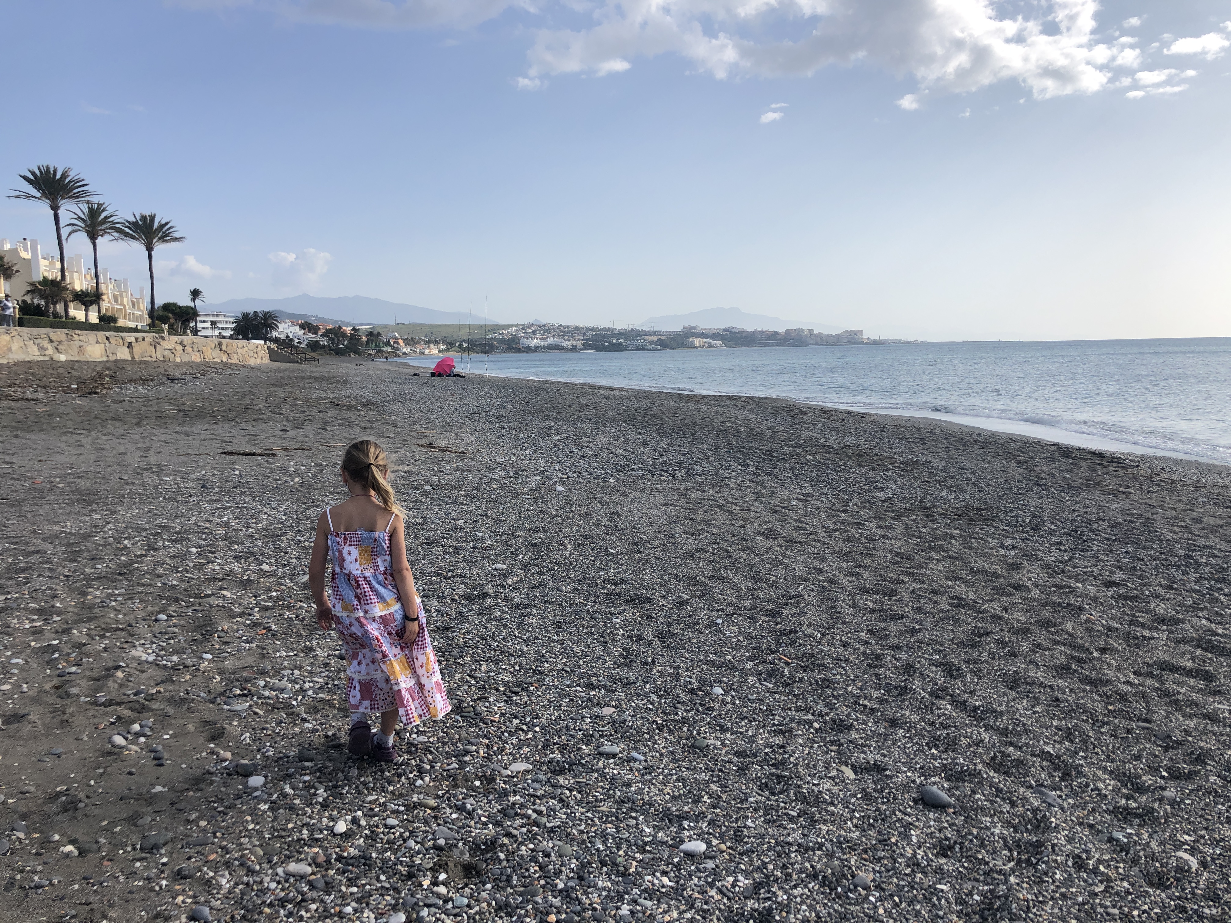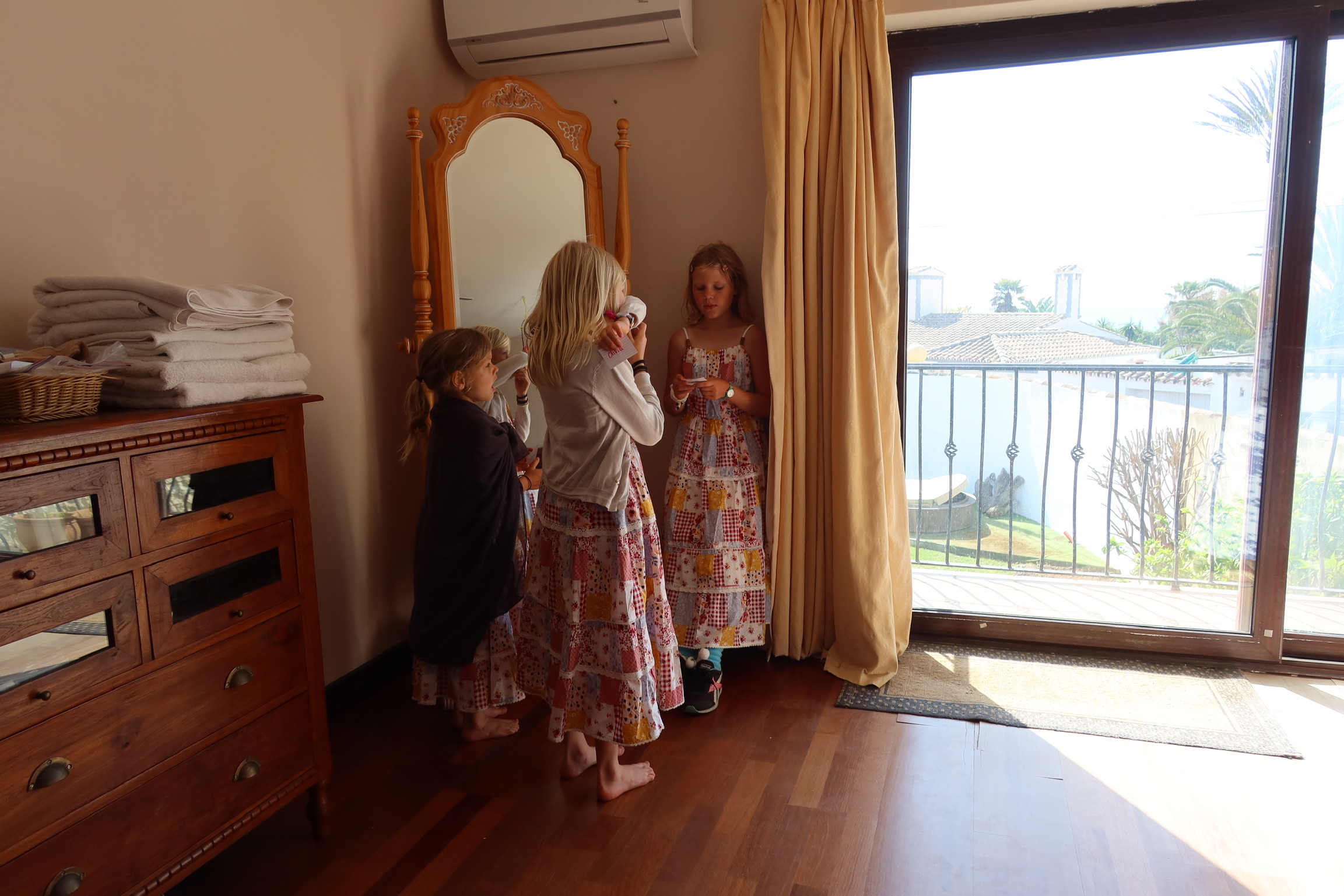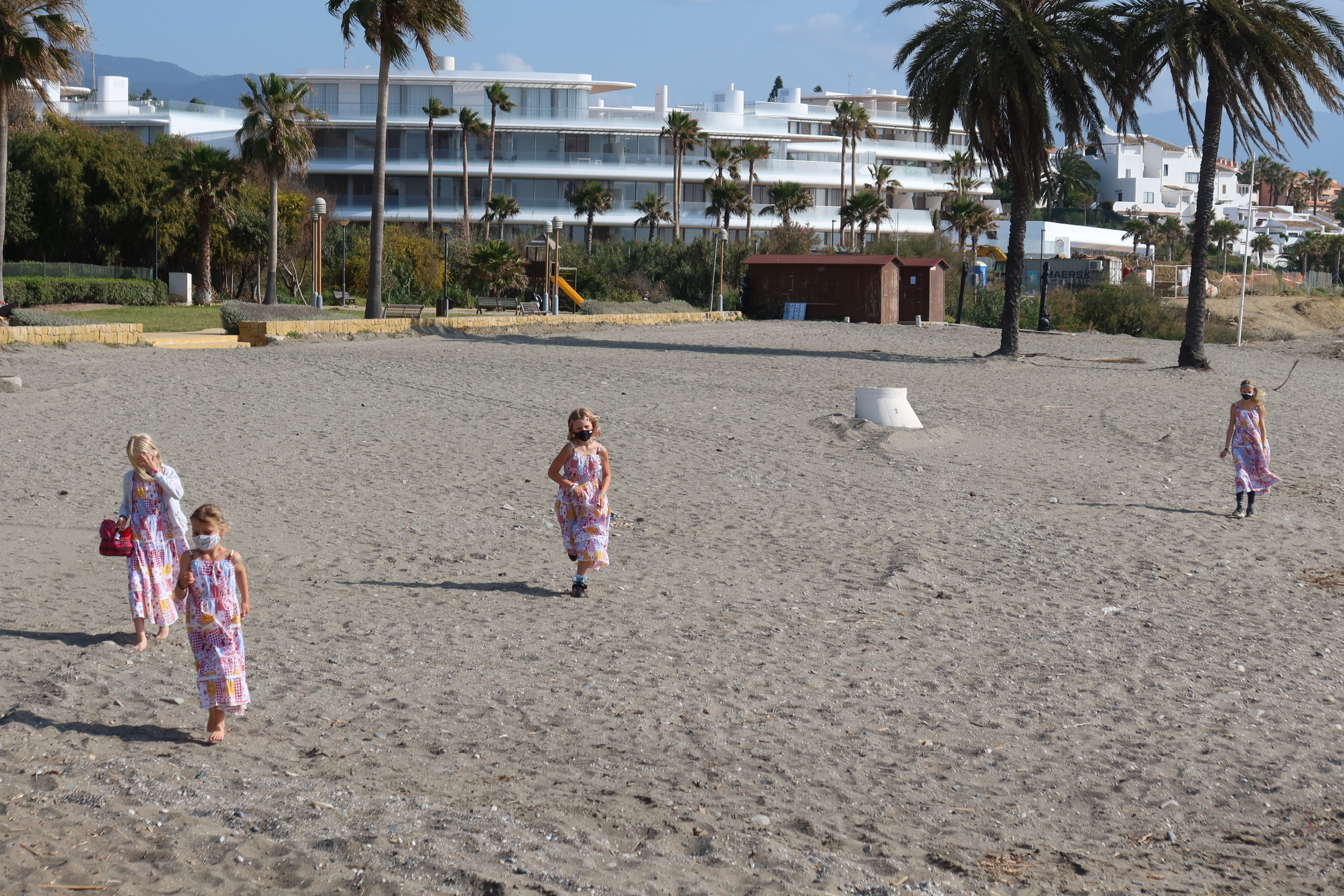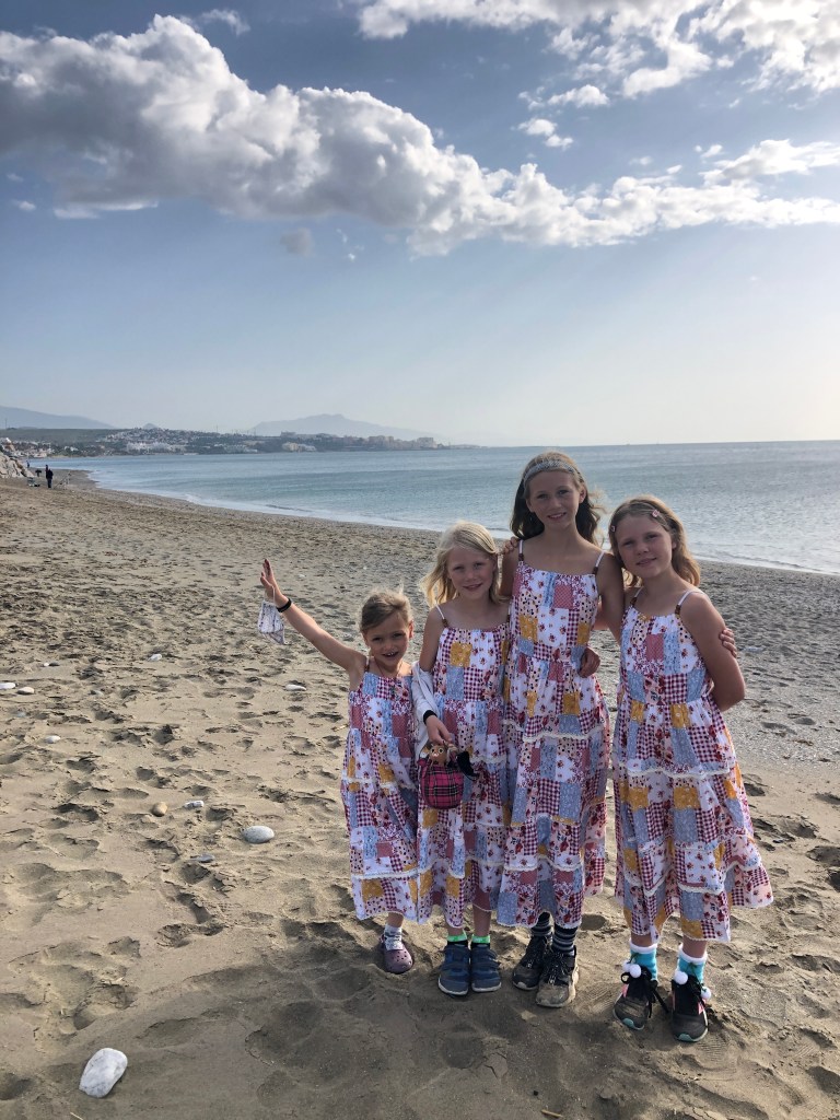 Then the girls got their dresses on (matching, of course, though this time by their choice!) and we went for a walk to the beach.