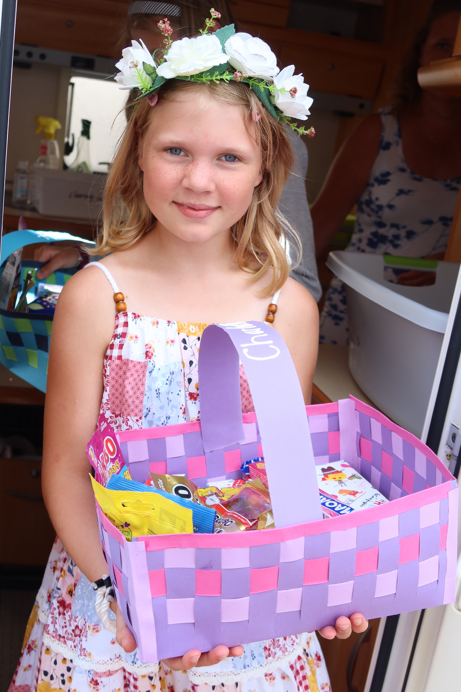 Then there was another surprise for the girls: a scavenger hunt through the house with a bunch of riddles that ultimately lead to the camper where each girl got a homemade basket full of candy and one special toy/game. They were thrilled and spent the rest of the afternoon playing and eating way too much candy! And Steffen and I got the treat of delicious ramen take-out. Win win!