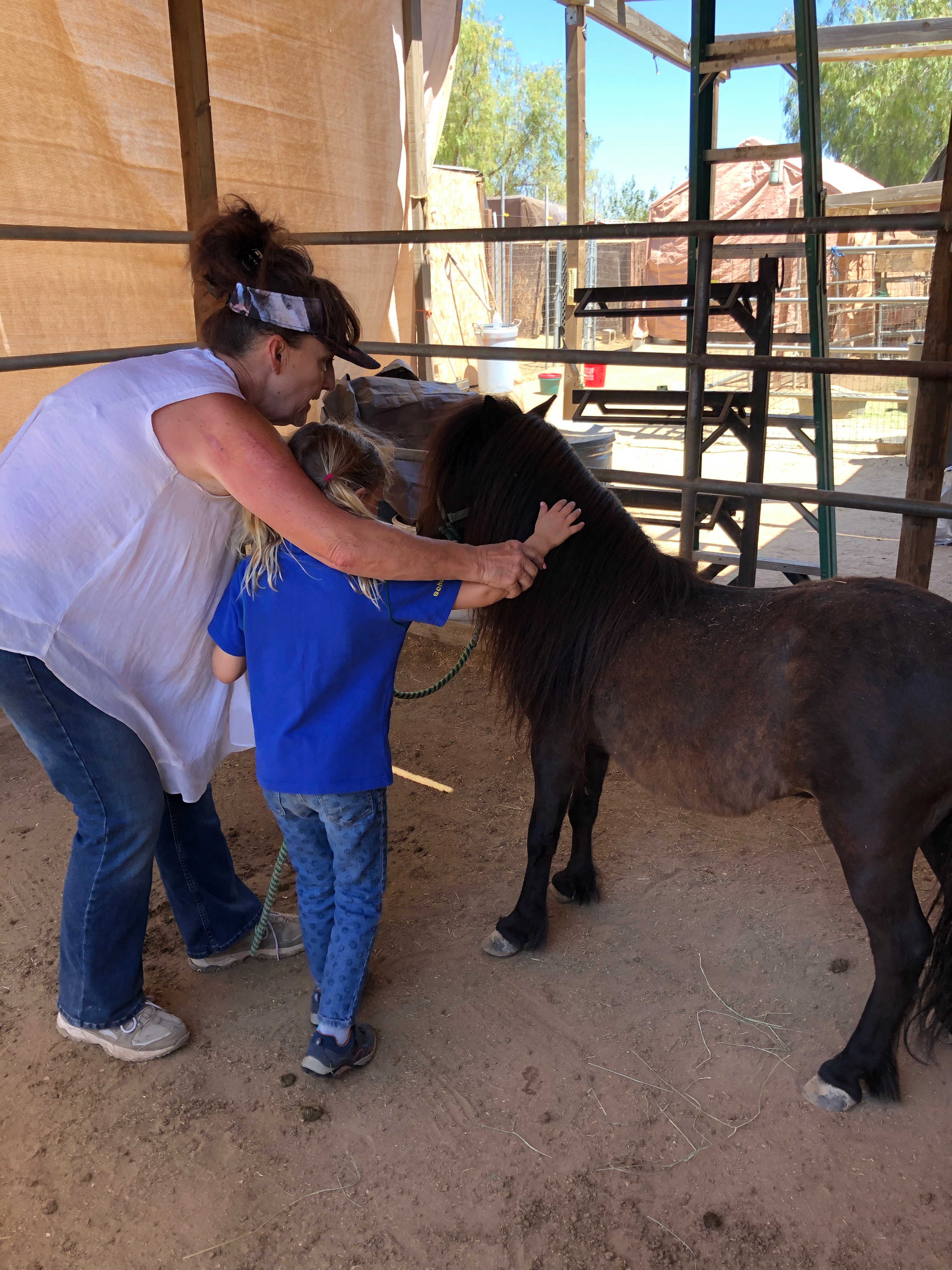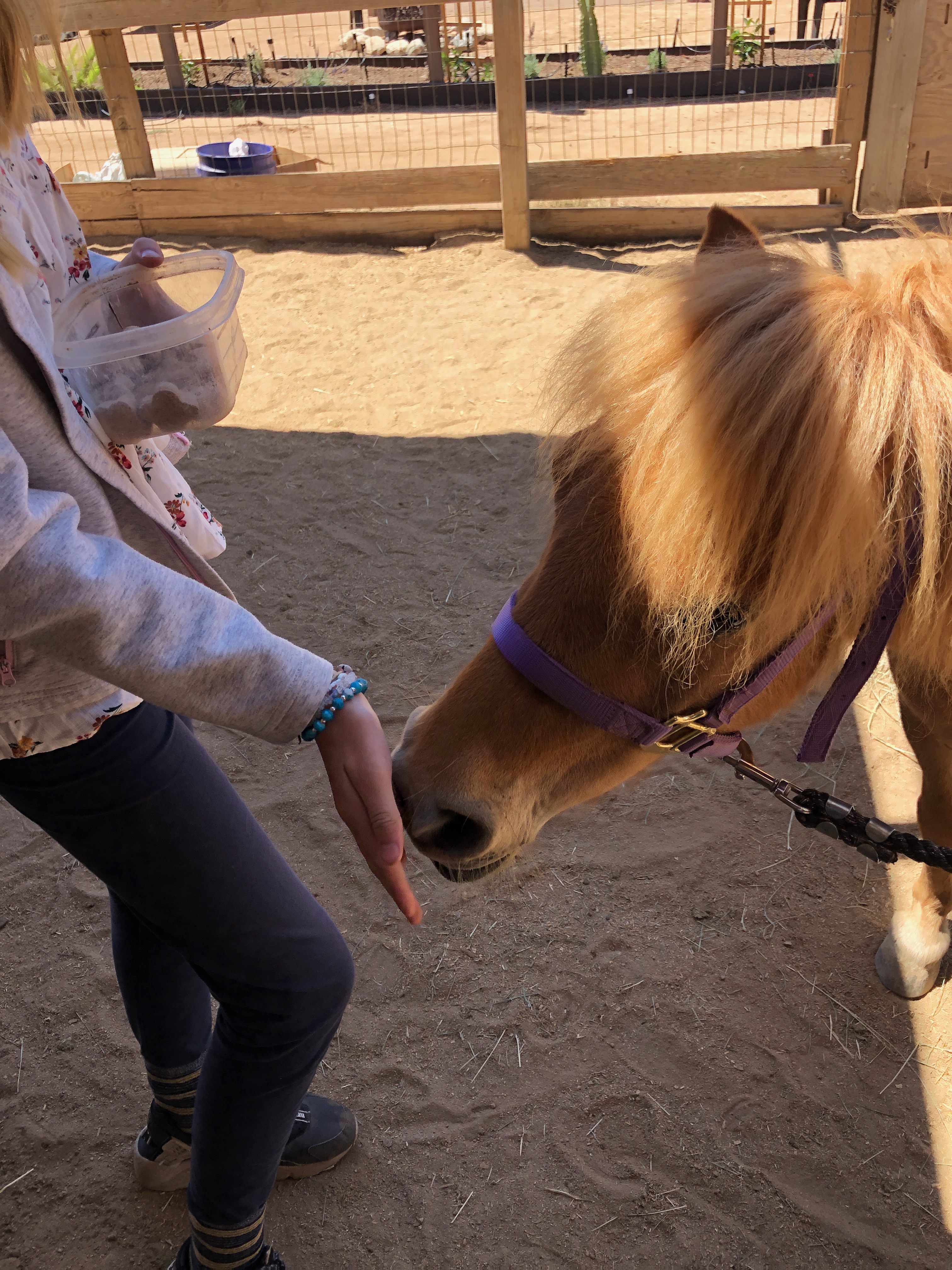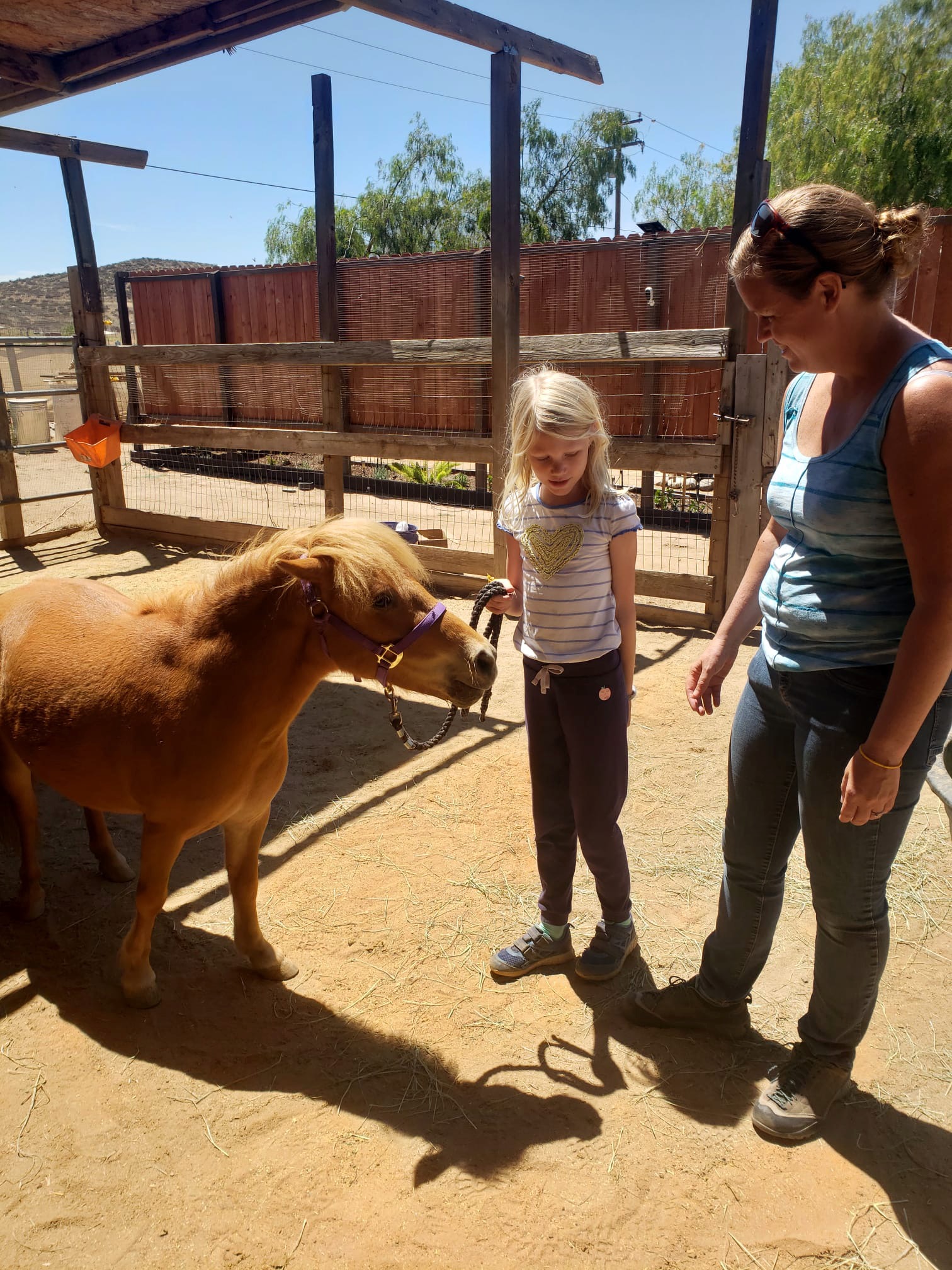 And then finally the holy grail: the horses. First we visited the miniature horses and then we took the two large horses on a walk to the corral where the older horse (32 years old!) took a liking to Luisa and snuggled her up. It was so sweet!