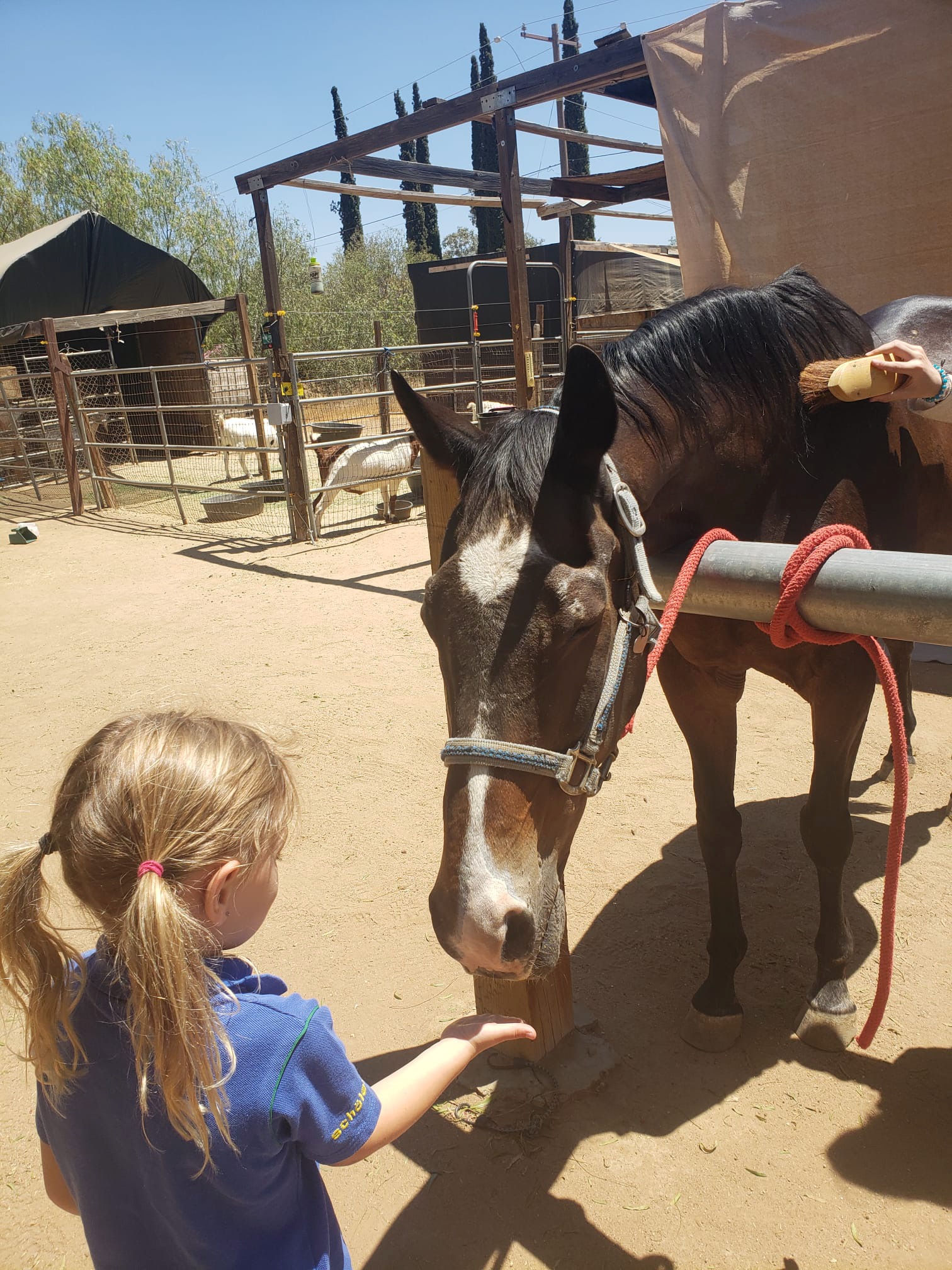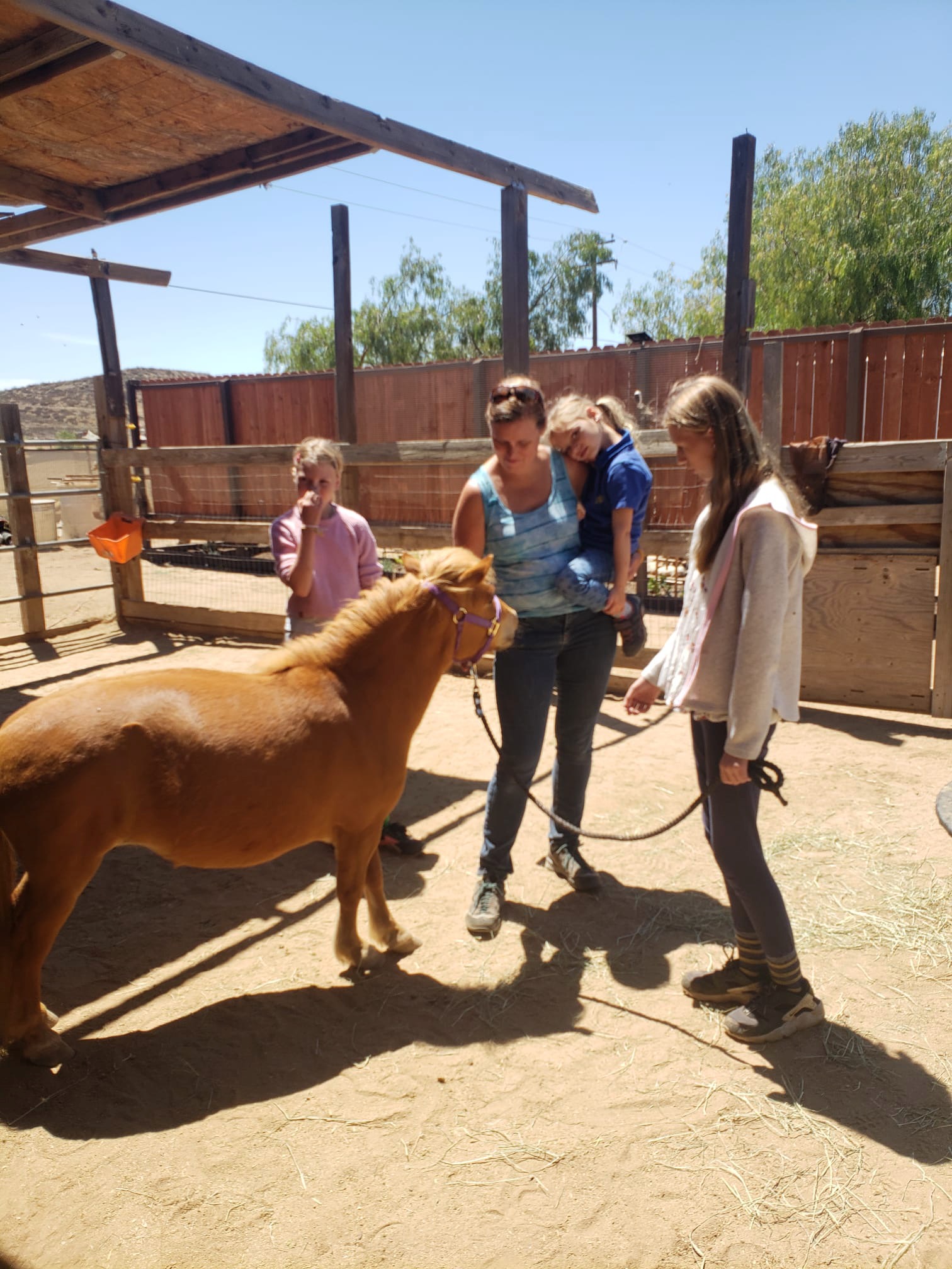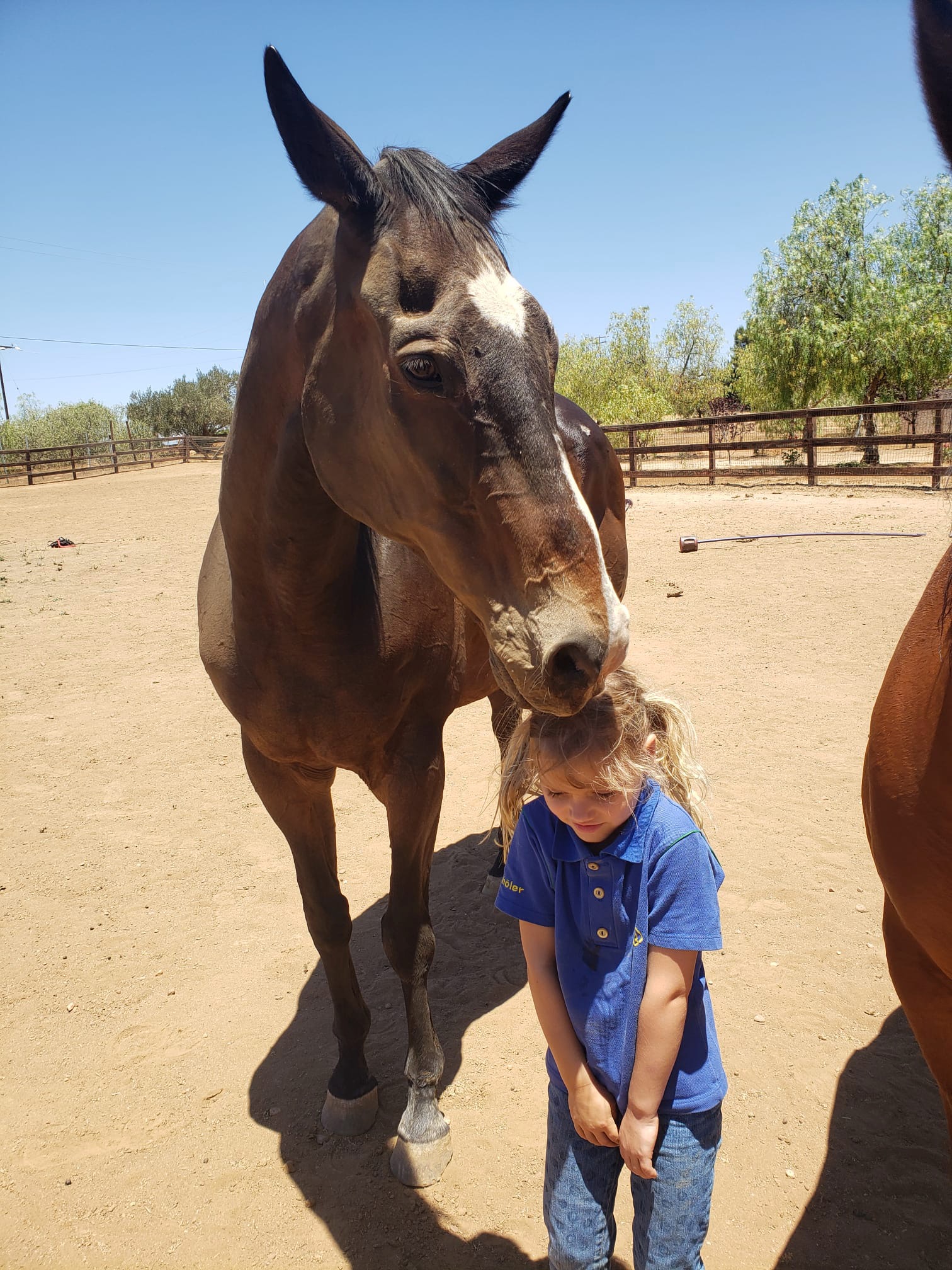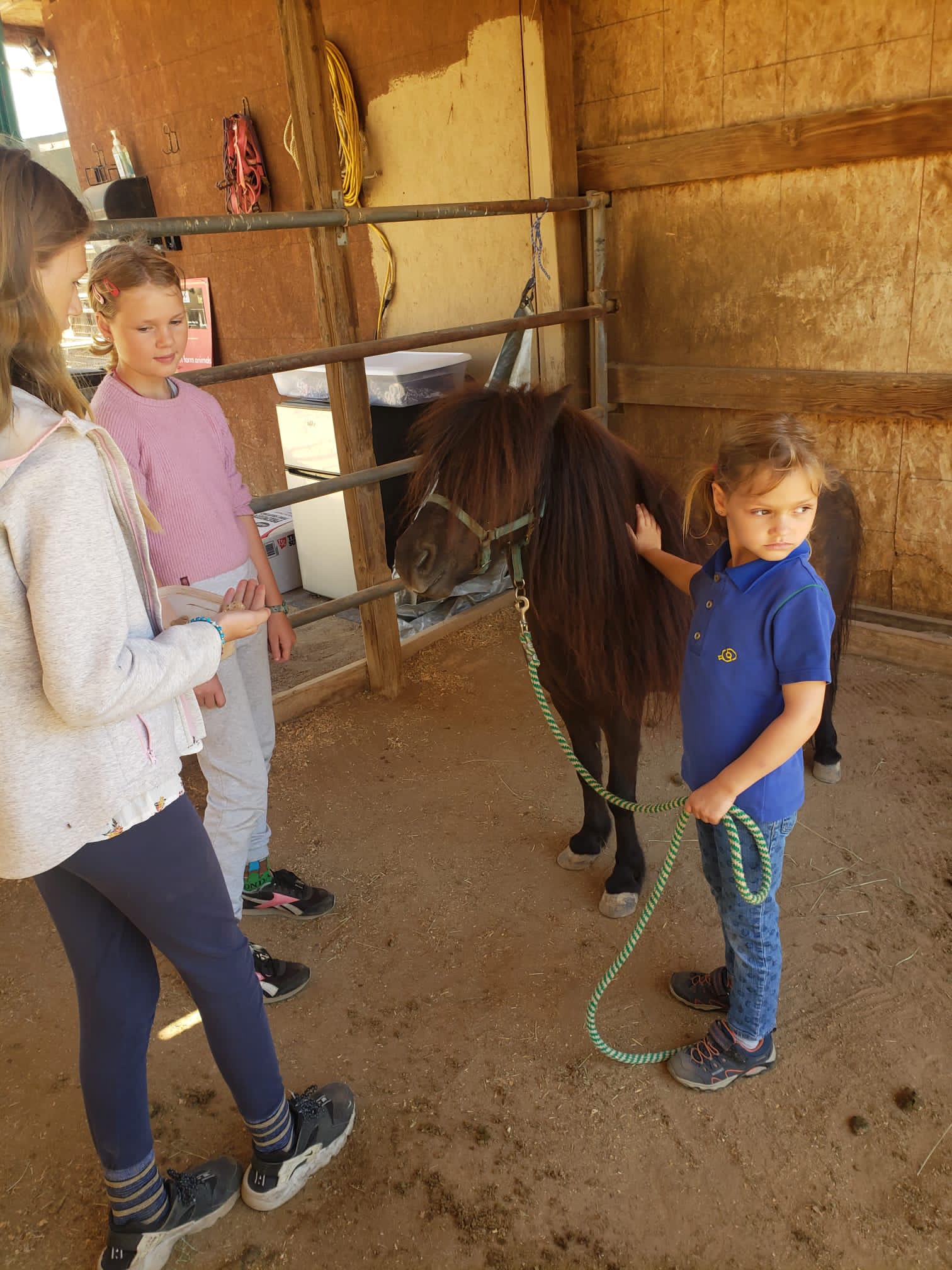 And then finally the holy grail: the horses. First we visited the miniature horses and then we took the two large horses on a walk to the corral where the older horse (32 years old!) took a liking to Luisa and snuggled her up. It was so sweet!