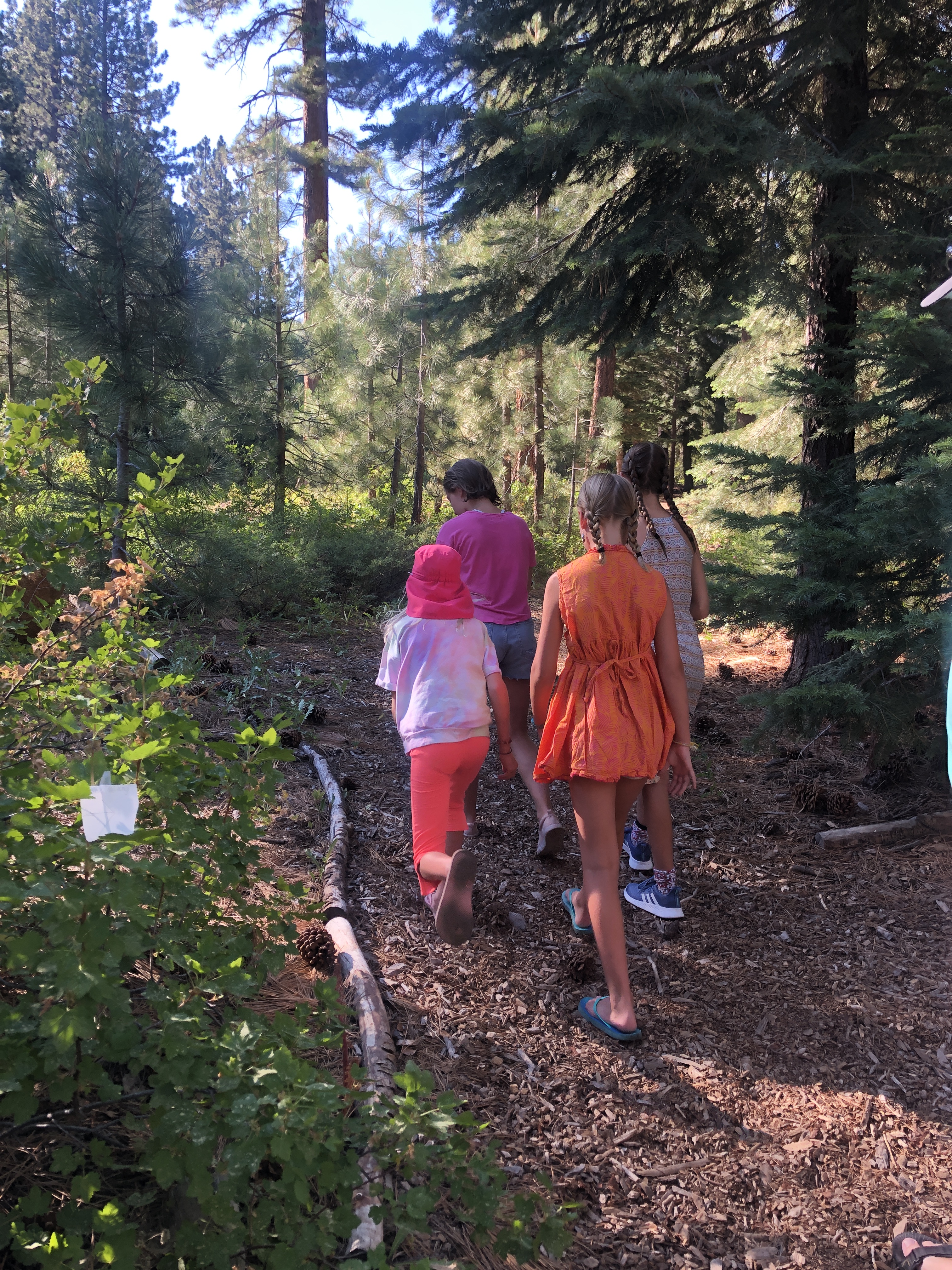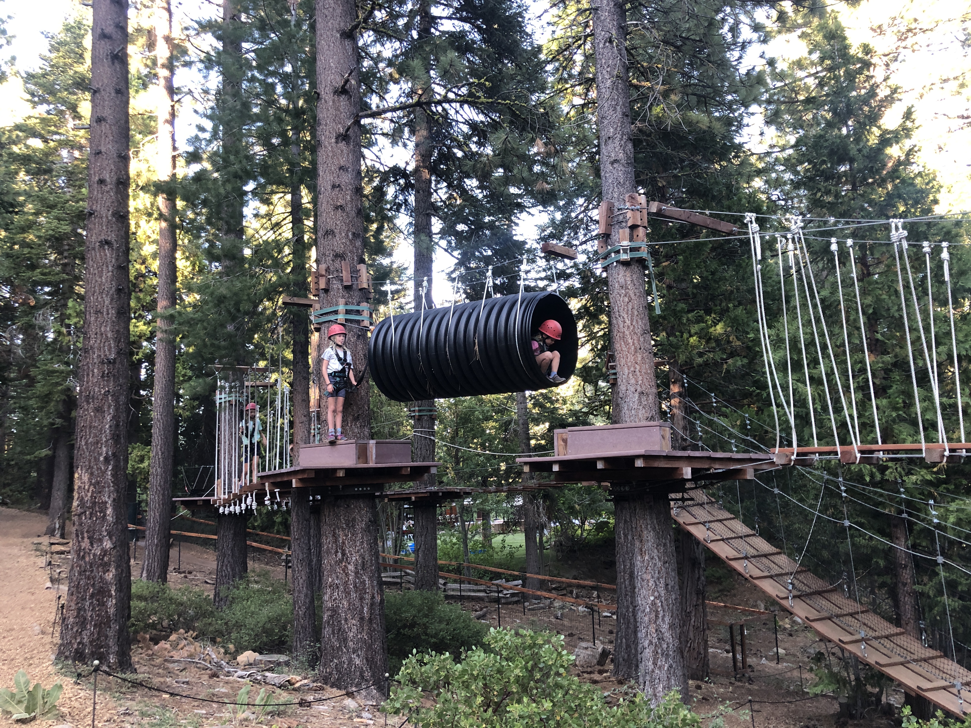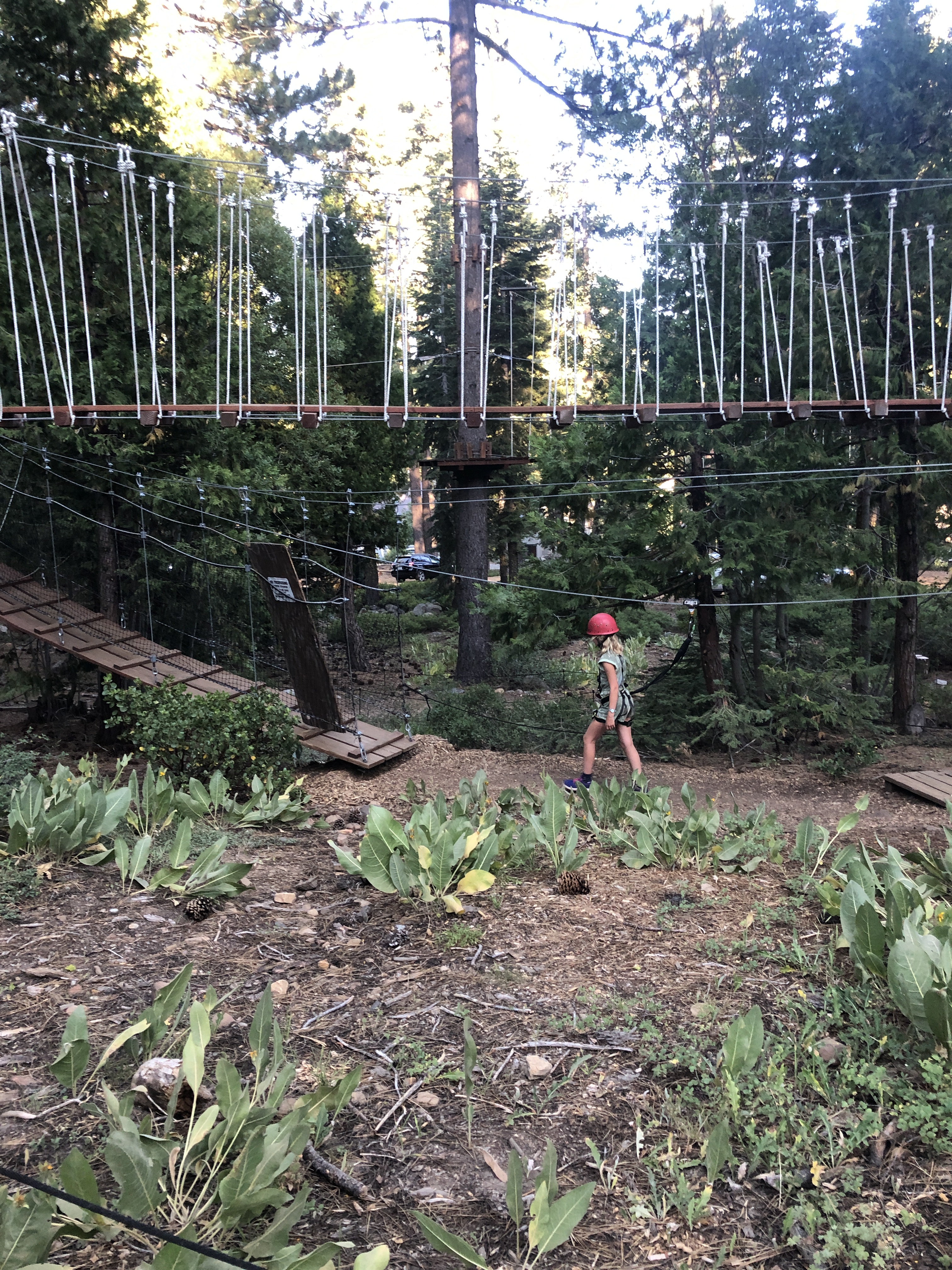 We spent our last few days in Tahoe with my college friend and her daughter (who we had also met up with in Sacramento a few weeks earlier) to squeeze in some more quality time together. We swam in the pool, spent an afternoon at the beach, my friend and Luisa set up an amazing treasure hunt through the forest and we ended the trip with a super fun day at the Tahoe Treetop Adventure Park ropes course. We all love those places! And I’m always impressed with the girls’ bravery and athleticism.