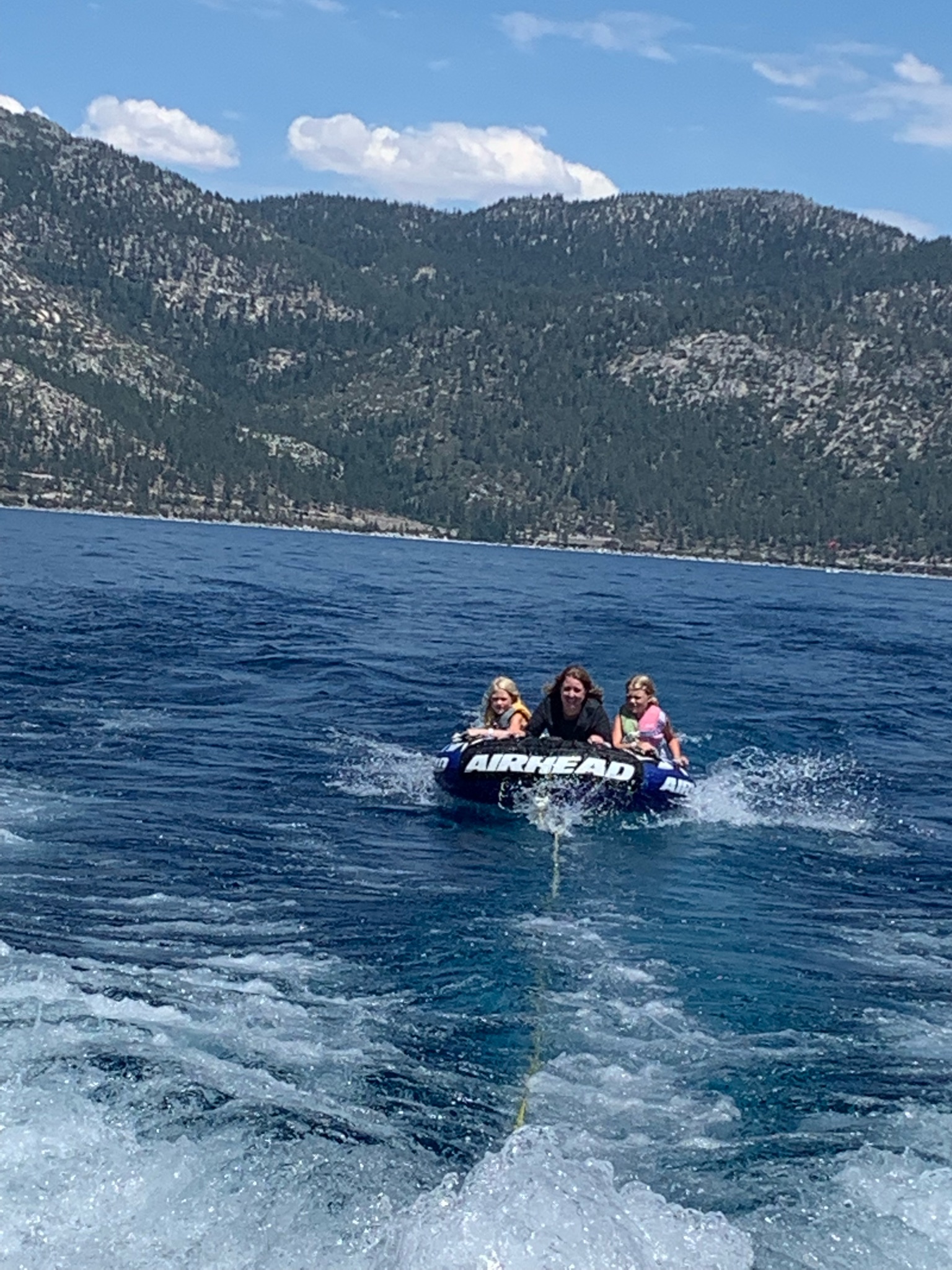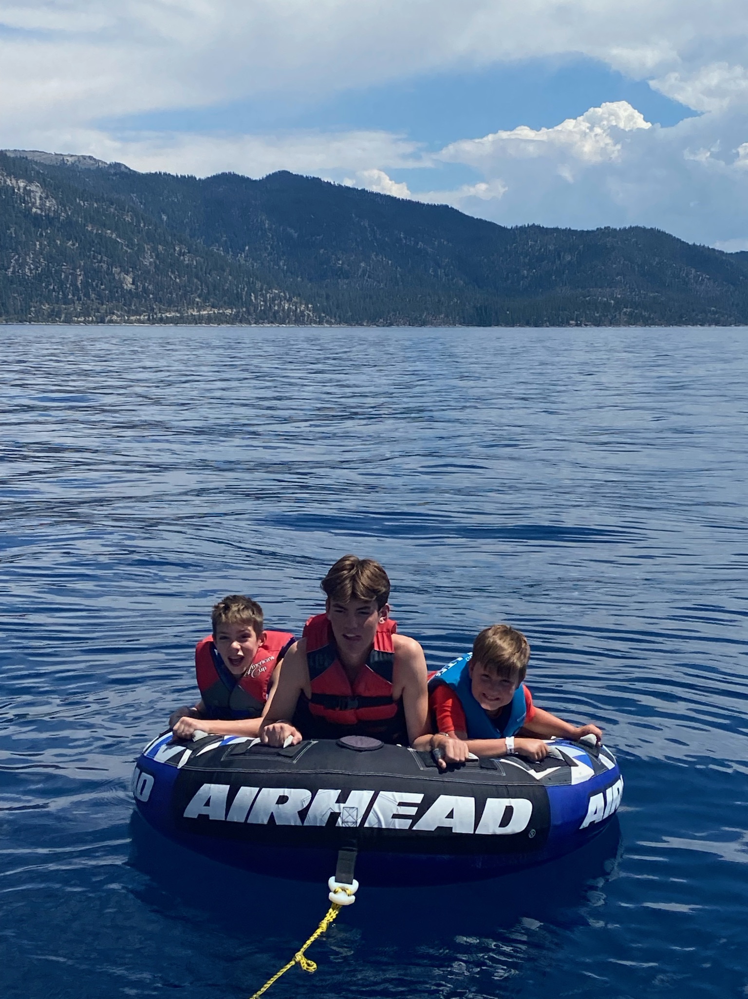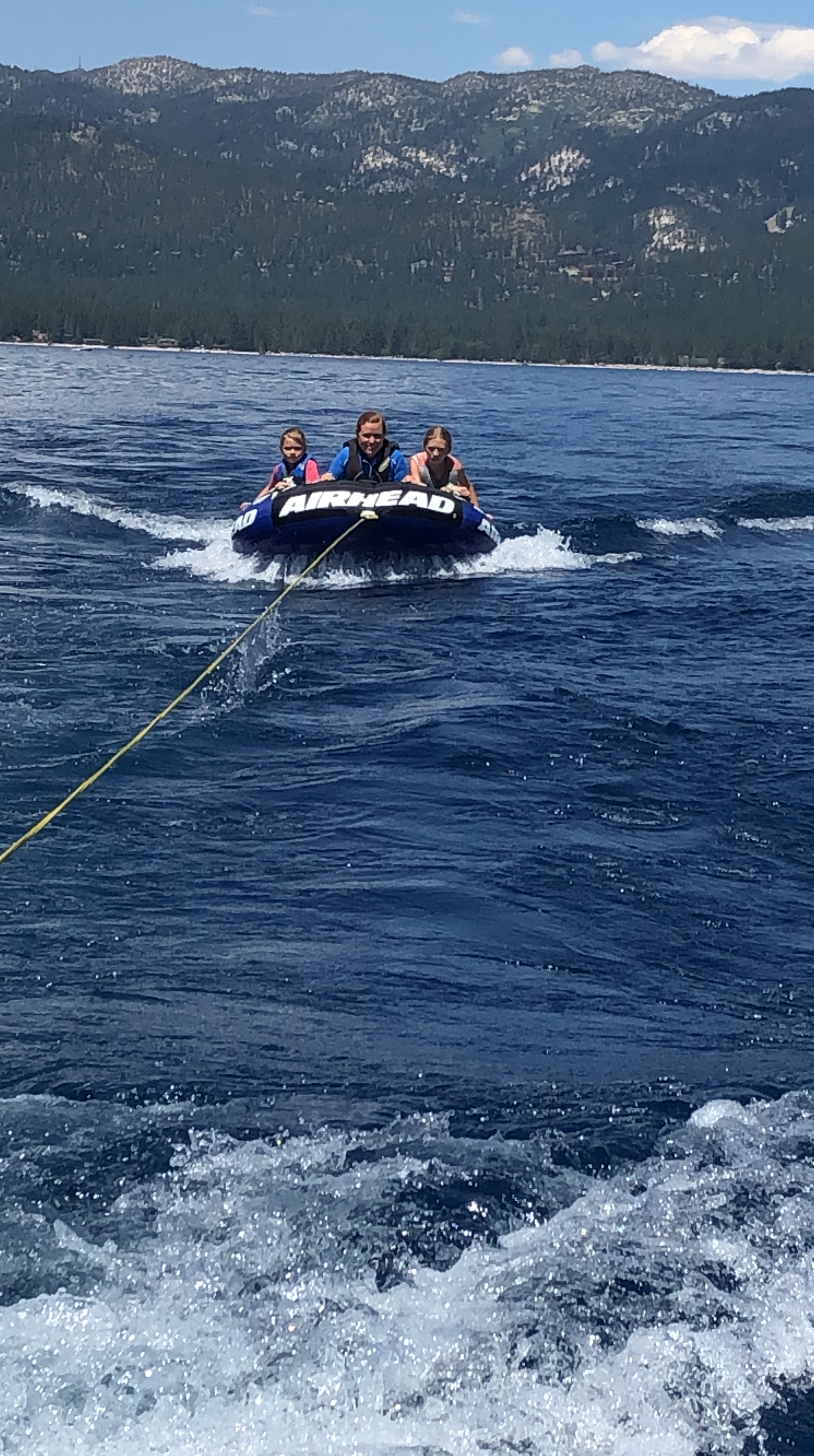 Then that afternoon was the highlight: a 3 hour trip in a speedboat with a tube for even more fun. It was a perfect day on the lake with the most amazing weather, and we all had a lot of laughs!