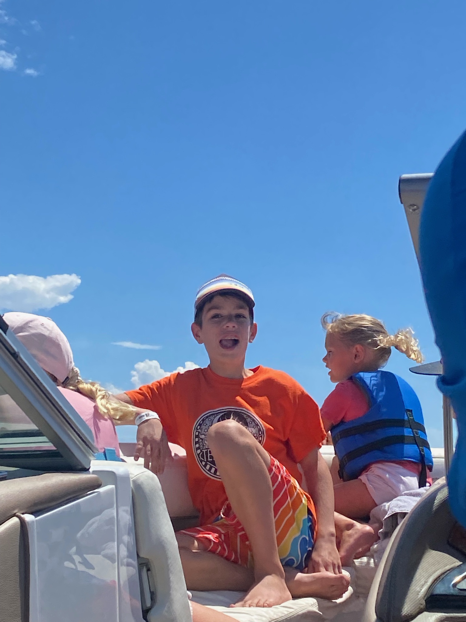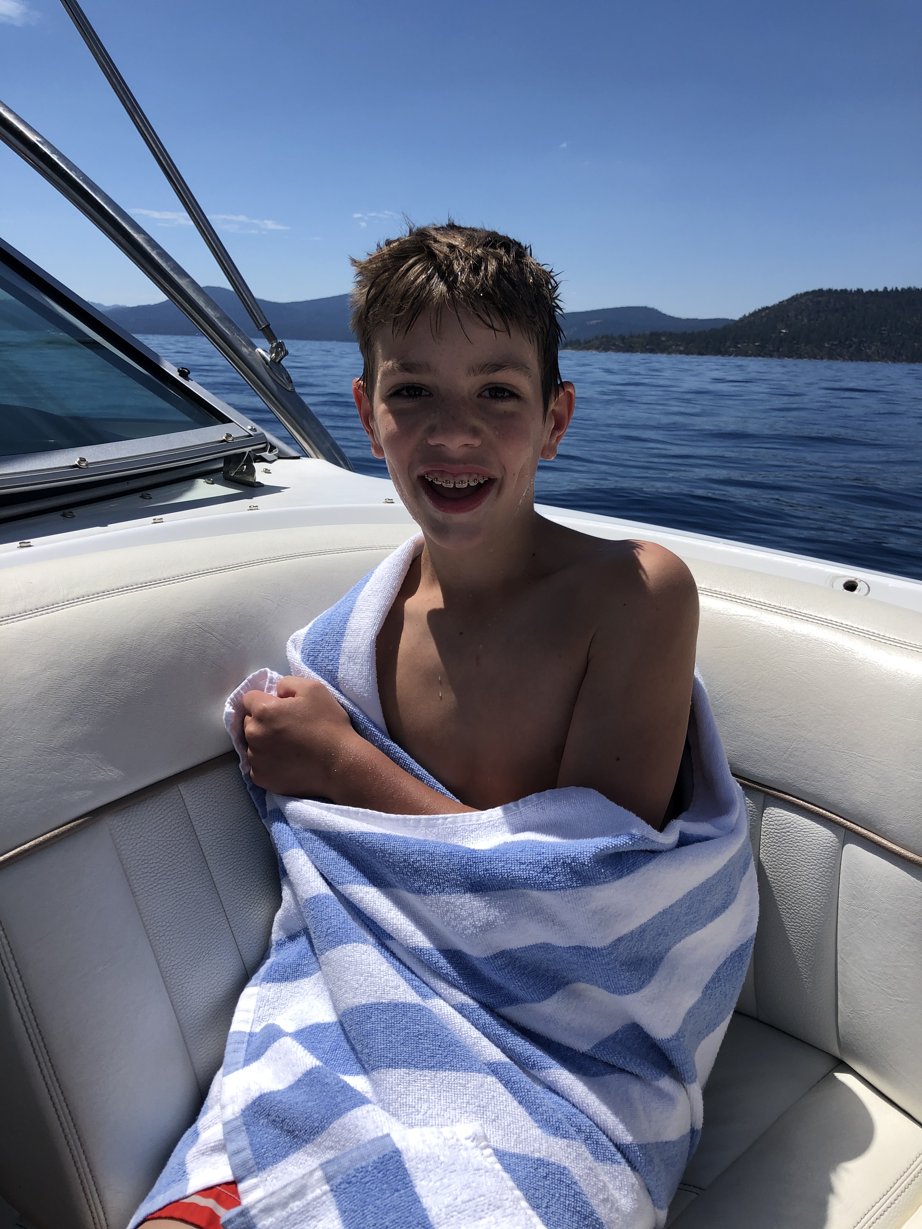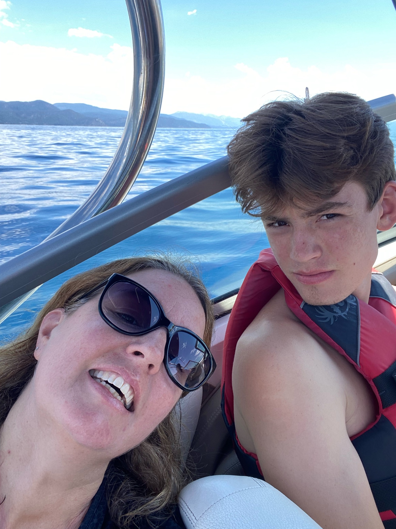 Then that afternoon was the highlight: a 3 hour trip in a speedboat with a tube for even more fun. It was a perfect day on the lake with the most amazing weather, and we all had a lot of laughs!