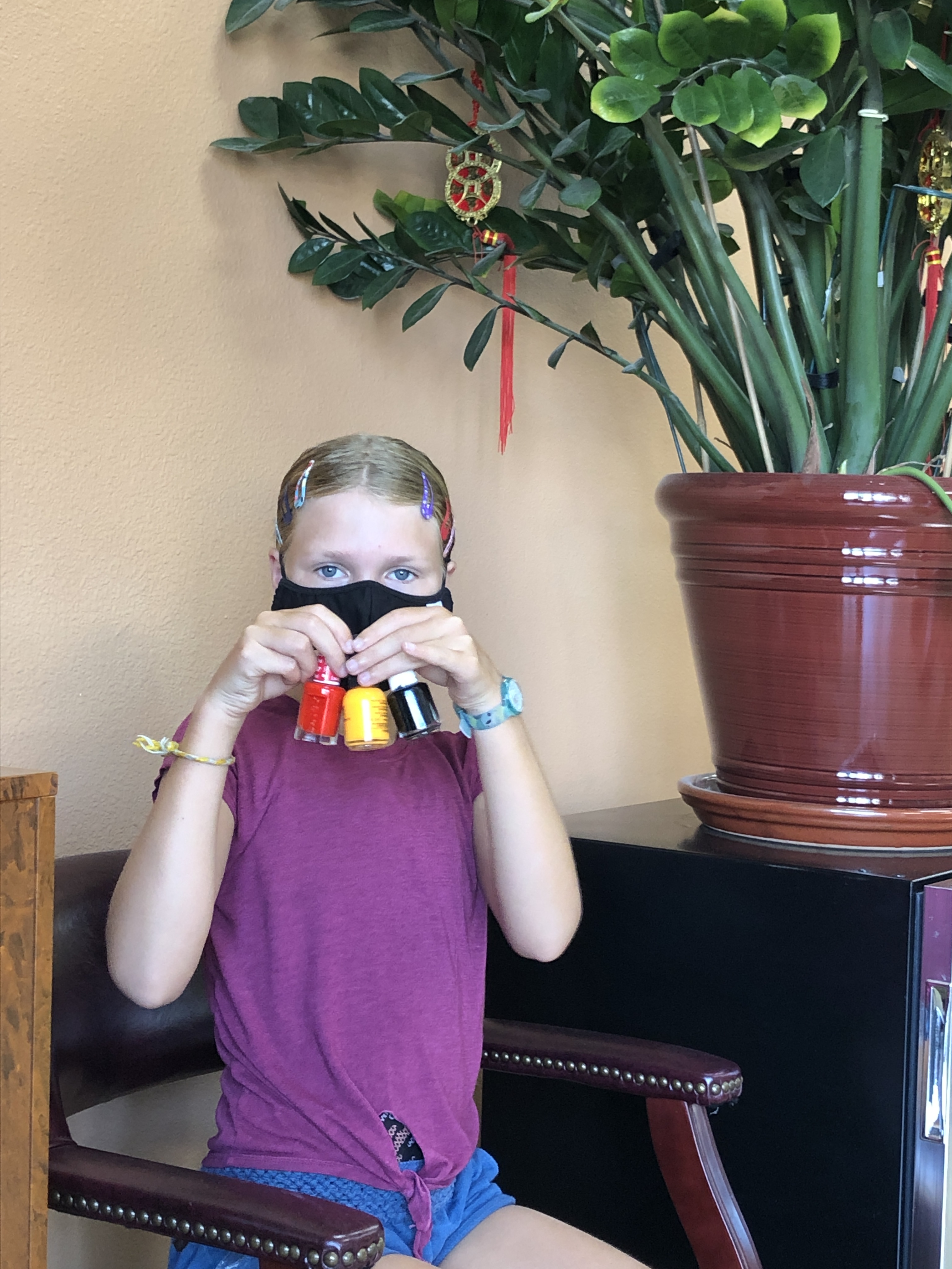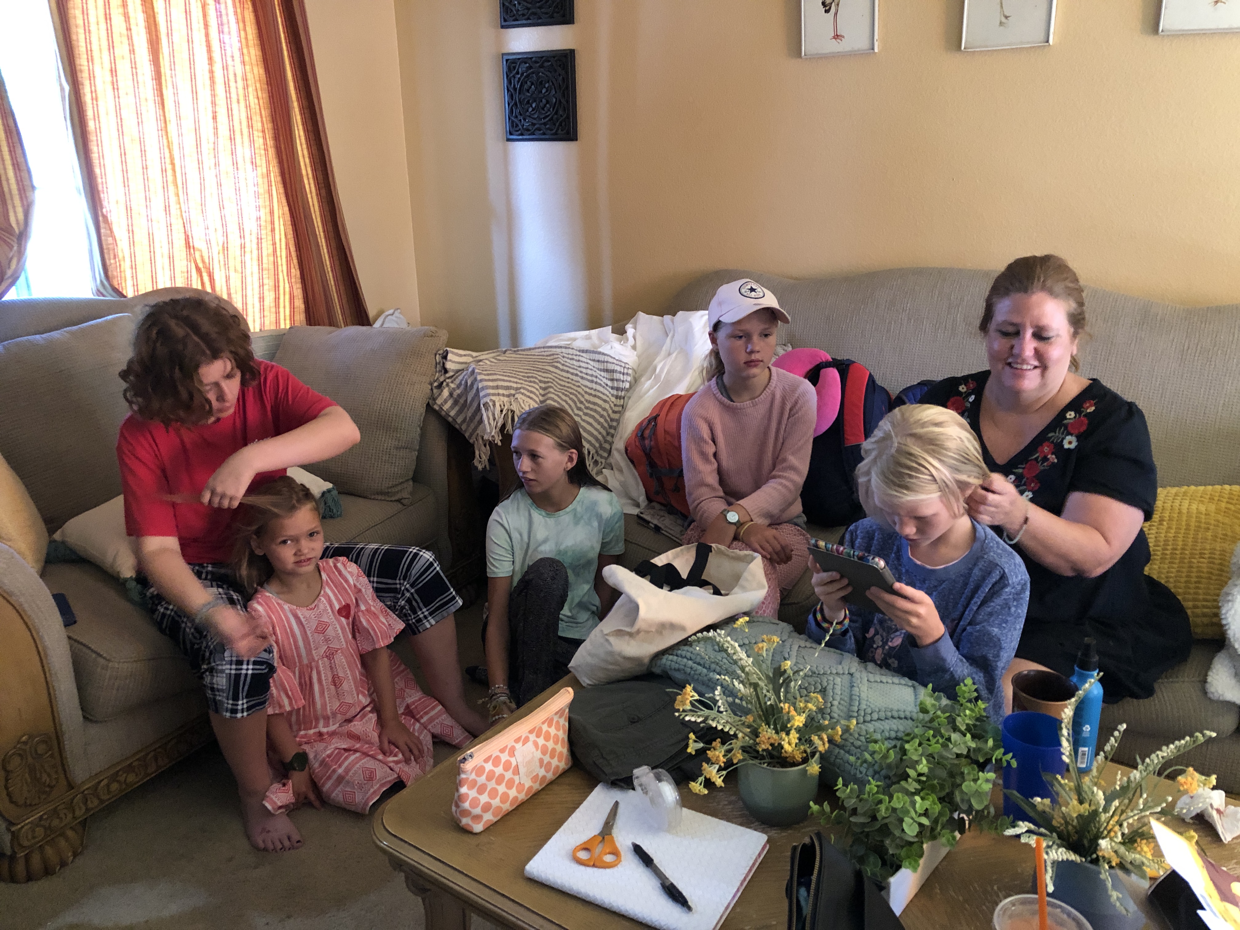 We only had a couple of days back at my sister’s but we managed to pack a lot of fun (and errands and packing and some tears) into those days. We headed to the pool one day, had a delightful dinner with my dad and stepmom, the little girls got a sleepover in, the big girls got a pedicure in, and we all spent a lovely afternoon at my friend’s house swimming and barbecuing and snuggling their horse.