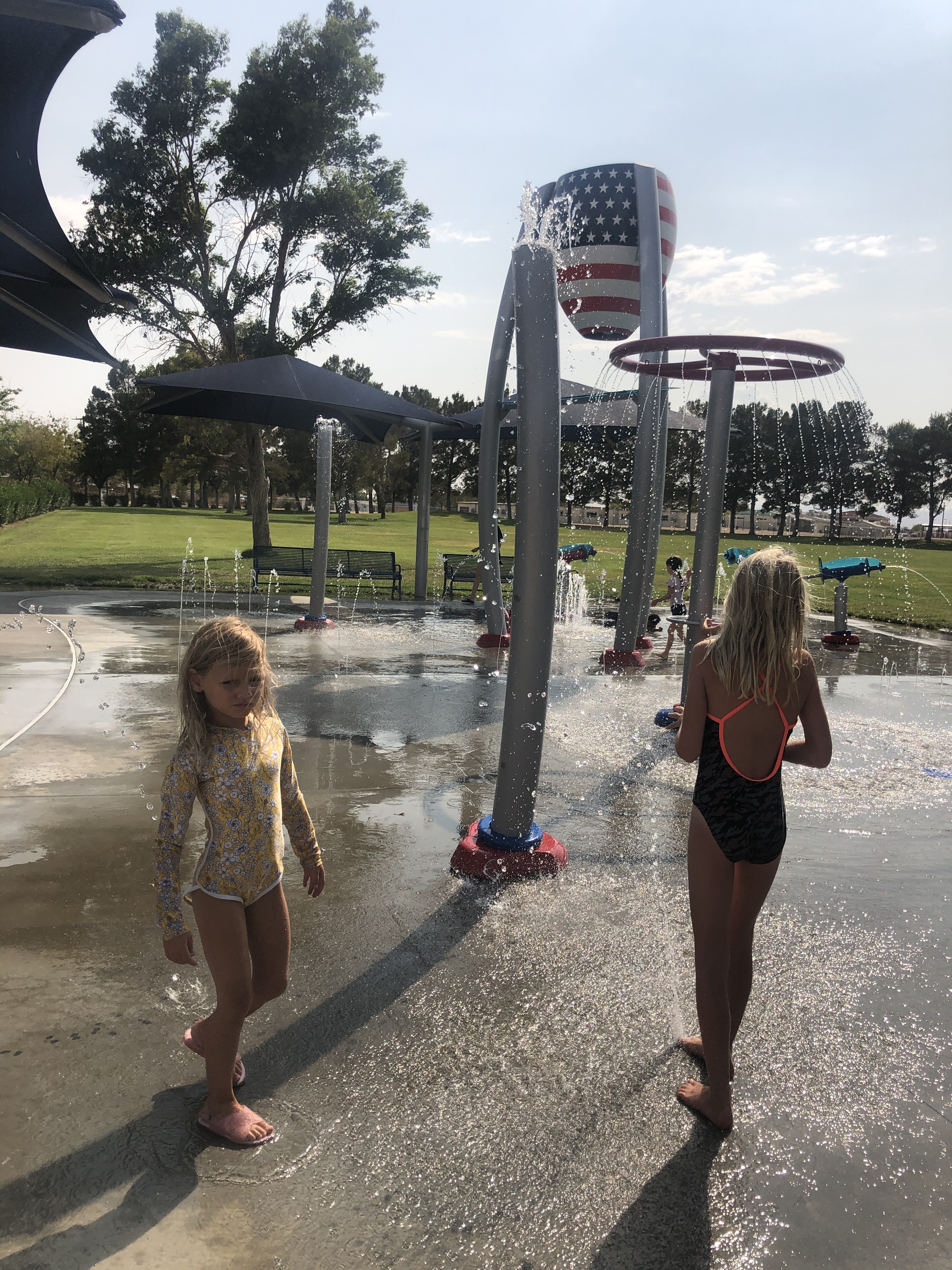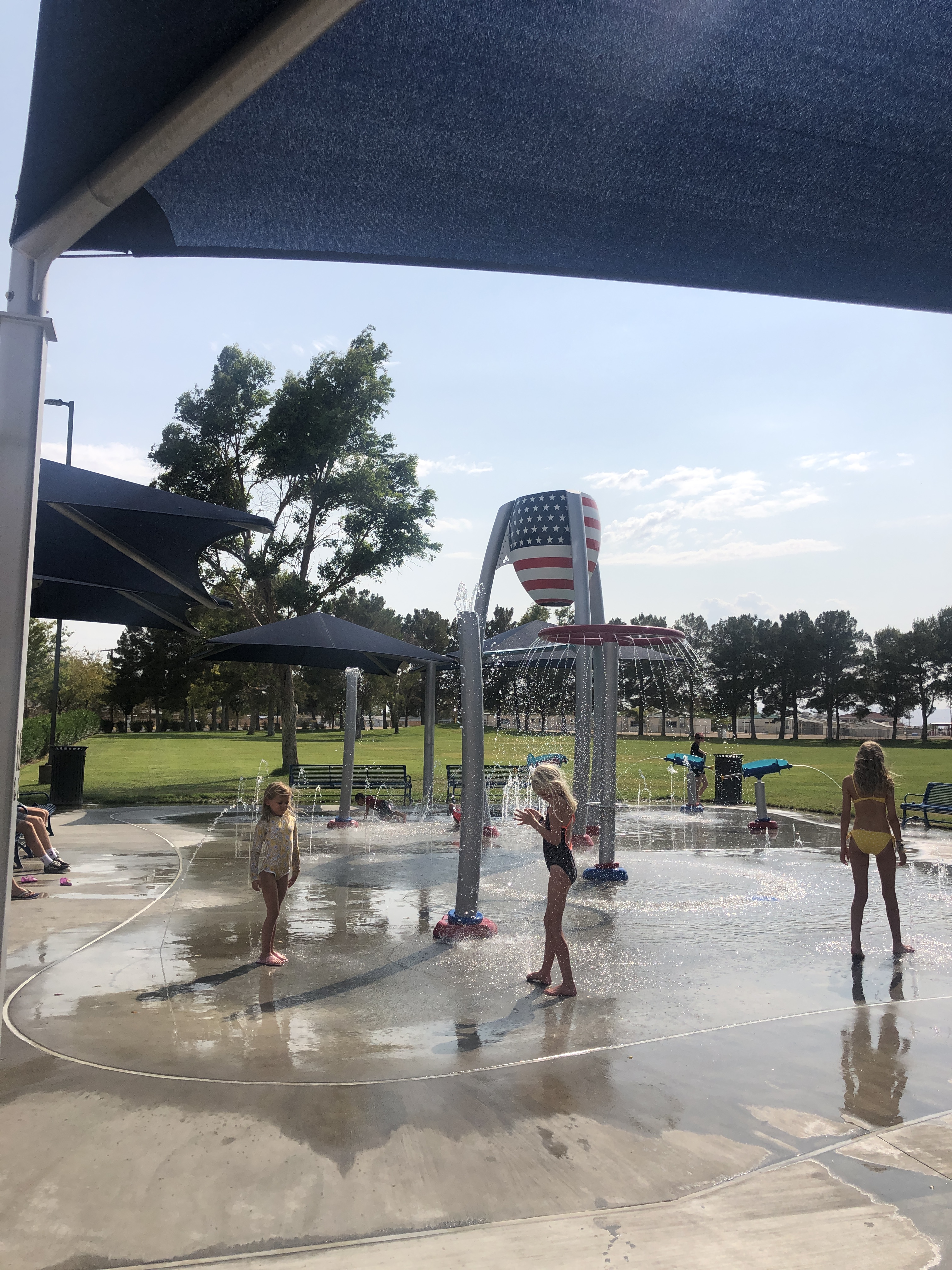 We left Tahoe and continued driving south, this time along highway 395, a road that I don’t think I had ever driven on so far south. It is definitely the desert out there (at one point Luisa looked out the window and asked “who broke the world here?”) but beautiful in its own way. And there was also a lot of beautiful forests, especially in the northern part. I’m really glad we avoided another trip down highway 5. 🙂 We needed to stop for a couple of hours so Steffen could hop on a work call and it was about 113 degrees out, so we headed to a local splash park. A lifesaver!