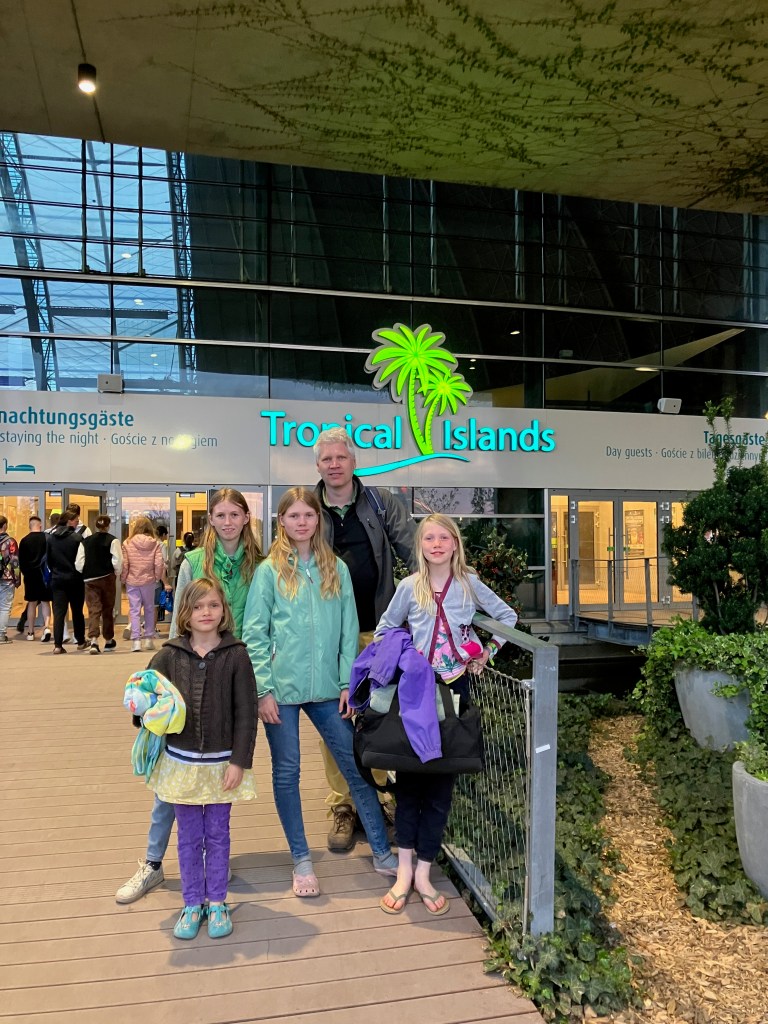 All of our children love swimming and were pretty early swimmers, so we have enjoyed many of the indoor swimming pools that Germany does so well. For the 2018 holiday season, we booked a surprise trip to Tropical Islands water park just outside of Berlin. It was a hit! The girls were 3, 6, 8 and 10 years old at the time, and they all loved it. Our most recent trip was in May 2023 (so the girls were 7, 11, 12 and 14 years old) and everyone still enjoyed it, maybe even more so. We’ve been a handful of times and tried all the different attractions, including the miniature golf and “hot air” balloon ride. There is an outdoor part with a couple of great slides and the indoor part has pools with different temperatures and slides of varying degrees of scariness so there is something for everyone. And it’s all fun! We’ve stayed at these holiday homes twice and camped a few times, and both are located within walking distance of the dome, though the free shuttle is easier and warmer. Every trip has been relaxing and provided lots of good family bonding time, and we are already planning our next visit!