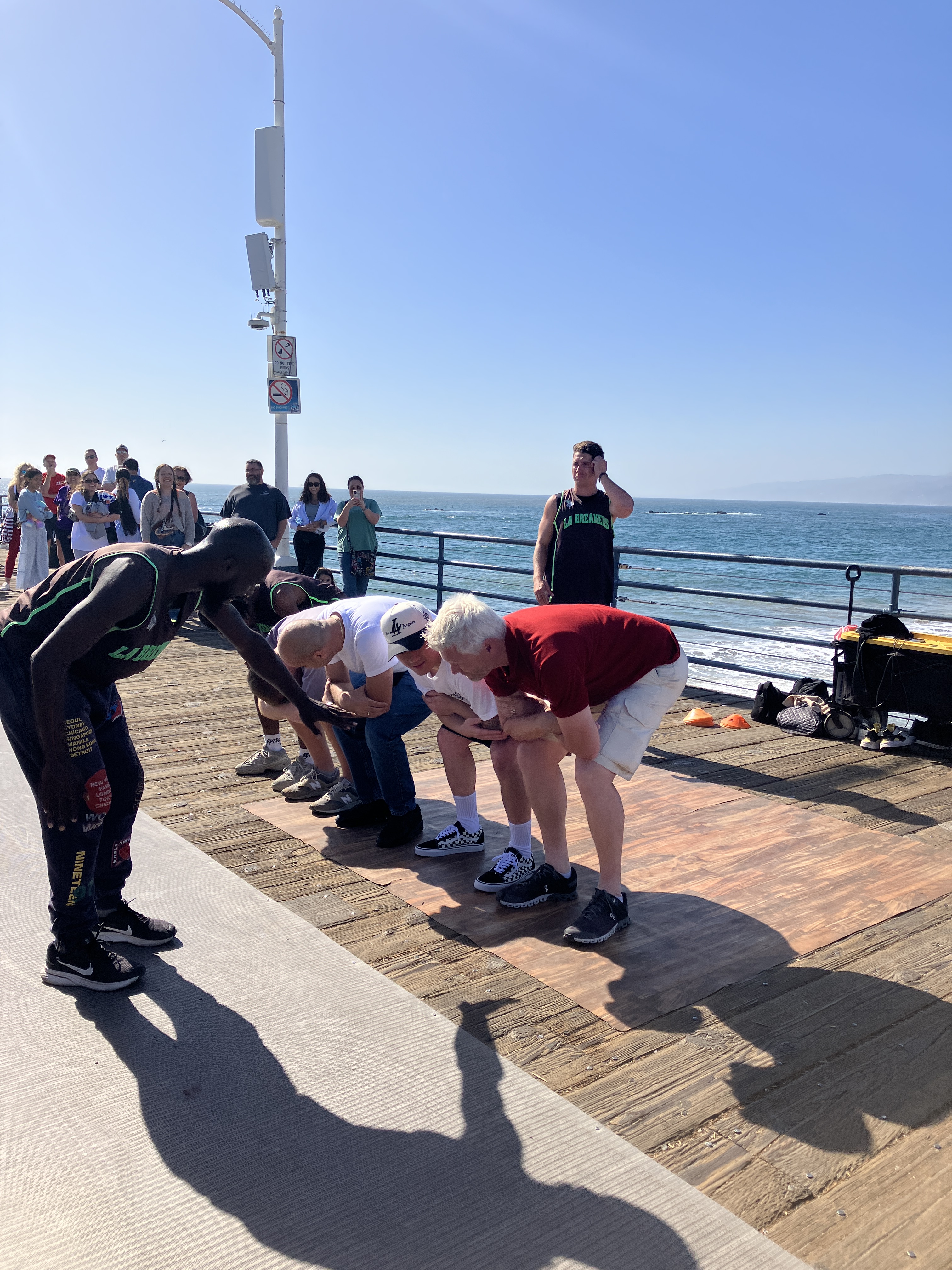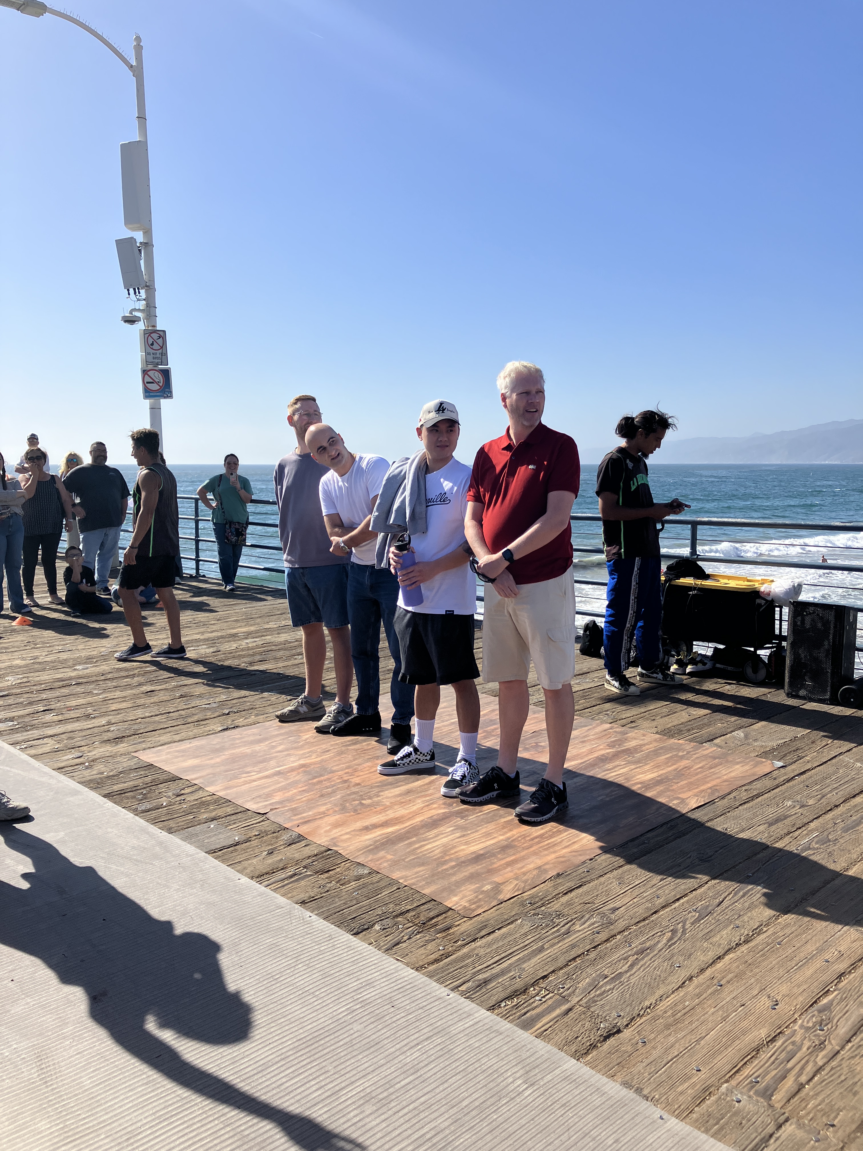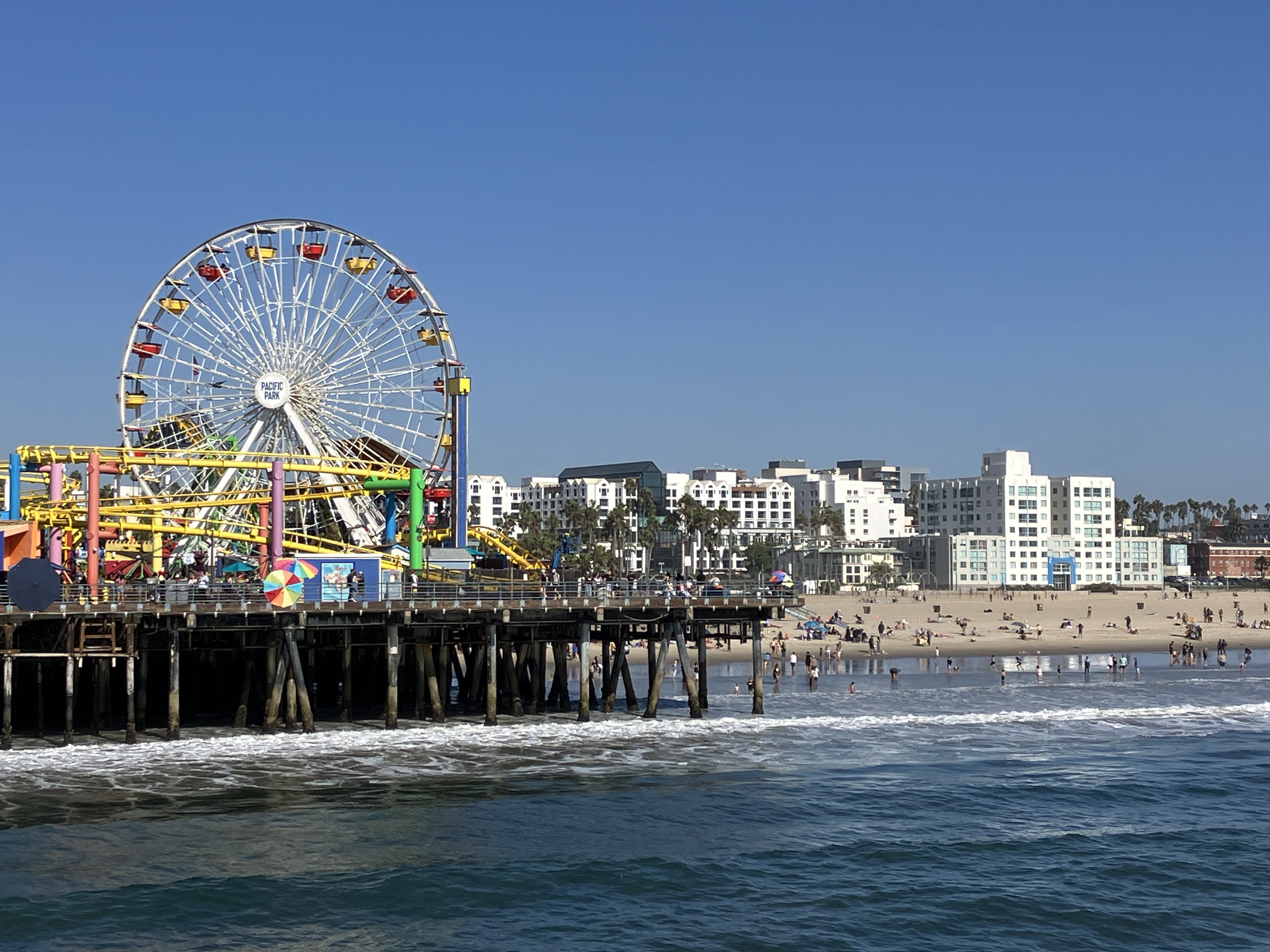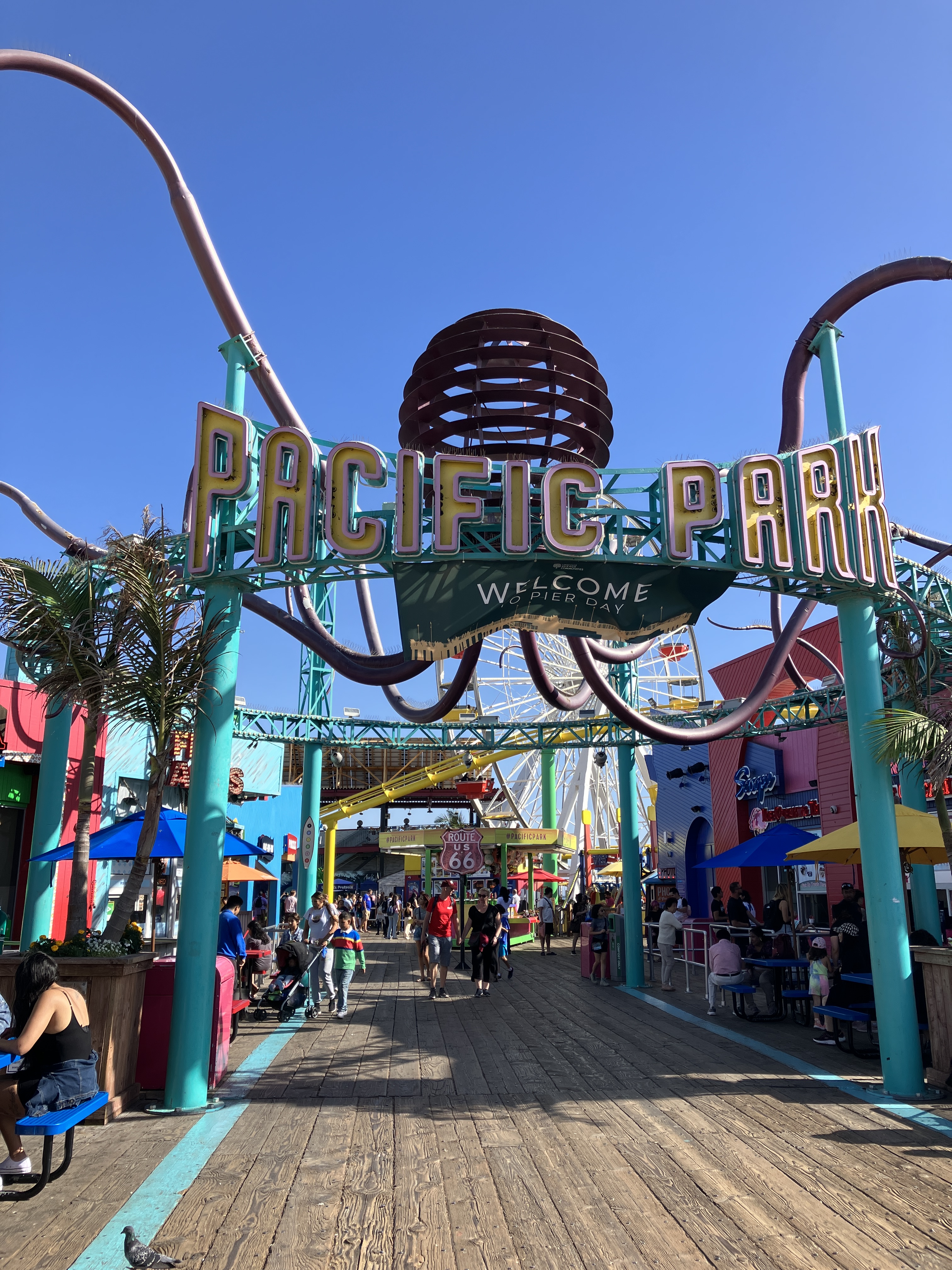 The next day we met my sister at LAX and headed to the Santa Monica Pier where we ate yummy seafood, rode the most expensive roller coaster ever and watched Steffen participate in a street performance. Good times!