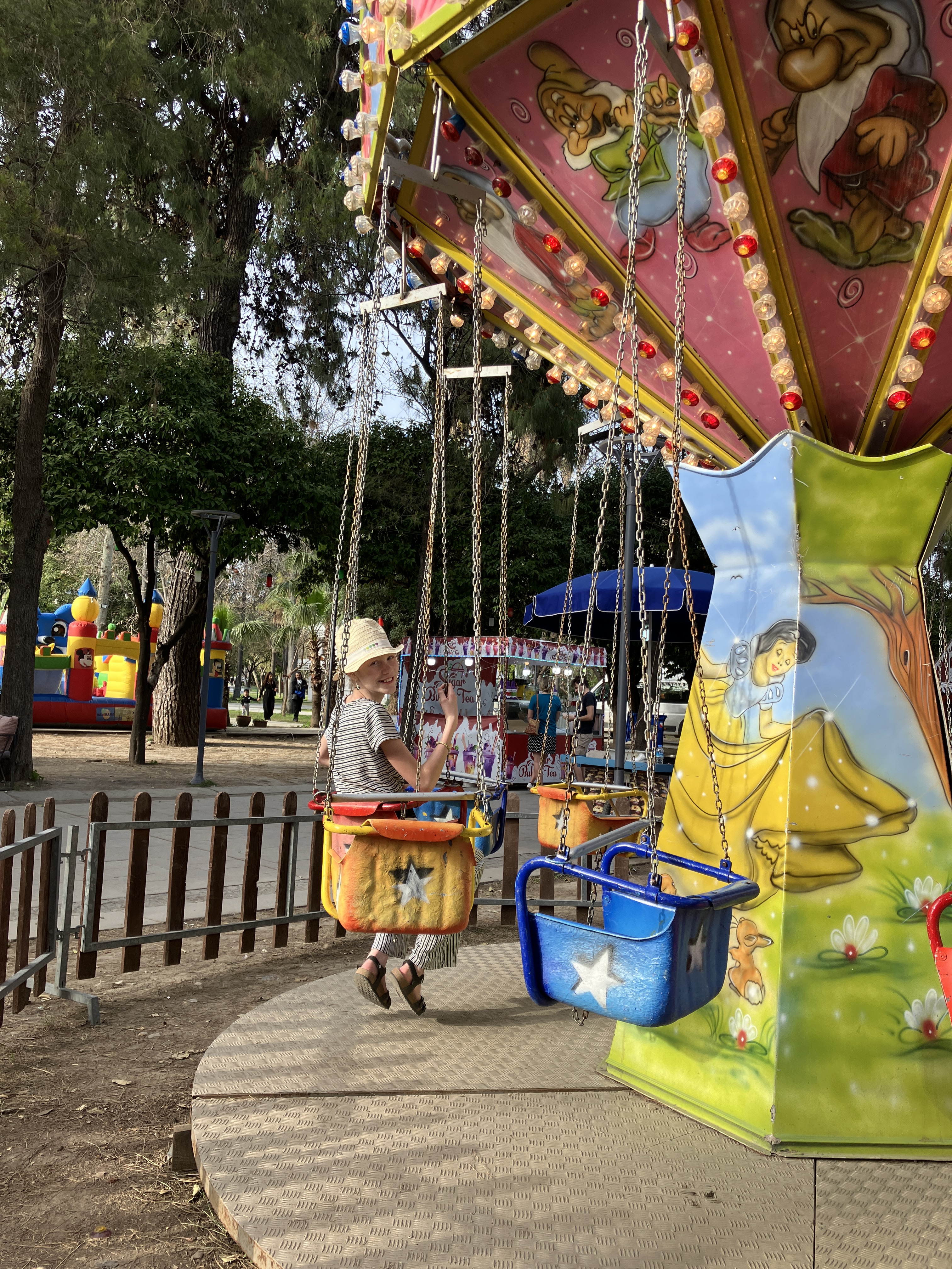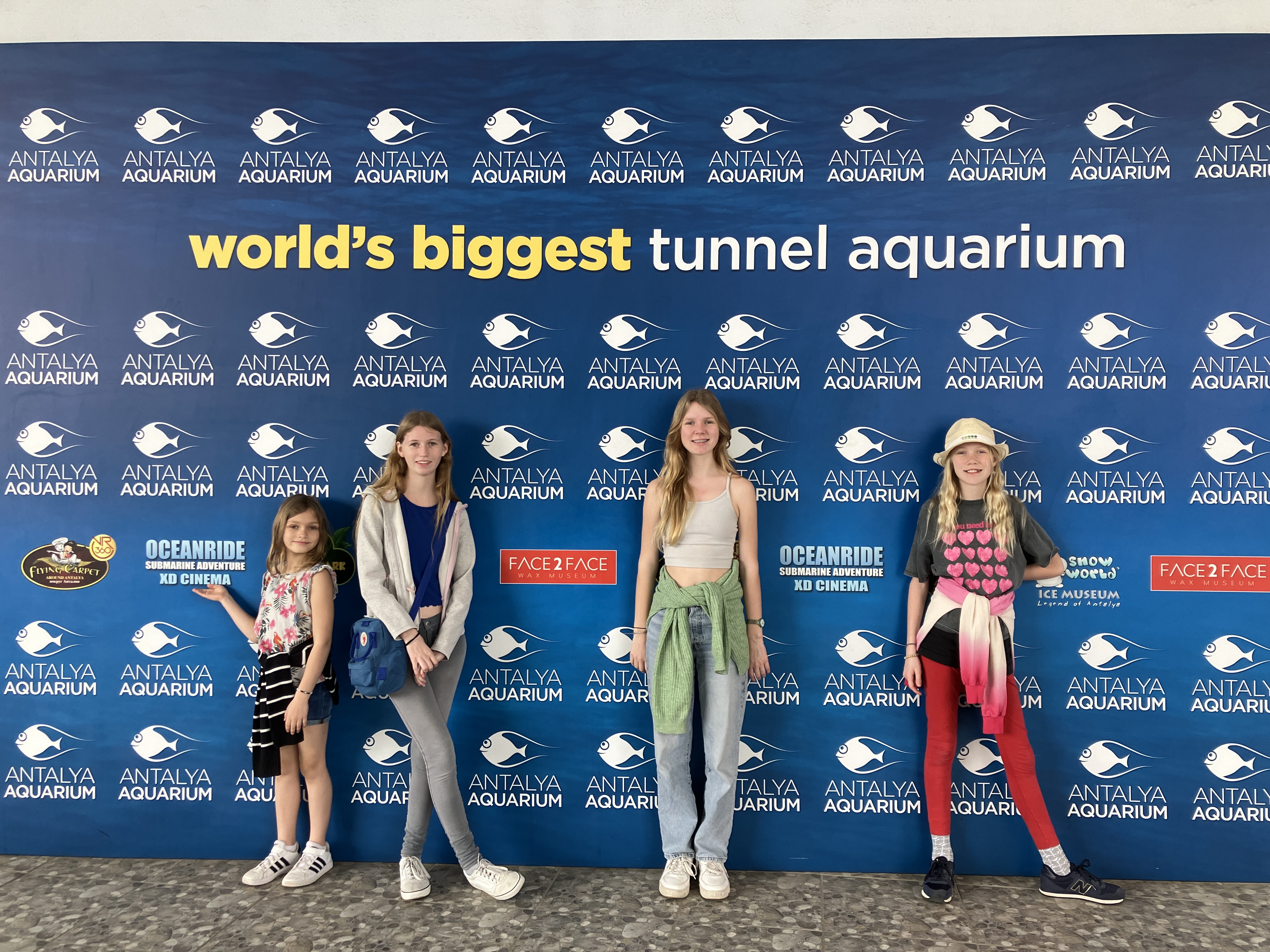 The following day Steffen stayed at the apartment to work so the girls and I headed out to explore. We took the public bus again (it was so easy to figure out!) and found Antalya Migros Shopping Center with a Starbucks (always important) and then walked over to the Antalya Aquarium. We started our visit with the Oceanride cinema, then fed the fish with baby bottles and finished our visit with a walk through the world’s biggest tunnel aquarium! We learned a lot and had fun. From there we walked down to the beach and then over to a small amusement park that was completely empty. We still got to have some fun on the (super hot and a little scary) ferris wheel and other rides. Afterwards we headed back to the mall for haircuts and pedicures. I really enjoy a day where we ramble and see what the place has to offer!
