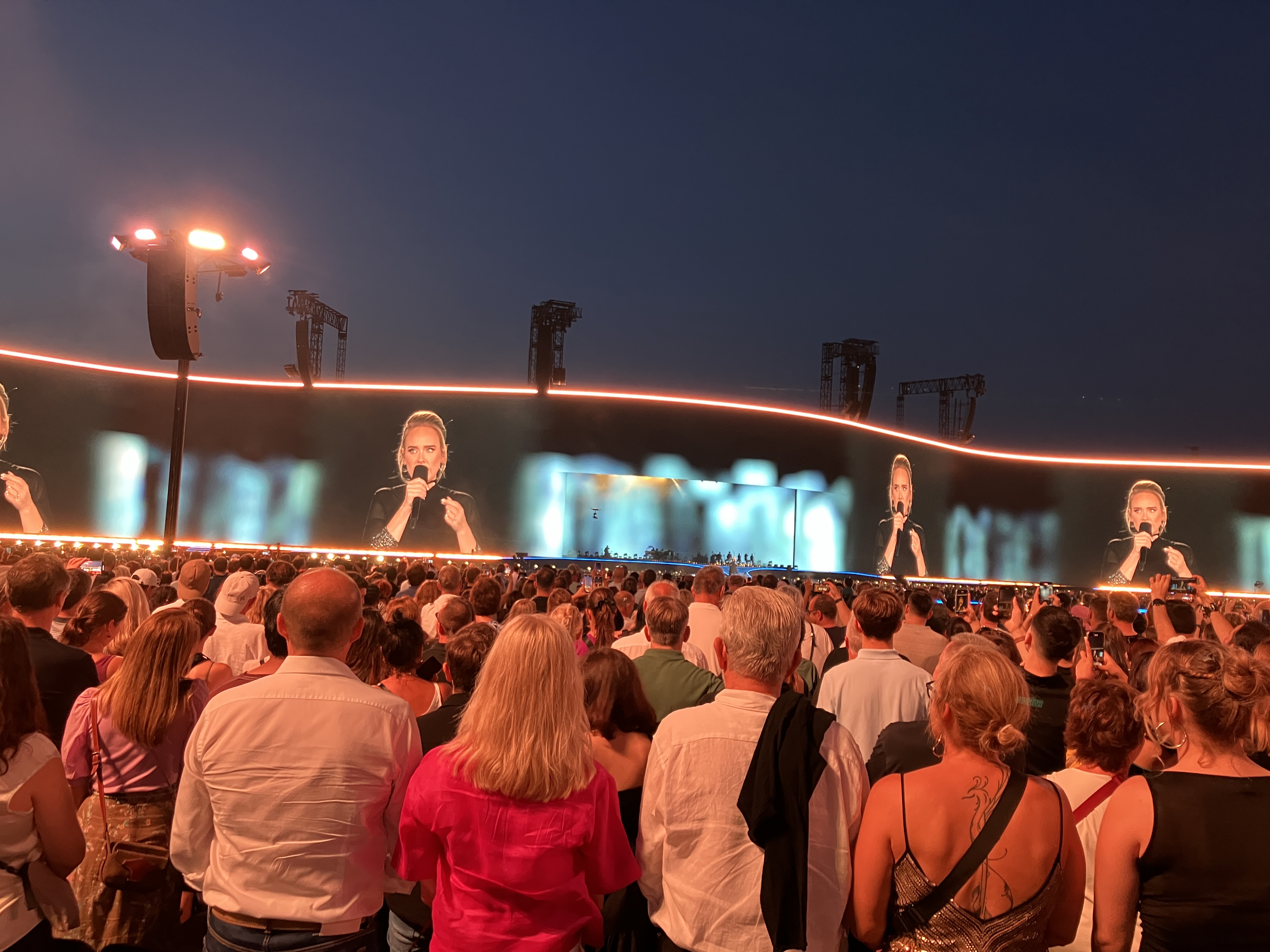 When we found out that Adele would be doing a series of concerts in Munich, we knew we had to make it work! So we flew down to Munich for a 36-hour getaway. We landed at the airport and took the train right to the main area, Marienplatz. From there we walked to the famous Hofbräuhaus München for lunch and the requisite beer. We then wandered, taking in the sights and rambling along until we ended at the Eisbachwelle, where people surf on a continuous wave on the Englischer Garten’s Eisbach River. Very cool!