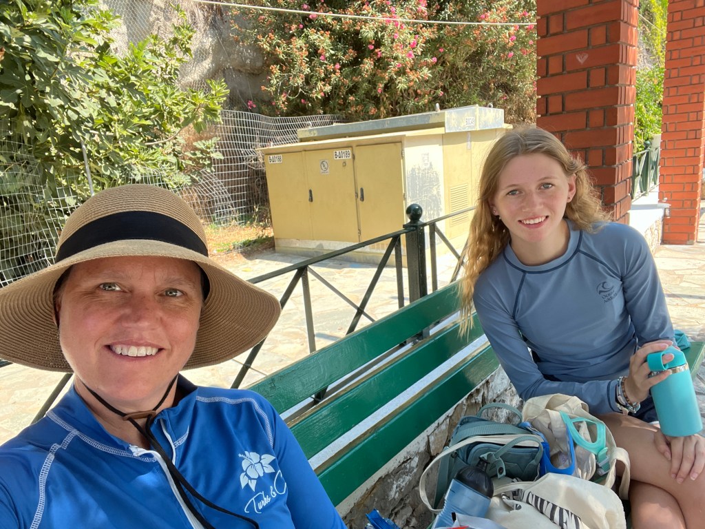 We talked to one rental car place, and they told us they would have a car available at 11am. We then realized that Steffen did not have his driver’s license and he is the one who has to rent the car because they only have manual cars. He didn’t want to wait to take the bus back up since it didn’t leave until 11:00am meaning he wouldn’t be back down until 11:45am (15 minute bus ride up and a 30 minute walk down). So he headed off to do the 2.5km hike uphill in hopes of being back sooner. A little after 11am, while still waiting for Steffen to get back, I walked back to the rental car company just to let them know that we still wanted the car. It was a different woman at the front desk, and she looked at me like I was crazy. She said there was no car available, and she didn’t know when there would be one. She took my number and said she would be in touch. Steffen returned and we waited and waited and waited. At around 12:30pm we got word that there would be no car for us that day. We walked over to another rental car place and were told maybe at 3:00pm there would be one. At that point, everyone was hot, frustrated and very disappointed. It was a good lesson in managing reactions! Olivia declared, “Not another long walk to a boring beach!”