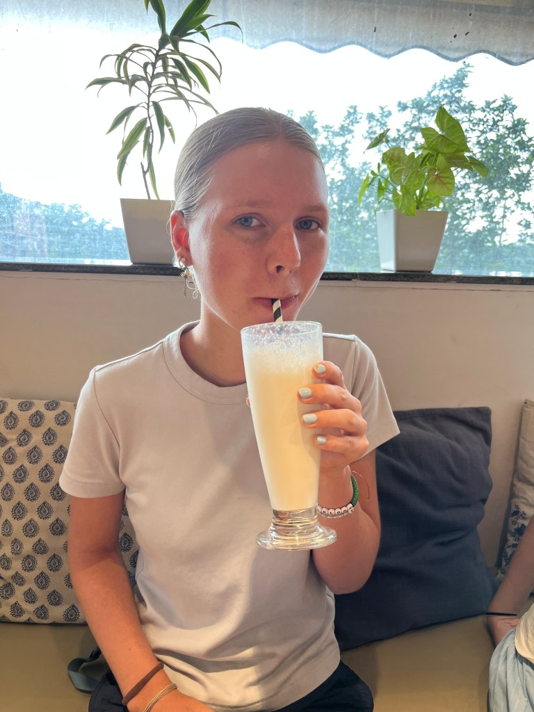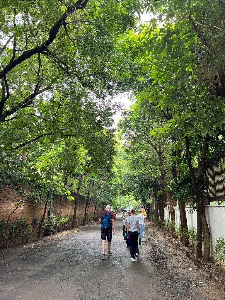 Then it was time to meet with the director who was so kind and curious and welcoming and calm and patient, just a lovely person right from get go. She wanted to hear more about our trip and about Waldorf education for older children (their school goes through 5th grade only) and pointedly asked the girls directly rather than relying on Steffen and I. I loved that! We saw some familiar things–the creation of textbooks by the students through writing and drawing as they move through the main lesson, use of chalk boards, weaving and other handiwork, and a very child-centered approach. And we also saw many unfamiliar things–kids making do with very few material items and the play things they did have were old and run down, the vegetation is very tropical, the floors in the classrooms are cement and the whole building is cobbled together with whatever they could find. Luisa loved it right away and is eager to attend. She will start tomorrow at 9:00am and we will see how she feels at the end of the day. There are 5 other students in her class and while they are bilingual (Hindi-English), the geography lesson they are currently working on is in Hindi. The teacher said they will help with translation and Luisa is not worried at all!