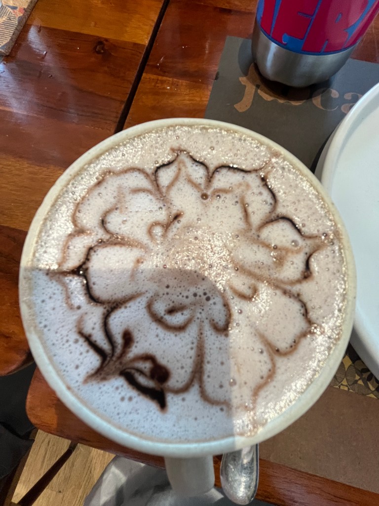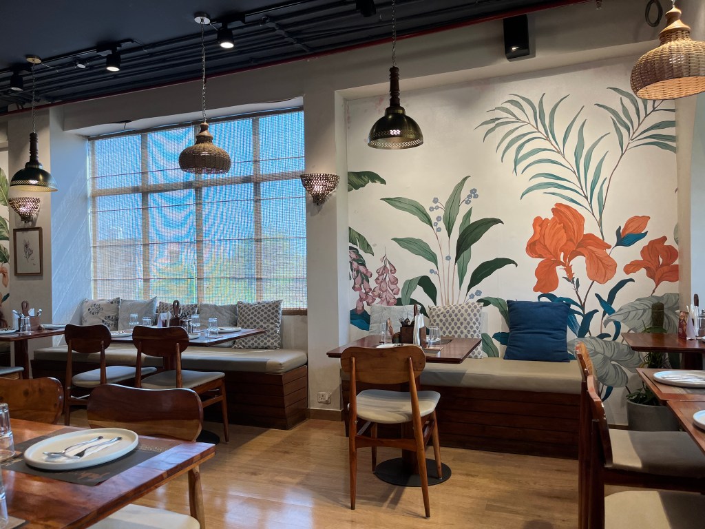 By the time we left the school, we were all getting pretty “hangry” (Luisa taught the director that word) so we asked her for a recommendation, and she suggested a place called Fabcafe in a Fabindia store. So we got another Uber (loving the ease of that app!) and headed over. Unfortunately we got into a ton of traffic as it was right when most of the schools dismissed, so there were big school buses and small vans full of kids and then regular traffic all bunched up together. It took us an hour to go 4.5 km!! And our Uber driver fell asleep twice and had two small run-ins with other vehicles–he side swiped a car but we were all going so slowly that it just flipped the side mirror inwards and he wedged a motorcycle between him and the truck in front of him so tightly that he had to reserve so the motorcycle could continue on. Mind you, the motorcycle was cutting across traffic so was sideways but he still wasn’t happy with the situation! Eventually we made it and we enjoyed our meal. We did get to squeeze into the smallest elevator ever (and that’s saying something after traveling Europe for 10 years!).